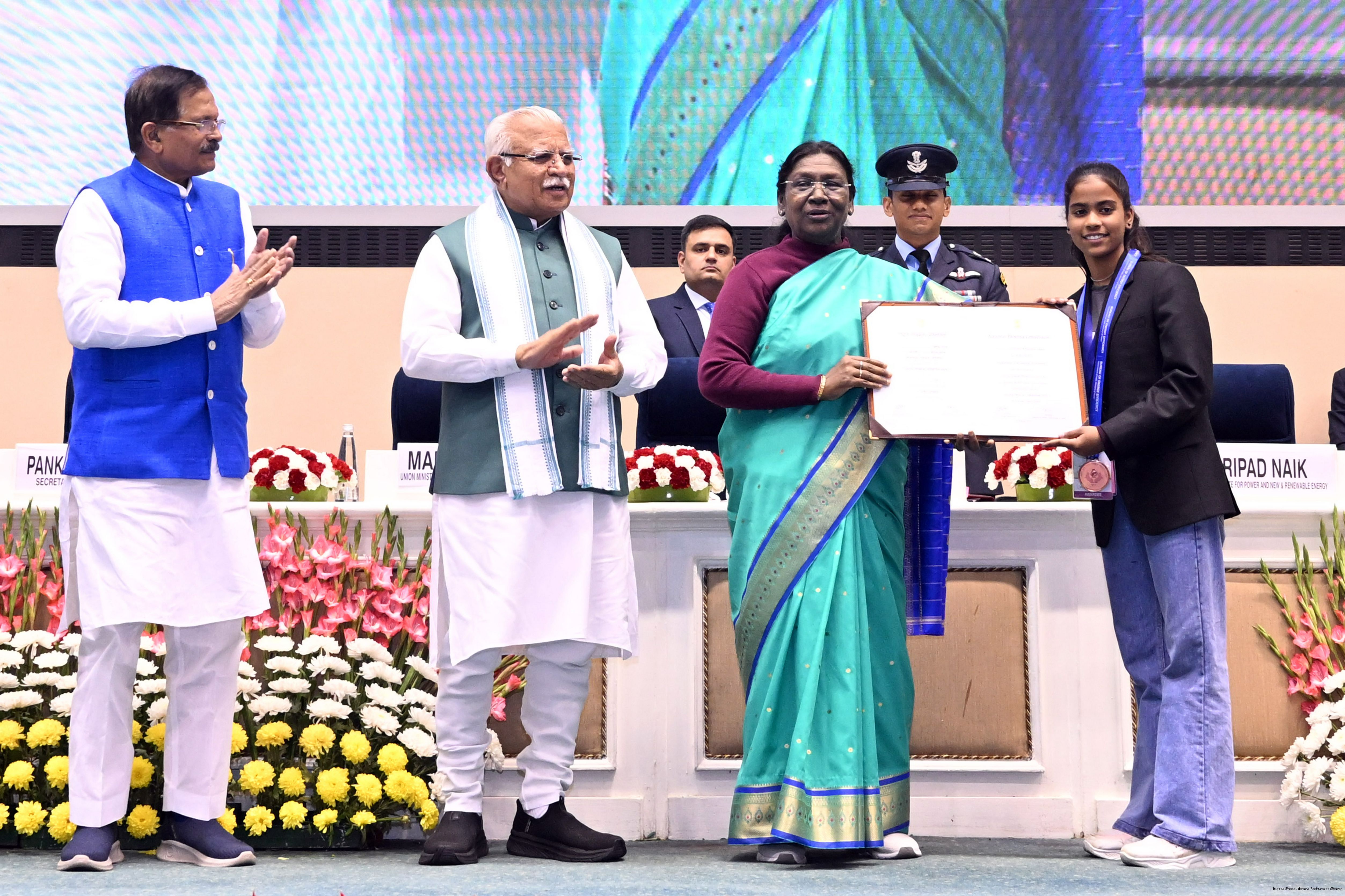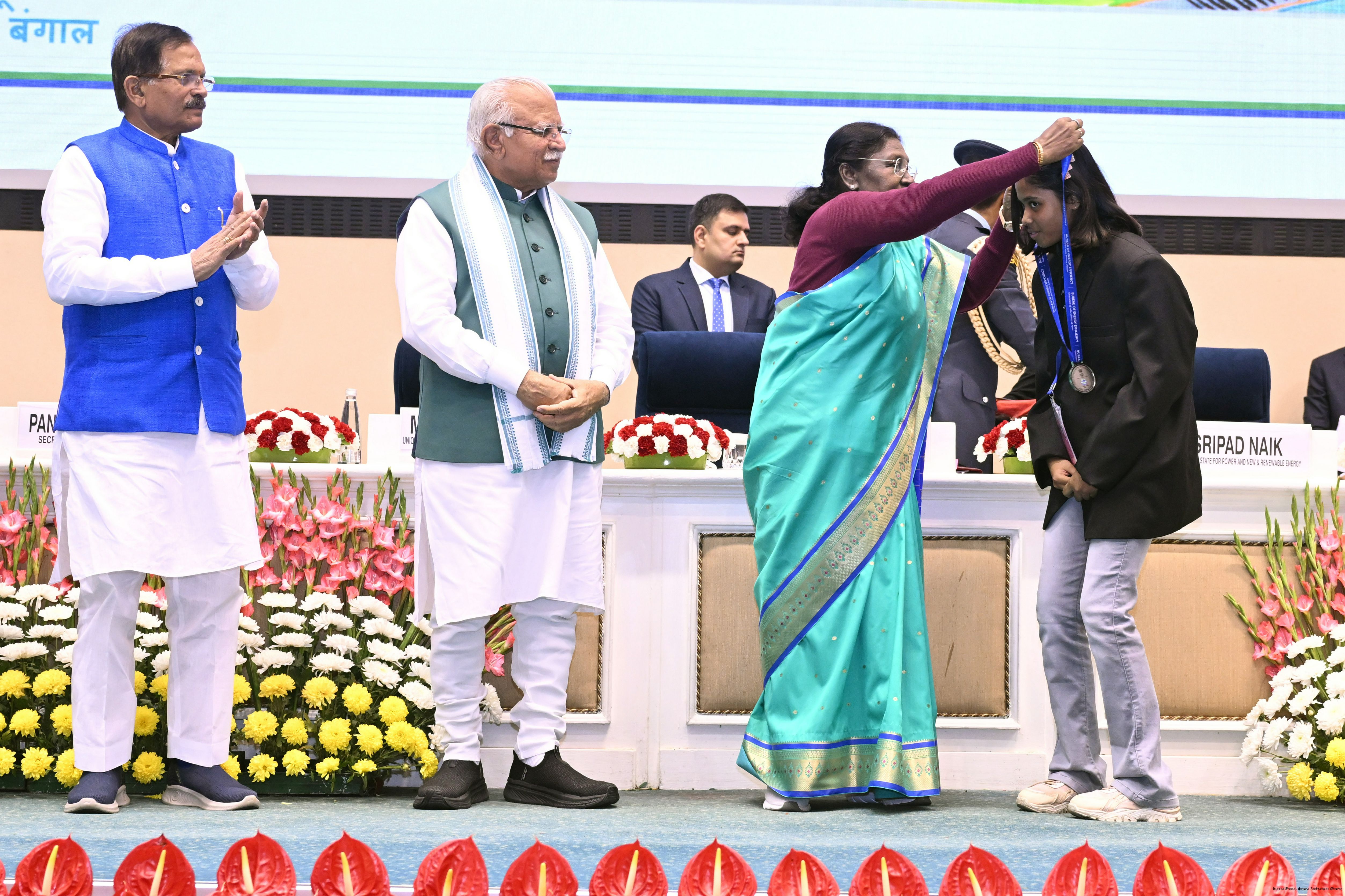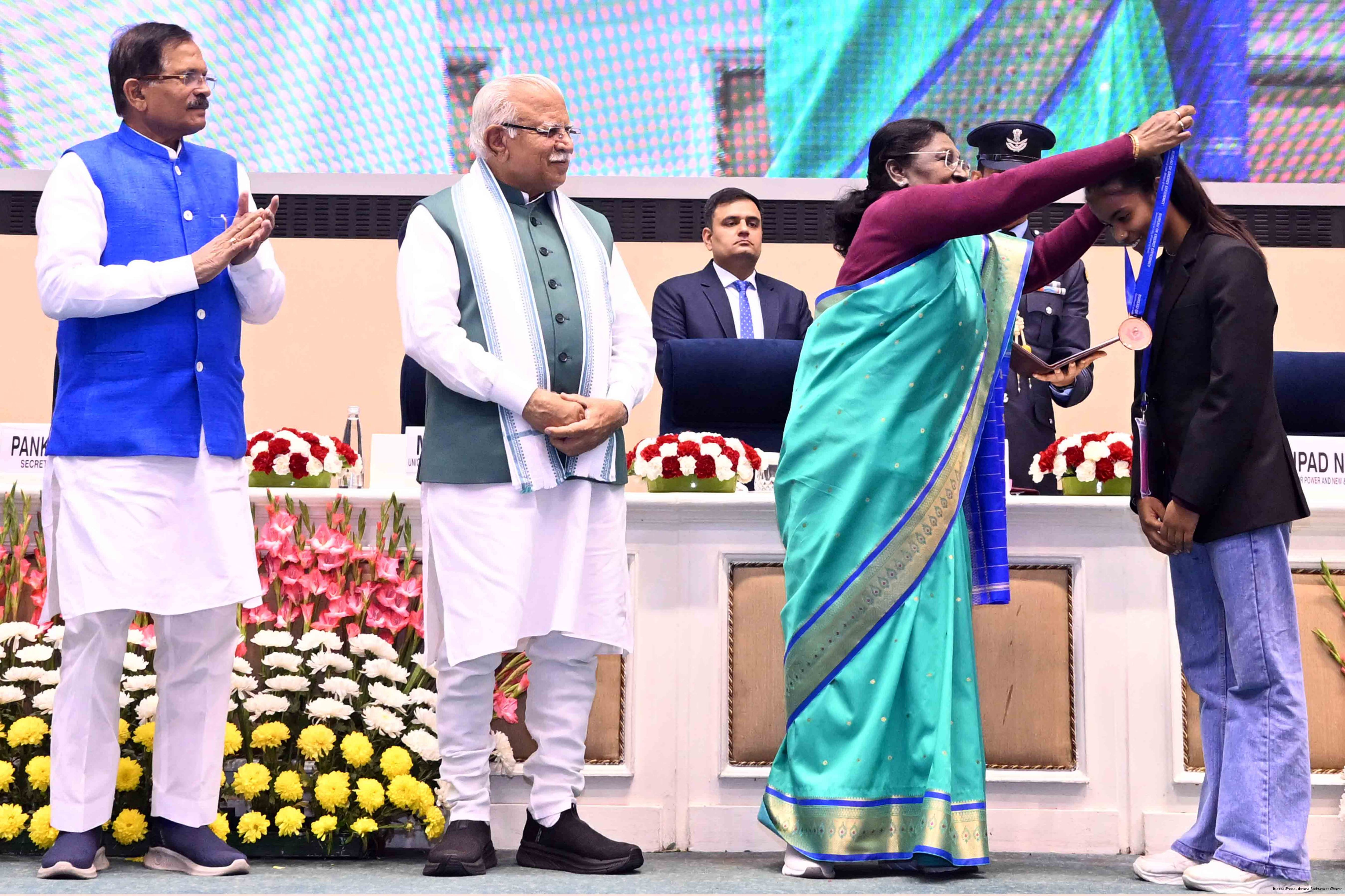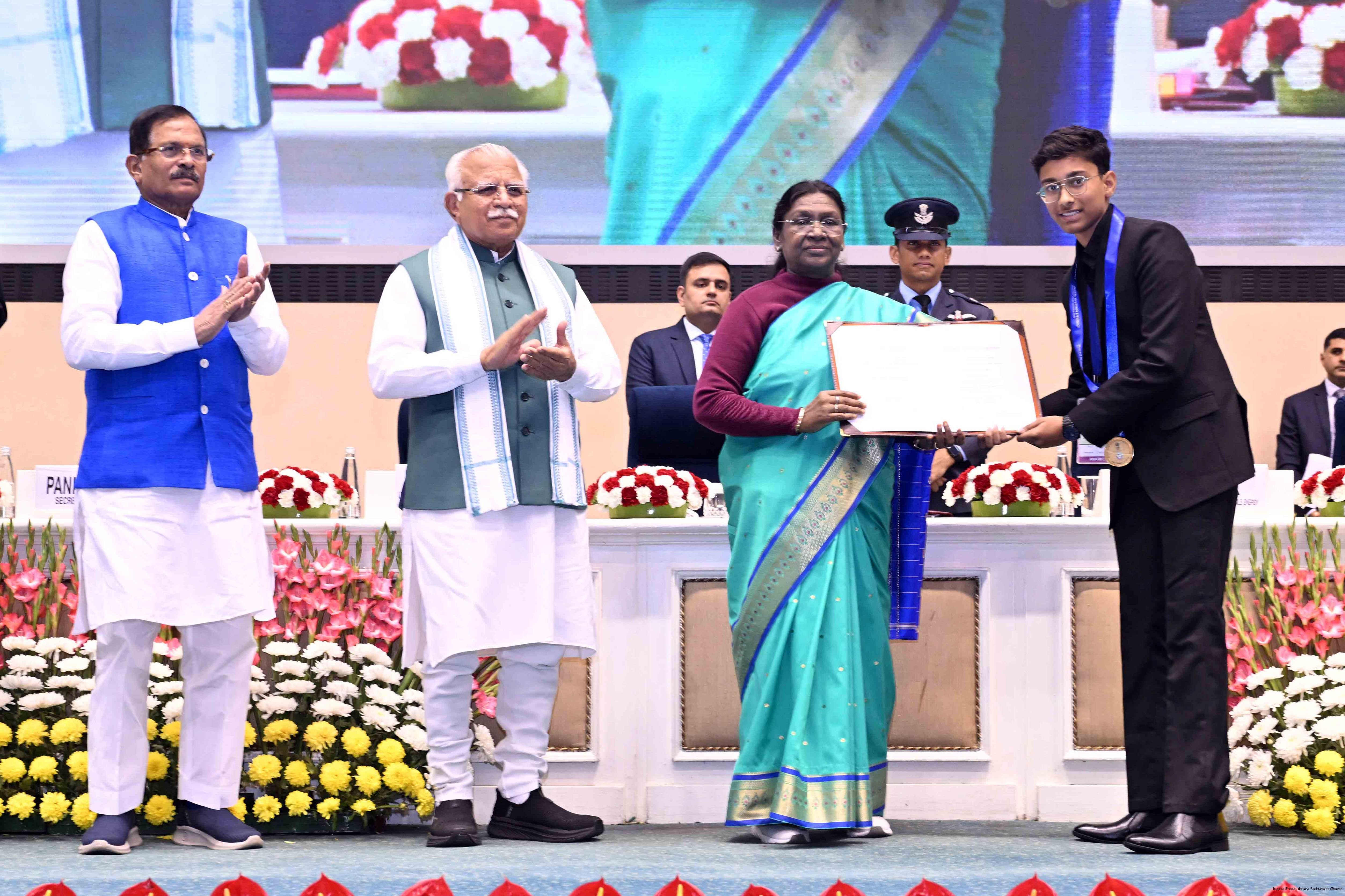 | Caption: | The President of India, Smt Droupadi Murmu, presented the National Energy Conservation Awards 2025 and National Painting Competition on Energy Conservation prizes in New Delhi on December 14, 2025. |