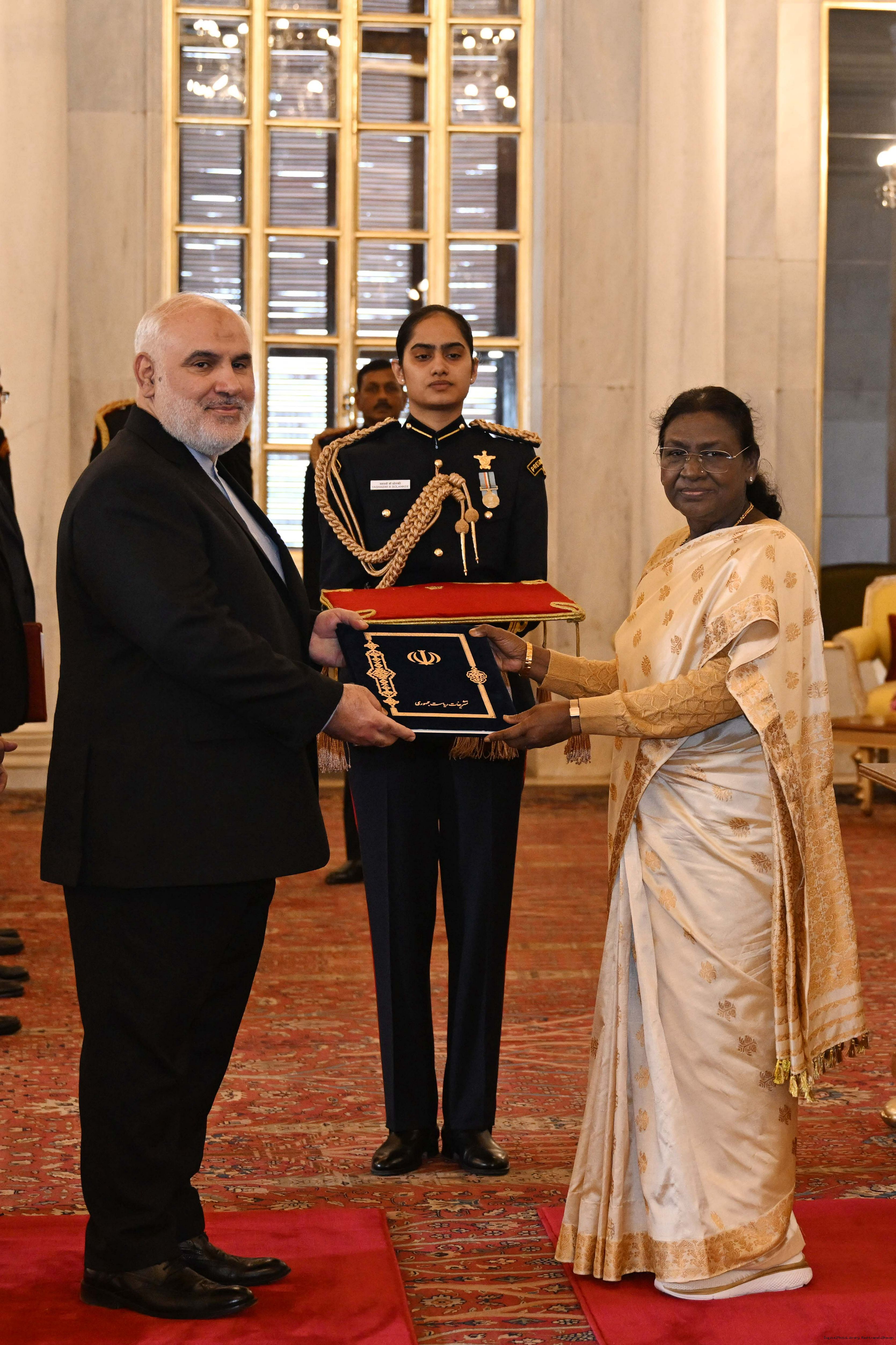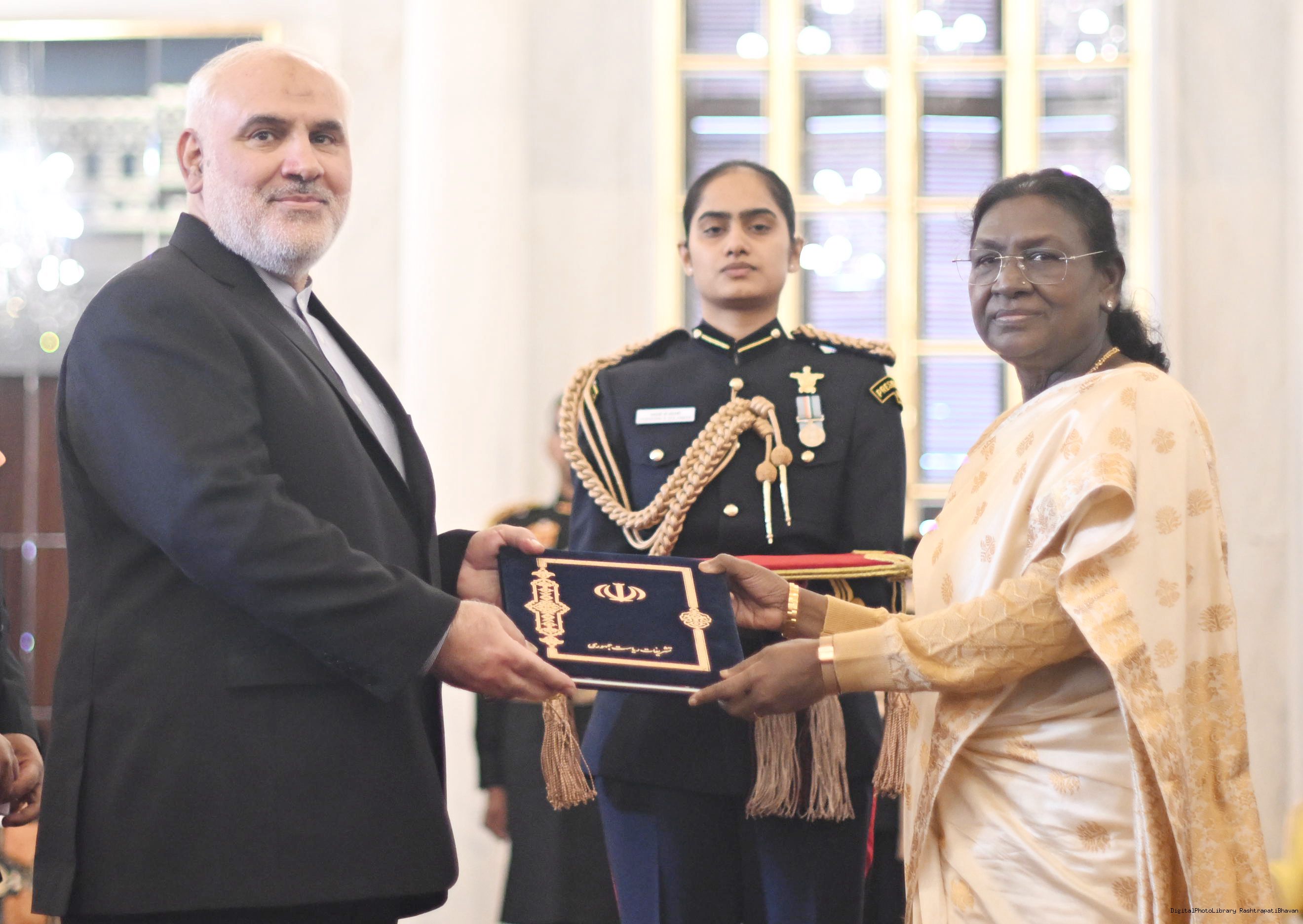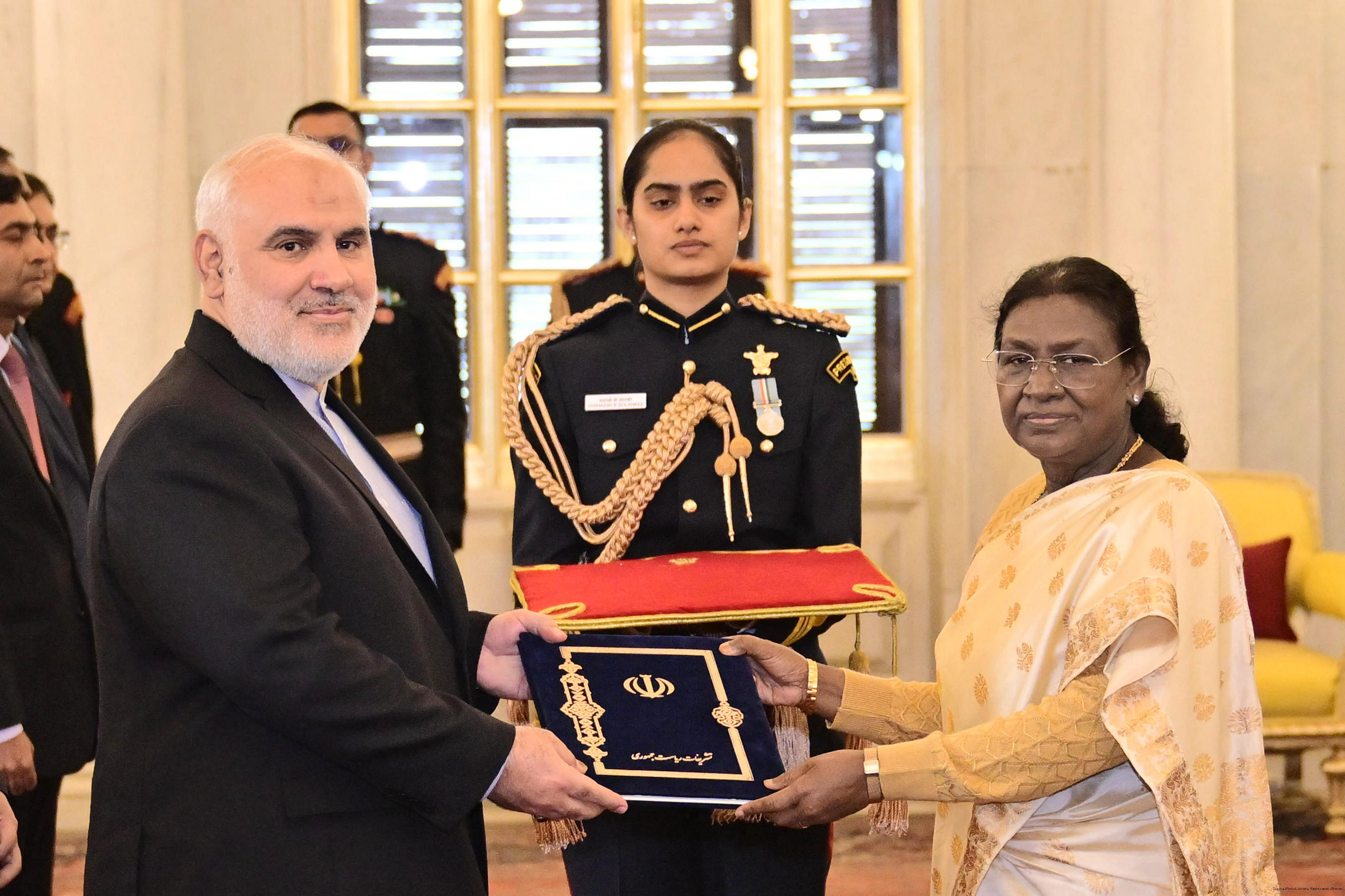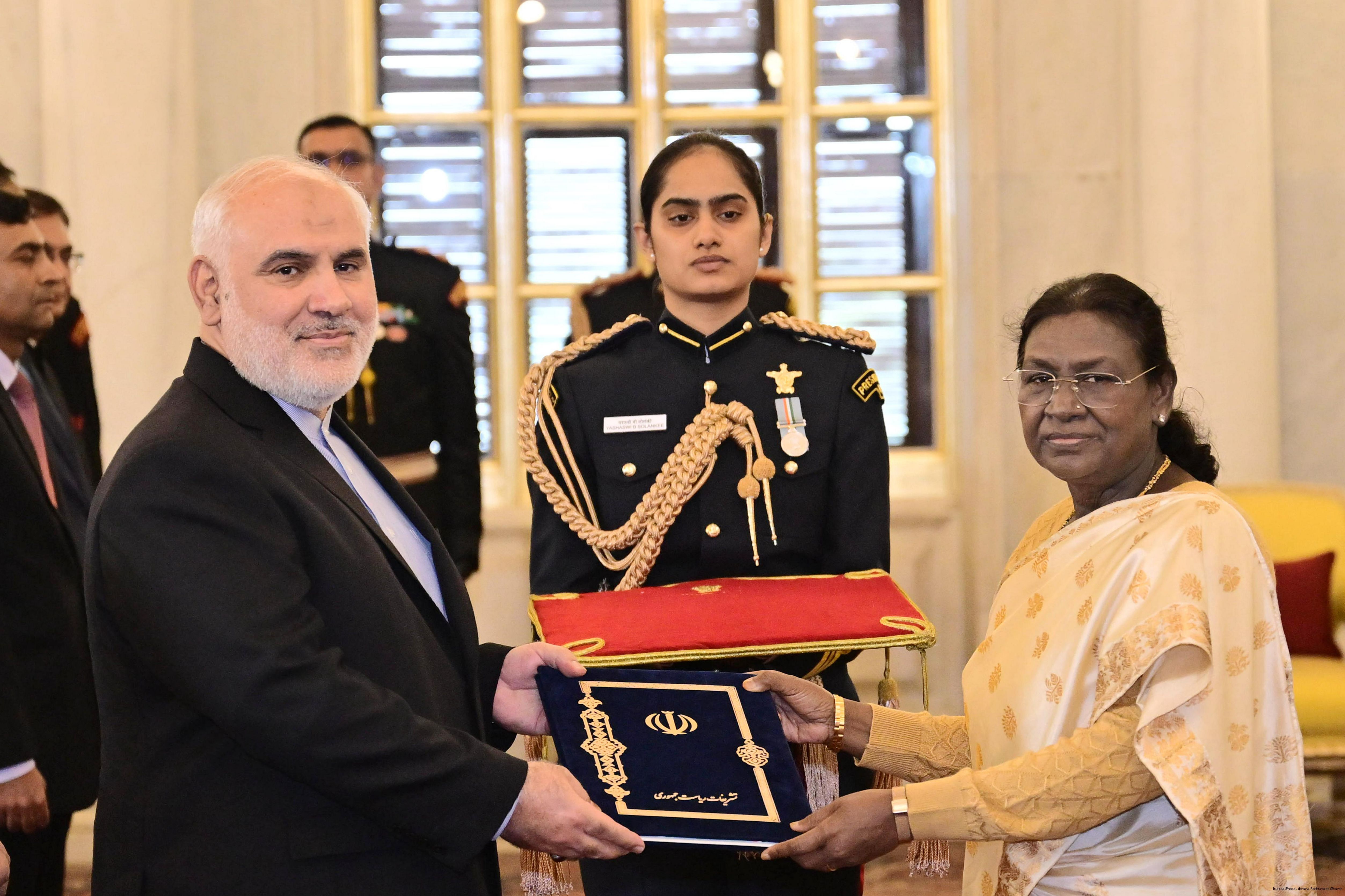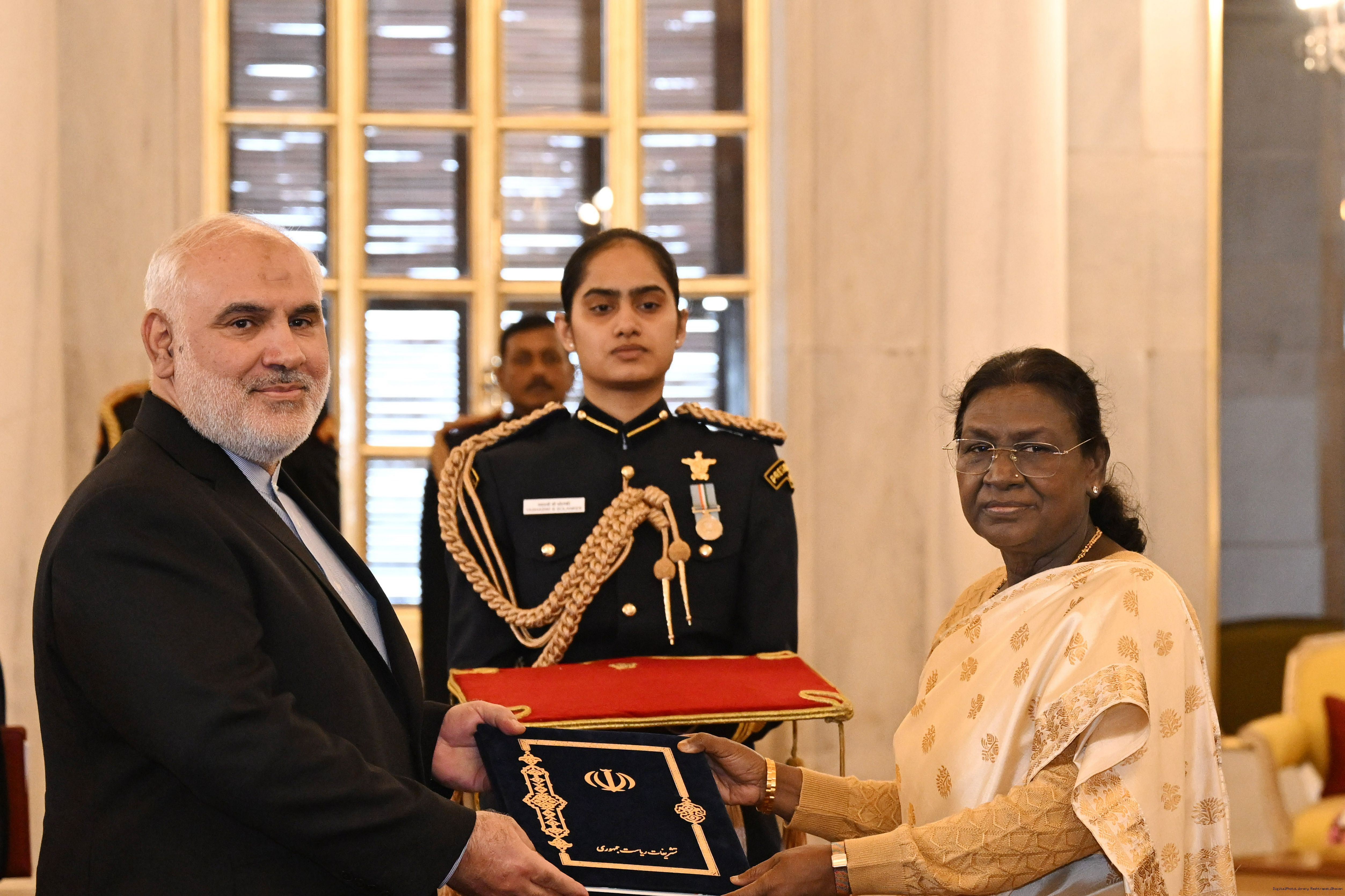 | Caption: | The Ambassador-designate of the Islamic Republic of Iran, Dr. Mohammad Fathali presenting his credentials to the President of India, Smt Droupadi Murmu at Rashtrapati Bhavan in New Delhi on December 15, 2025. |