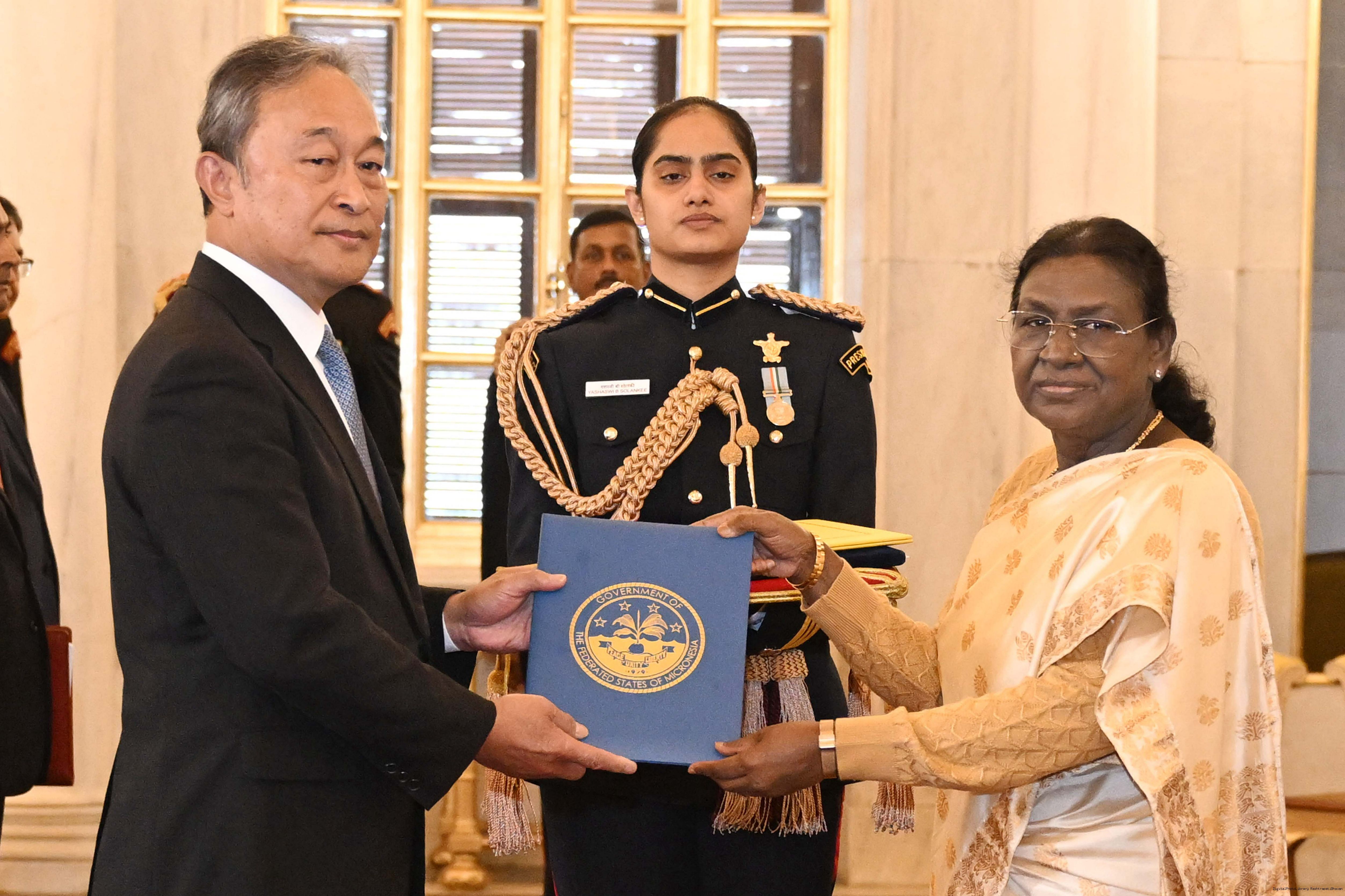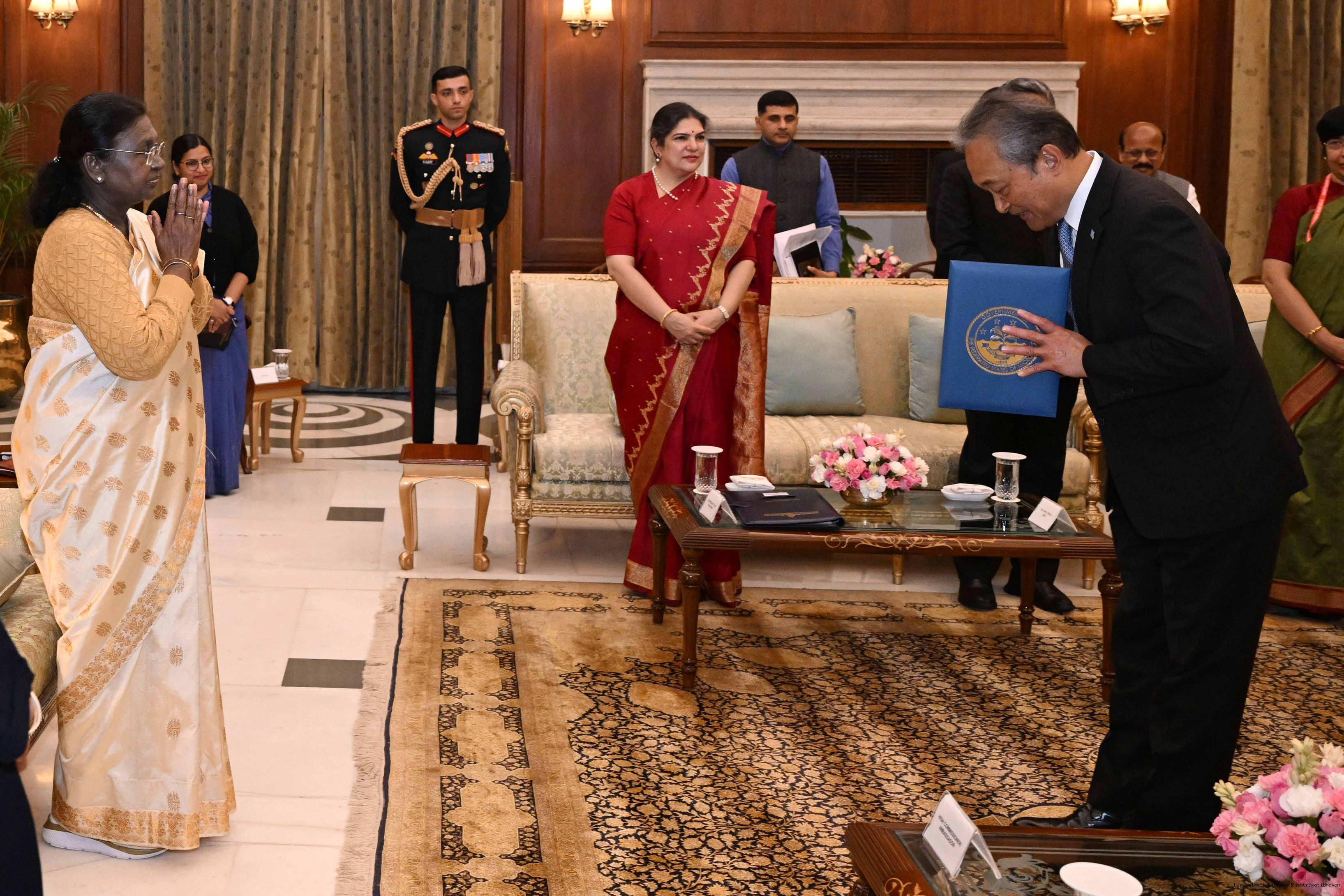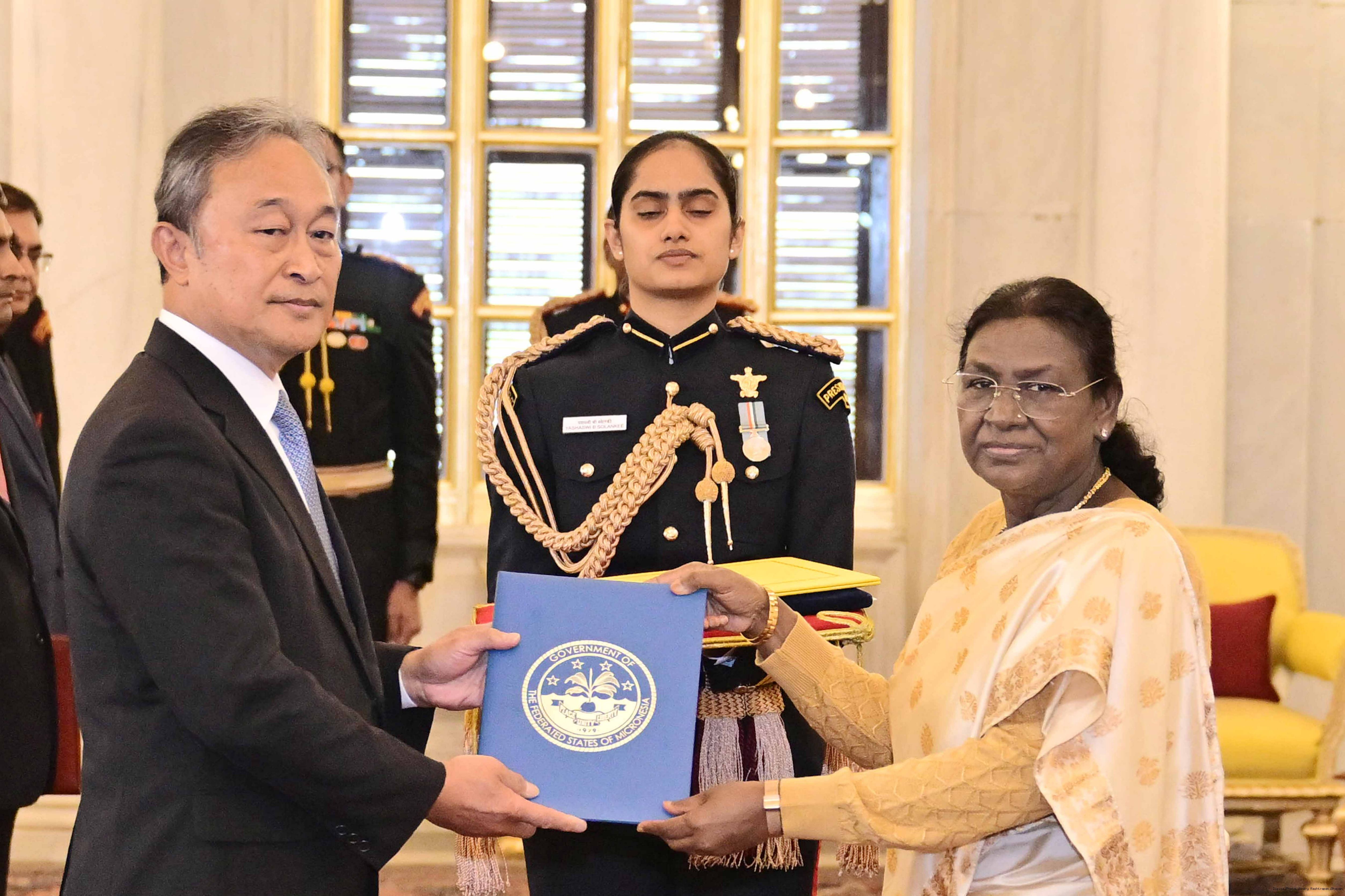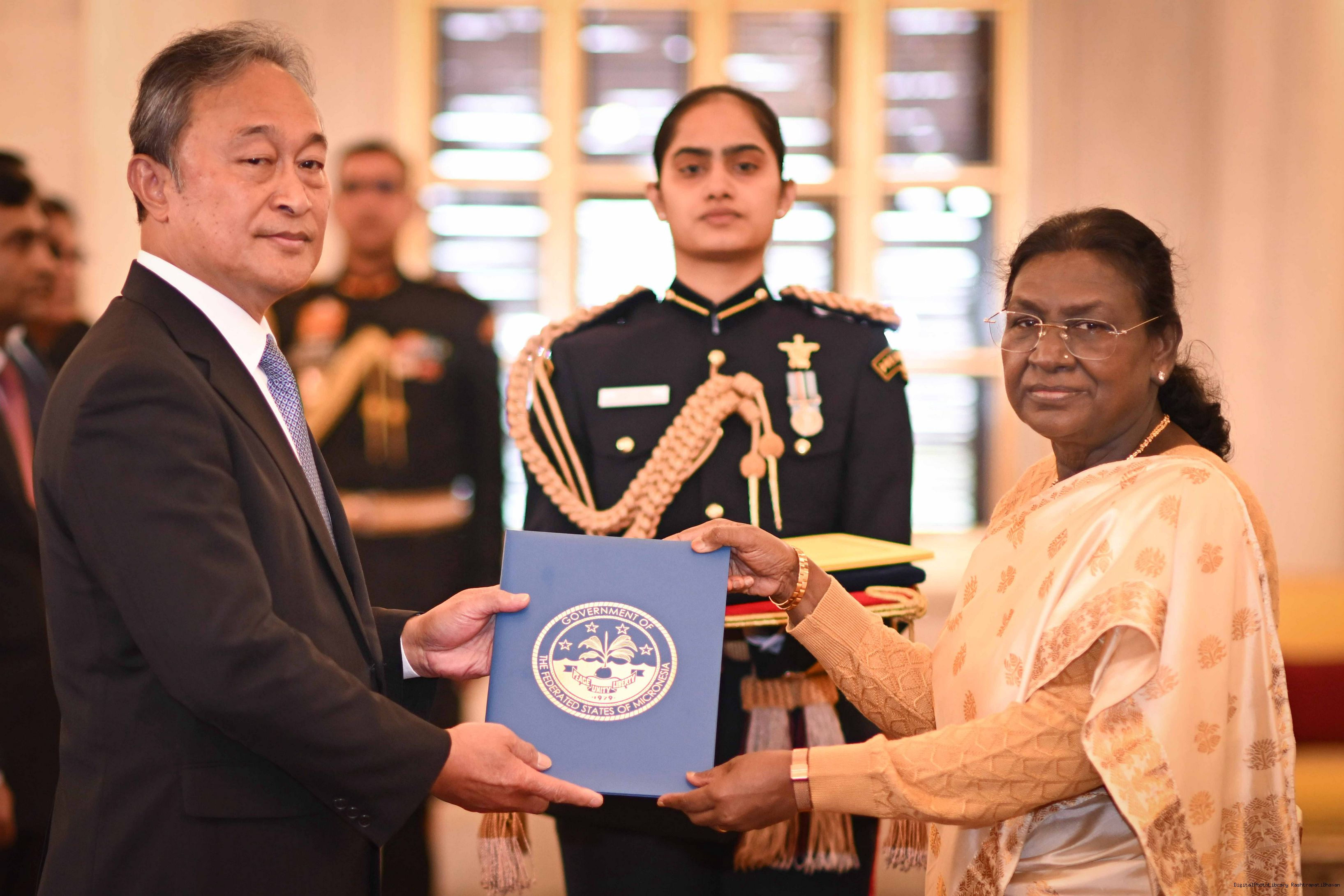 | Caption: | The Ambassador-designate of the Federated stats of Micronesia, Mr. John Fritz presenting his credentials to the President of India, Smt Droupadi Murmu at Rashtrapati Bhavan in New Delhi on December 15, 2025. |