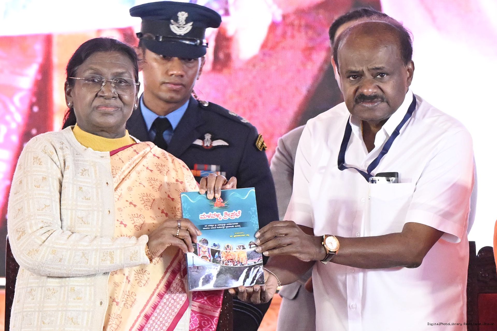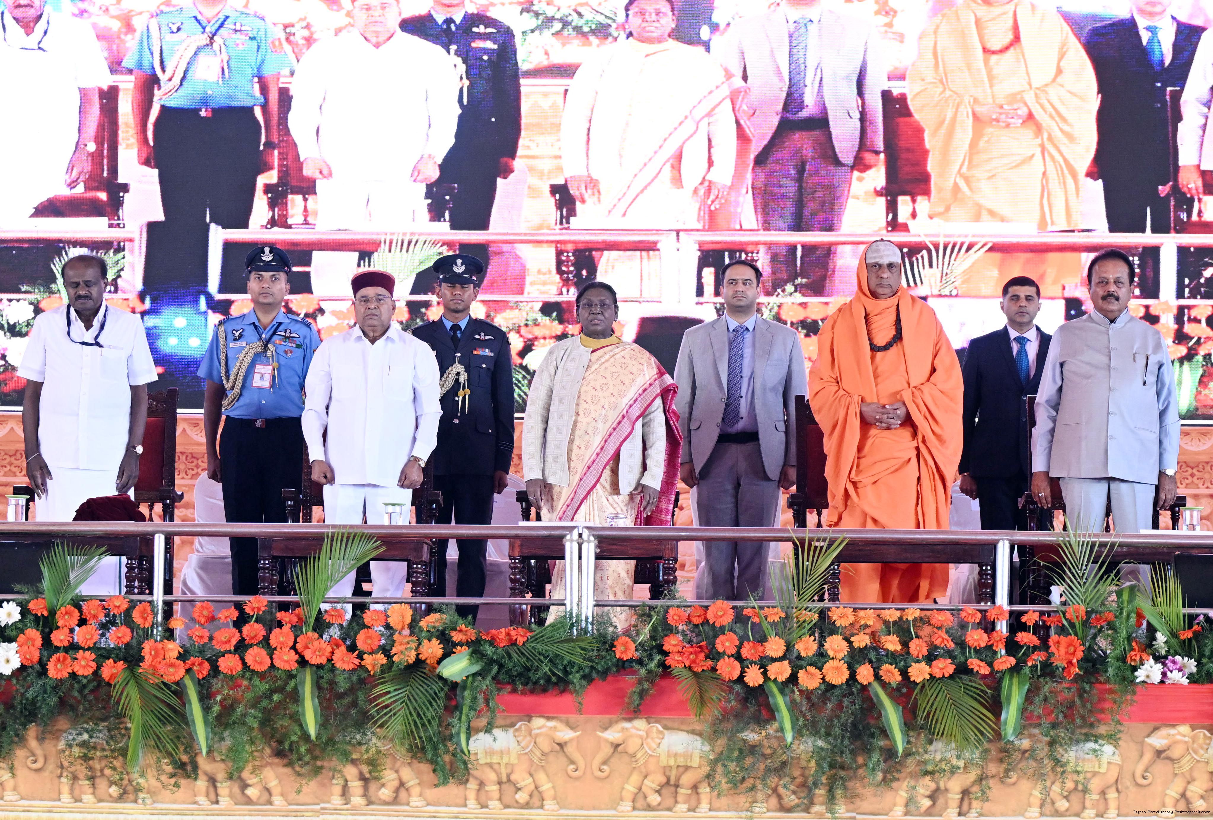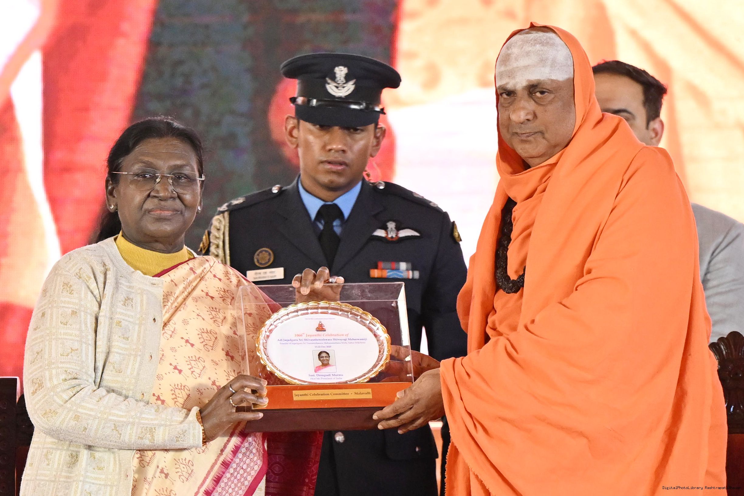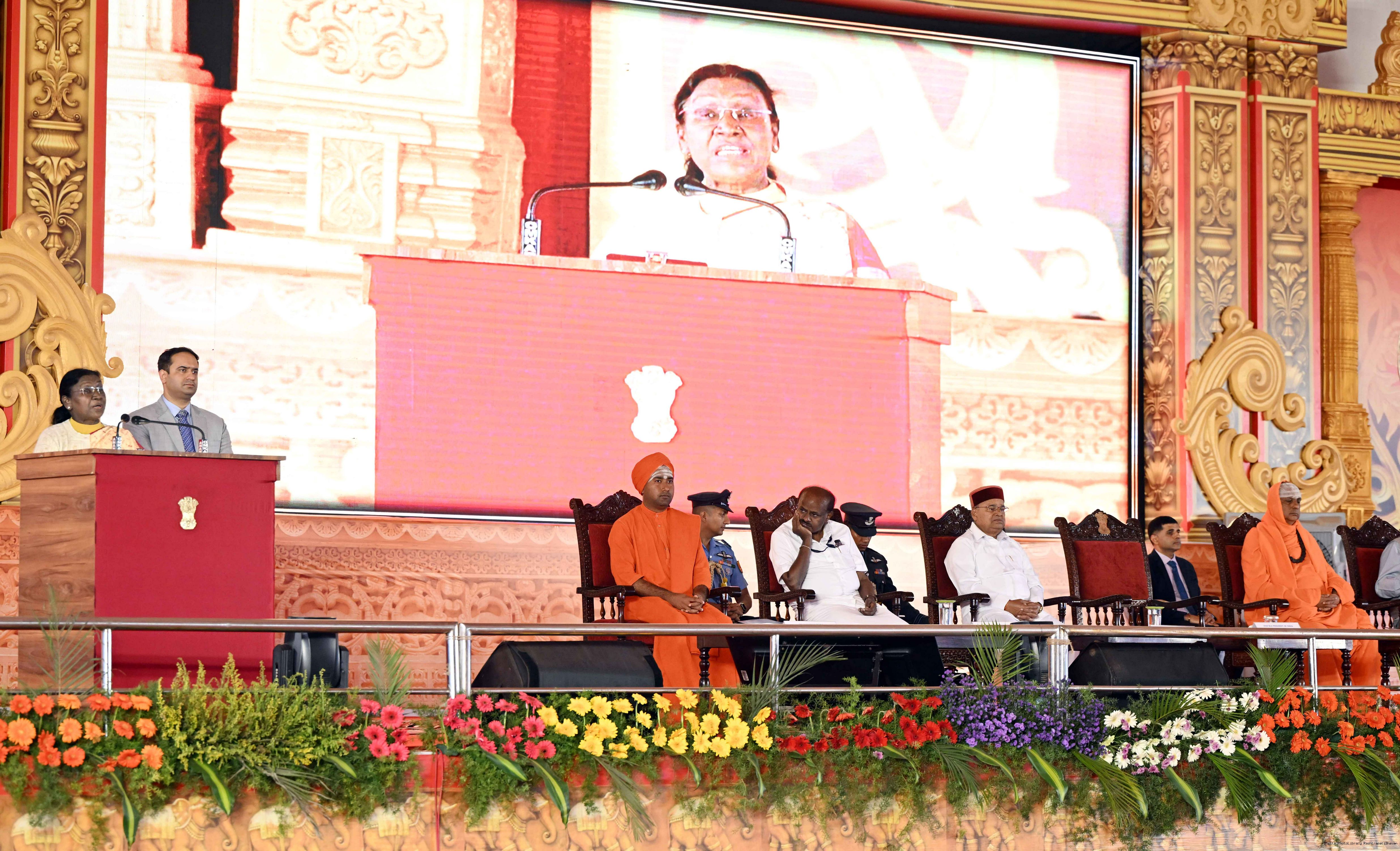 | Caption: | The President of India, Smt Droupadi Murmu, inaugurated the 1066th Jayanthi celebrations of Adi Jagadguru Sri Shivarathreeshwara Shivayogi Mahaswamiji at Malavalli, Mandya, Karnataka on December 16, 2025 |