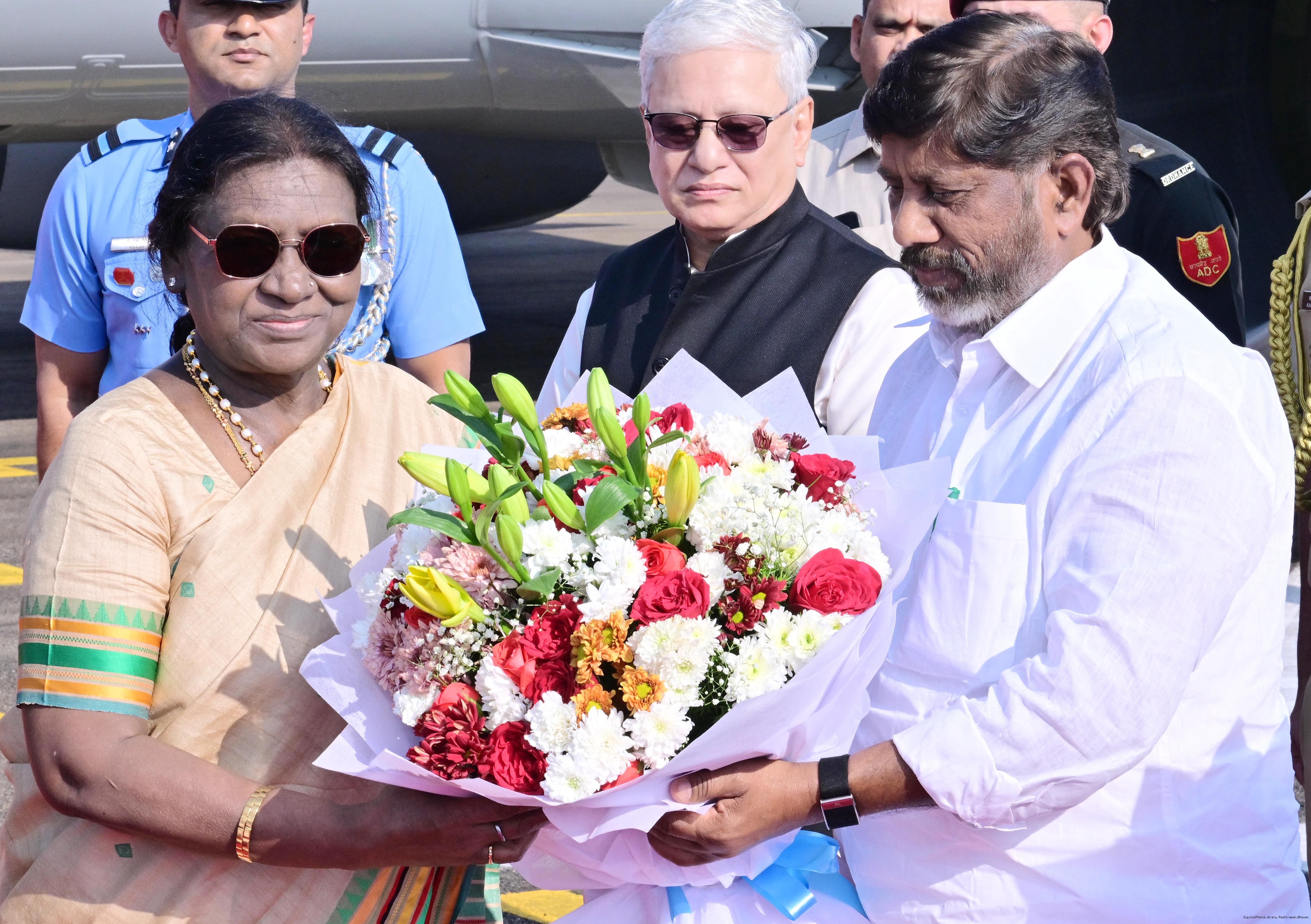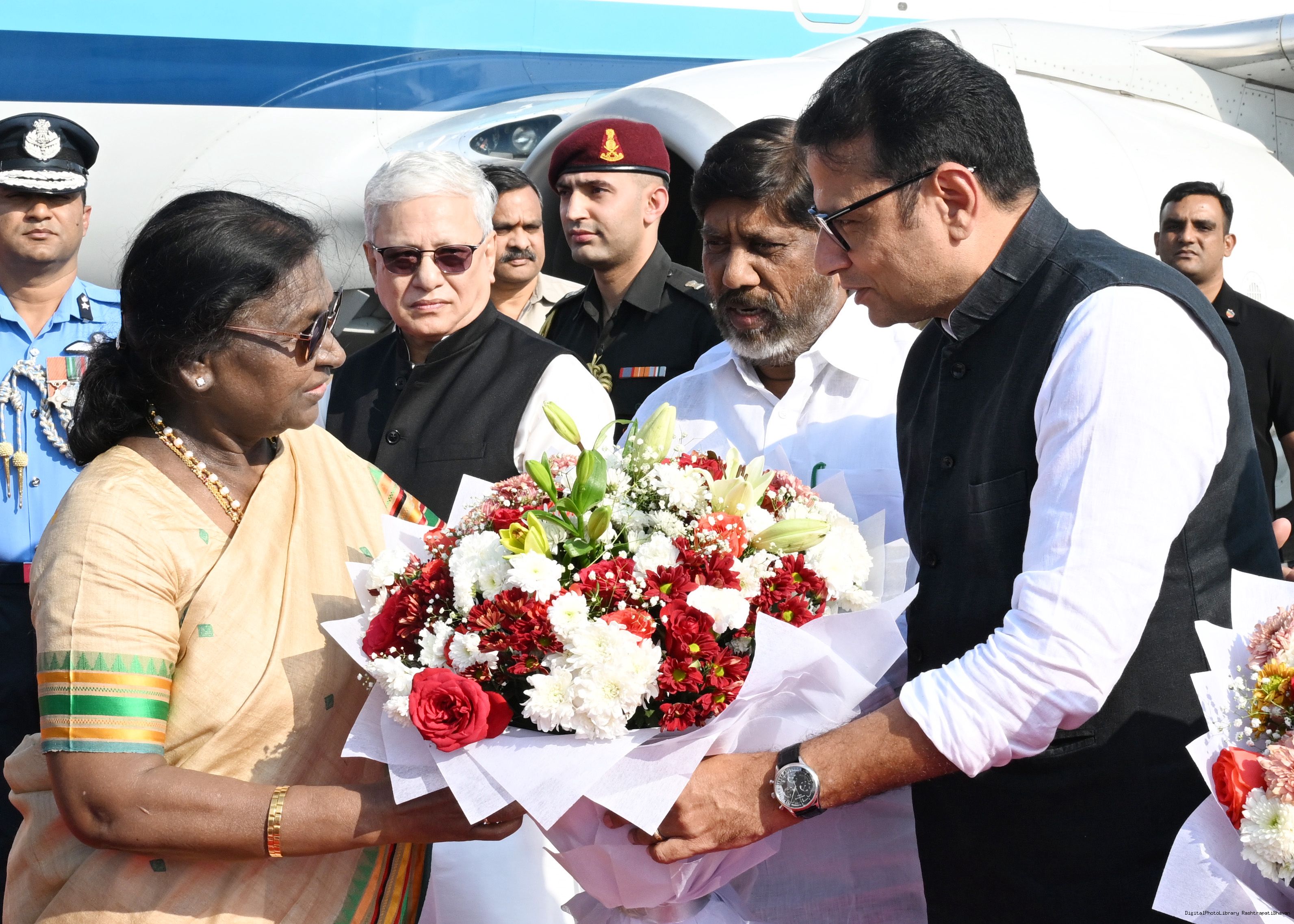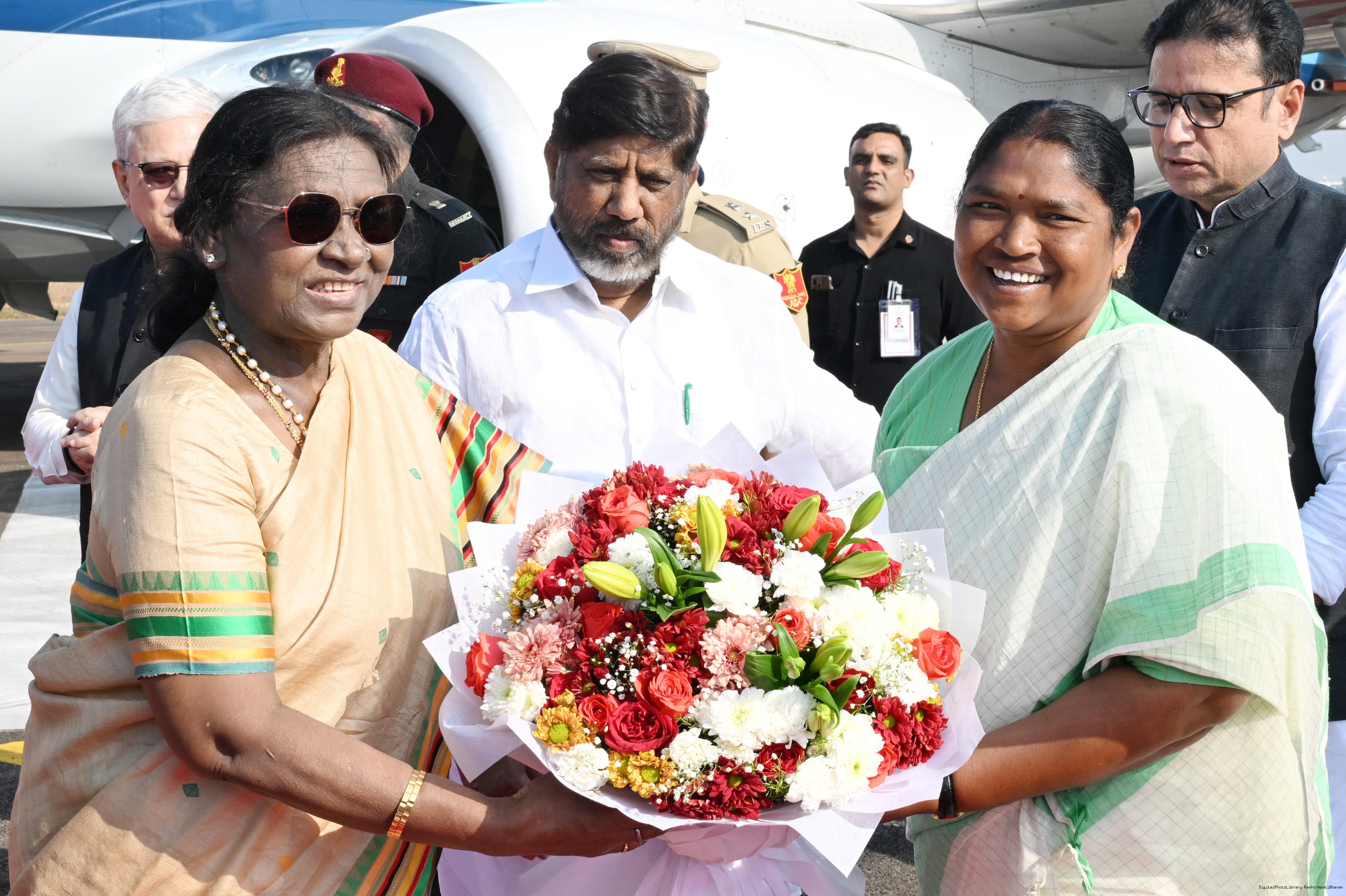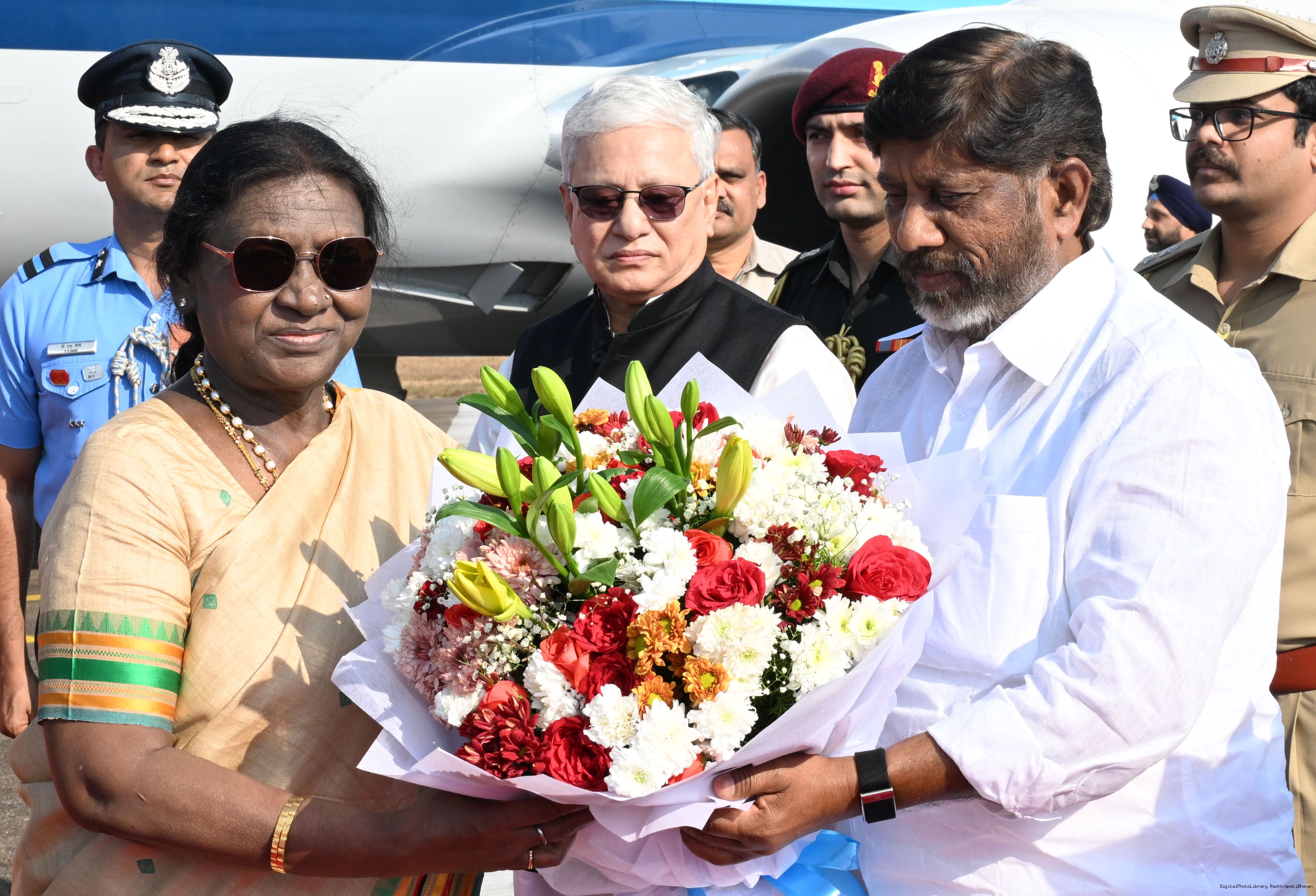 | Caption: | The Governor of Telangana, Shri Jishnu Dev Varma and Deputy Chief Minister Shri Bhatti Vikramarka Mallu received the President of India, Smt. Droupadi Murmu on her arrival at Hyderabad on December 17, 2025. |