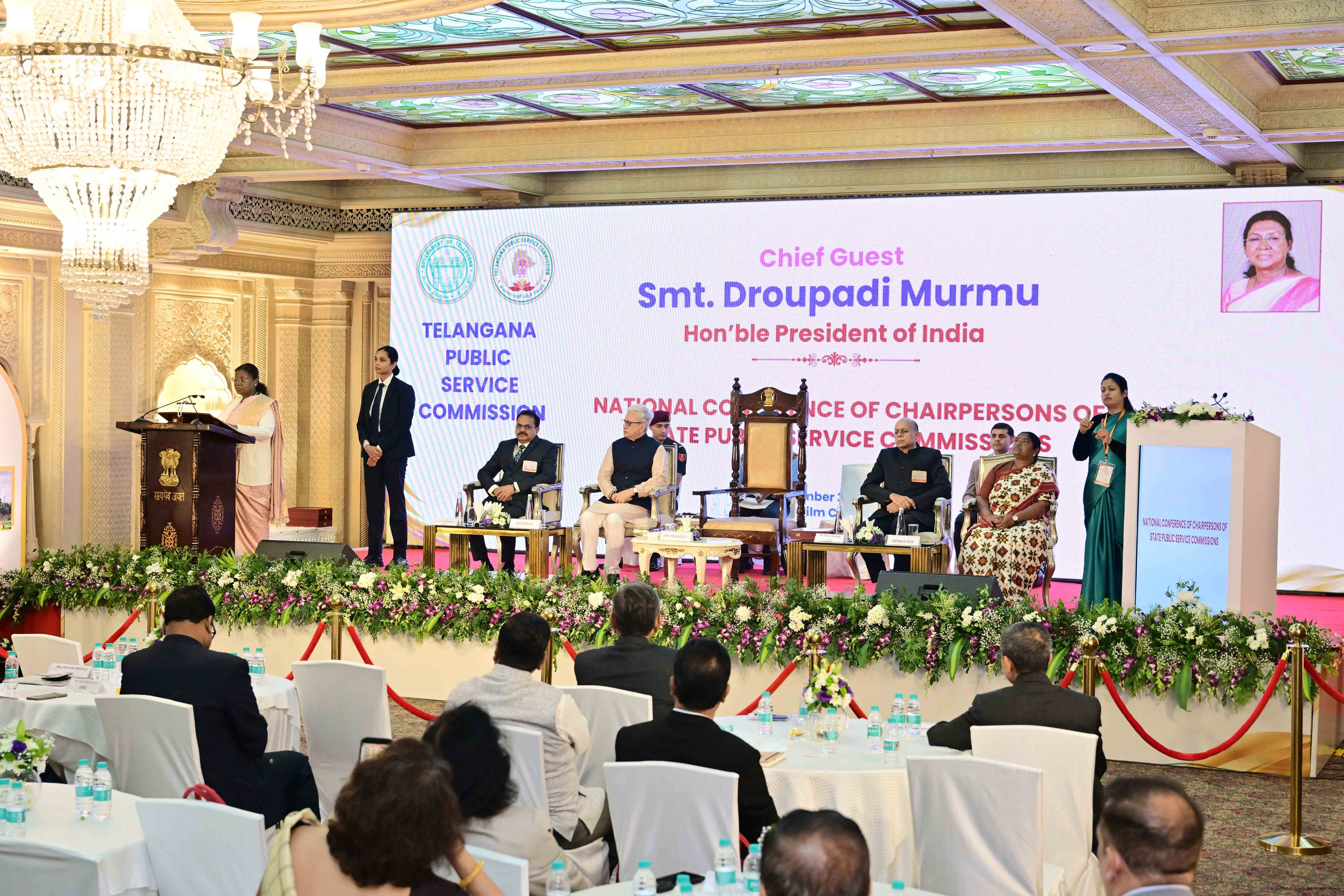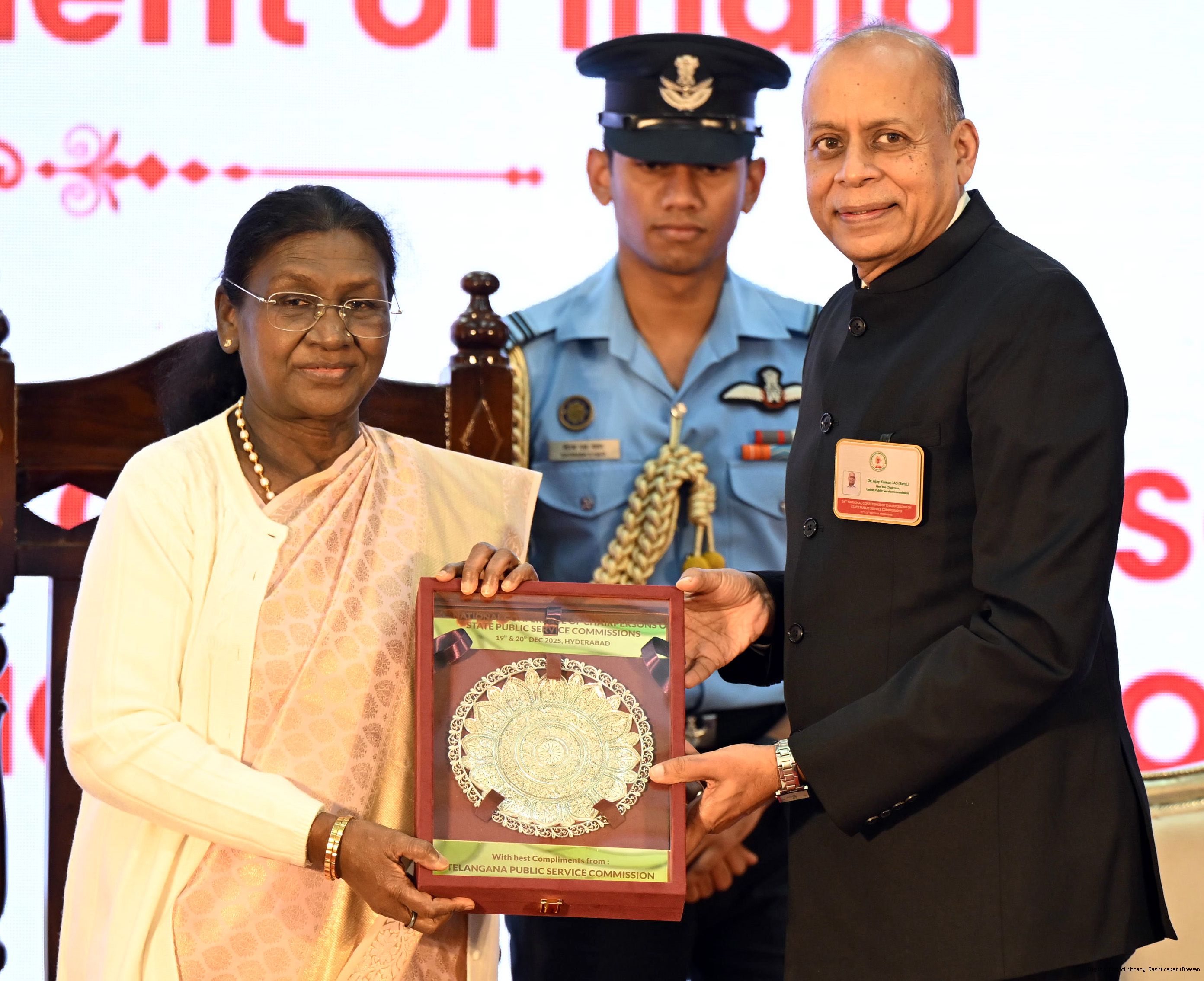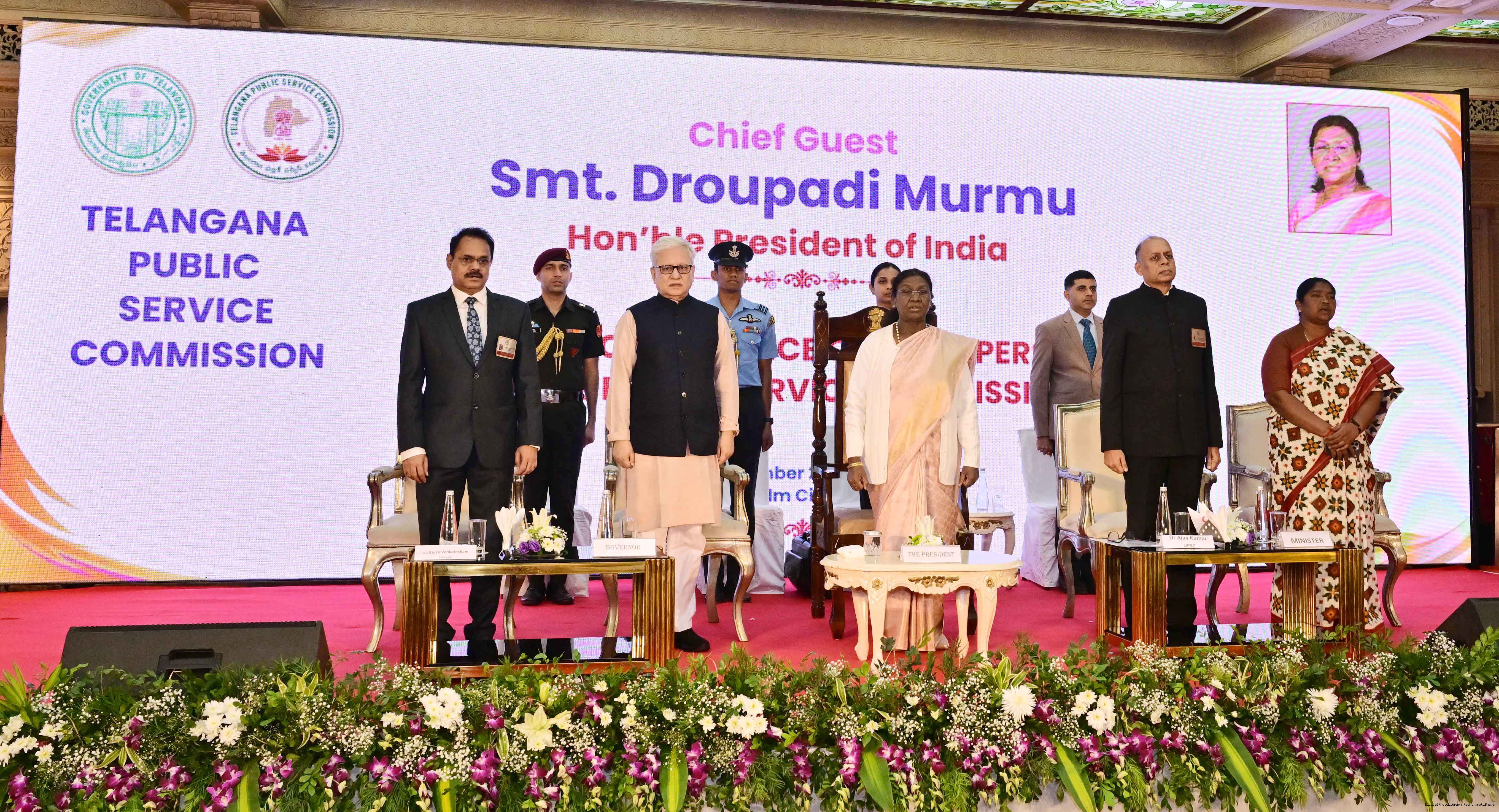 | Caption: | The President of India, Smt Droupadi Murmu, inaugurated the National Conference for the Chairpersons of Public Service Commissions, being organised by the Telangana Public Service Commission, at Hyderabad, Telangana on December 19, 2025. |