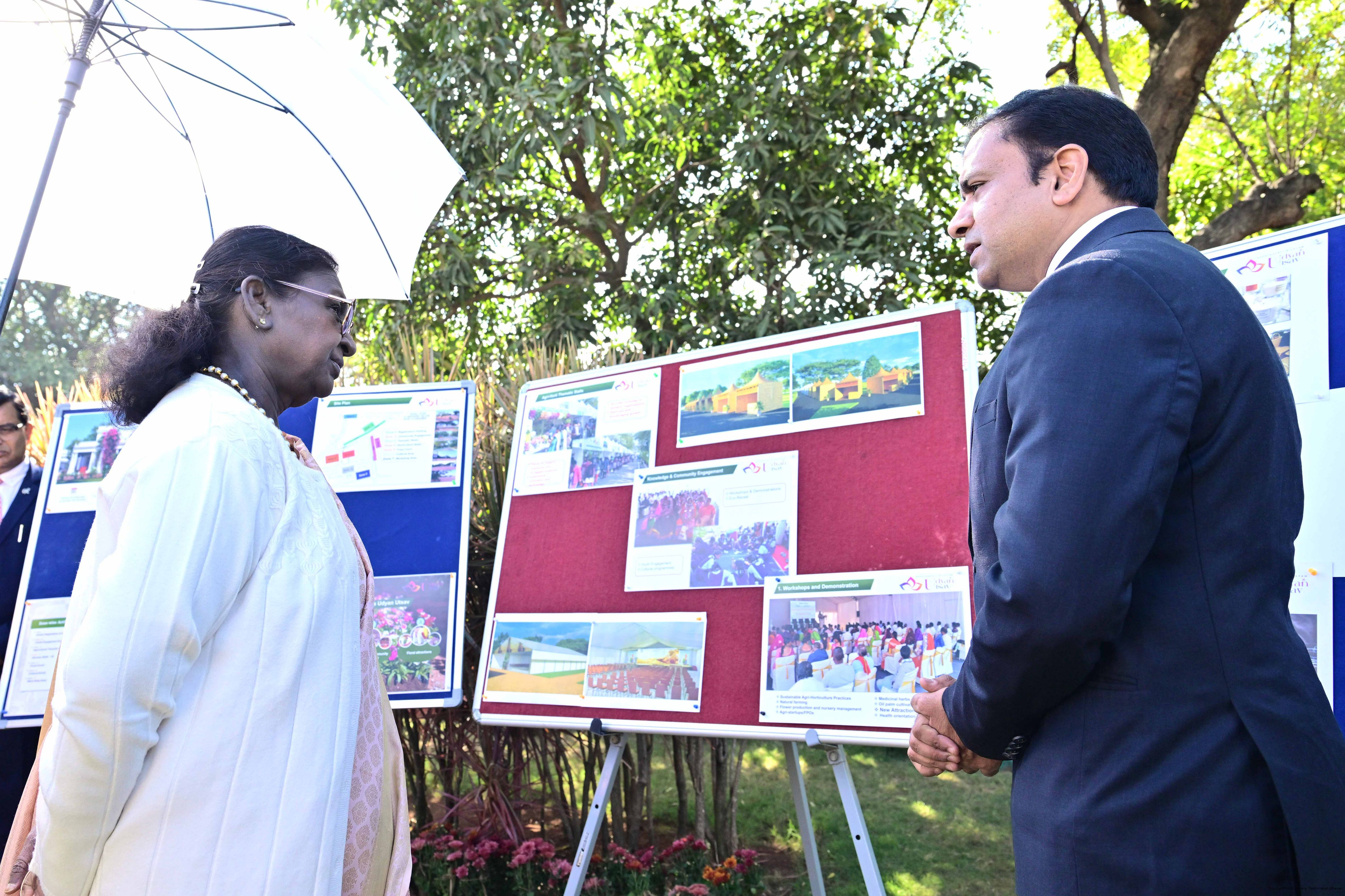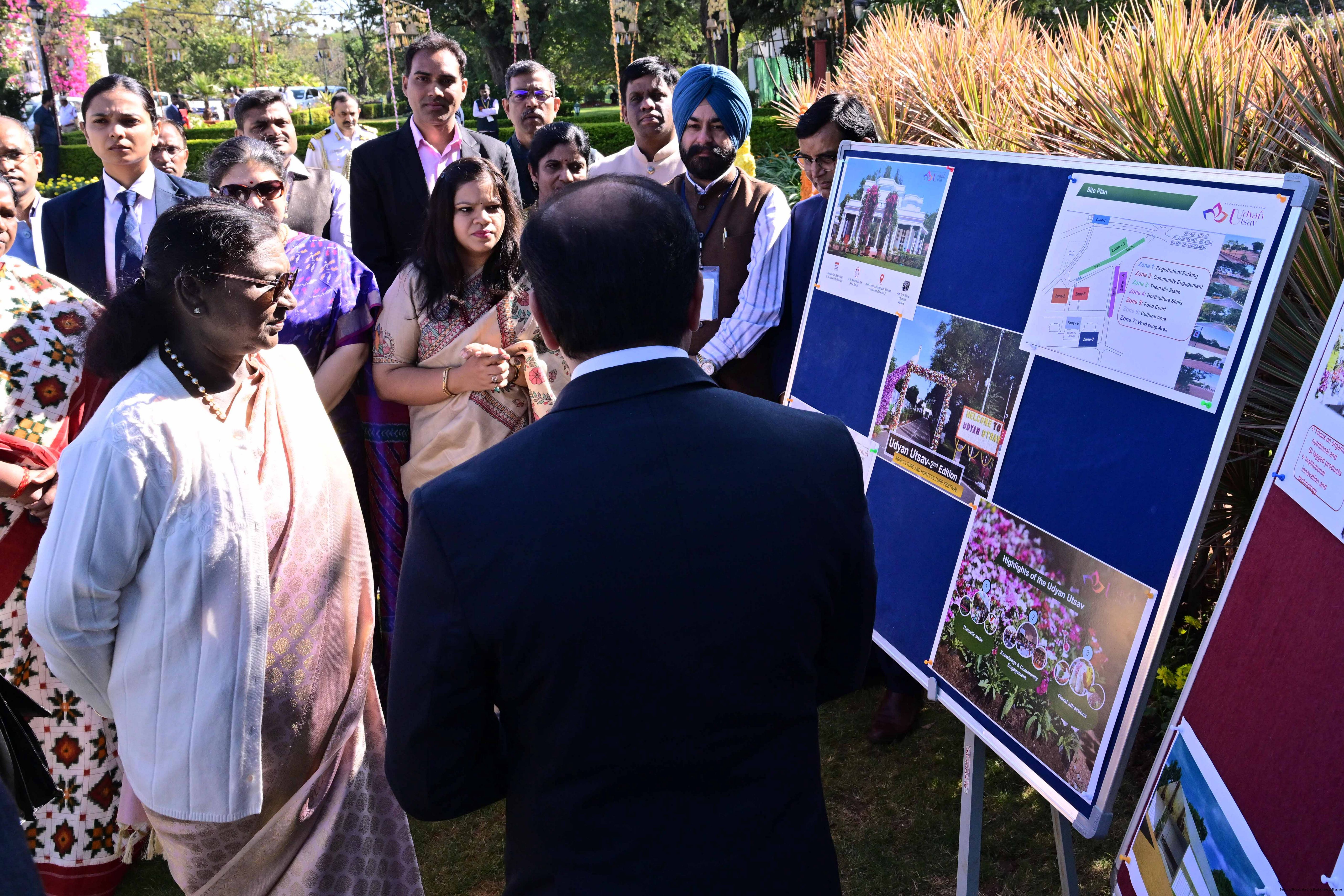 | Caption: | The President of India, Smt Droupadi Murmu, reviewed preparations for the opening of the second edition of Udyan Utsav at Rashtrapati Nilayam, Hyderabad on December 19, 2025. |