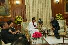 | Caption: | The President of the Democratic Socialist Republic of Sri Lanka, HE Mr Mahinda Rajapaksa and his wife Mrs Rajapaksa calling on the President of India, Dr A P J Abdul Kalam at the North Drawing Room of Rashtrapati Bhavan in New Delhi on Dec 28, 2005 |