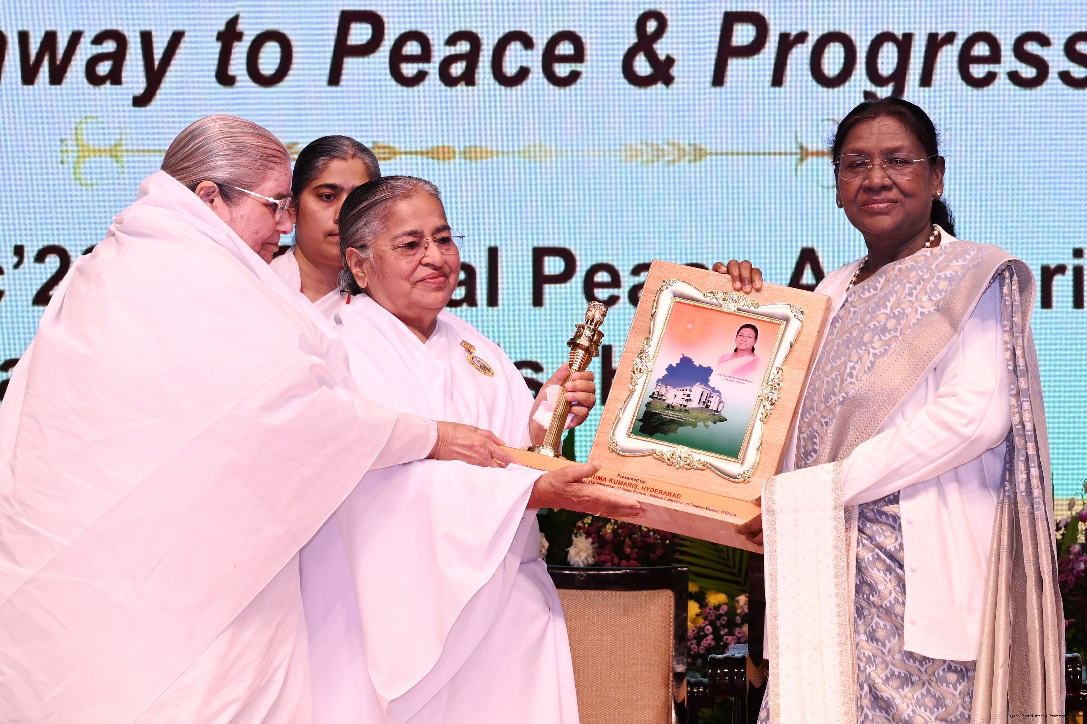 | Caption: | The President of India, Smt Droupadi Murmu, addressed the conference on ‘Timeless Wisdom of Bharat: Pathways of Peace and Progress’, being organised by Brahma Kumaris Shanti Sarovar to mark its 21st Anniversary at Hyderabad December 20, 2025. |