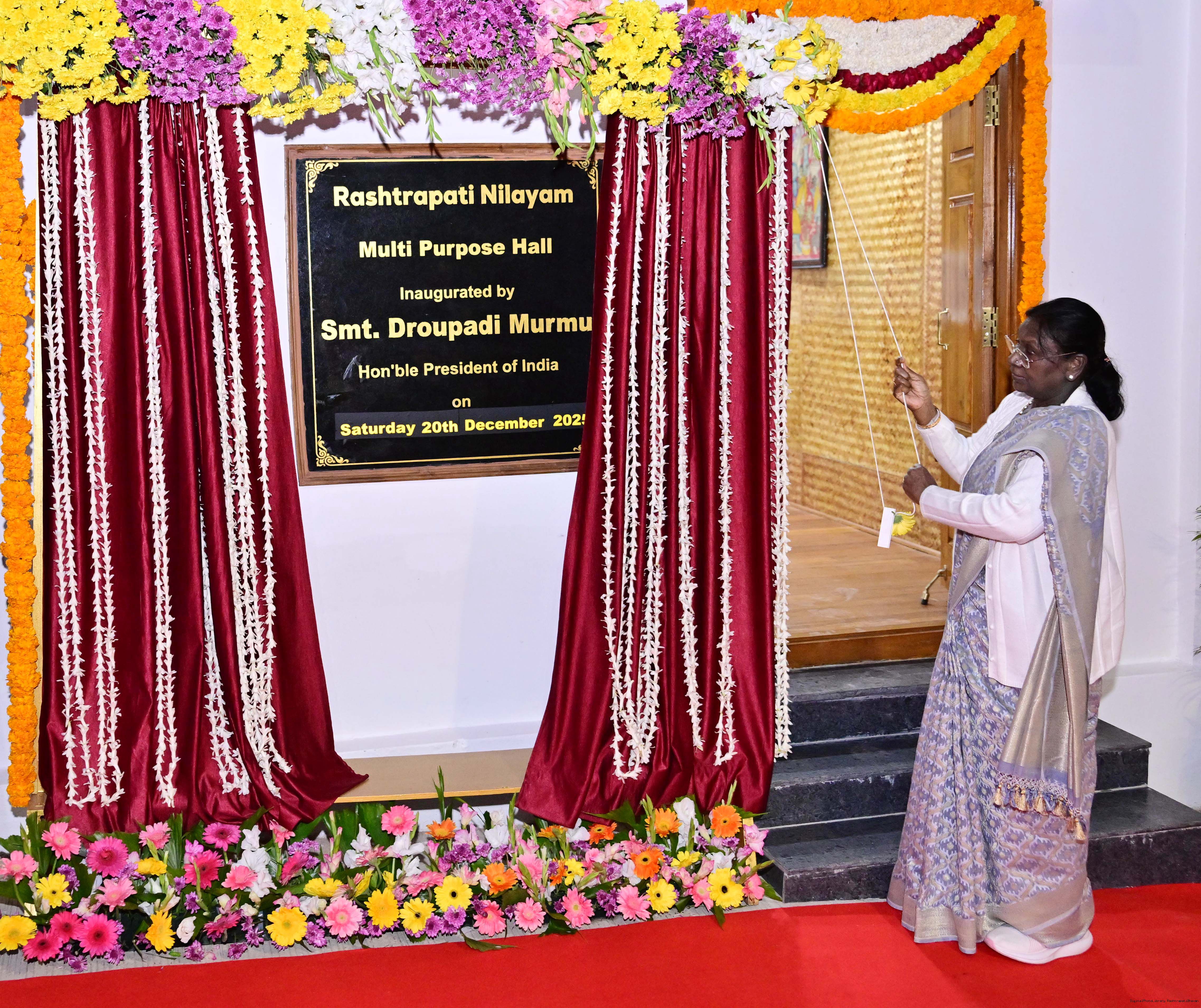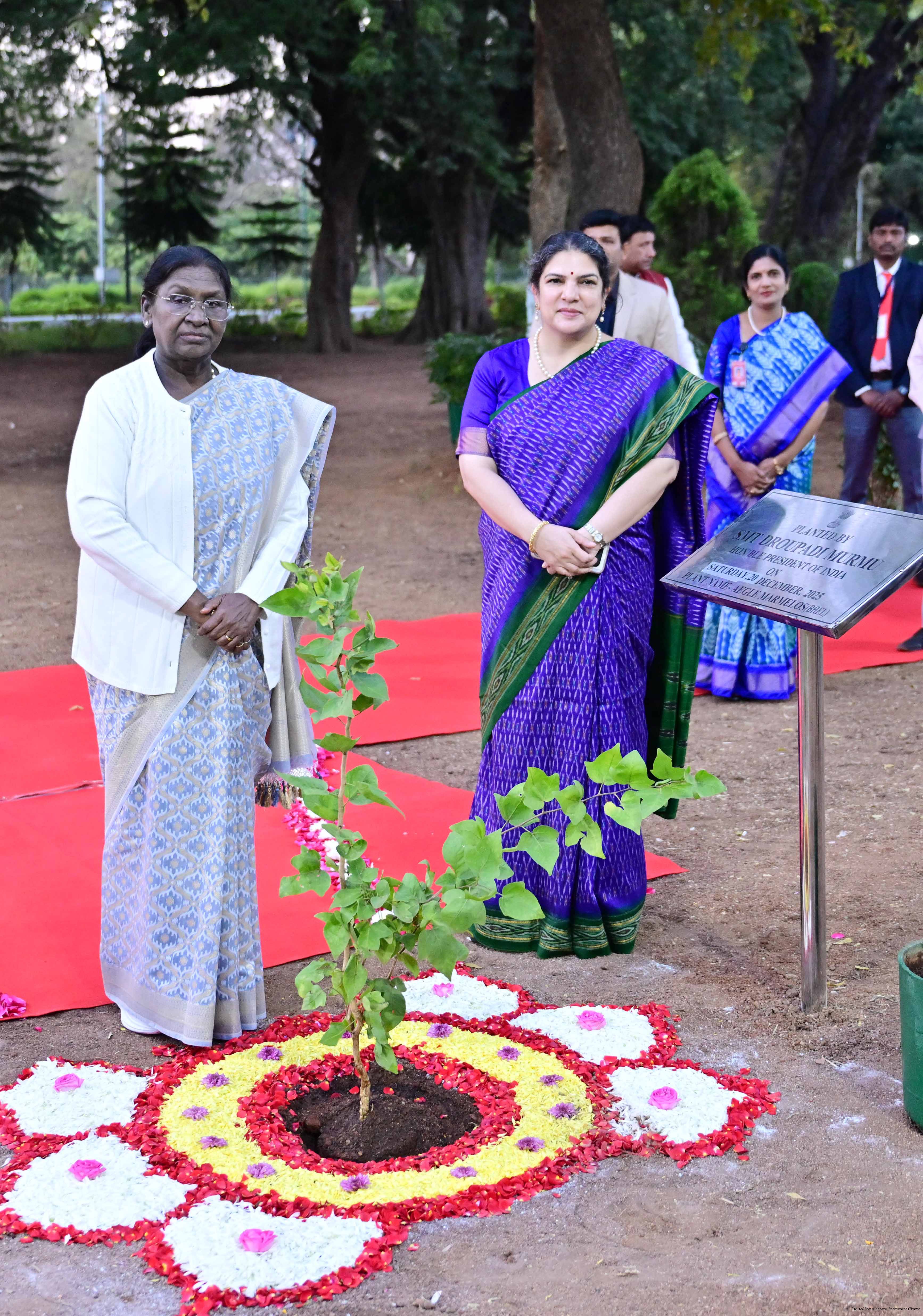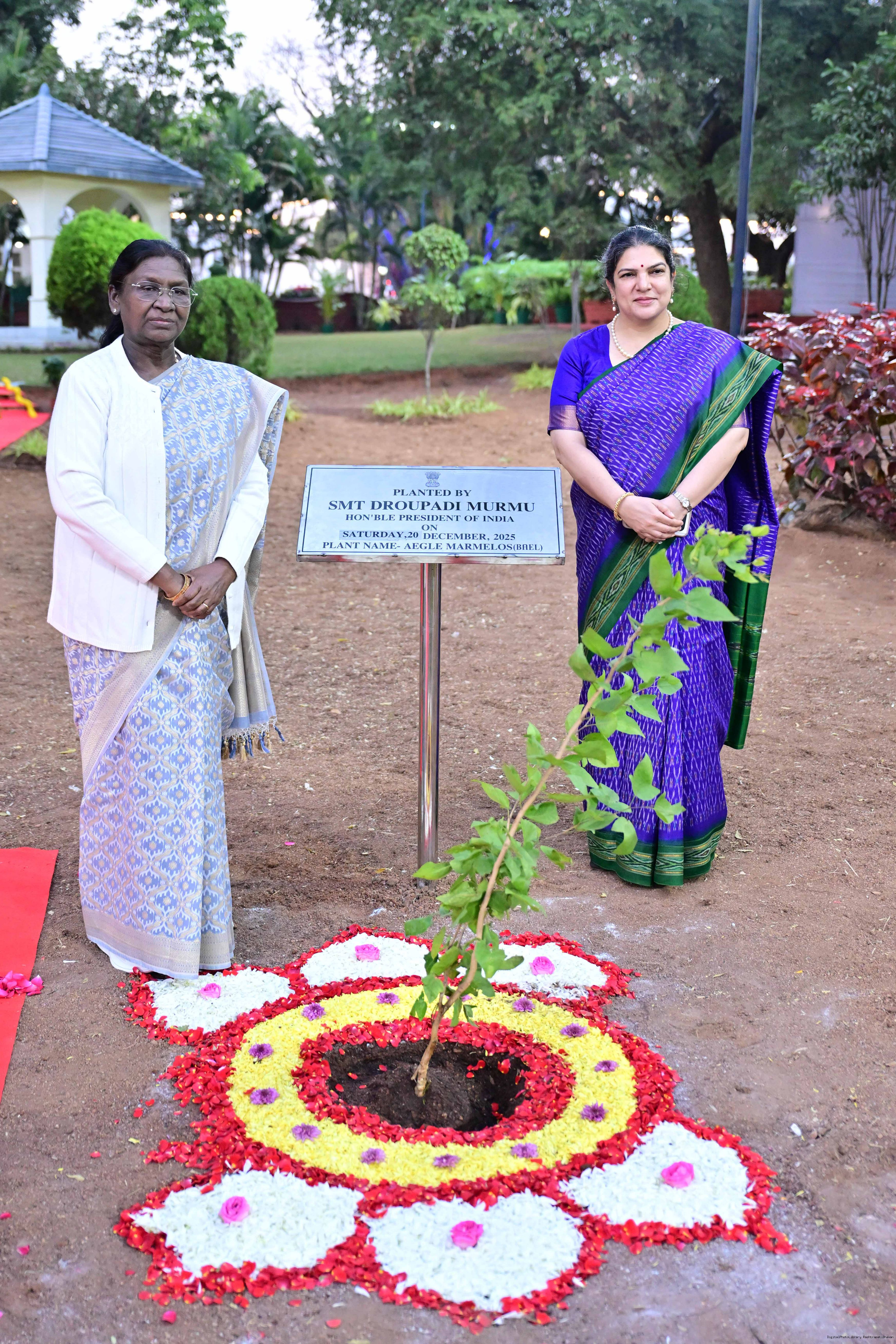 | Caption: | The President of India Smt Droupadi Murmu planting a Tree at Rashtrapati Nilayam, visited to Nikunj Rashtrapati Nilayam and inaugurated of Multi Purpose Hall, Rashtrapati Nilayam at Hyderabad December 20, 2025. |
