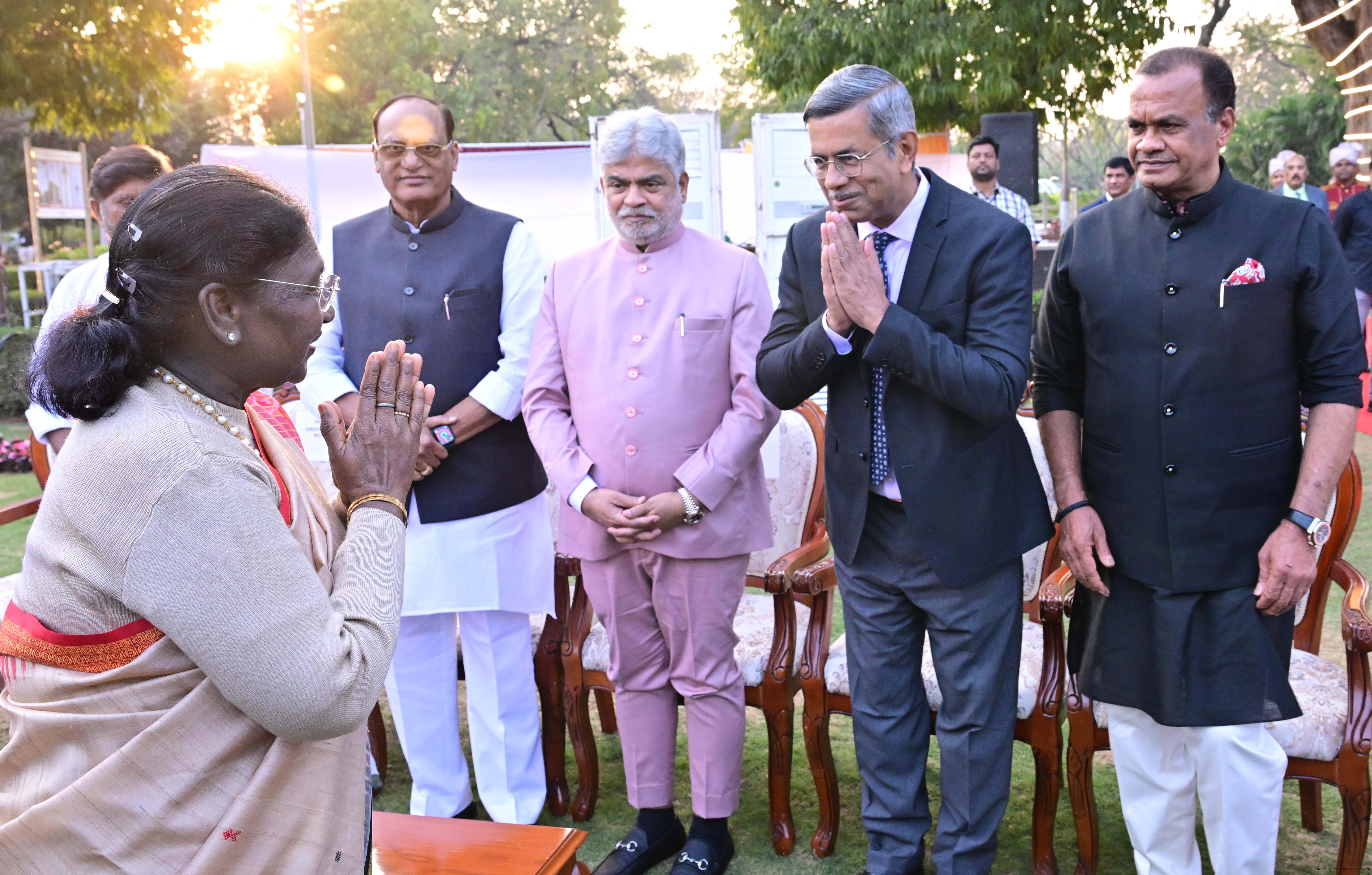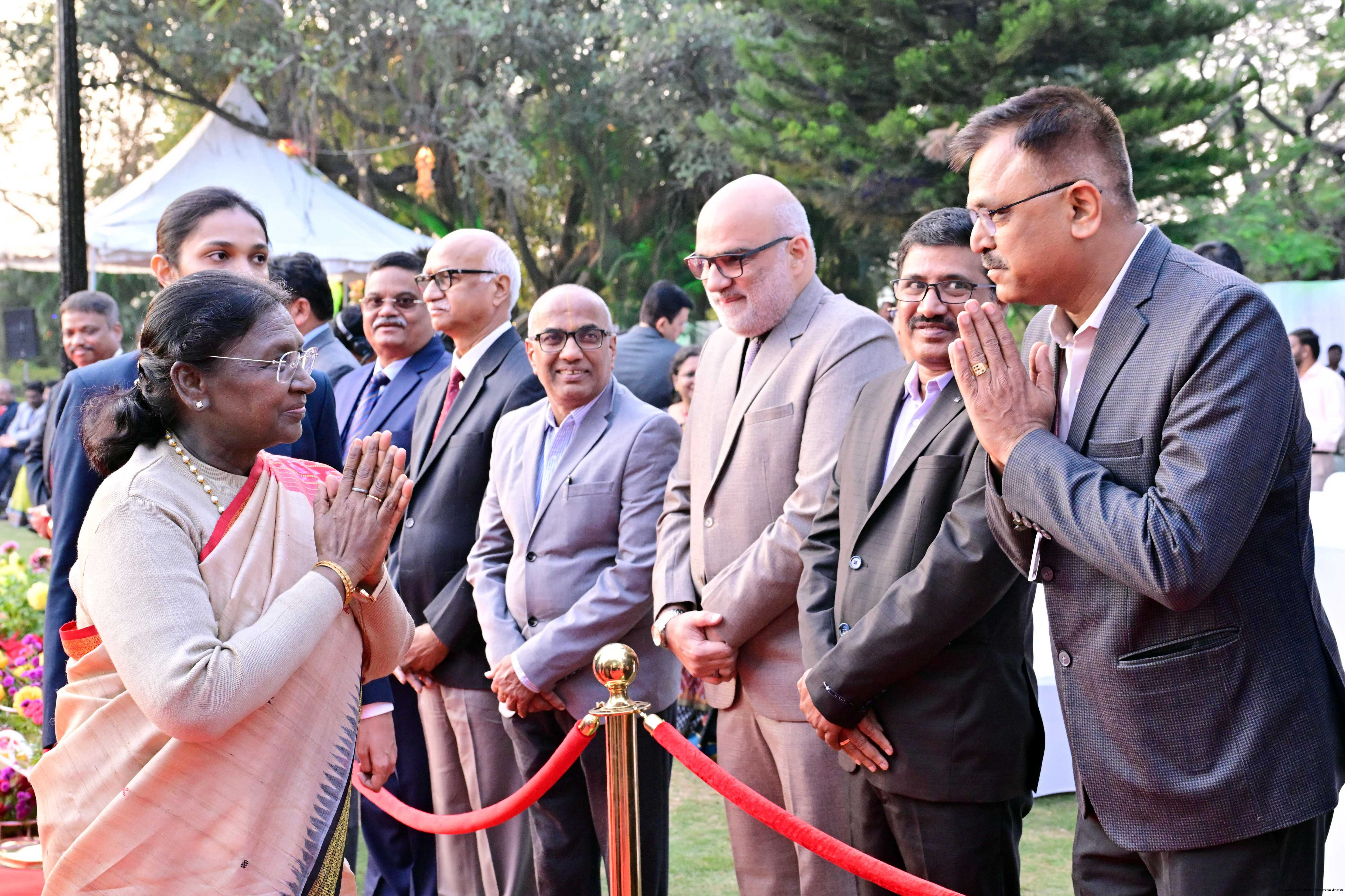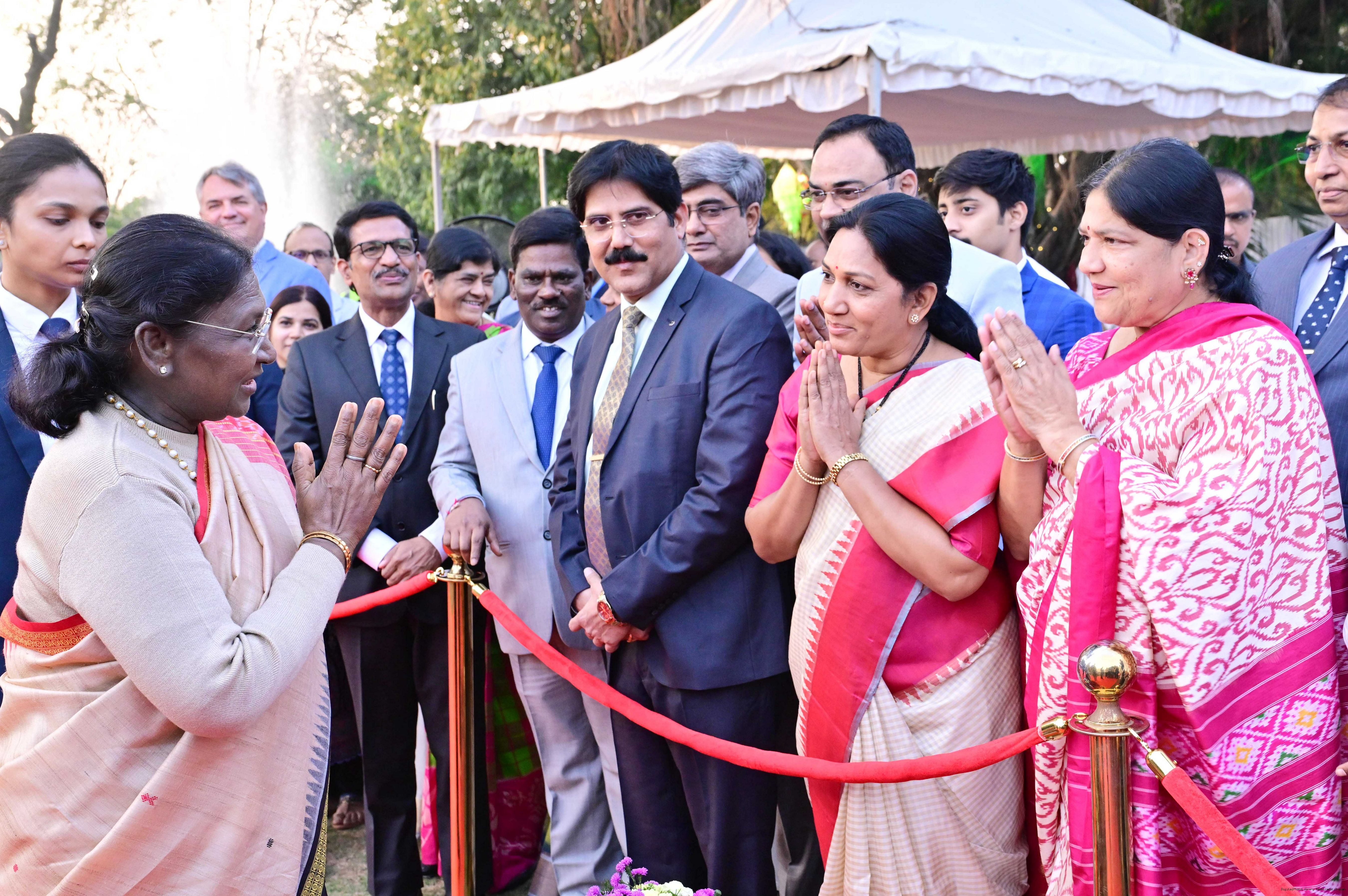 | Caption: | The President of India Smt Droupadi Murmu hosted an 'At Home' reception at Rashtrapati Nilayam, Secunderabad, Telangana 21, 2025. |