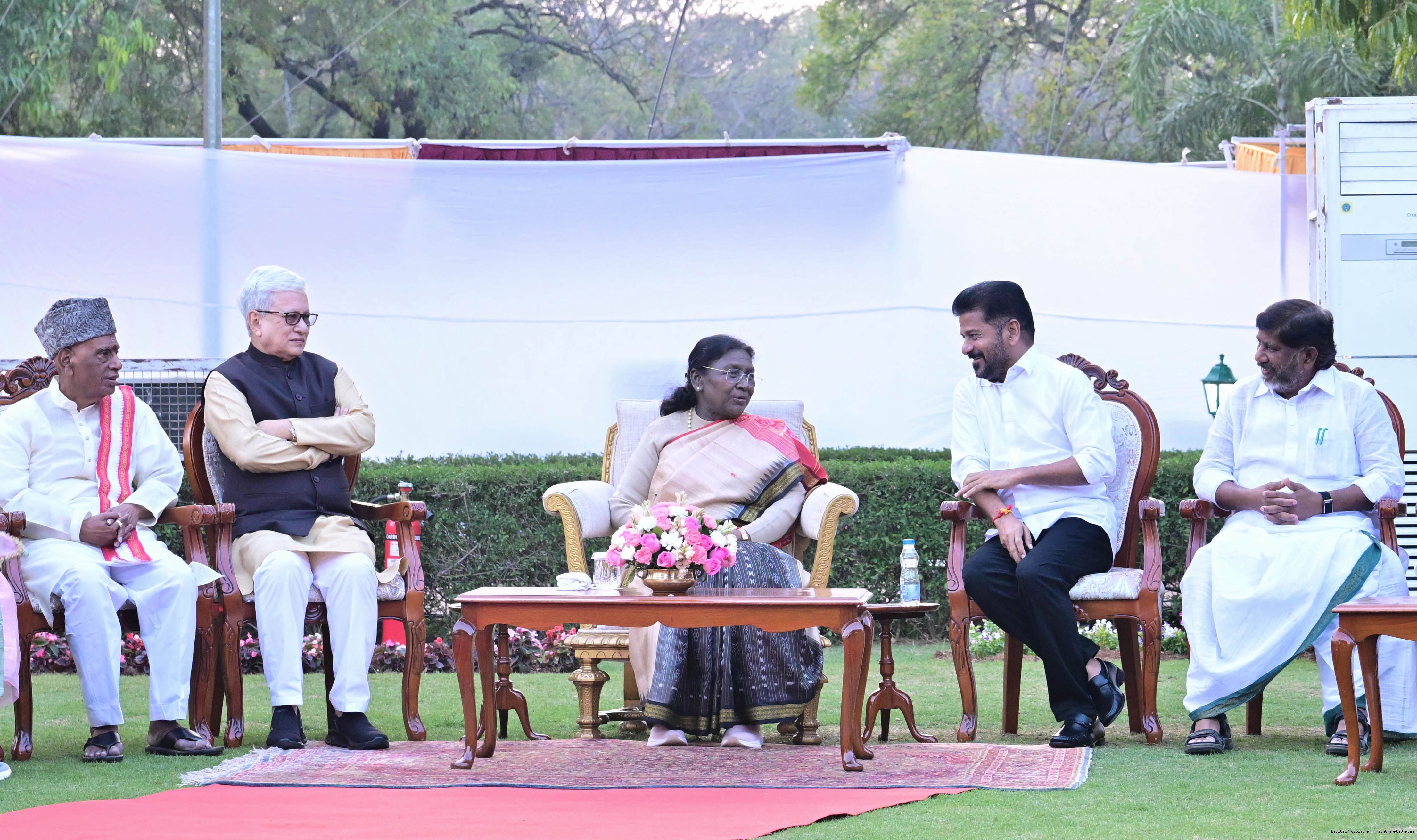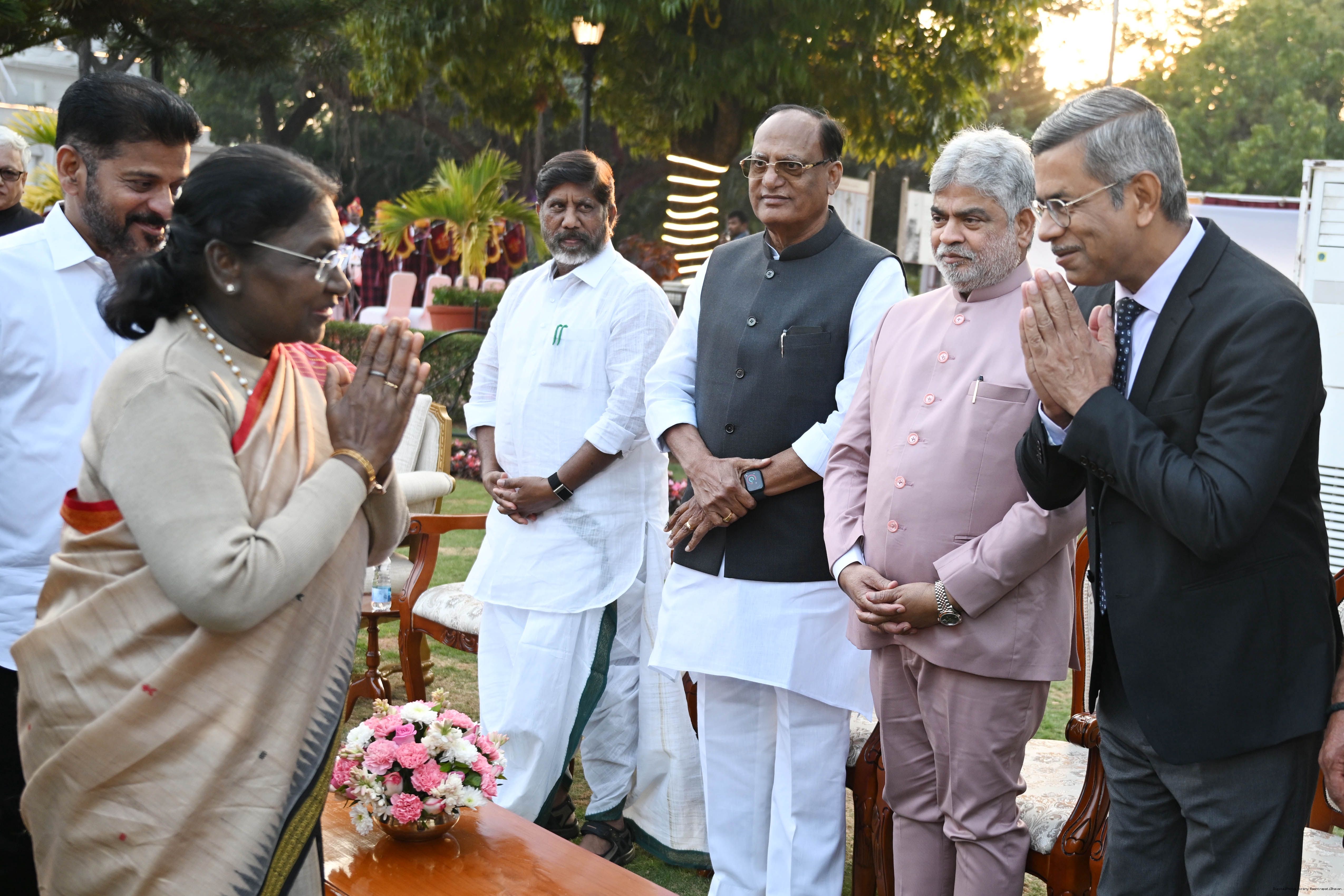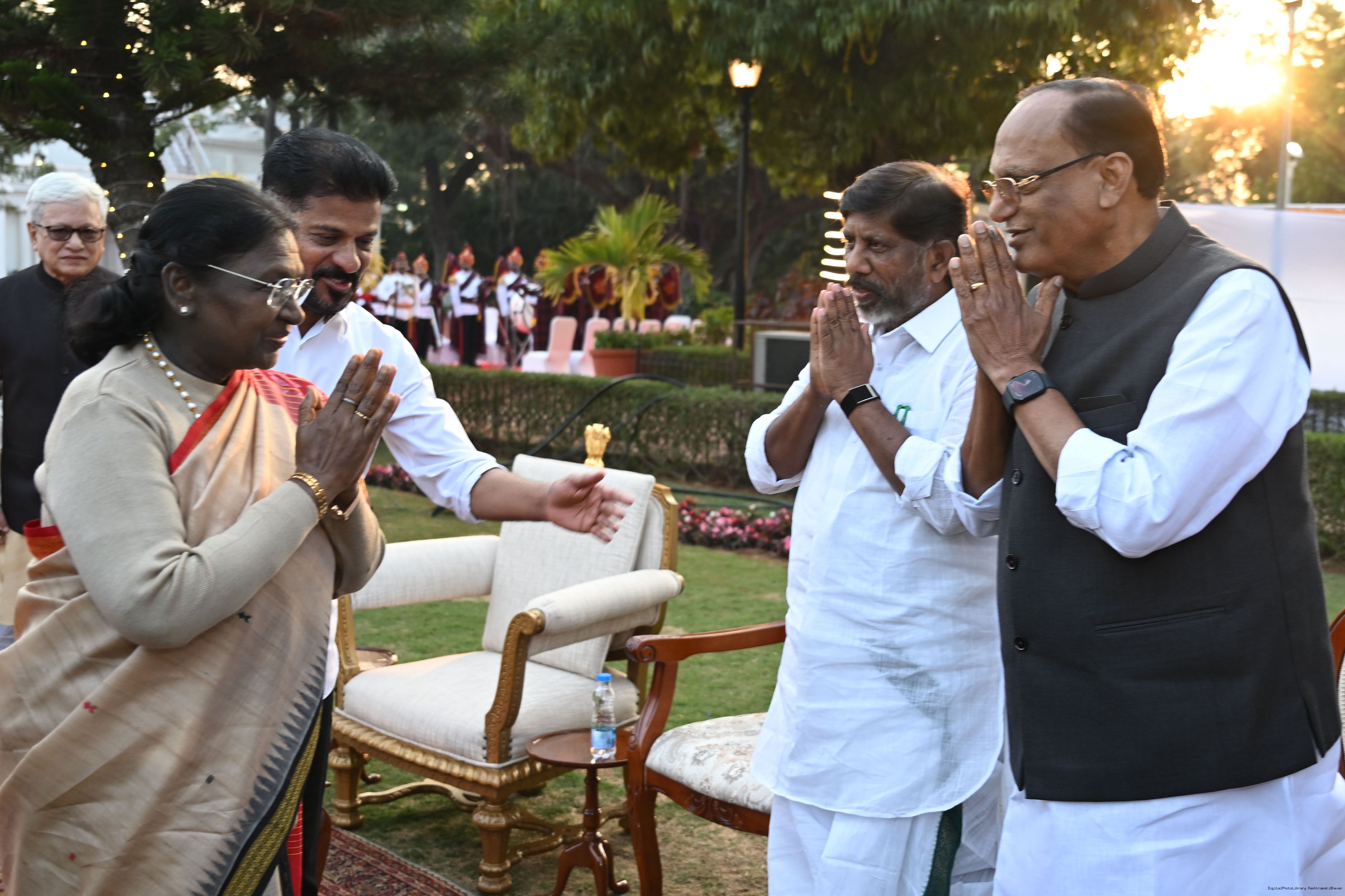 | Caption: | The President of India Smt Droupadi Murmu hosted an 'At Home' reception at Rashtrapati Nilayam, Secunderabad, Telangana 21, 2025. |