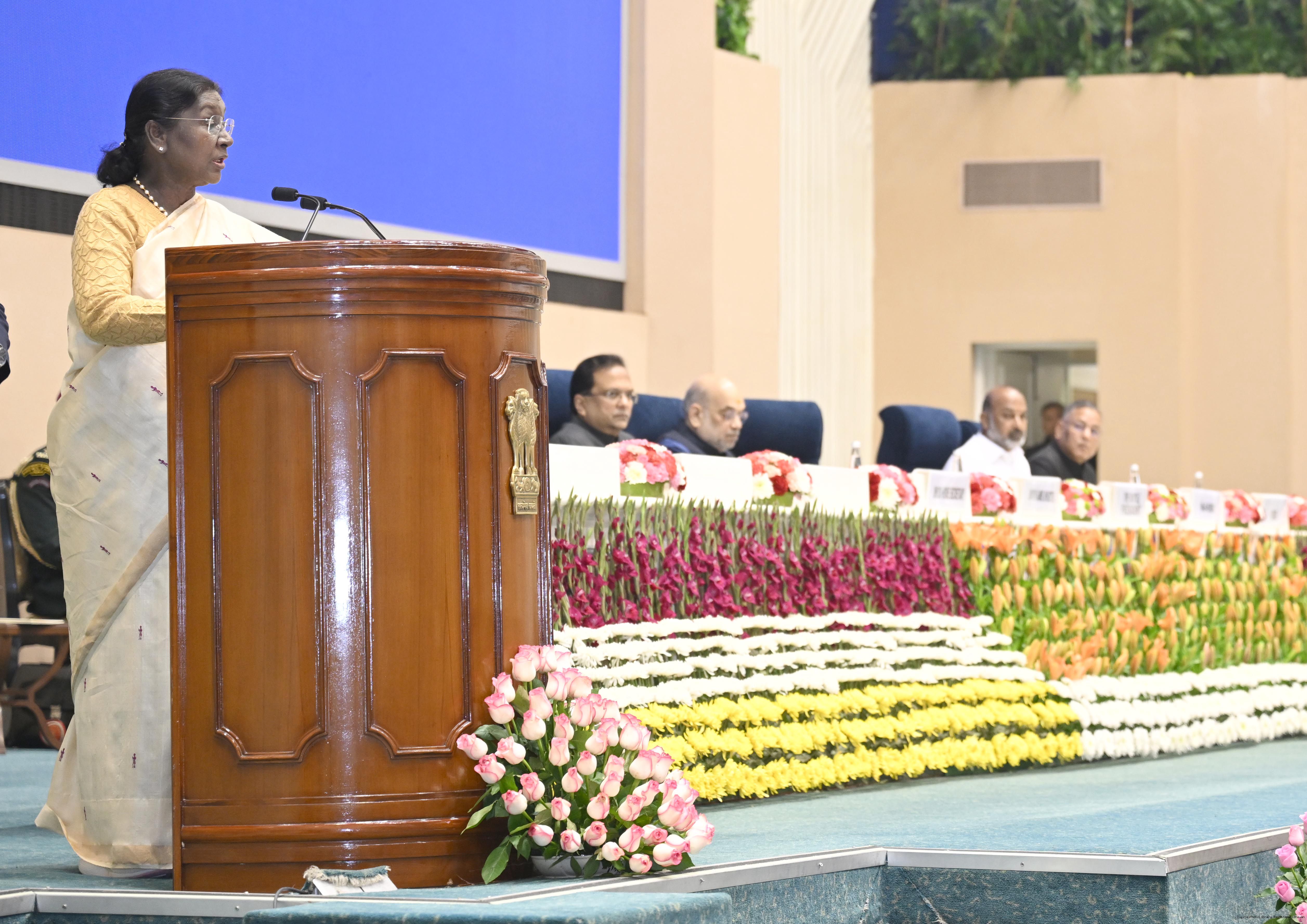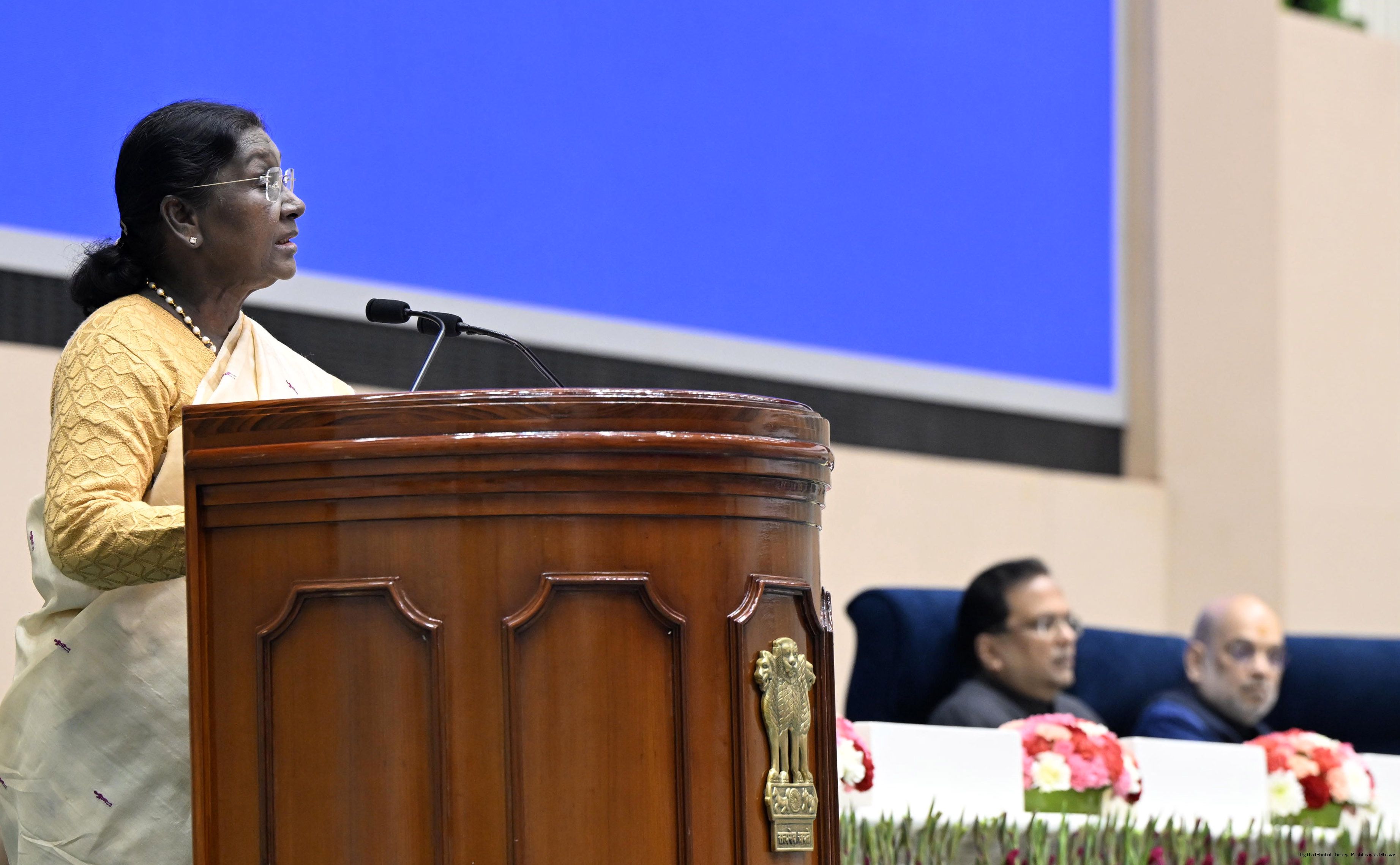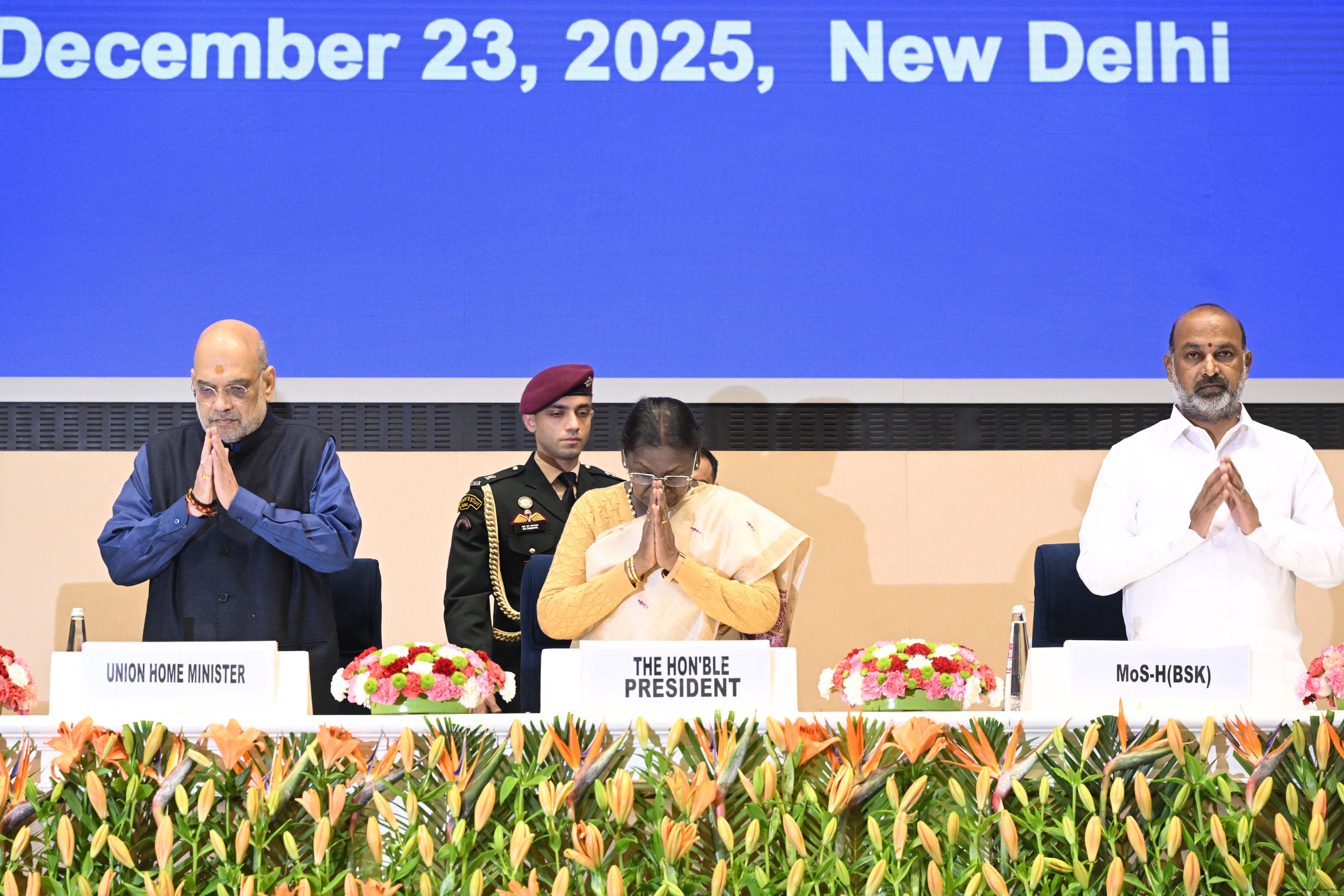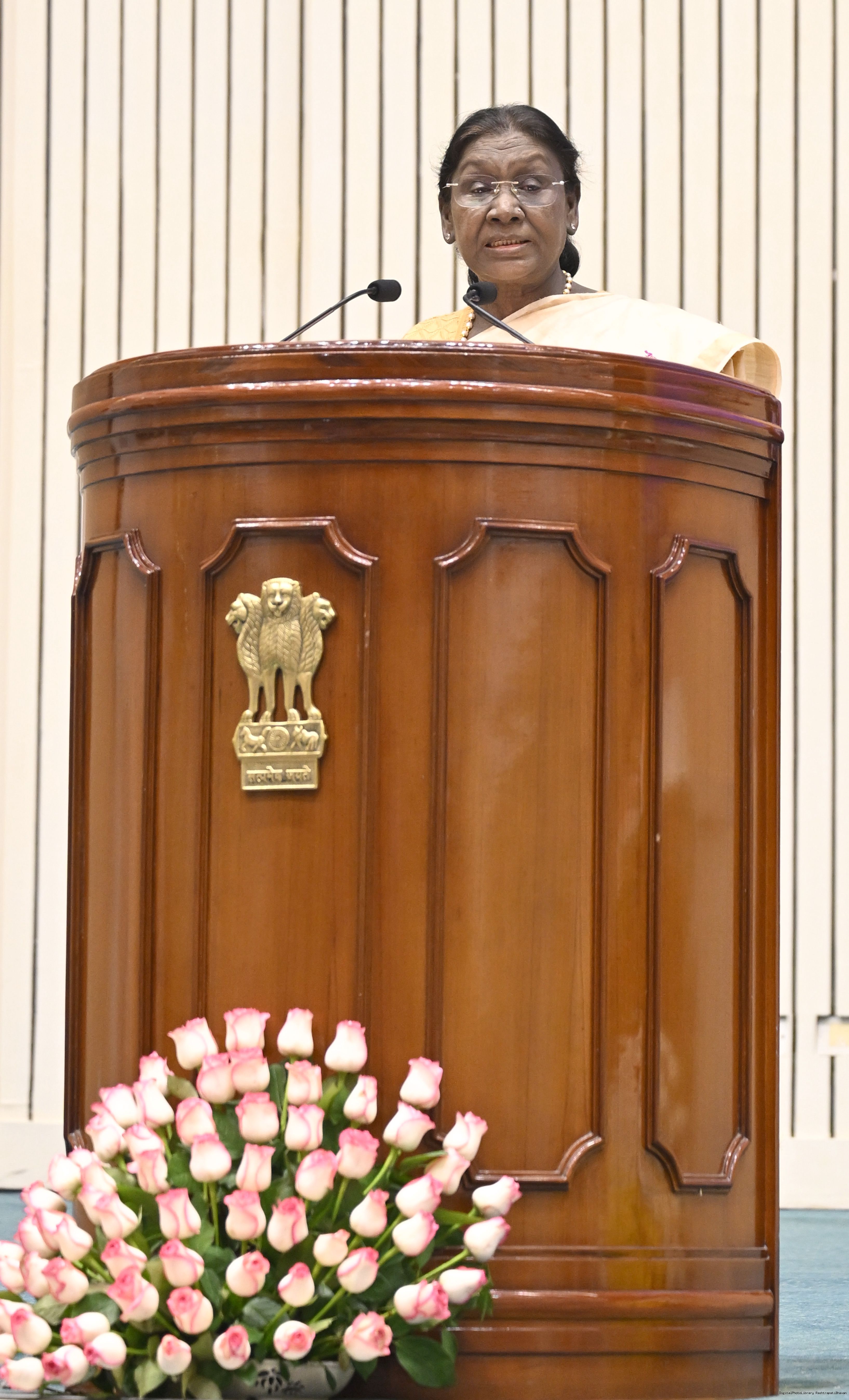 | Caption: | The President of India, Smt Droupadi Murmu, addressed the IB Centenary Endowment Lecture on the subject ‘People-Centric National Security: Community Participation in Building Viksit Bharat’ in New Delhi on December 23, 2025. |