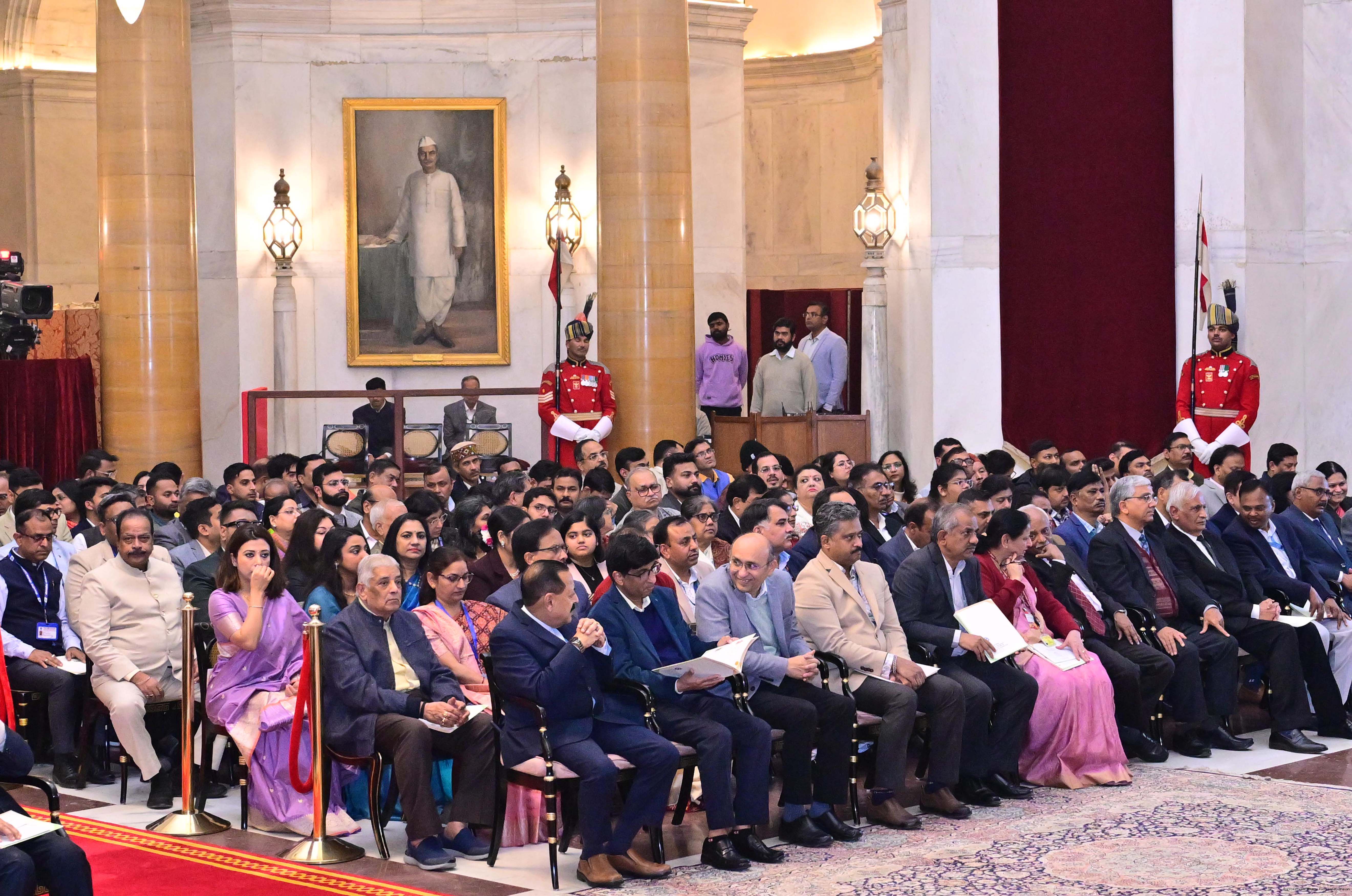 | Caption: | The President of India, Smt. Droupadi Murmu presented the Rashtriya Vigyan Puraskar- 2025 at an award ceremony held at Gantantra Mandap, Rashtrapati Bhavan on December 23, 2025. |