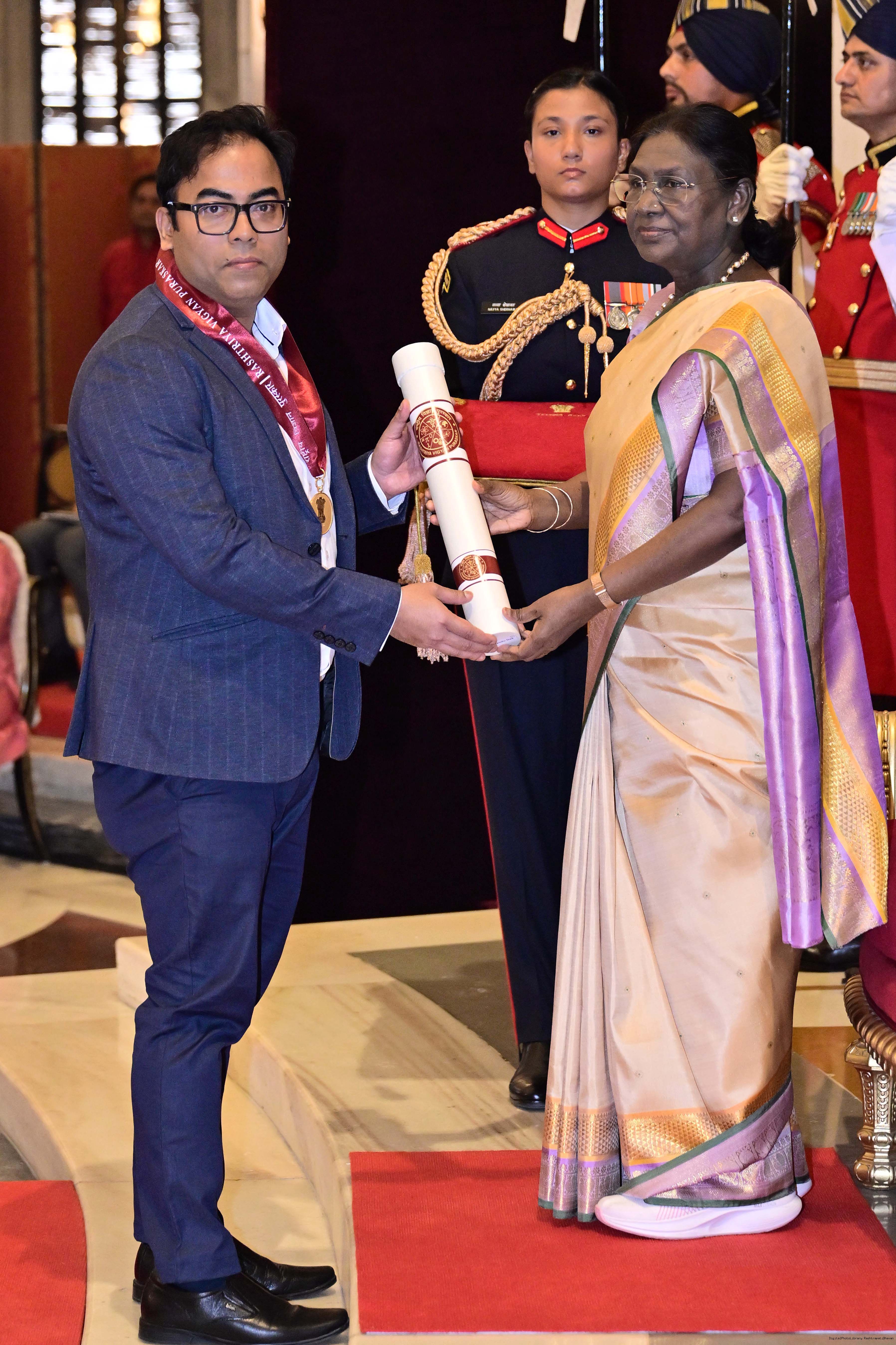 | Caption: | The President of India, Smt. Droupadi Murmu presented the Rashtriya Vigyan Puraskar- 2025 at an award ceremony held at Gantantra Mandap, Rashtrapati Bhavan on December 23, 2025. |