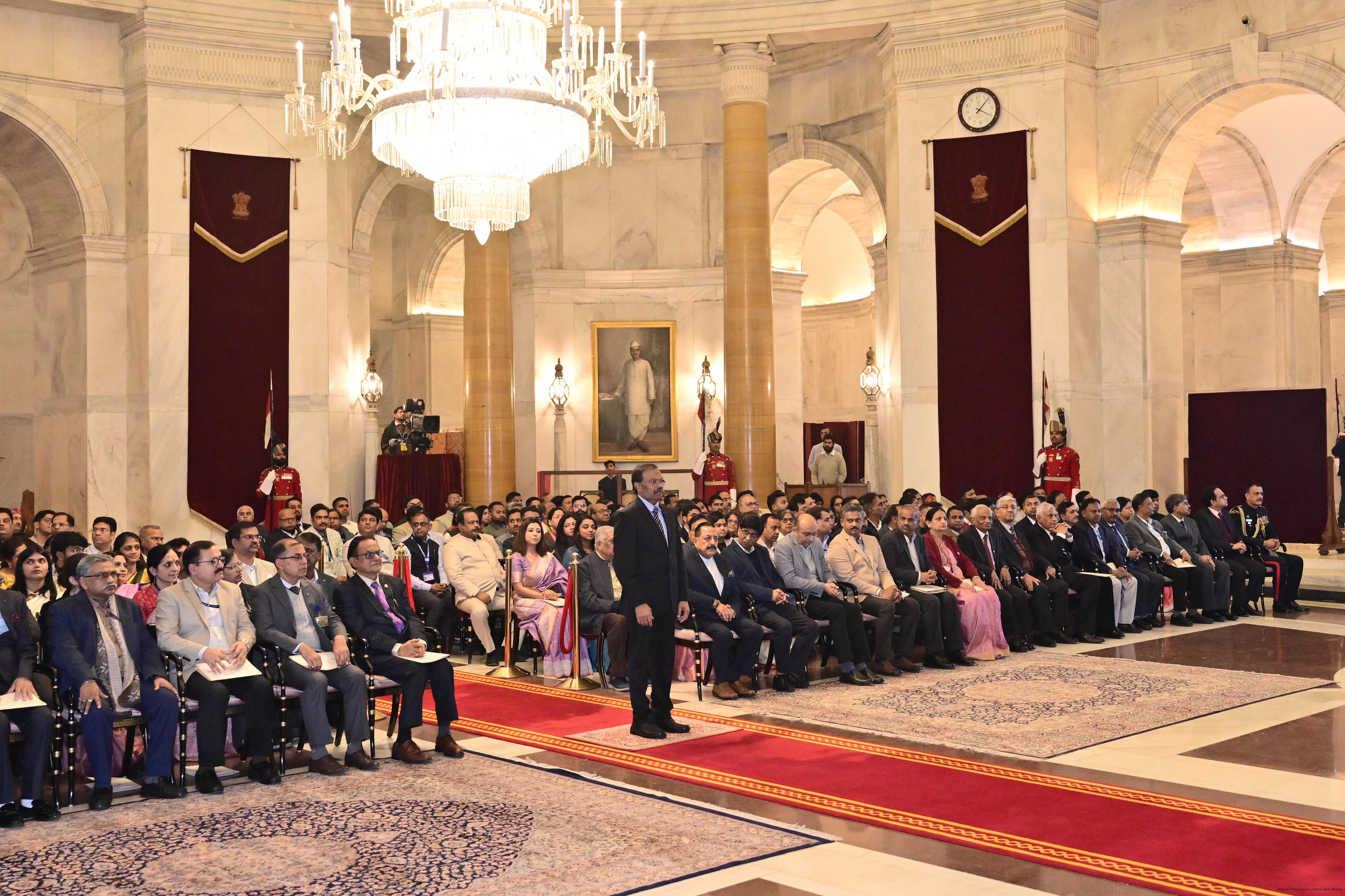 | Caption: | The President of India, Smt. Droupadi Murmu presented the Rashtriya Vigyan Puraskar- 2025 at an award ceremony held at Gantantra Mandap, Rashtrapati Bhavan on December 23, 2025. |