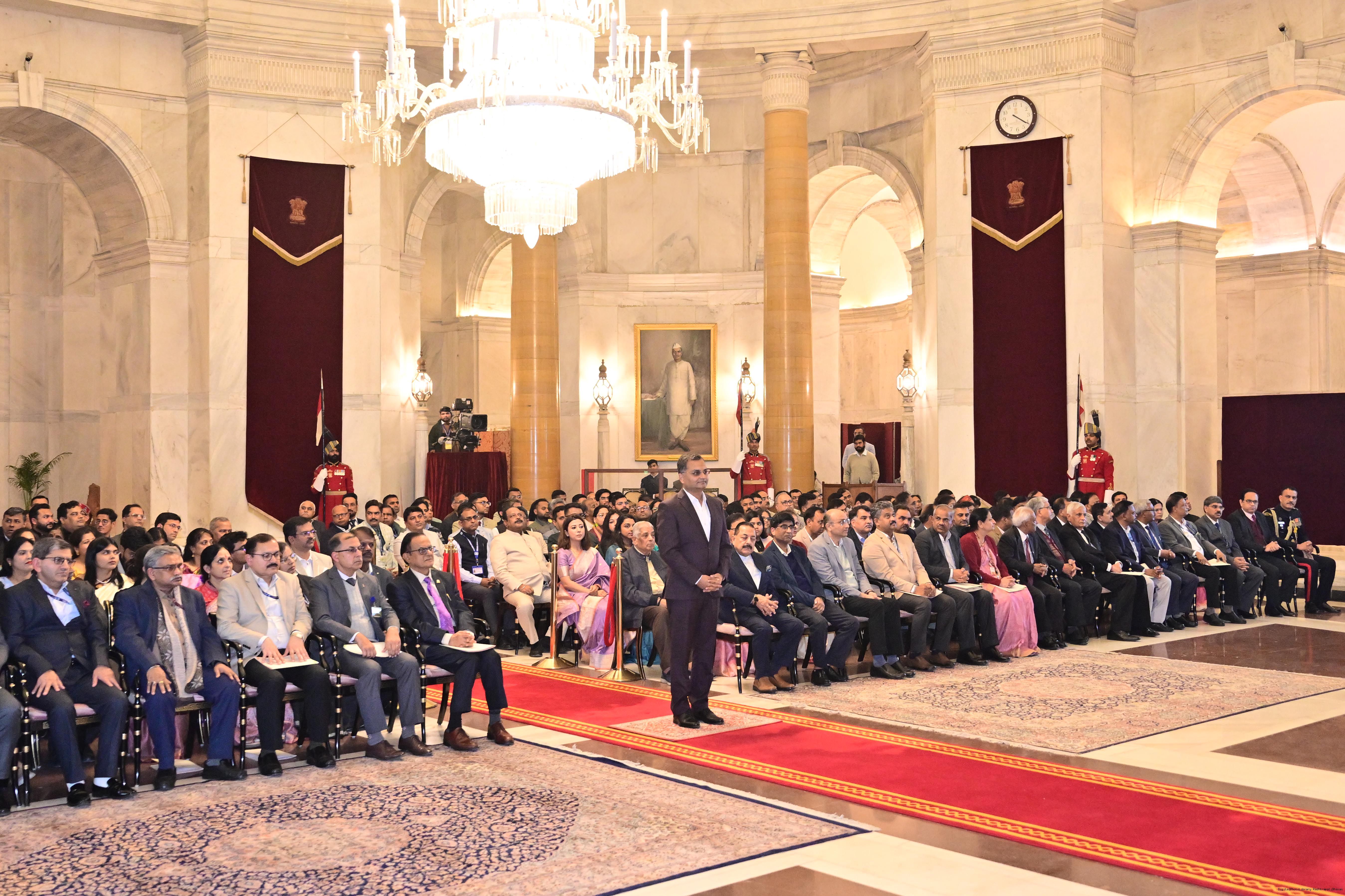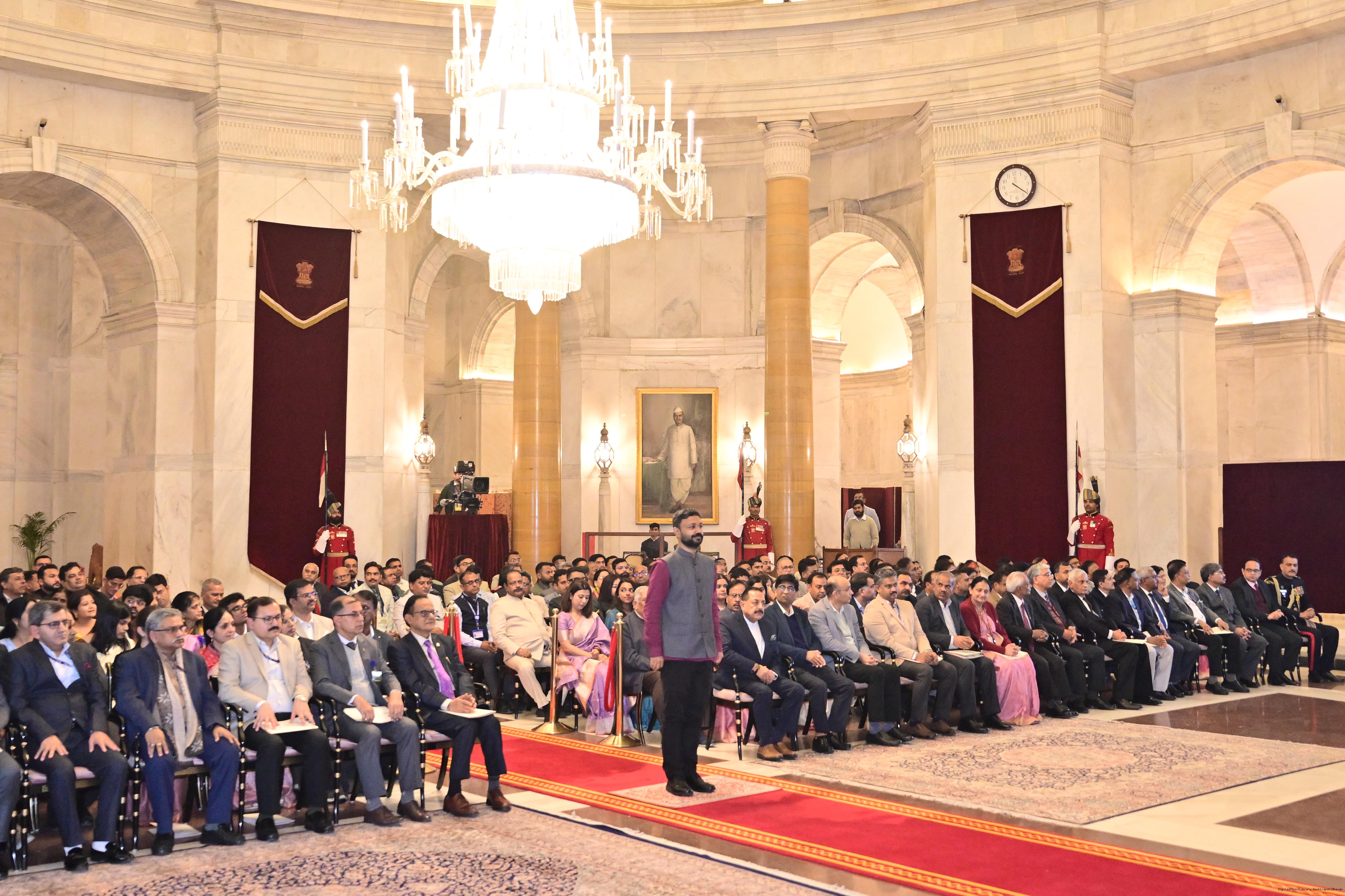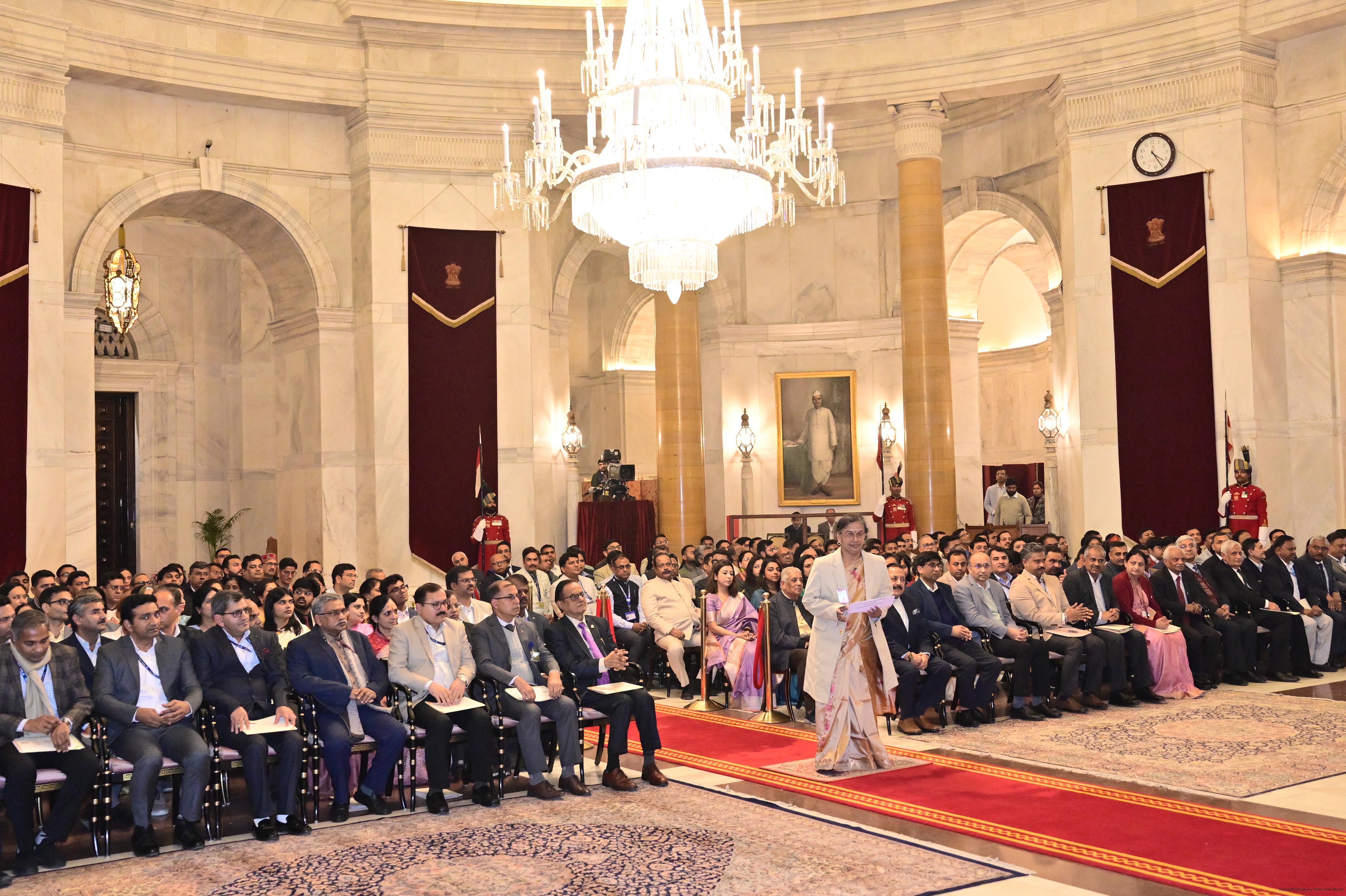 | Caption: | The President of India, Smt. Droupadi Murmu presented the Rashtriya Vigyan Puraskar- 2025 at an award ceremony held at Gantantra Mandap, Rashtrapati Bhavan on December 23, 2025. |