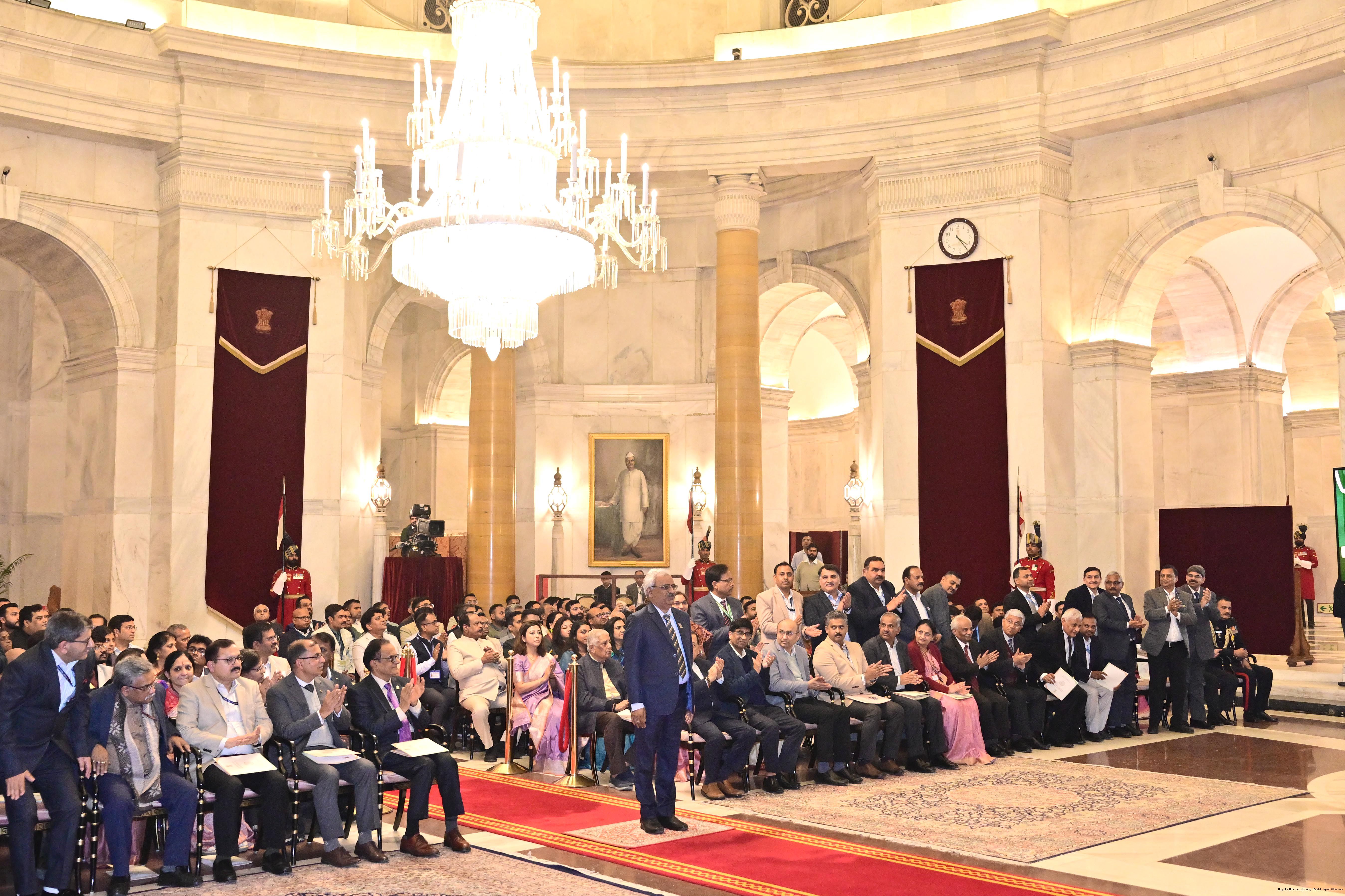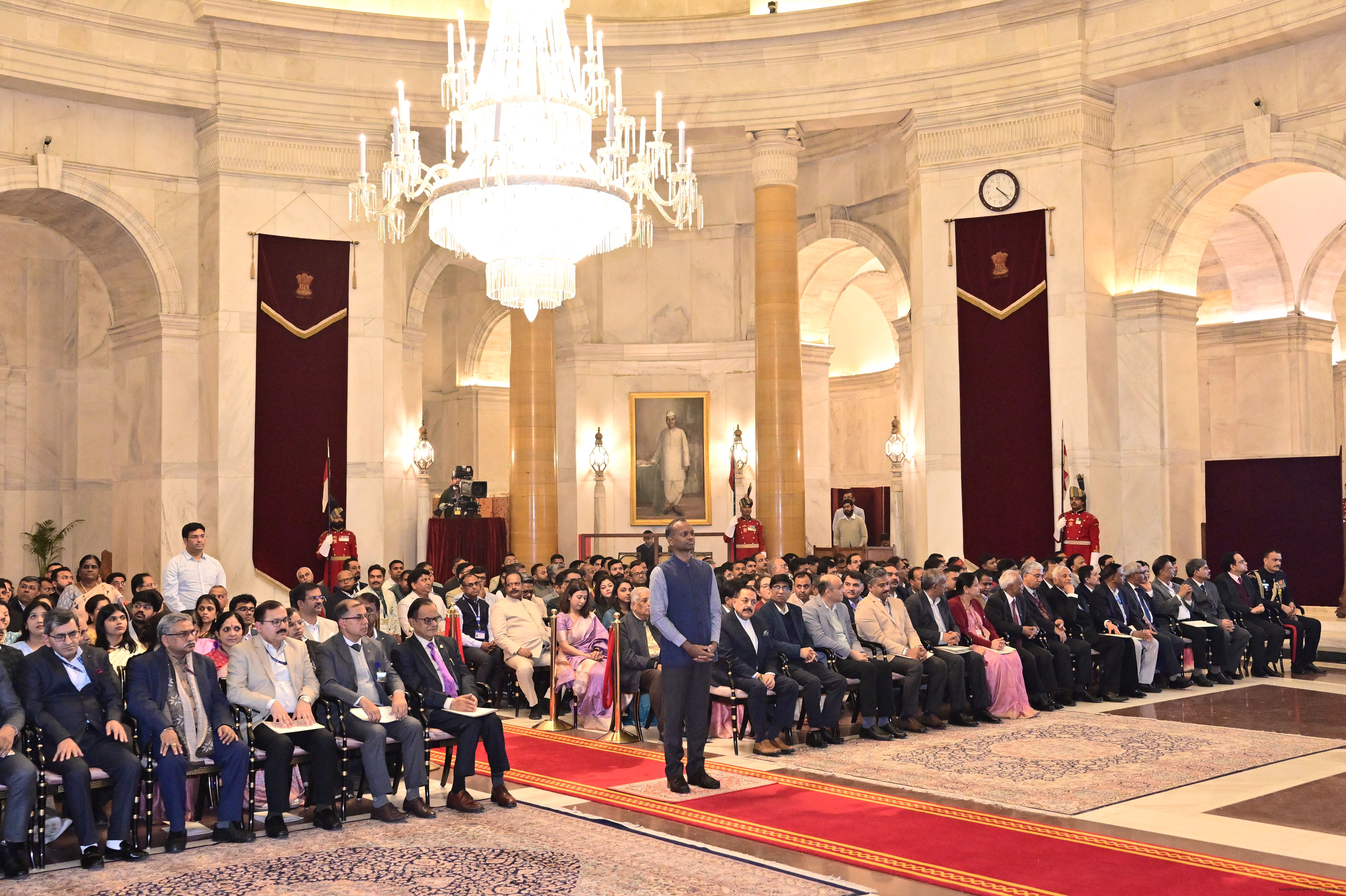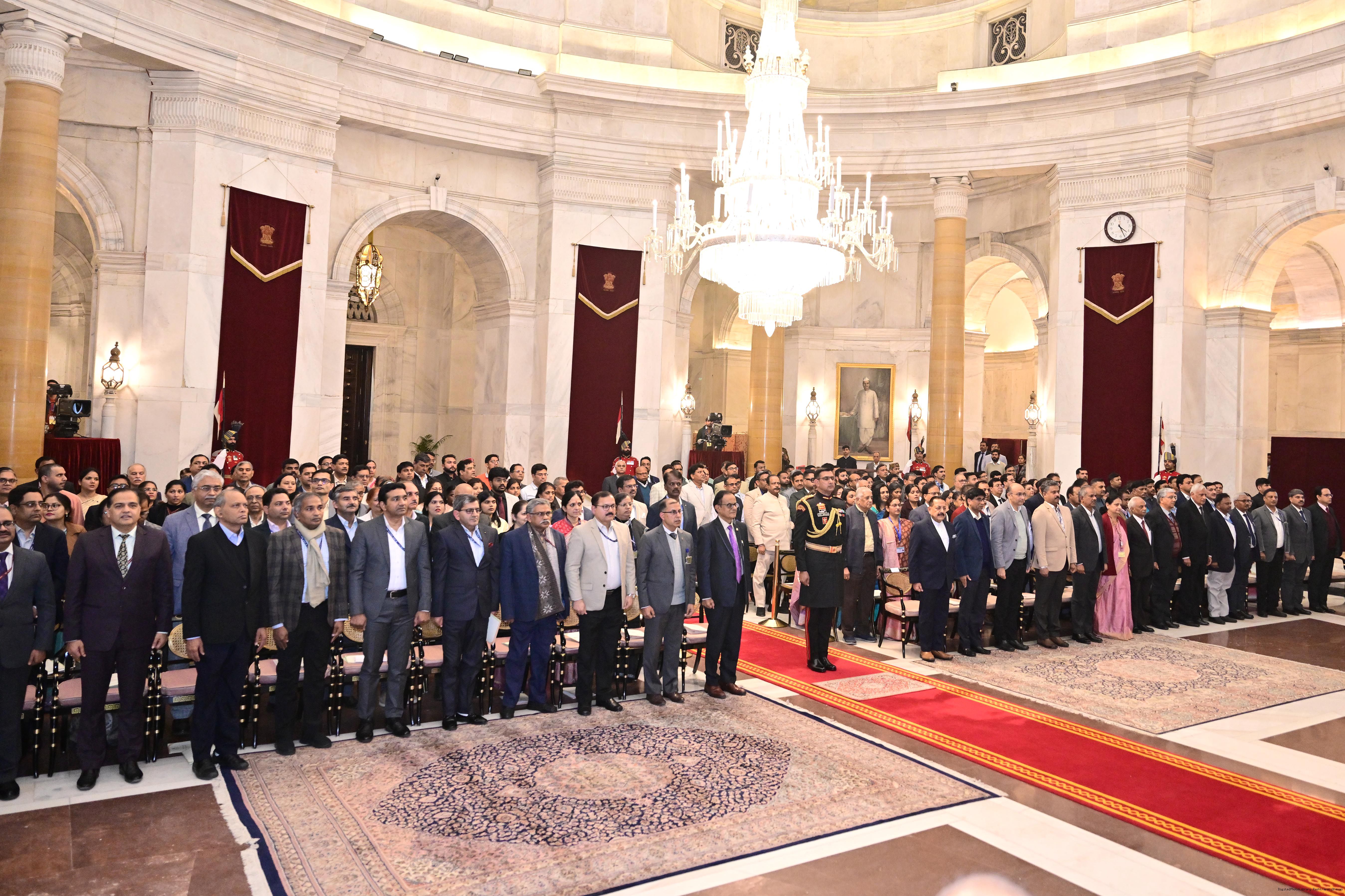 | Caption: | The President of India, Smt. Droupadi Murmu presented the Rashtriya Vigyan Puraskar- 2025 at an award ceremony held at Gantantra Mandap, Rashtrapati Bhavan on December 23, 2025. |