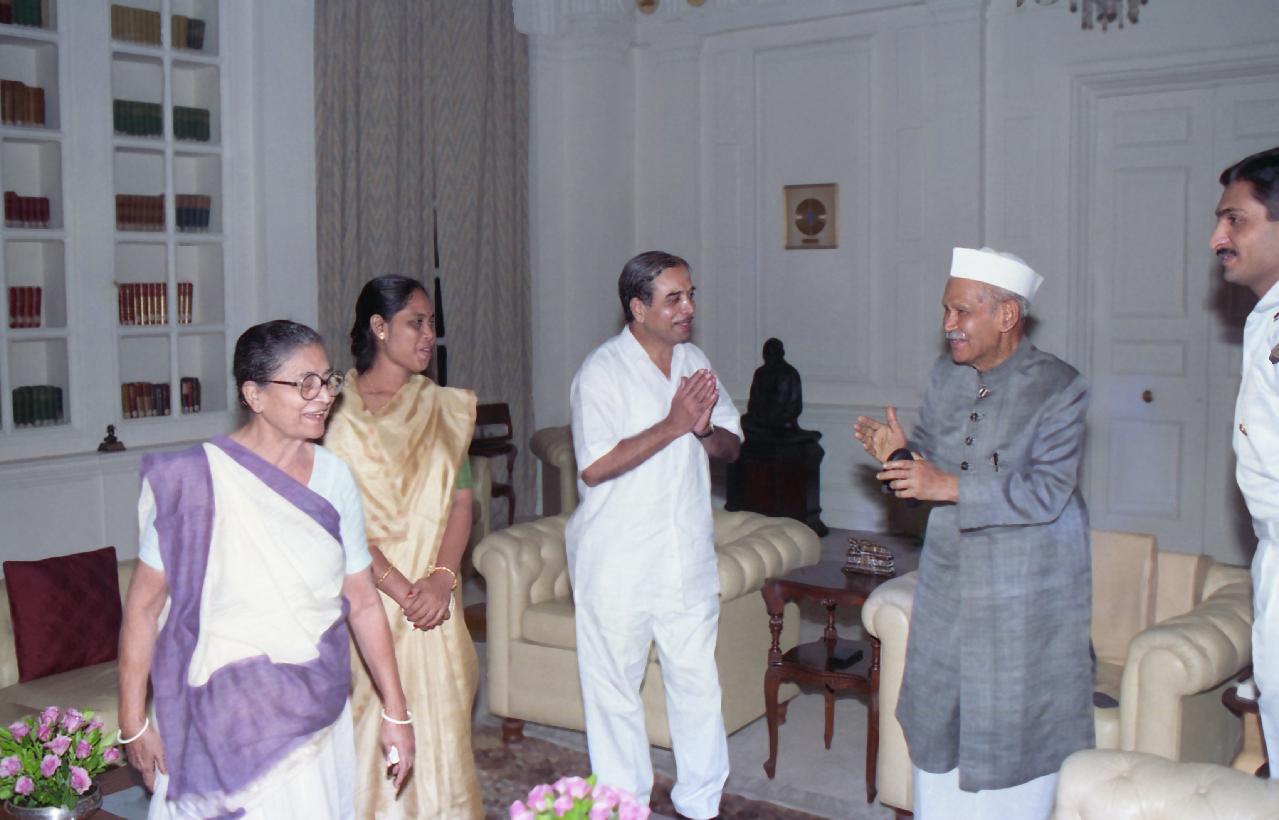 | Caption: | The President of India, Dr. Shankar Dayal Sharma meeting with Smt. Abha ben with others at Rashtrapati Bhavan in New Delhi on October 03, 1994. |