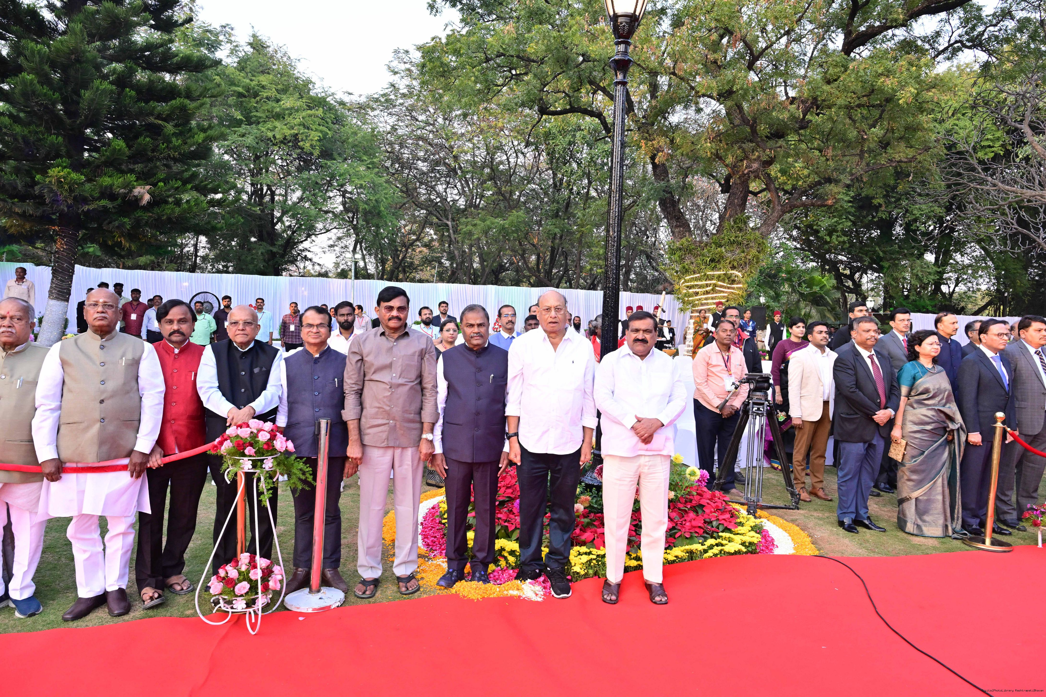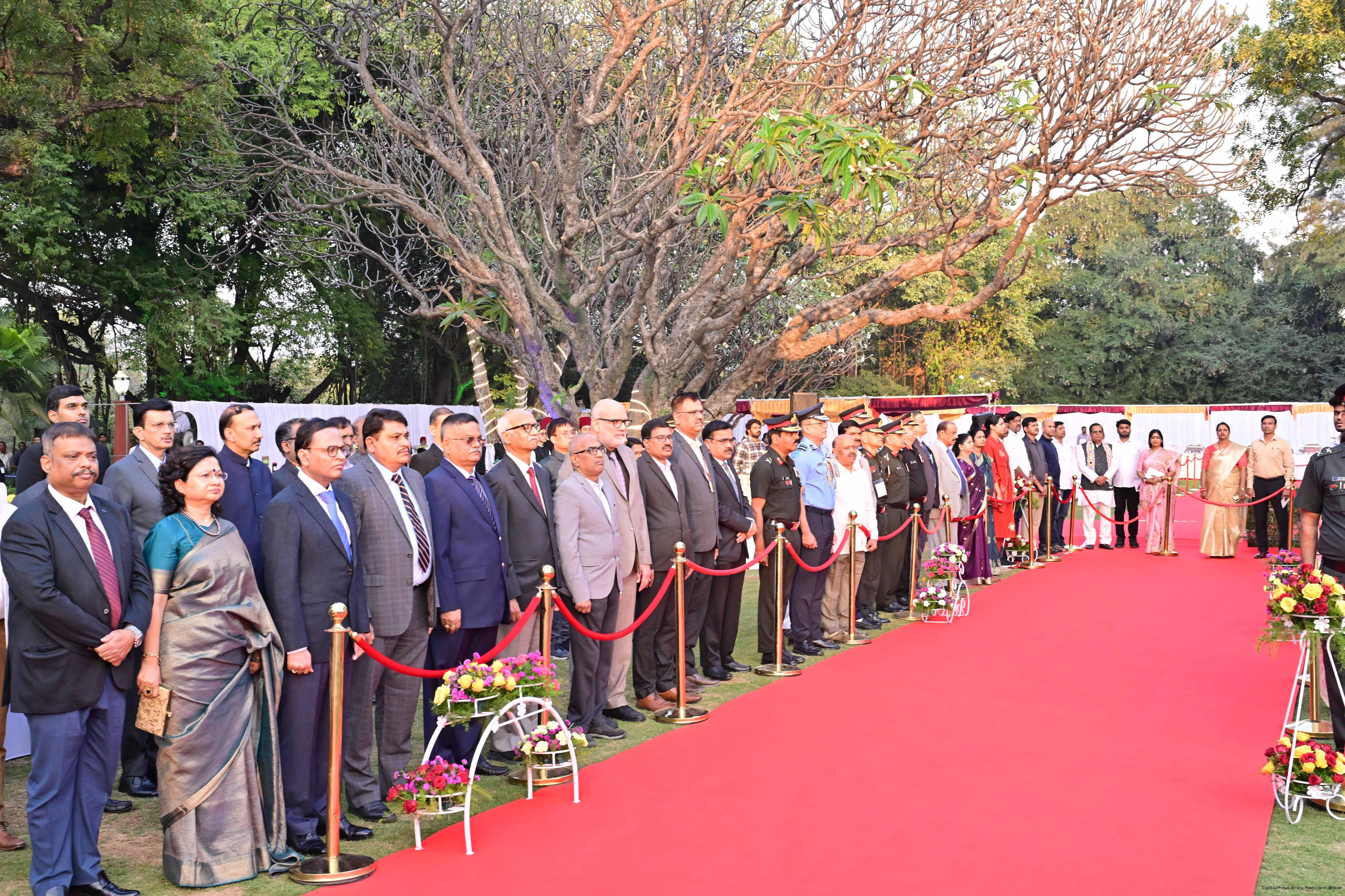 | Caption: | The President of India Smt Droupadi Murmu hosted an 'At Home' reception at Rashtrapati Nilayam, Secunderabad, Telangana 21, 2025. |
