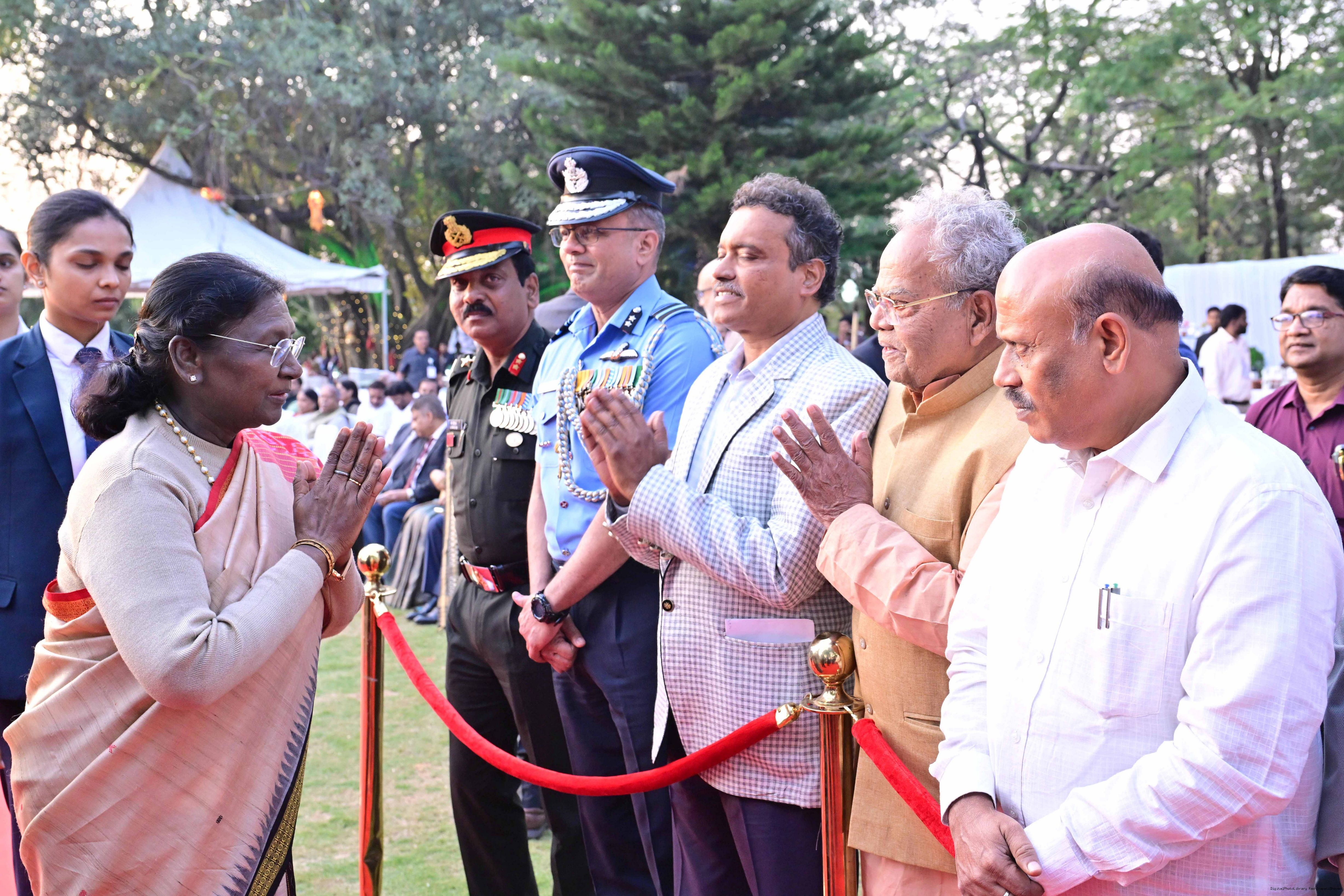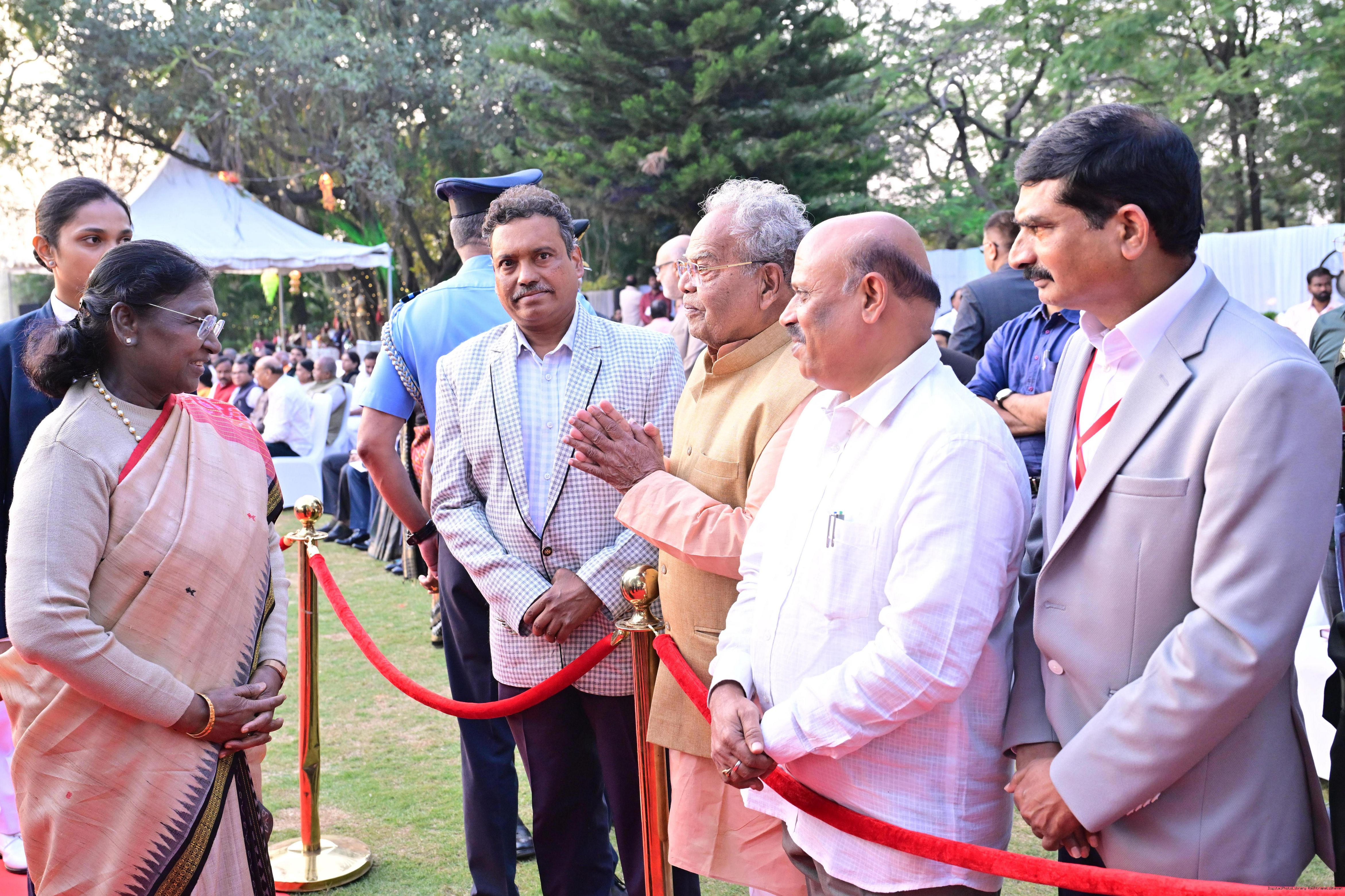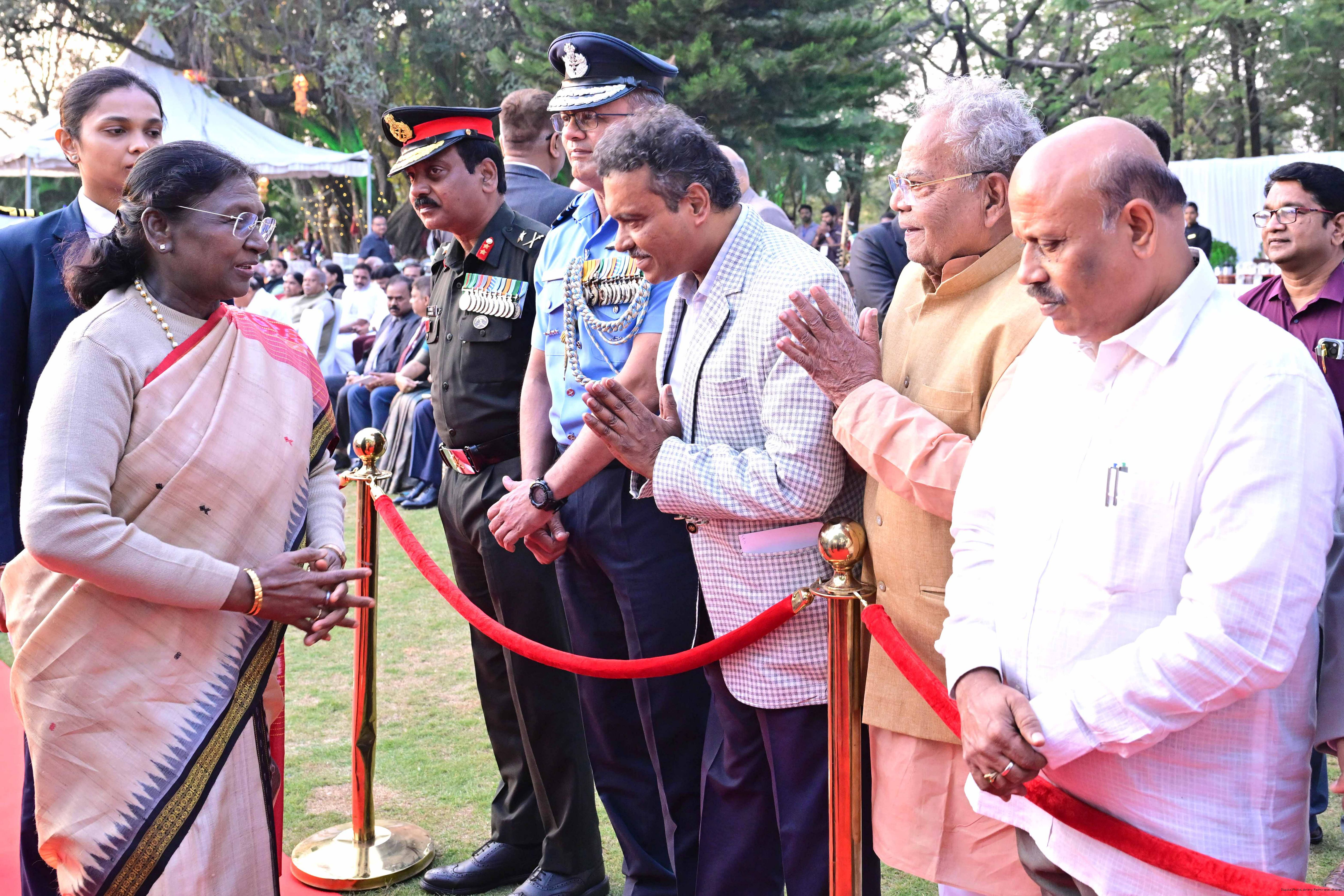 | Caption: | The President of India Smt Droupadi Murmu hosted an 'At Home' reception at Rashtrapati Nilayam, Secunderabad, Telangana 21, 2025. |