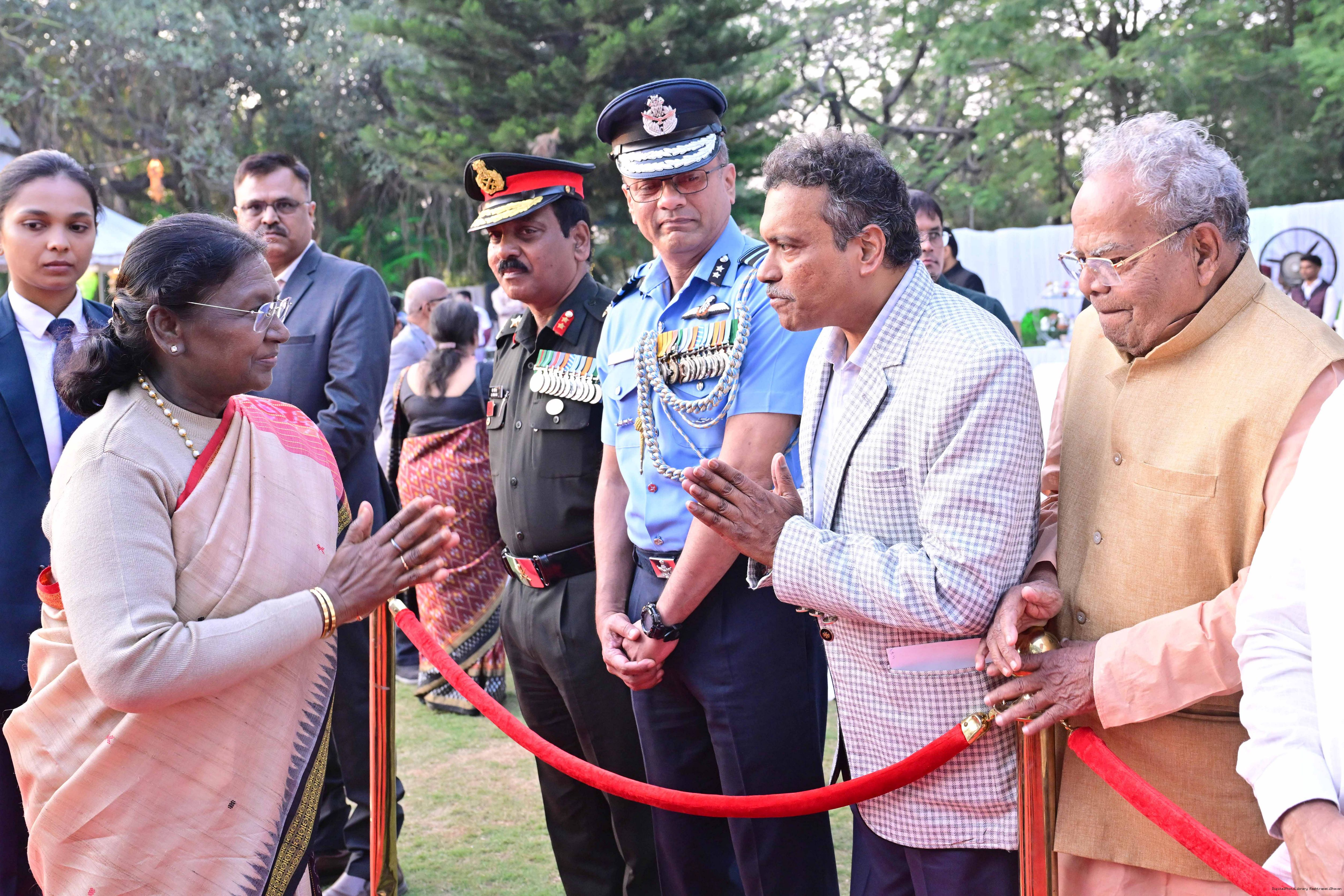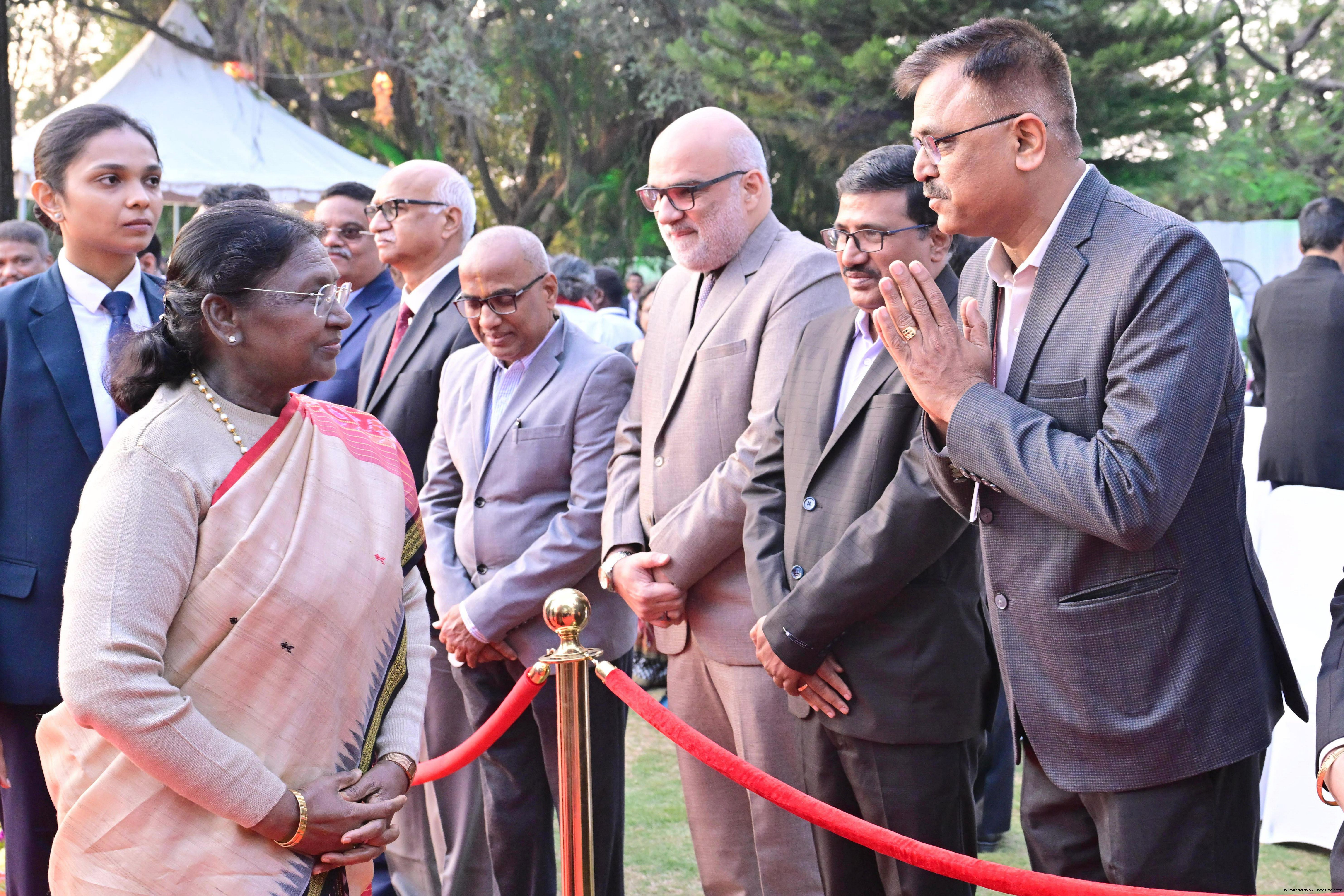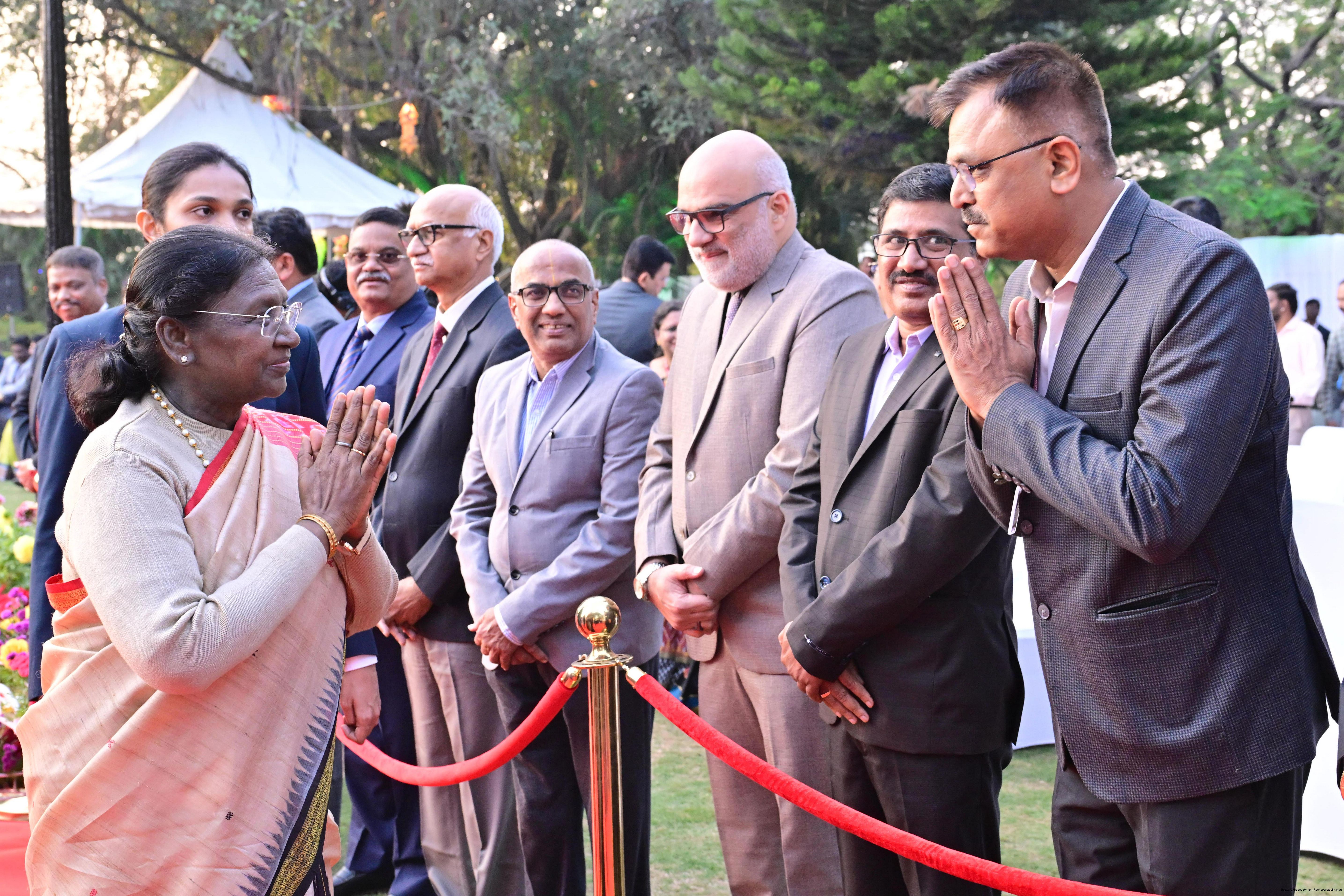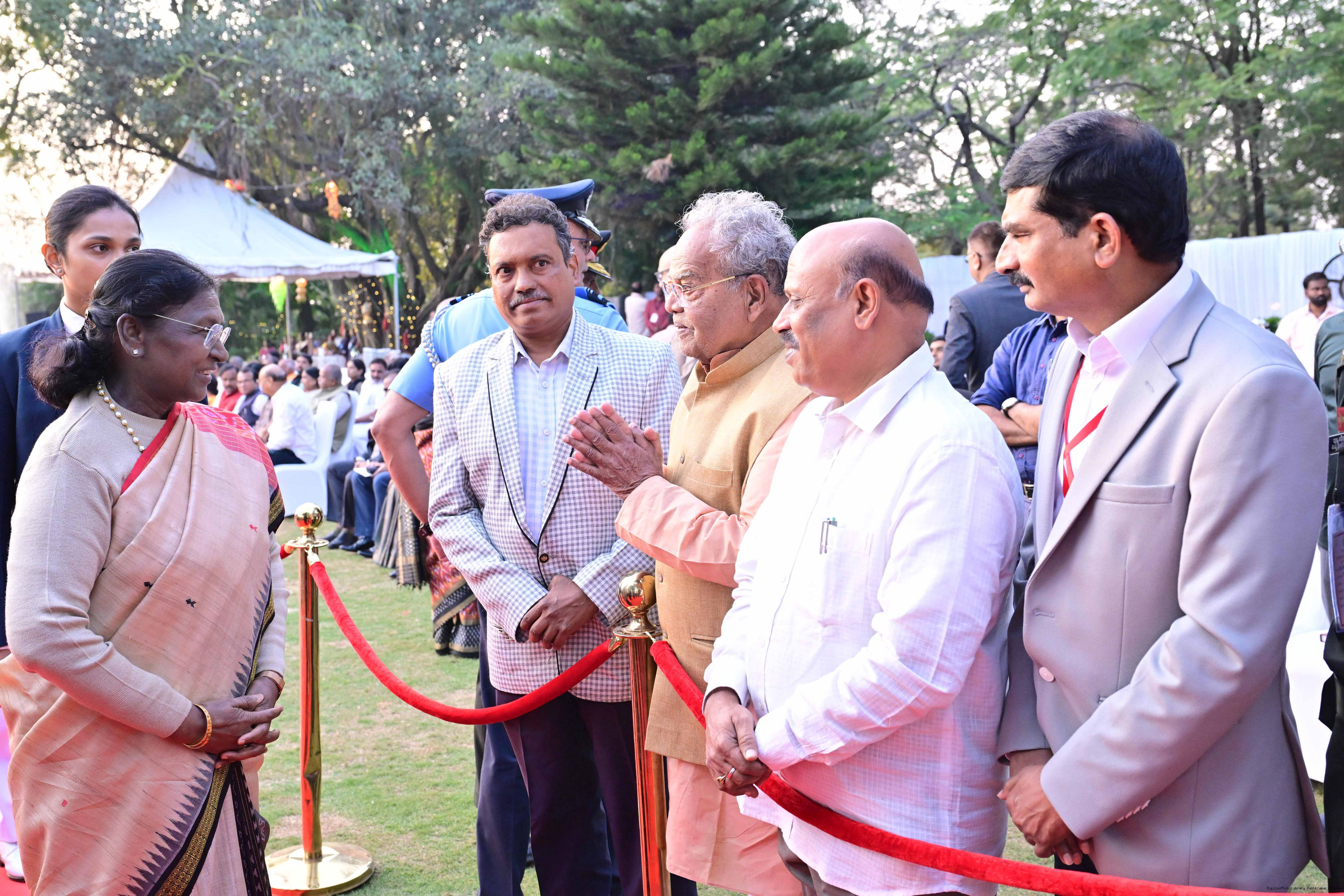 | Caption: | The President of India Smt Droupadi Murmu hosted an 'At Home' reception at Rashtrapati Nilayam, Secunderabad, Telangana 21, 2025. |