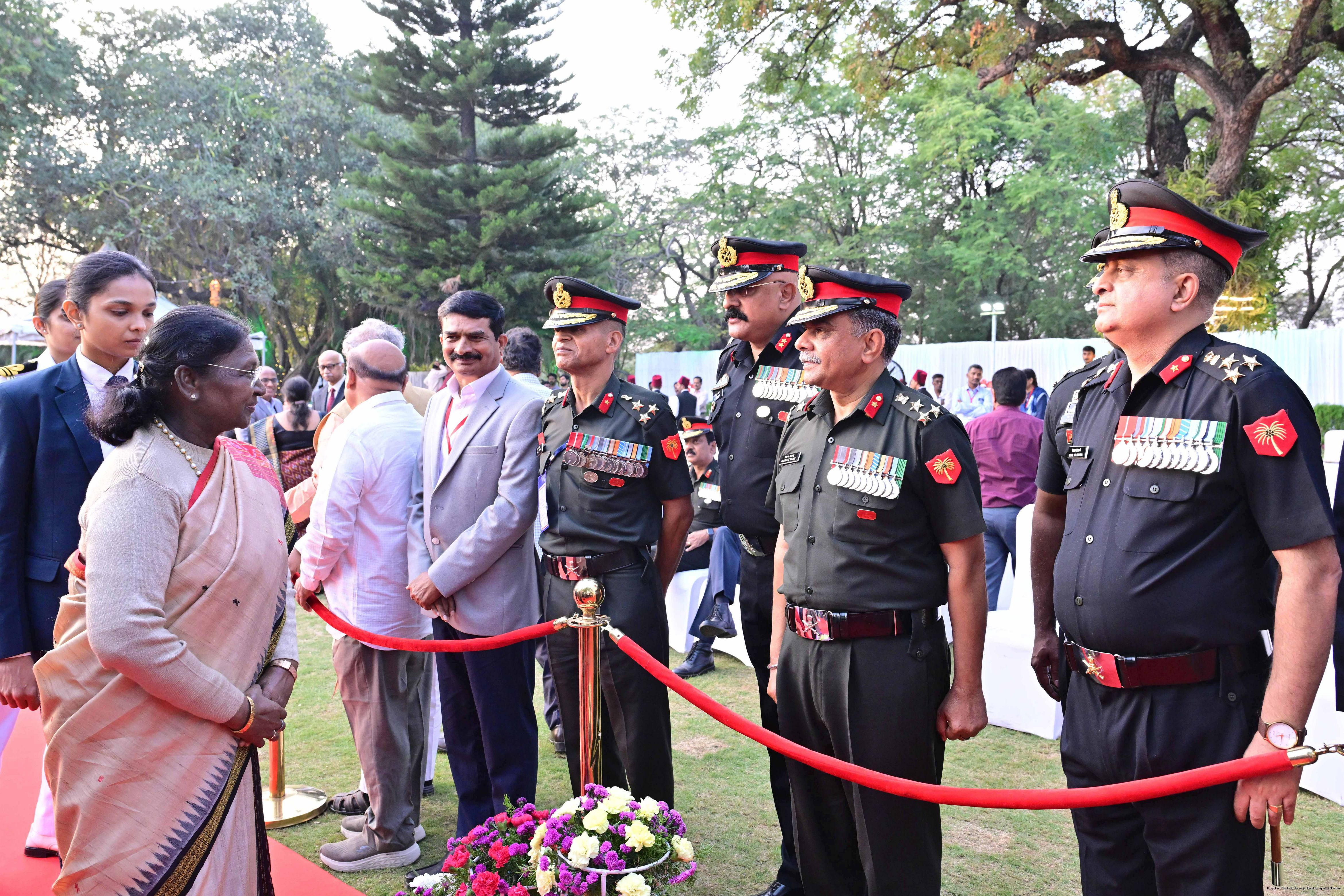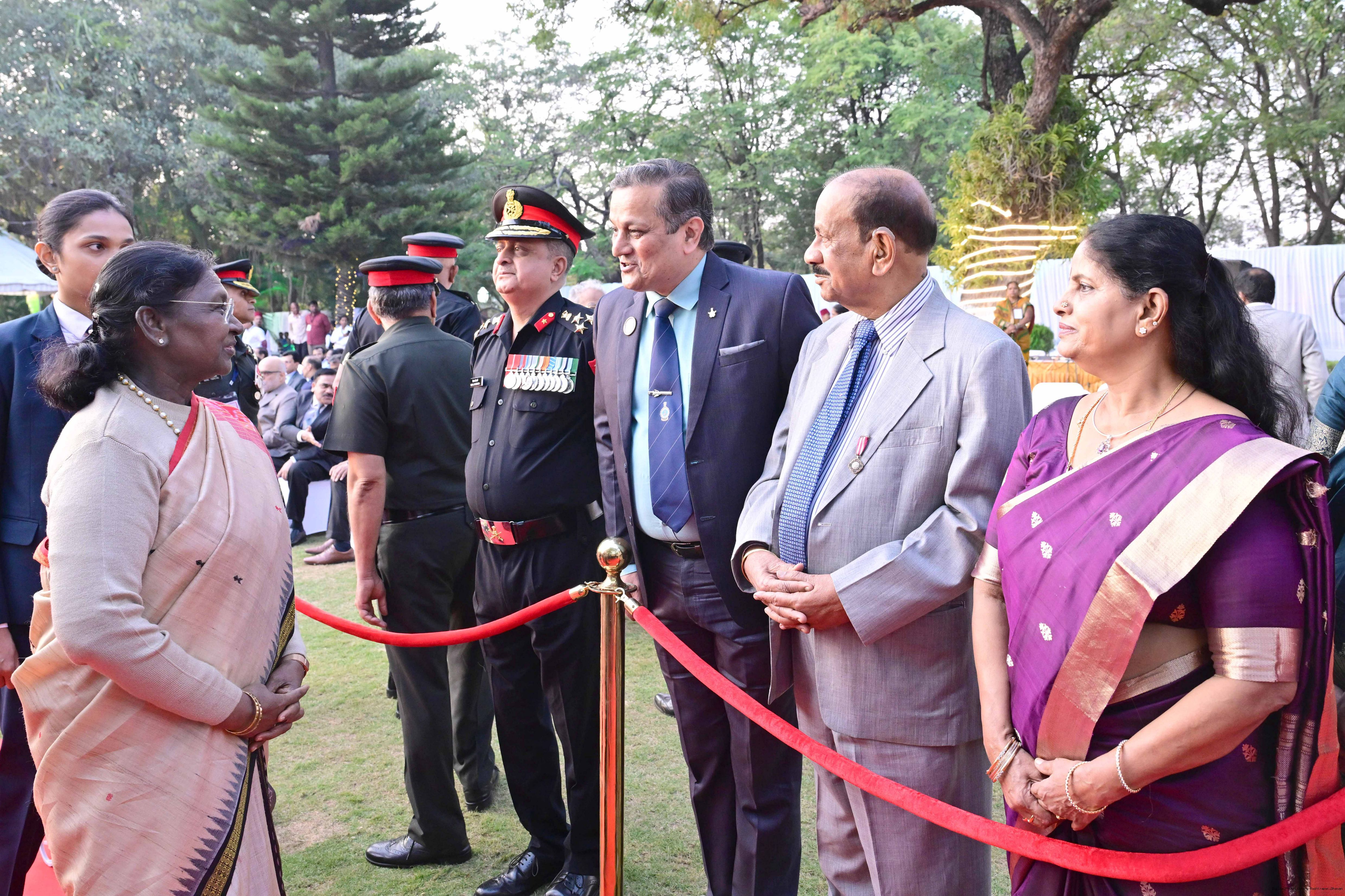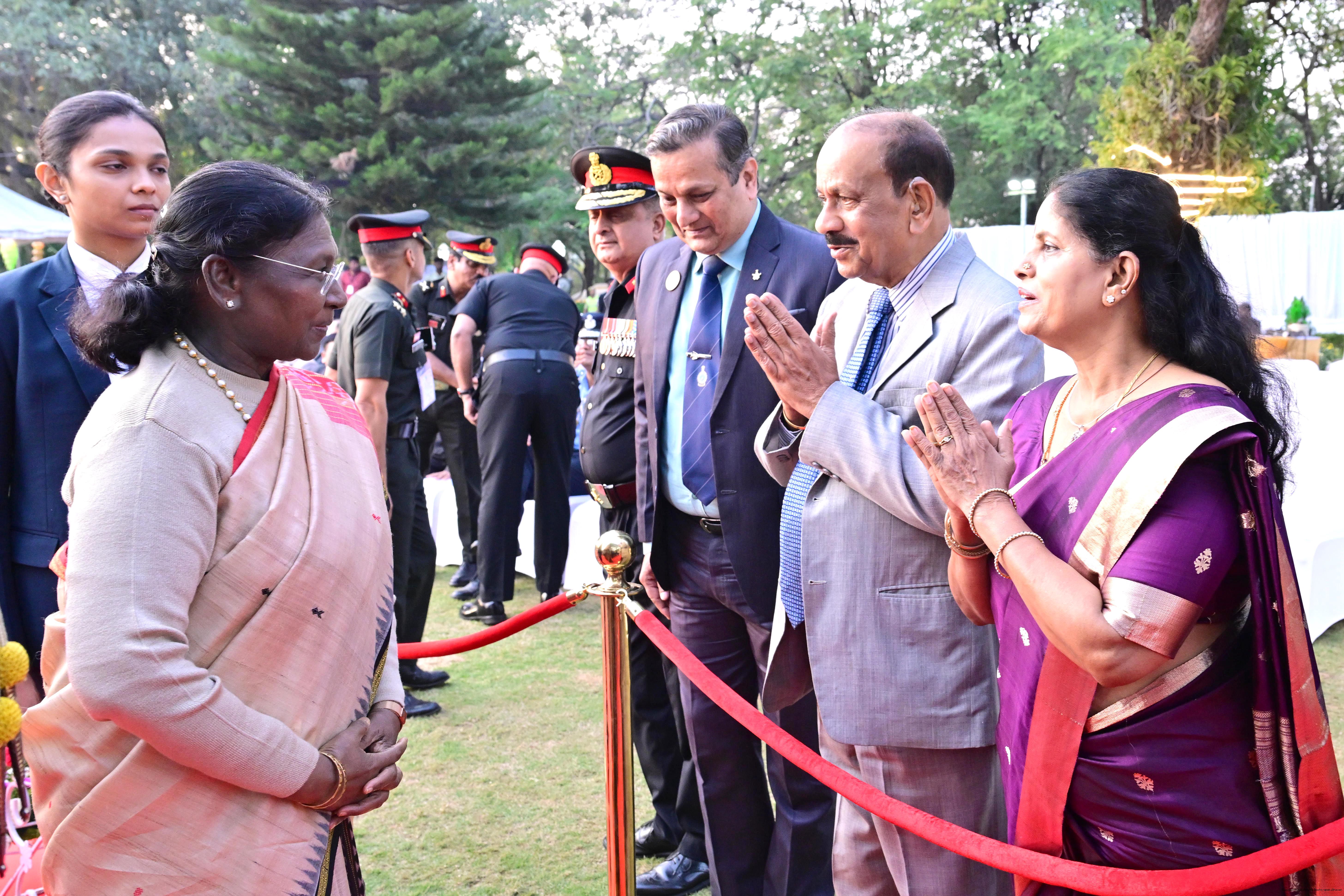 | Caption: | The President of India Smt Droupadi Murmu hosted an 'At Home' reception at Rashtrapati Nilayam, Secunderabad, Telangana 21, 2025. |