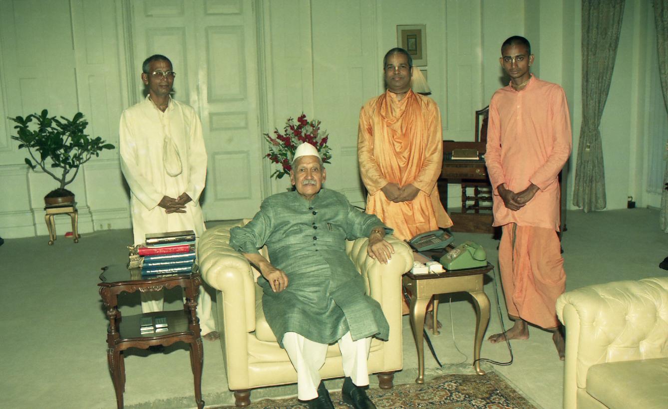 | Caption: | The President of India, Dr. Shankar Dayal Sharma received copies of the book "Srimad Bhagvatham" (in 3 Volumes) from Mahant Krishna Balaram Swami with others at Rashtrapati Bhavan in New Delhi on September 04, 1996. |