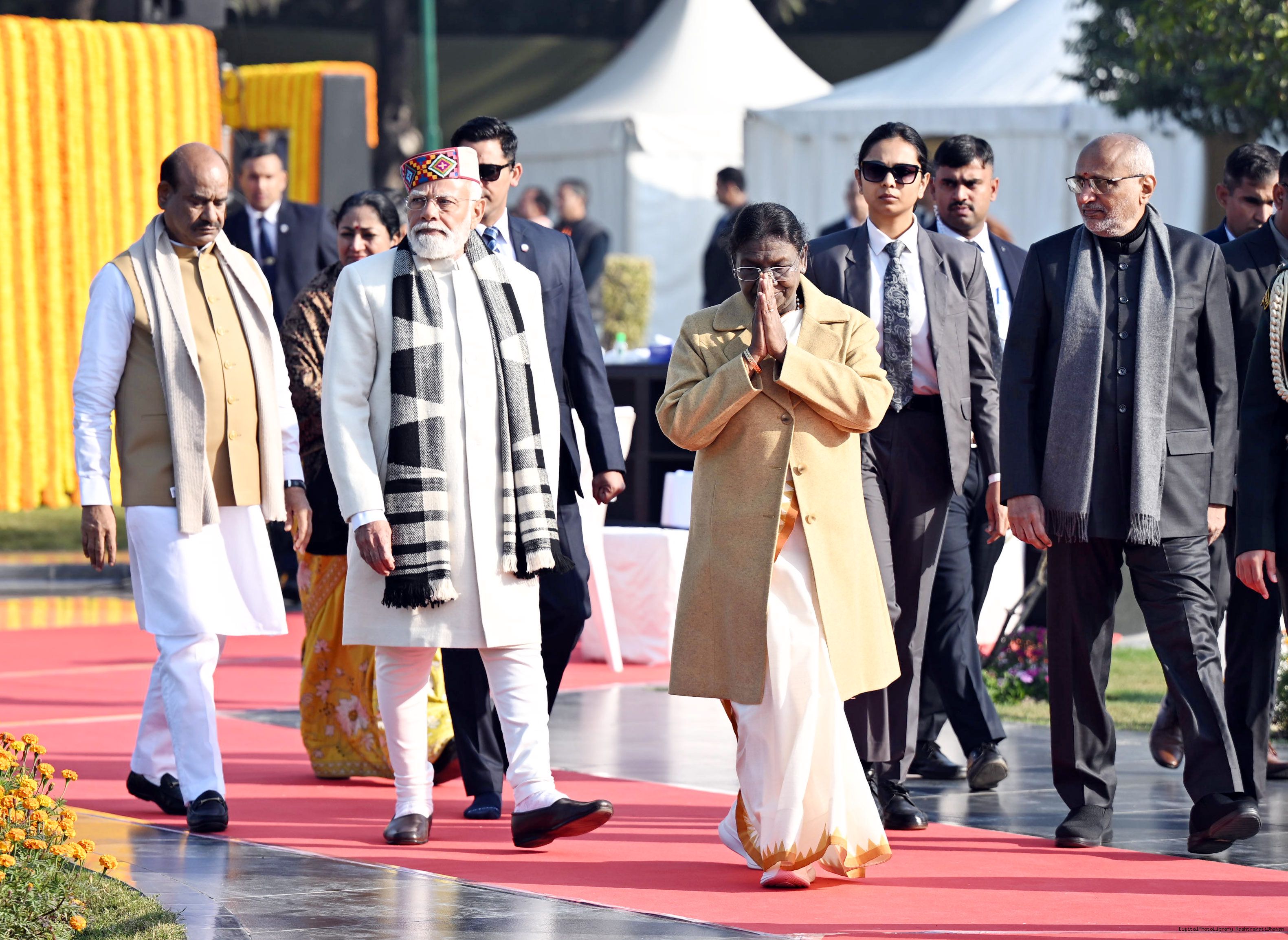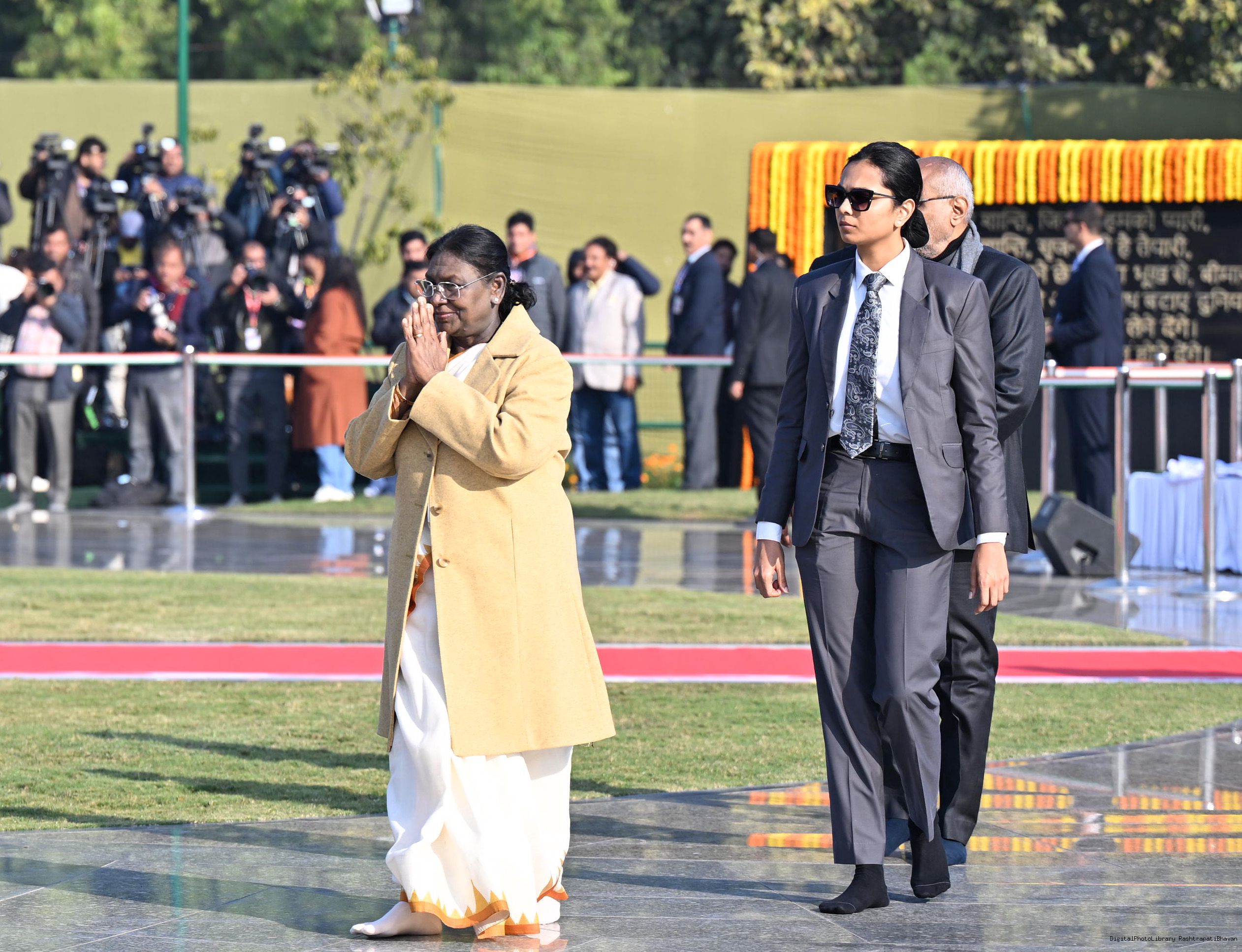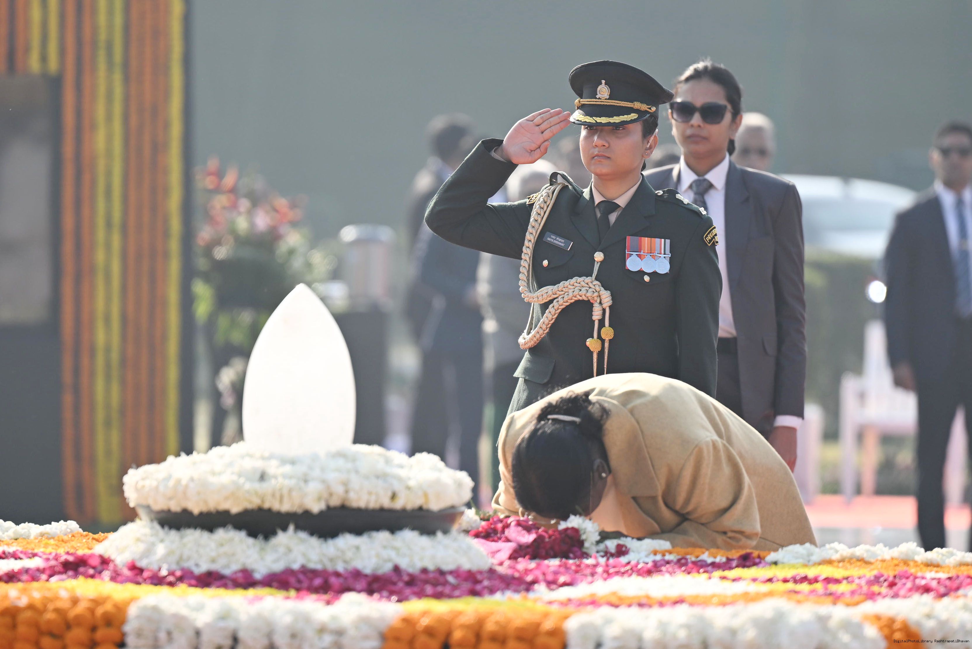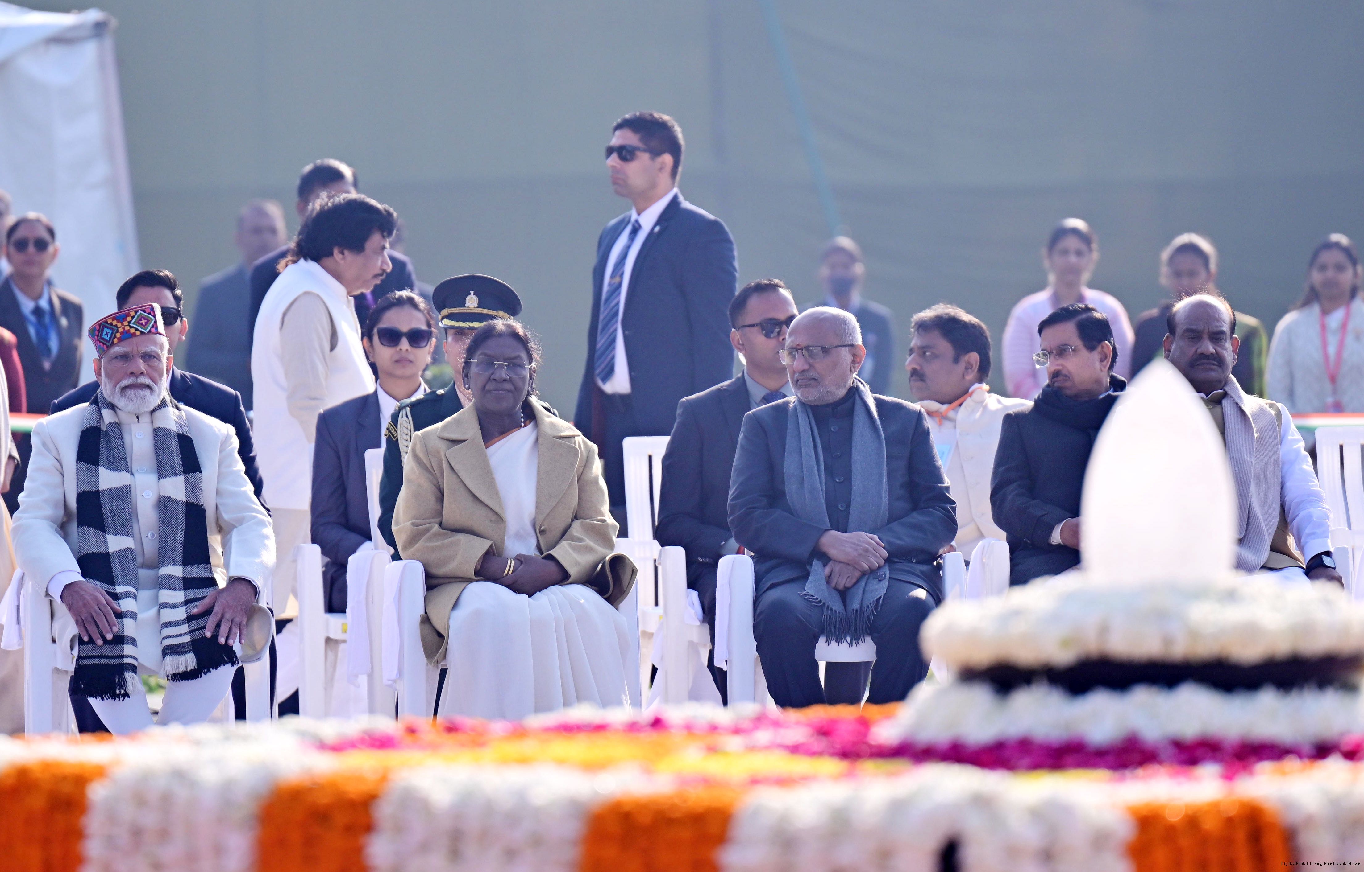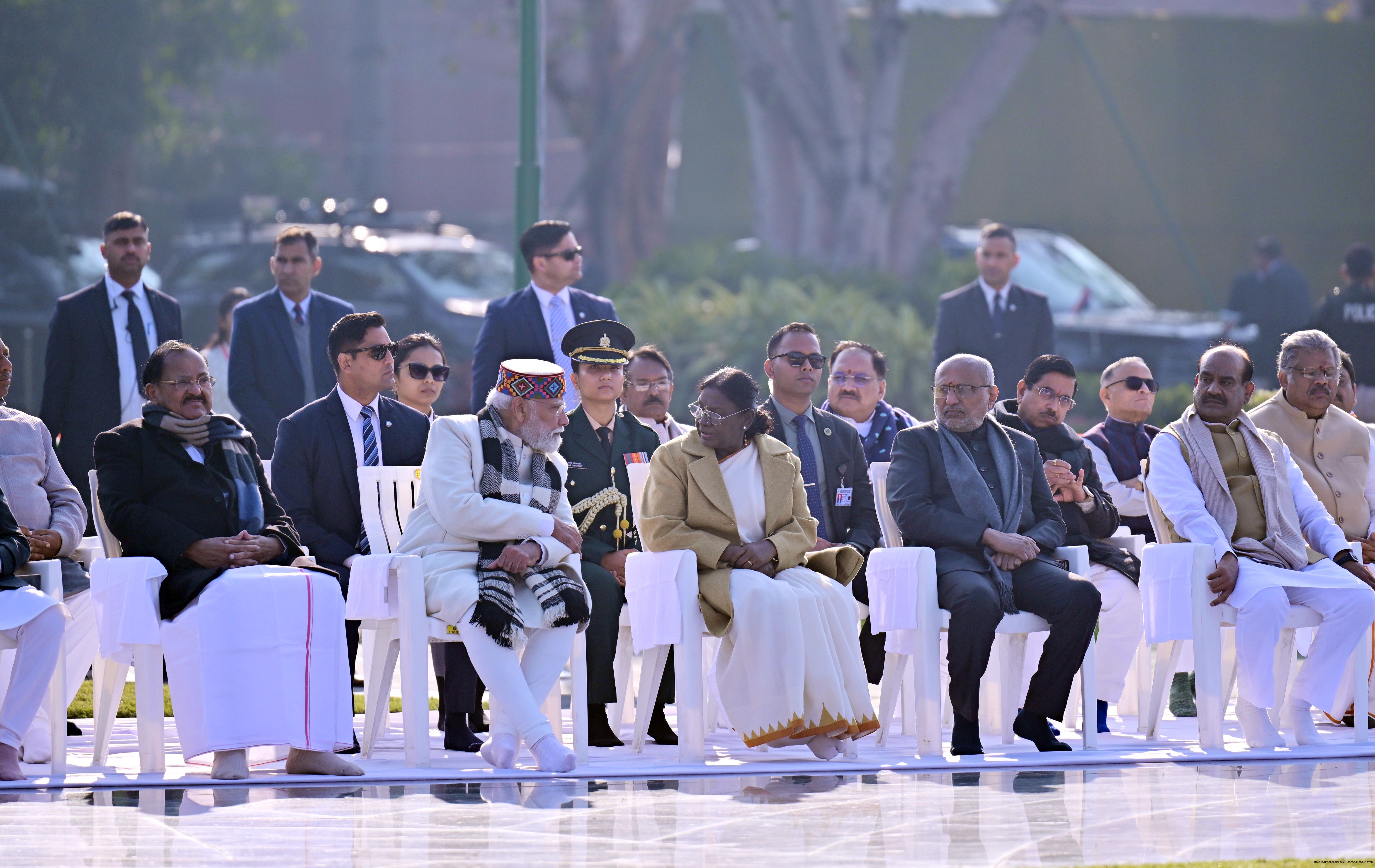 | Caption: | The President of India, Smt. Droupadi Murmu paid floral tributes to former Prime Minister of India Shri Atal Bihari Vajpayee on his birth anniversary at his Samadhi 'Sadaiv Atal' in New Delhi on December 25, 2025. |