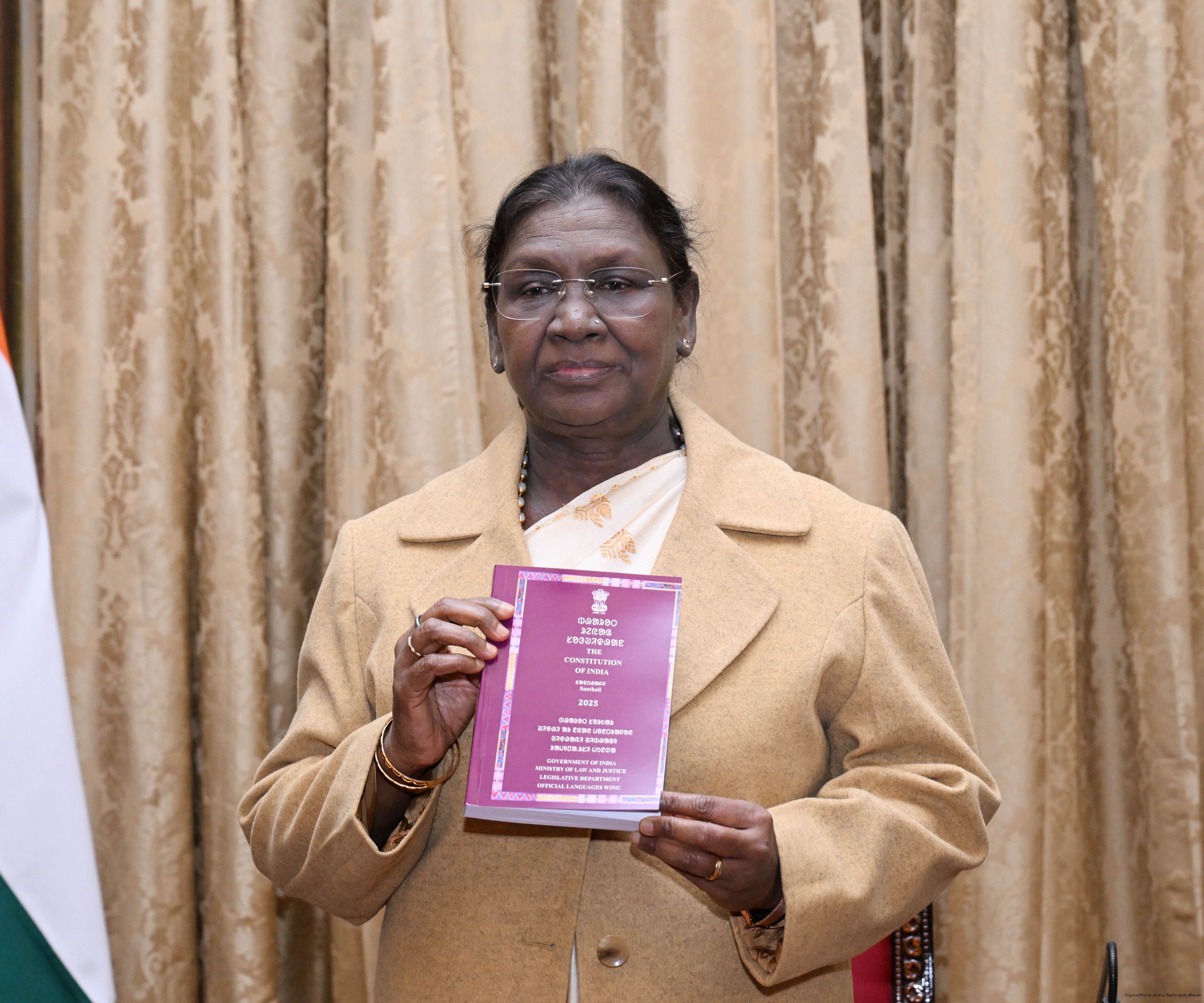 | Caption: | The President of India, Smt Droupadi Murmu, released the Constitution of India in the Santhali language at a function held at Rashtrapati Bhavan on December 25, 2025. |