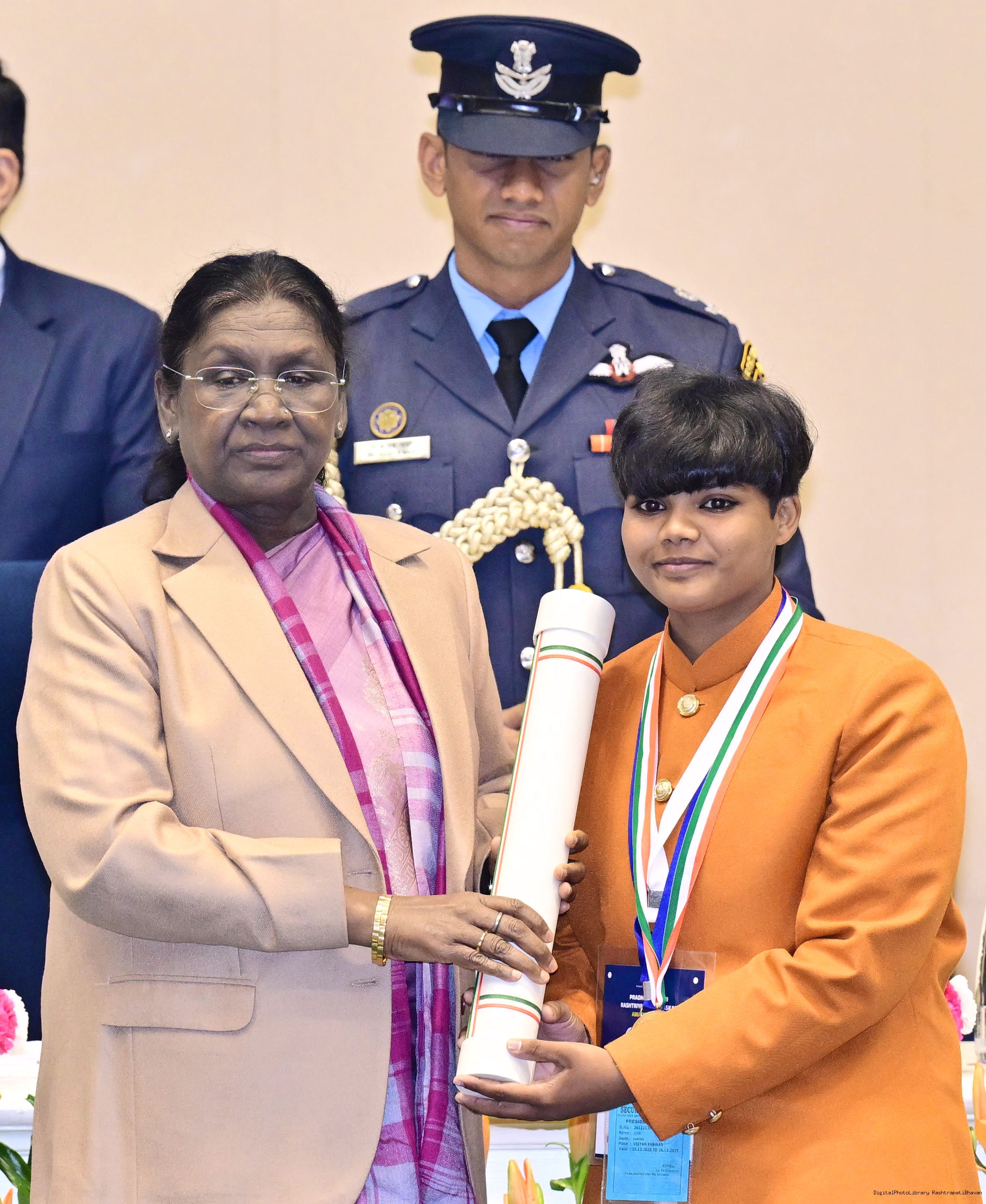 | Caption: | The President of India, Smt. Droupadi Murmu conferred the Pradhan Mantri Rashtriya Bal Puraskar for exceptional achievements in the fields of Bravery, Social Service, Environment, Sports, Art Culture and Science Technology at a ceremony held in New Delhi on December 26, 2025. |