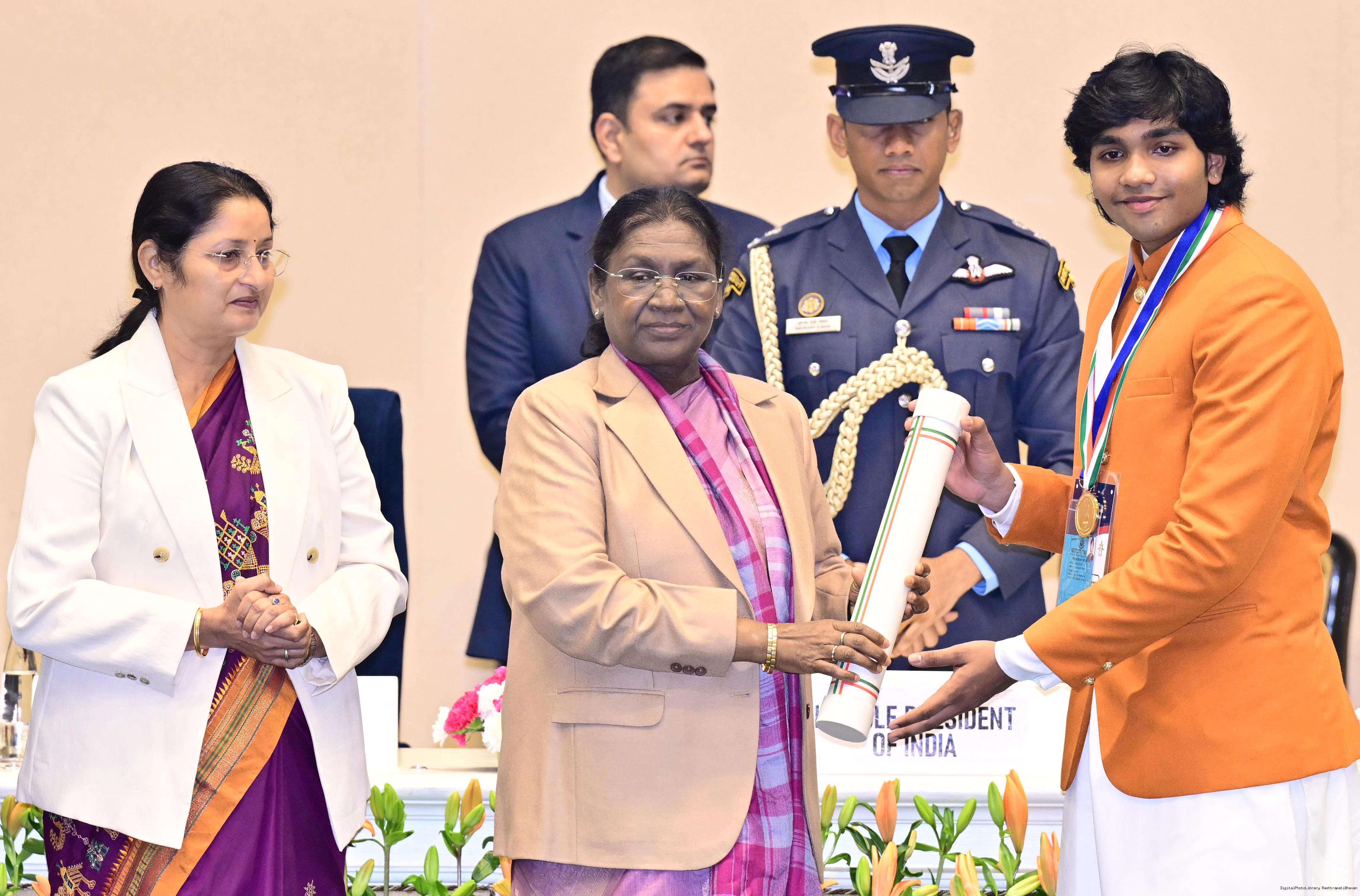 | Caption: | The President of India, Smt. Droupadi Murmu conferred the Pradhan Mantri Rashtriya Bal Puraskar for exceptional achievements in the fields of Bravery, Social Service, Environment, Sports, Art Culture and Science Technology at a ceremony held in New Delhi on December 26, 2025. |