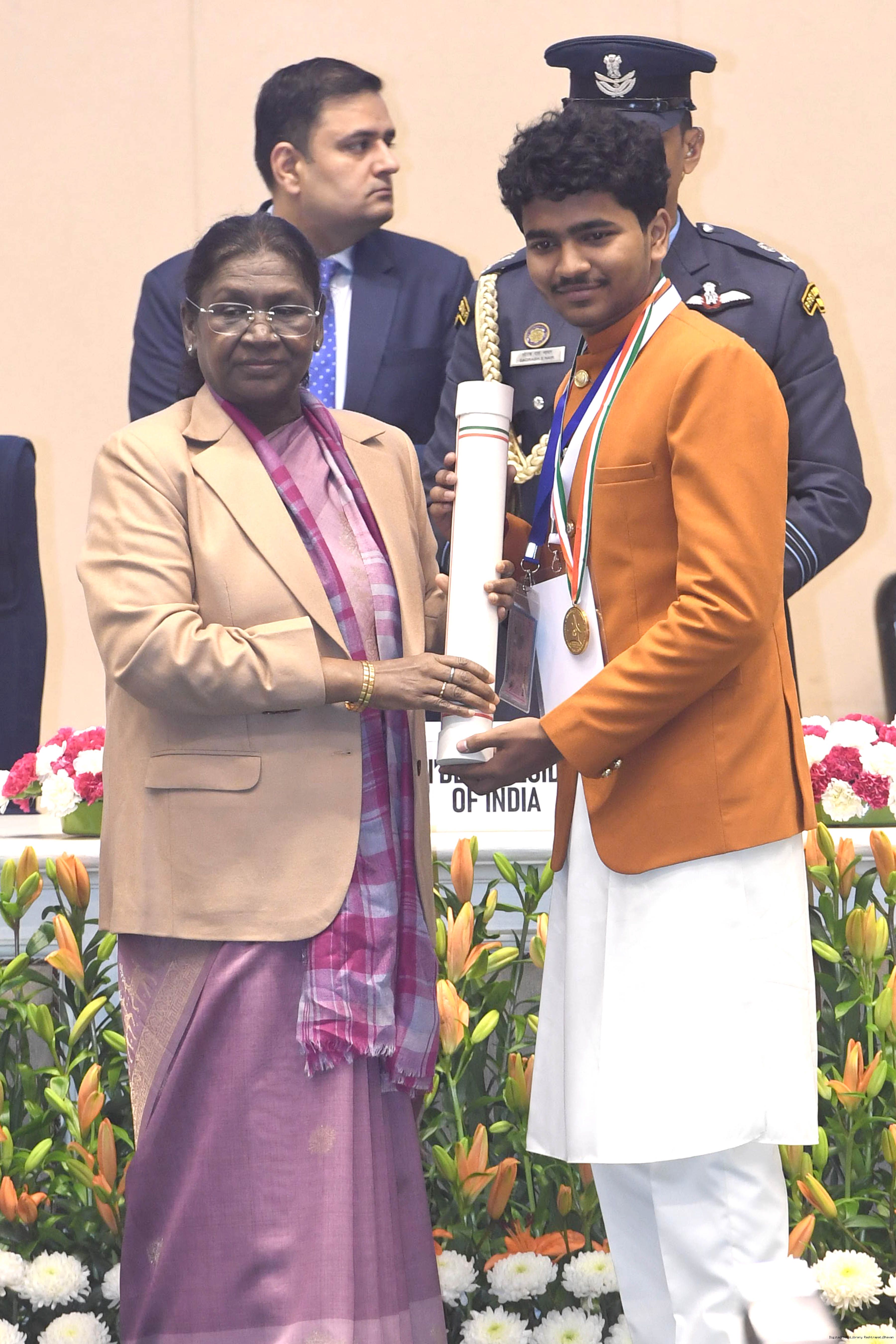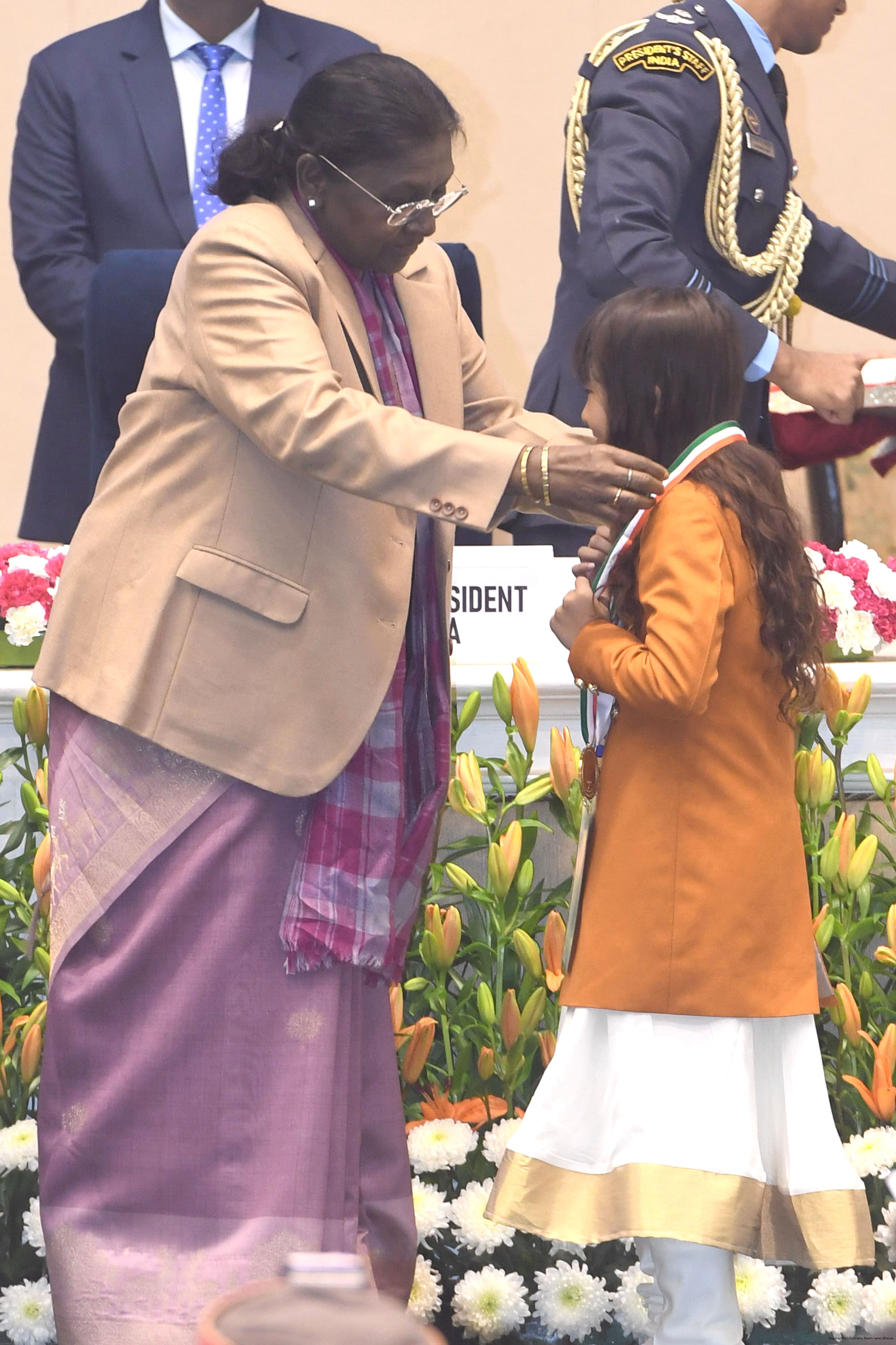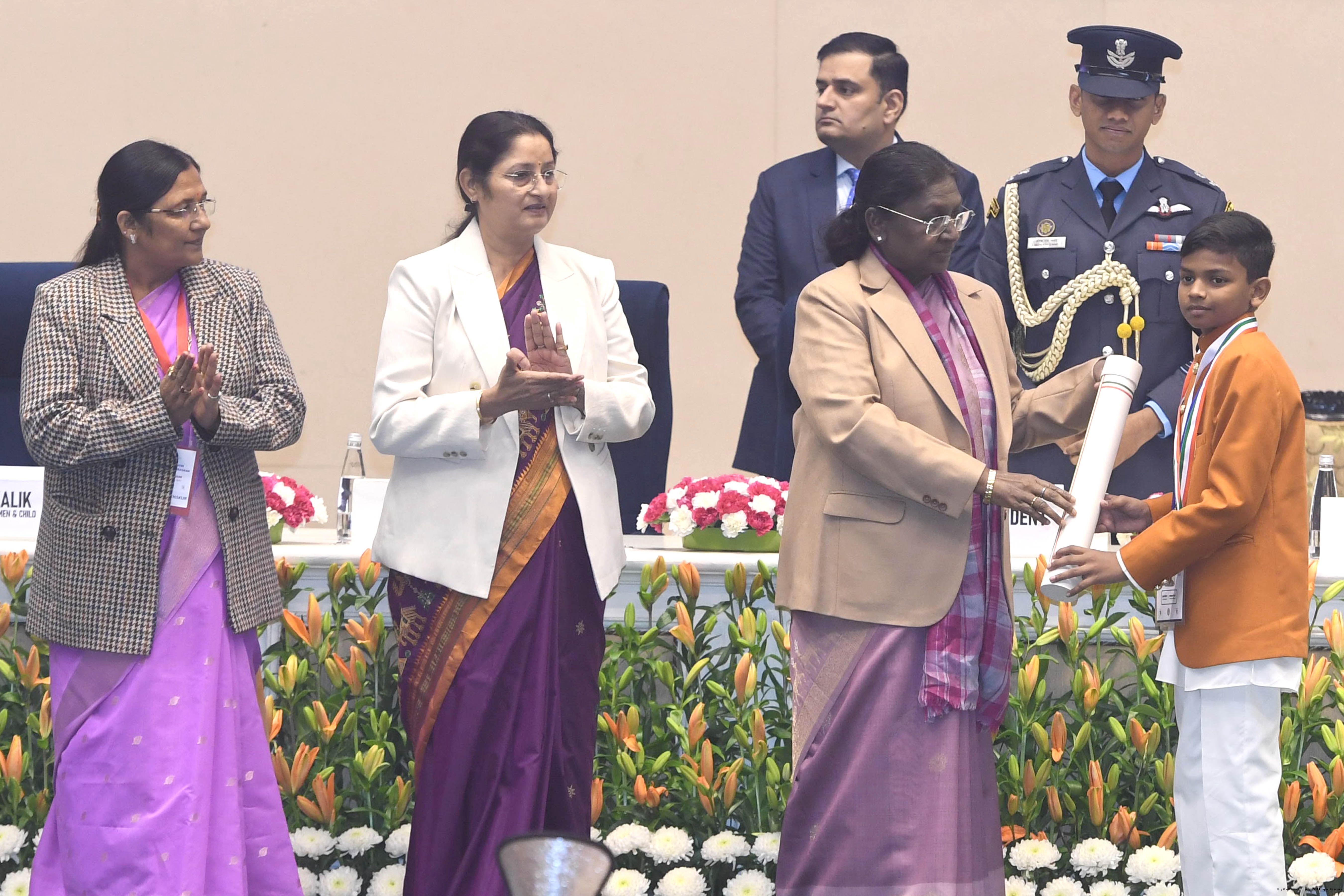 | Caption: | The President of India, Smt. Droupadi Murmu conferred the Pradhan Mantri Rashtriya Bal Puraskar for exceptional achievements in the fields of Bravery, Social Service, Environment, Sports, Art Culture and Science Technology at a ceremony held in New Delhi on December 26, 2025. |