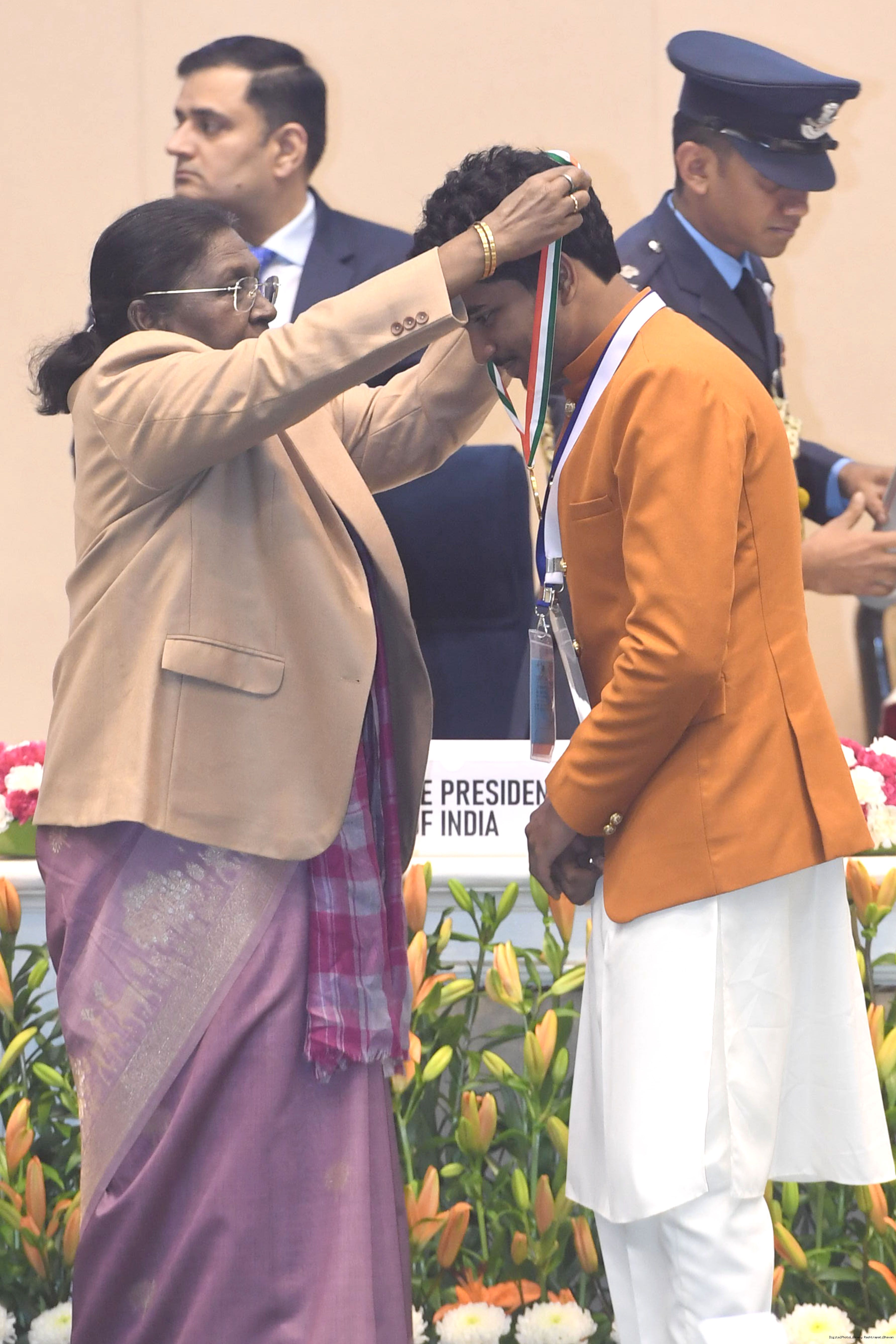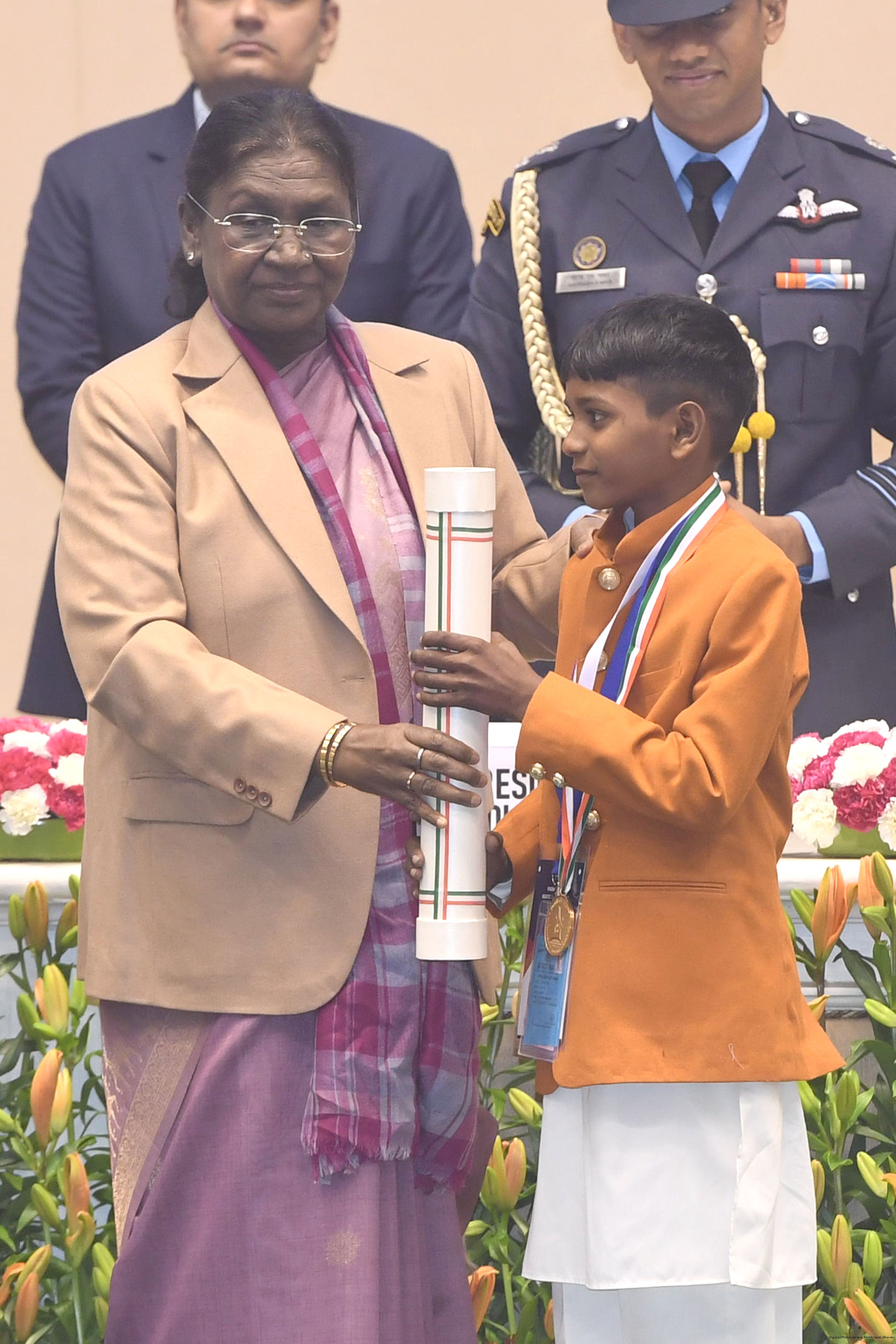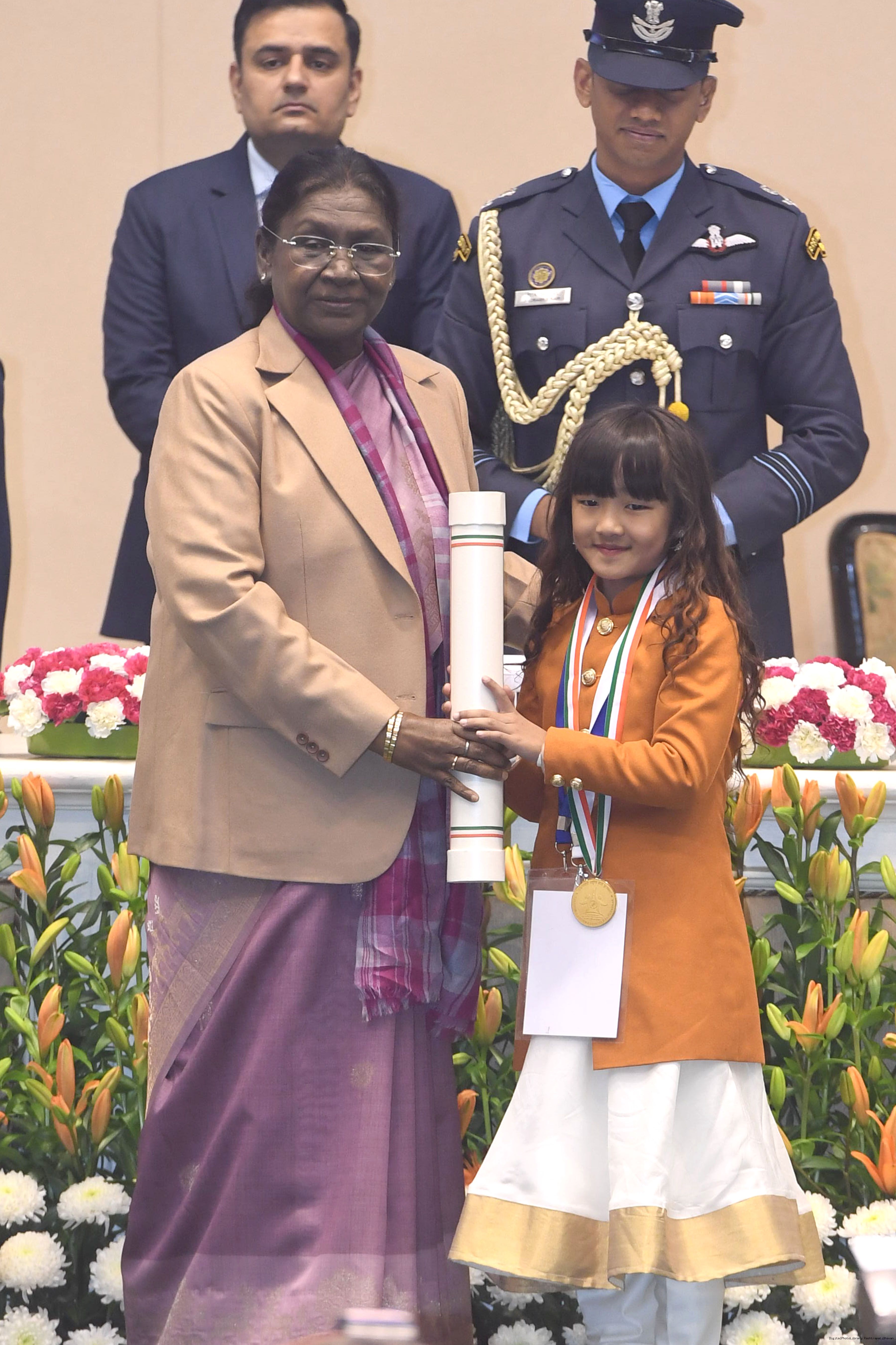| Caption: | The President of India, Smt. Droupadi Murmu conferred the Pradhan Mantri Rashtriya Bal Puraskar for exceptional achievements in the fields of Bravery, Social Service, Environment, Sports, Art Culture and Science Technology at a ceremony held in New Delhi on December 26, 2025. |
