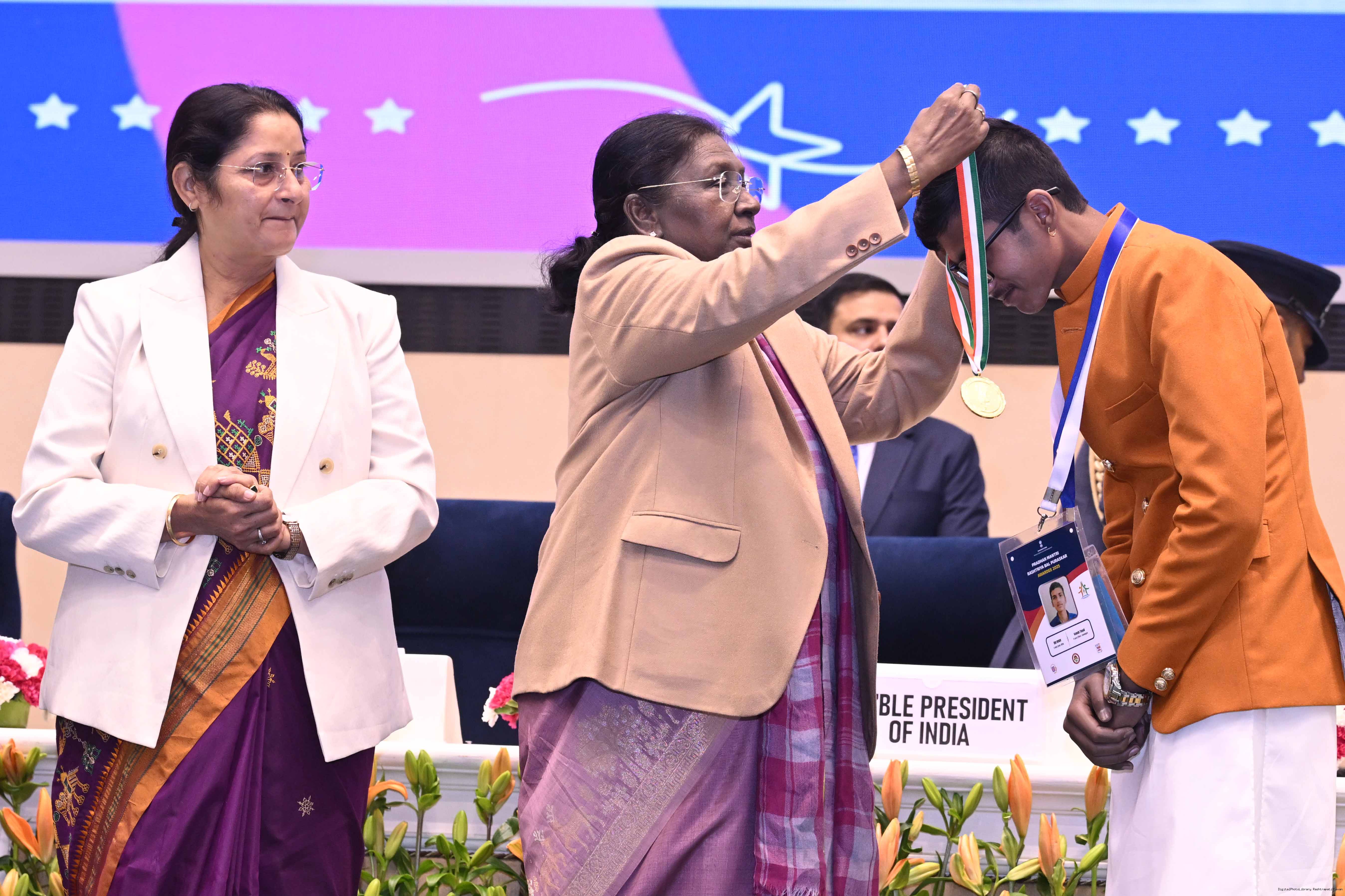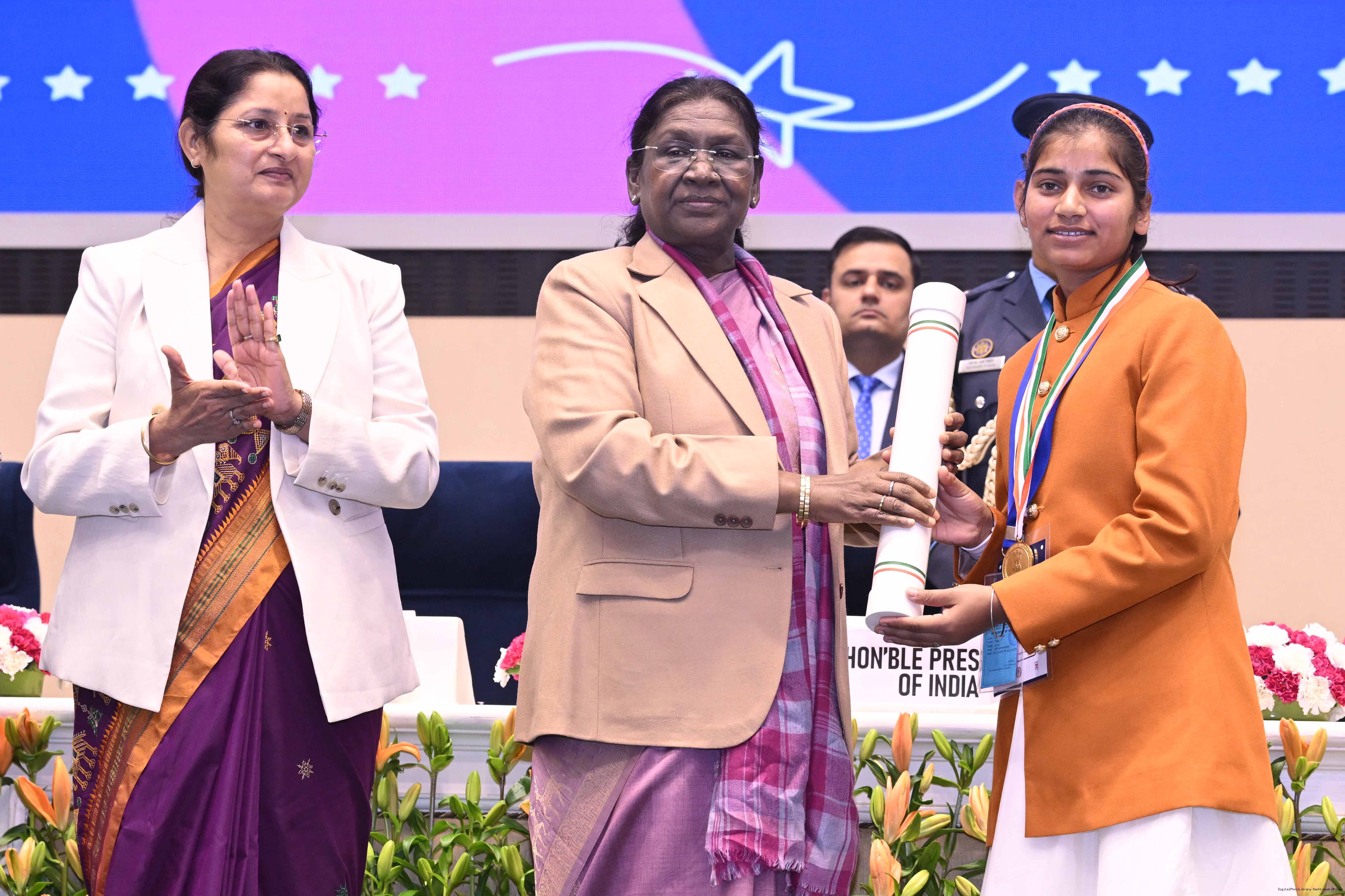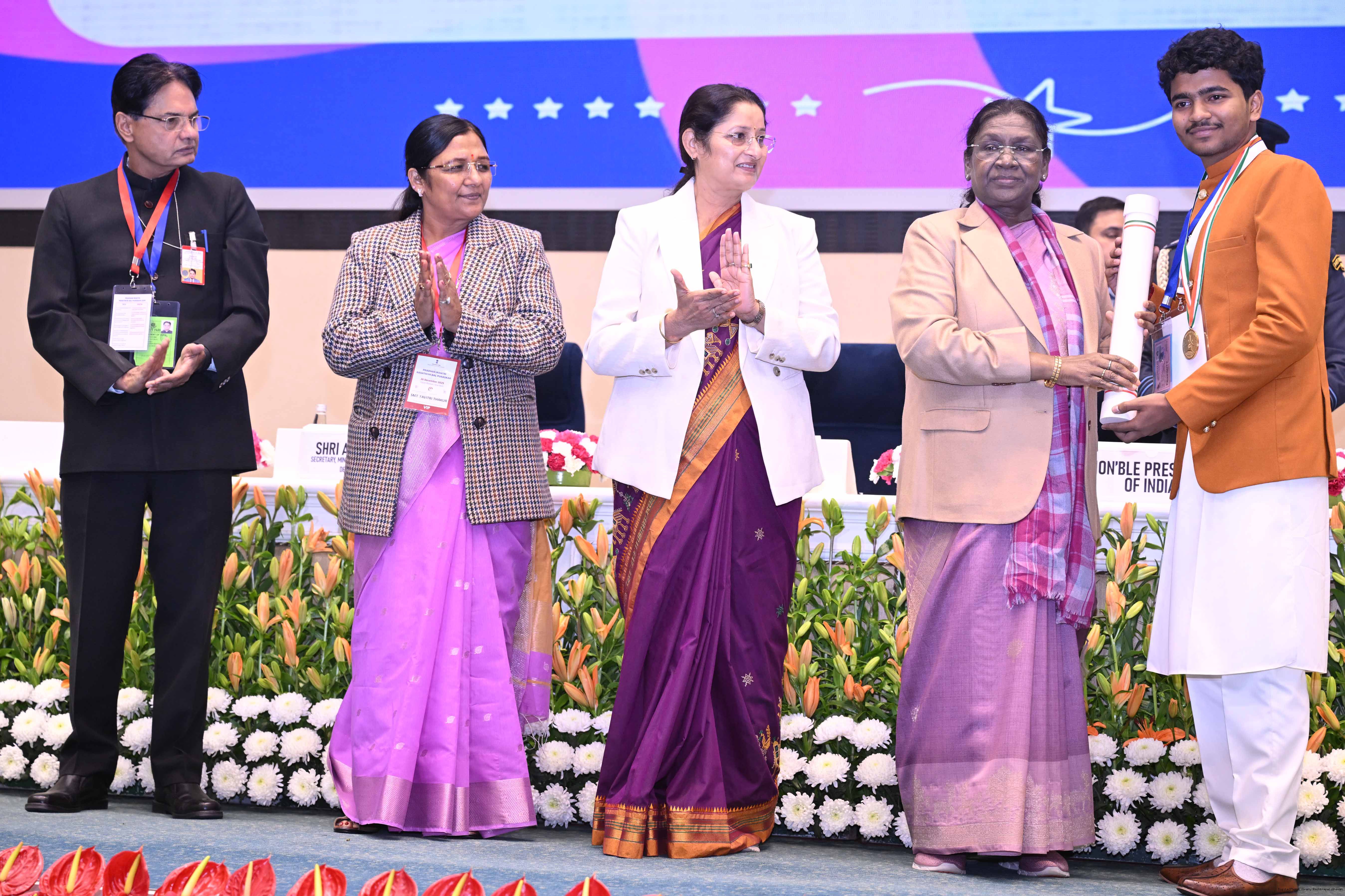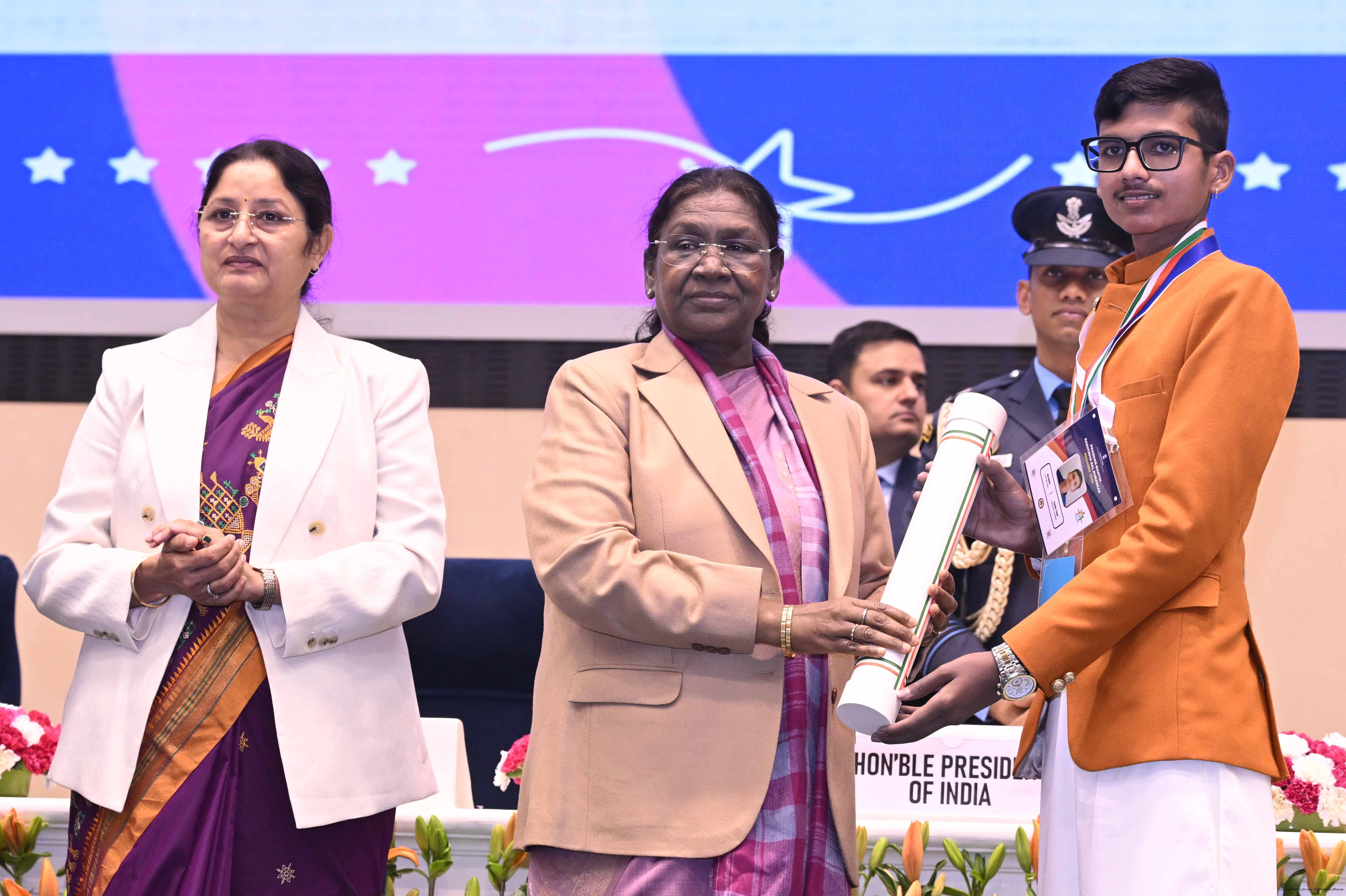 | Caption: | The President of India, Smt. Droupadi Murmu conferred the Pradhan Mantri Rashtriya Bal Puraskar for exceptional achievements in the fields of Bravery, Social Service, Environment, Sports, Art Culture and Science Technology at a ceremony held in New Delhi on December 26, 2025. |