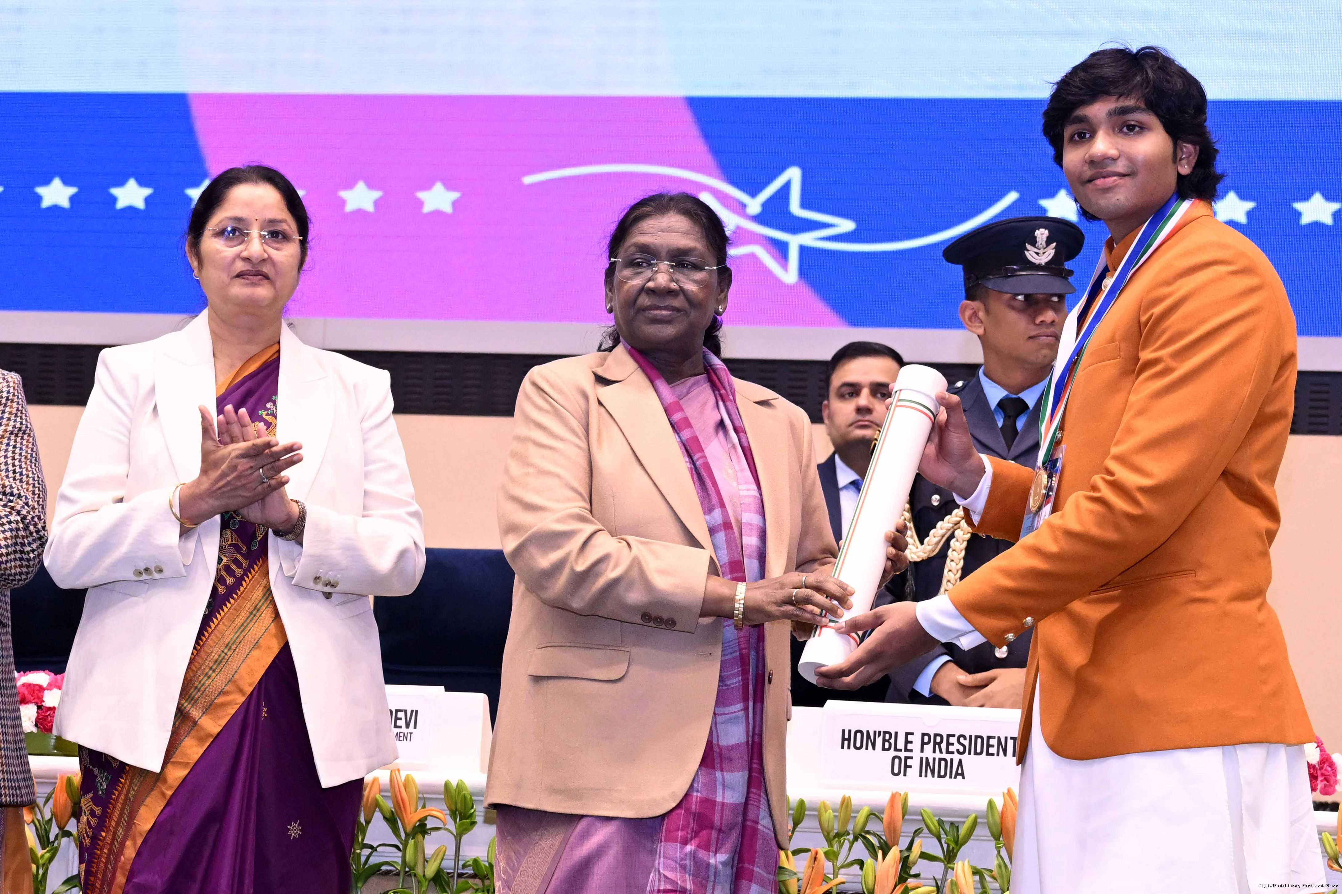 | Caption: | The President of India, Smt. Droupadi Murmu conferred the Pradhan Mantri Rashtriya Bal Puraskar for exceptional achievements in the fields of Bravery, Social Service, Environment, Sports, Art Culture and Science Technology at a ceremony held in New Delhi on December 26, 2025. |