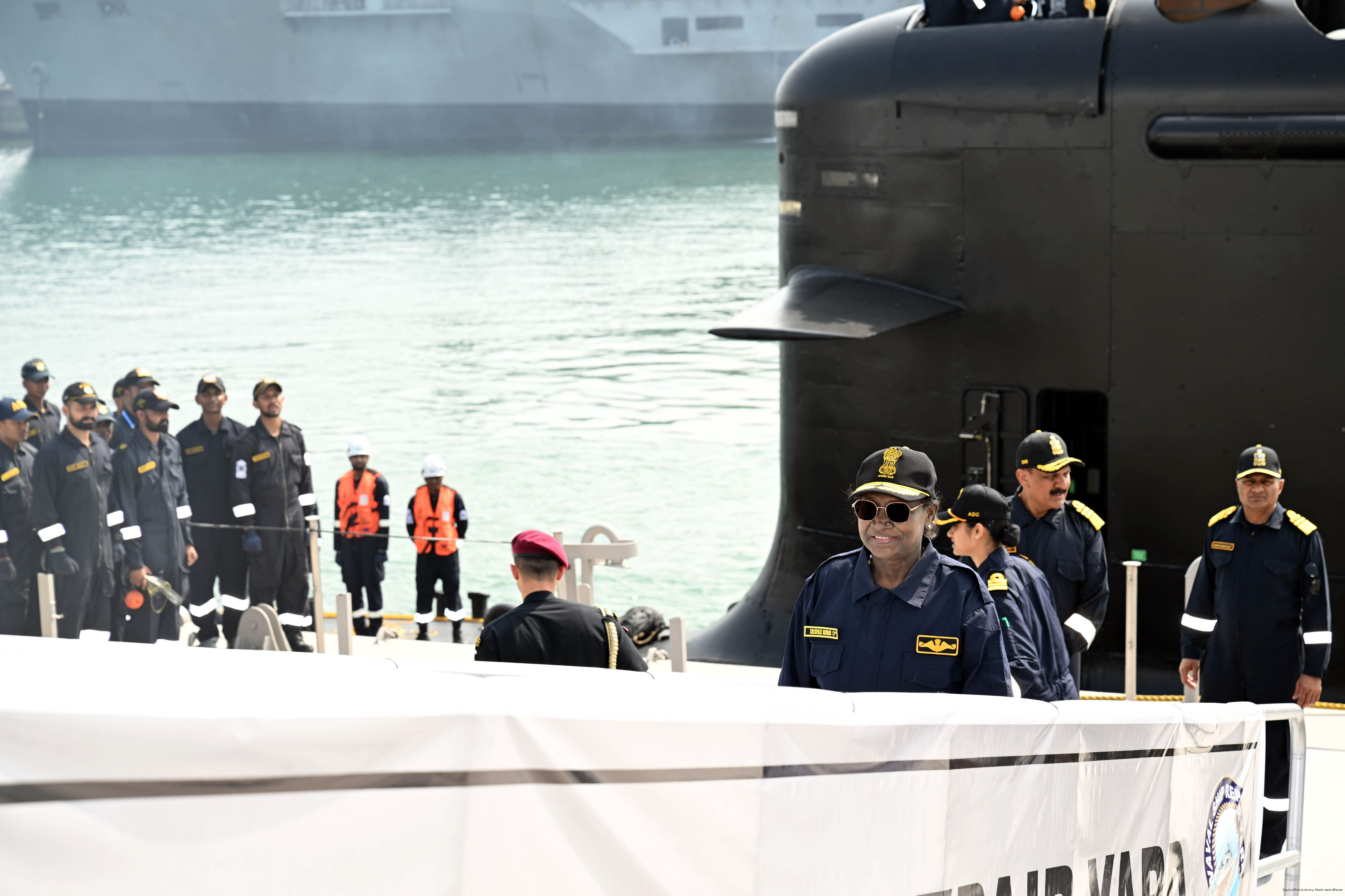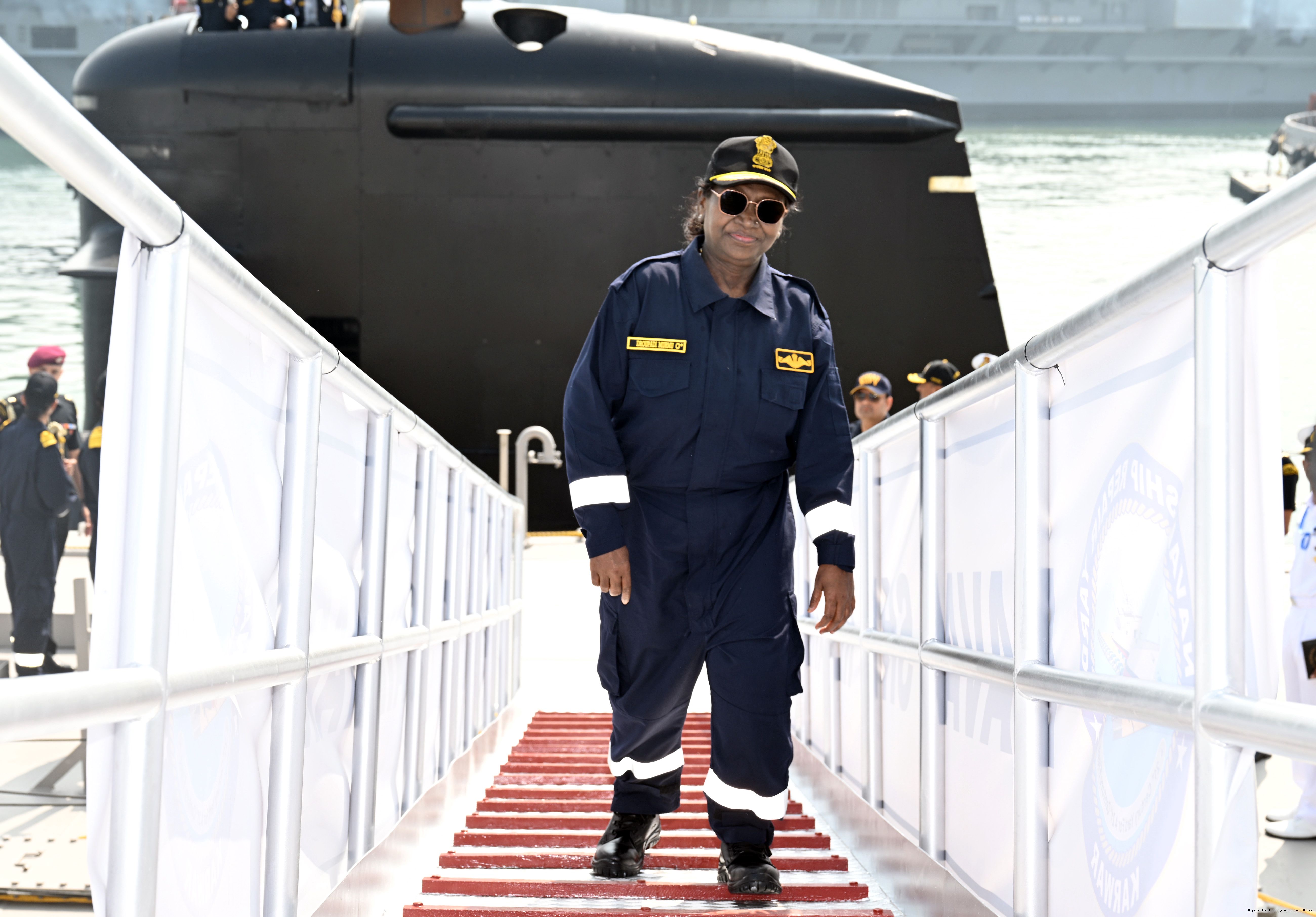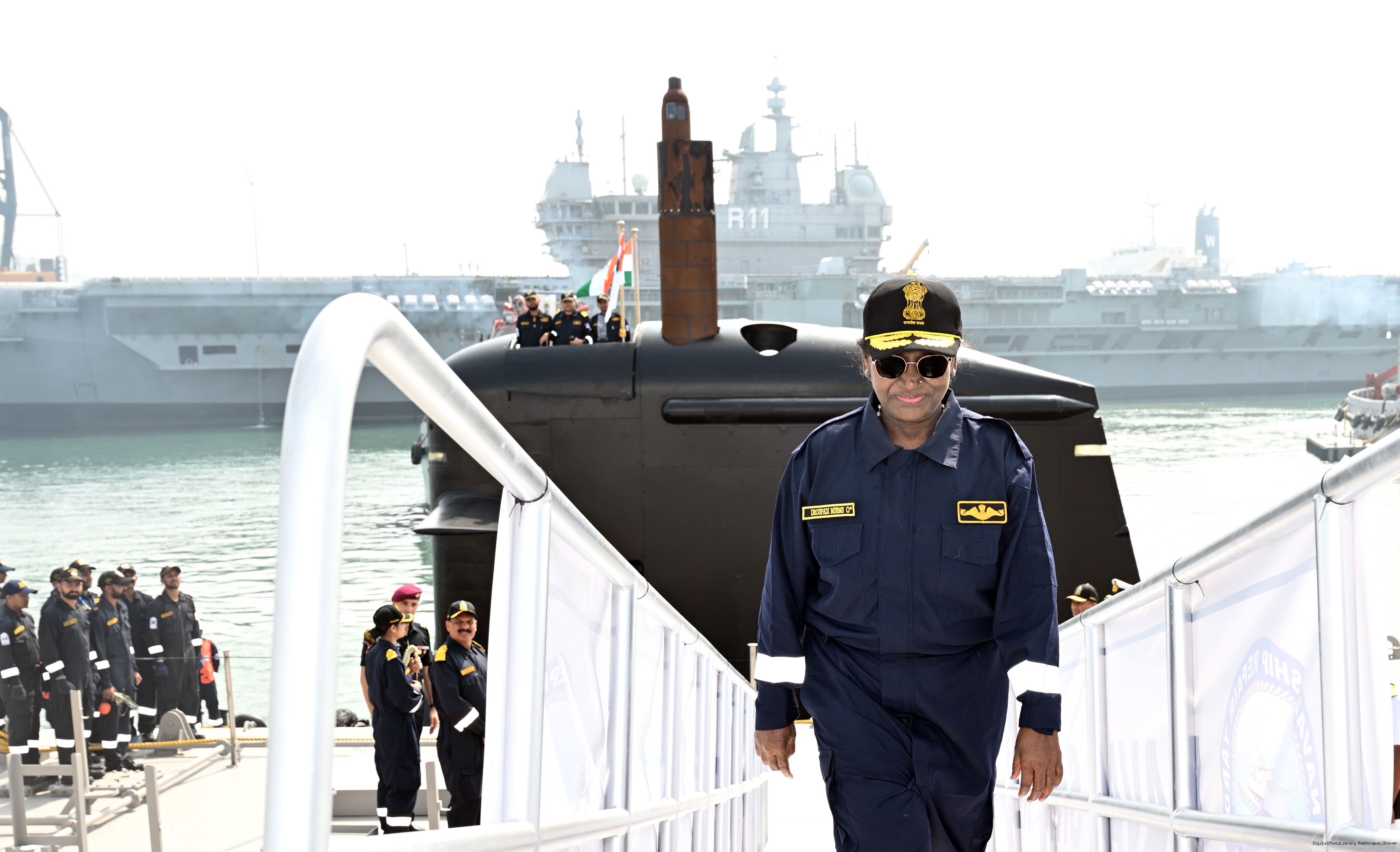 | Caption: | The President of India, Smt Droupadi Murmu undertook a dived sortie onboard Submarine – INS Vaghsheer on Western Seaboard at Karwar Naval Harbour, Karnataka on December 28, 2025. |