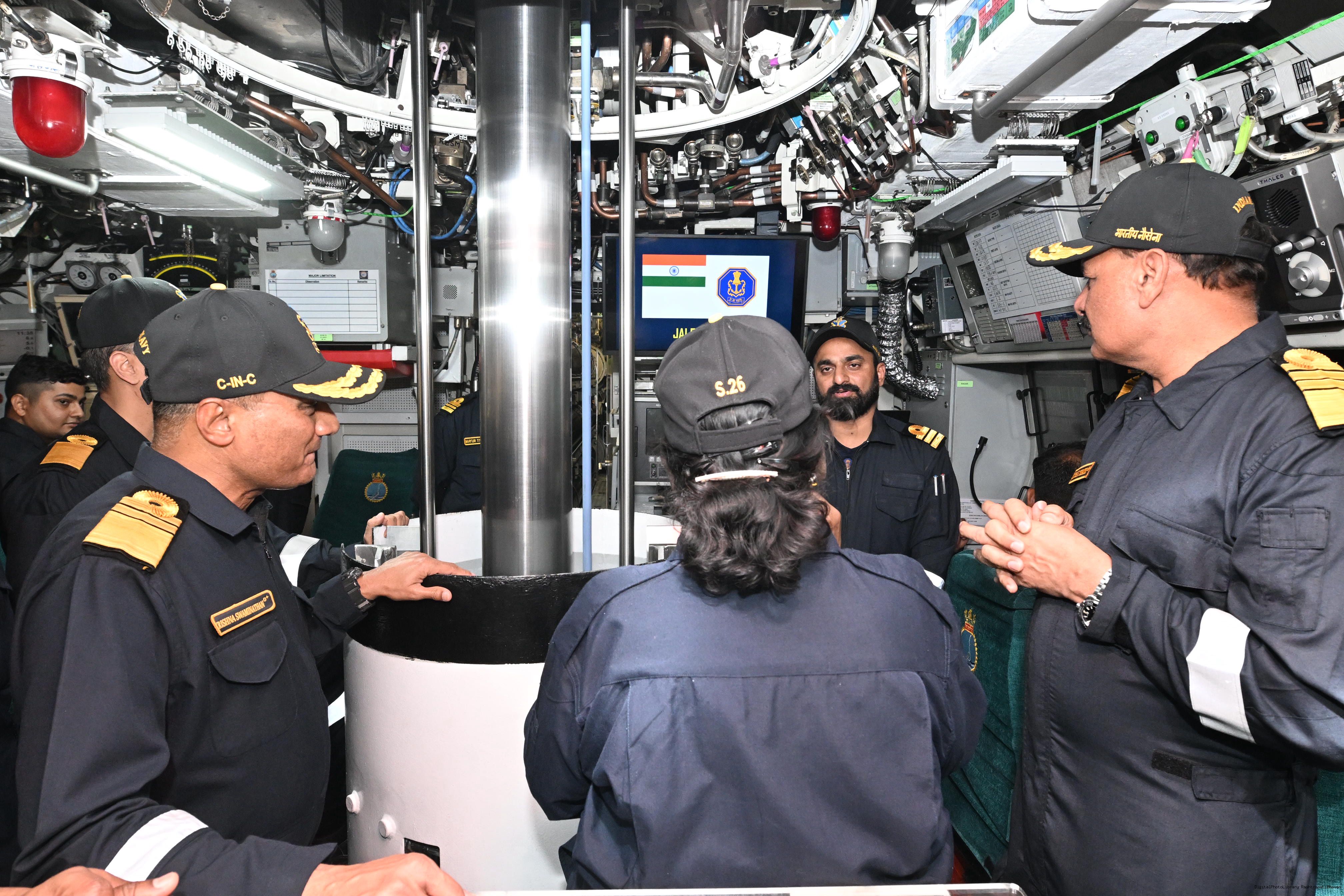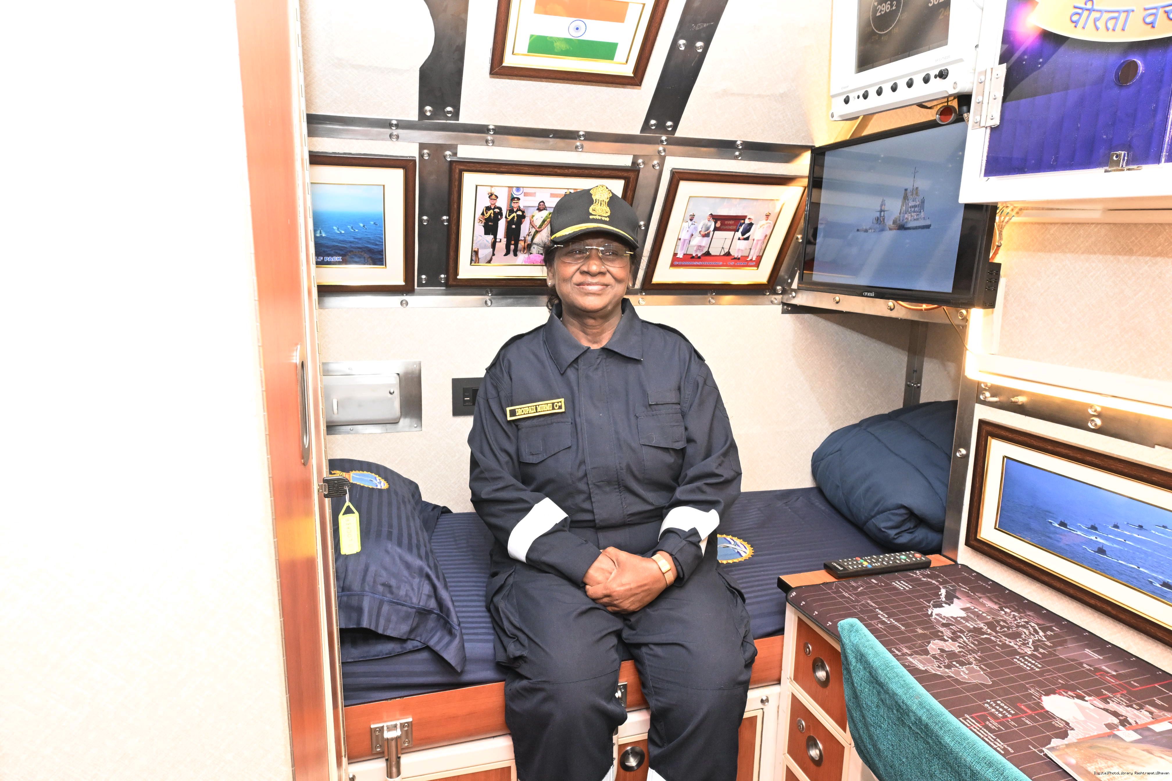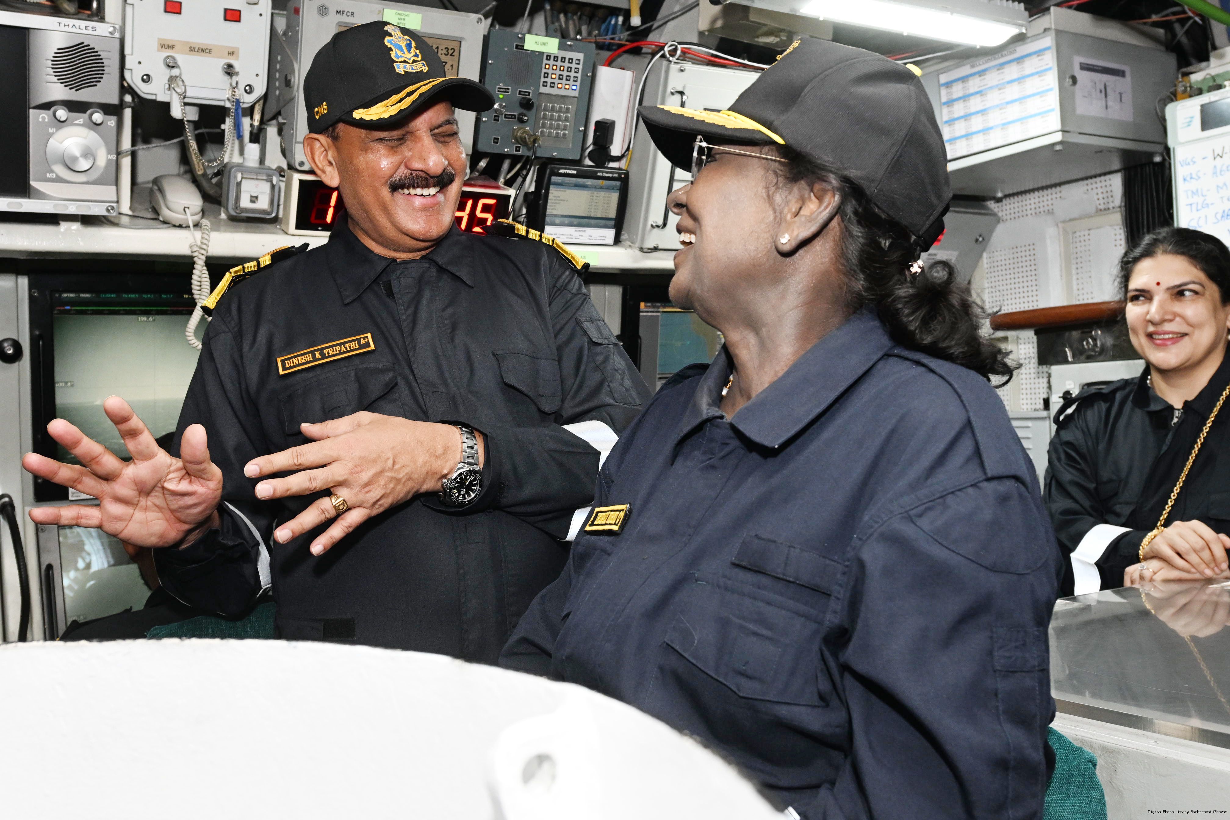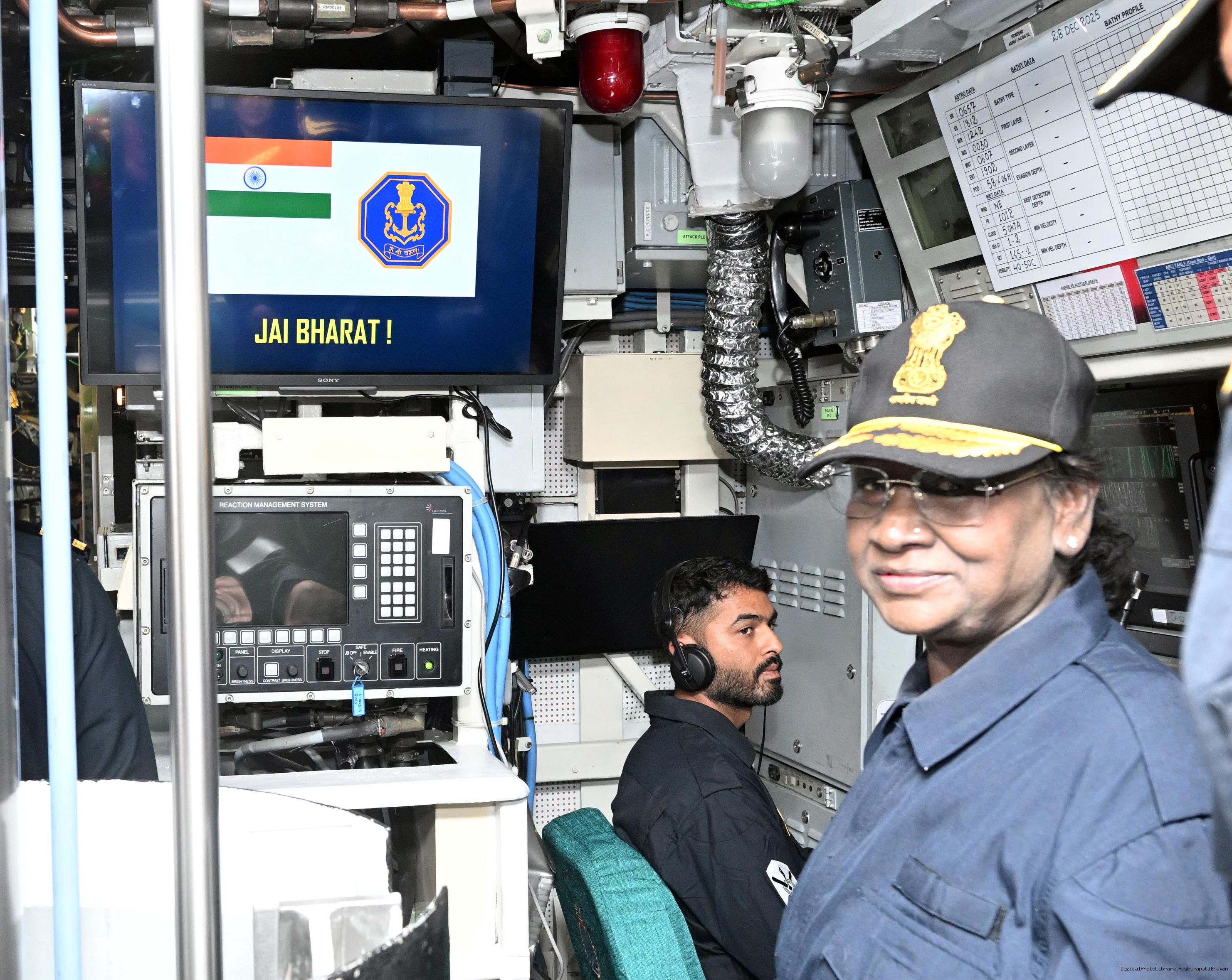 | Caption: | The President of India, Smt Droupadi Murmu undertook a dived sortie onboard Submarine – INS Vaghsheer on Western Seaboard at Karwar Naval Harbour, Karnataka on December 28, 2025. |