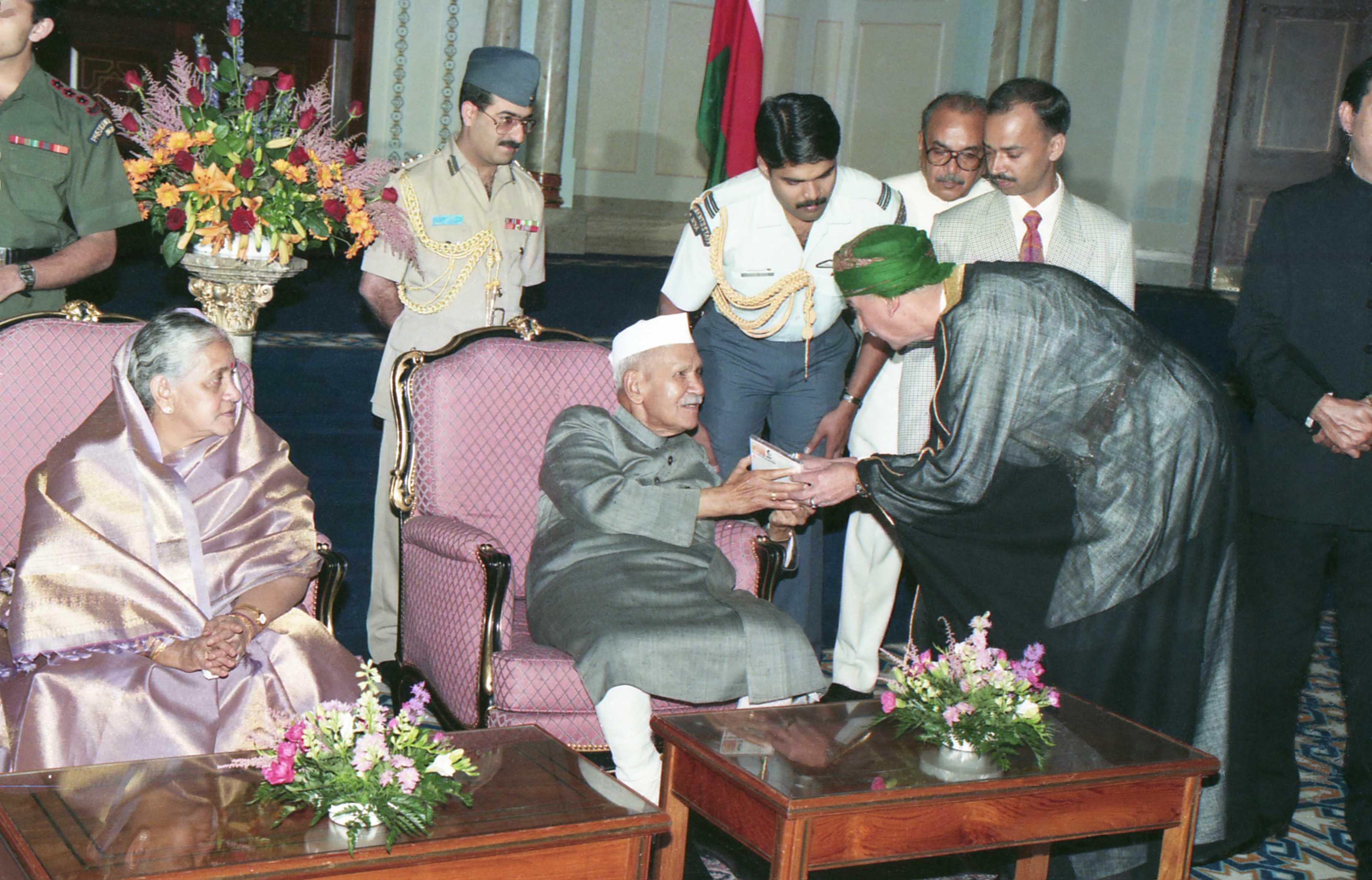 | Caption: | The President of India, Dr. Shankar Dayal Sharma meeting with Indian Community at a Reception hosted by the Indian Ambassador to Oman, Shri Indrajit Singh Rathore, in Muscat on October 04, 1996. |
