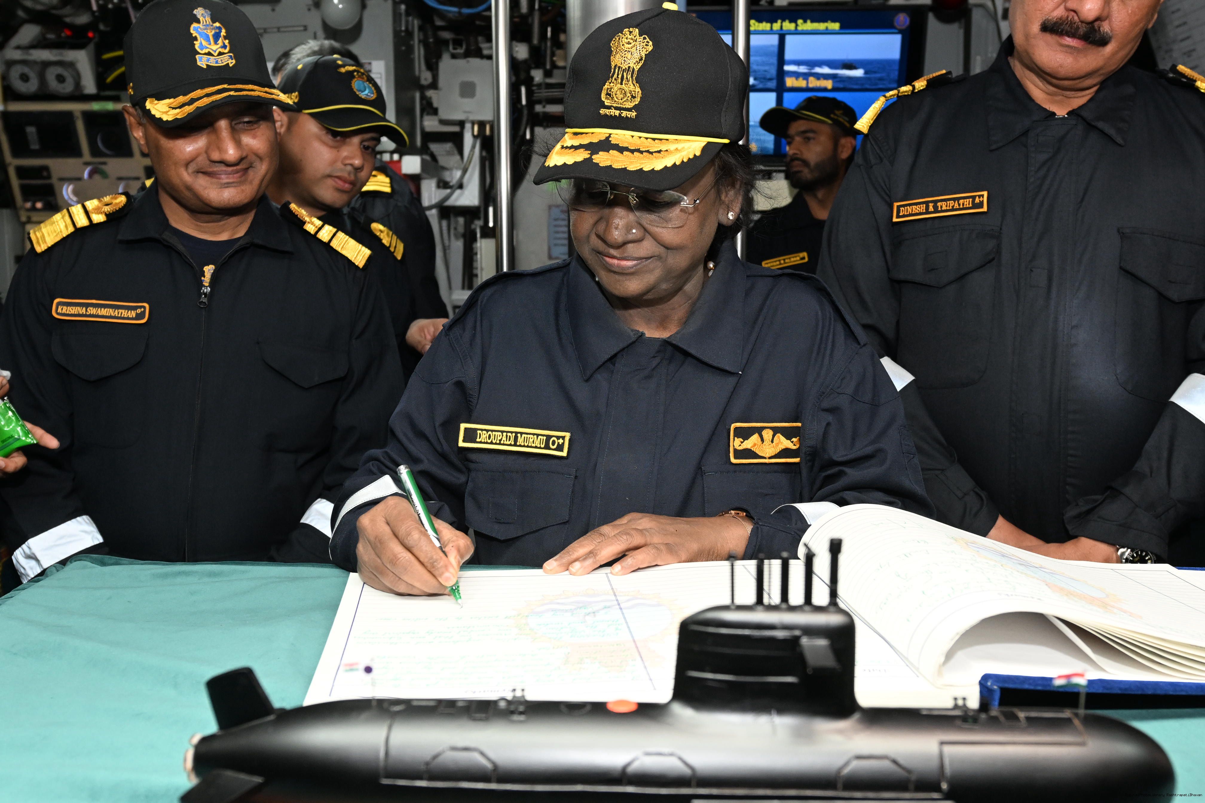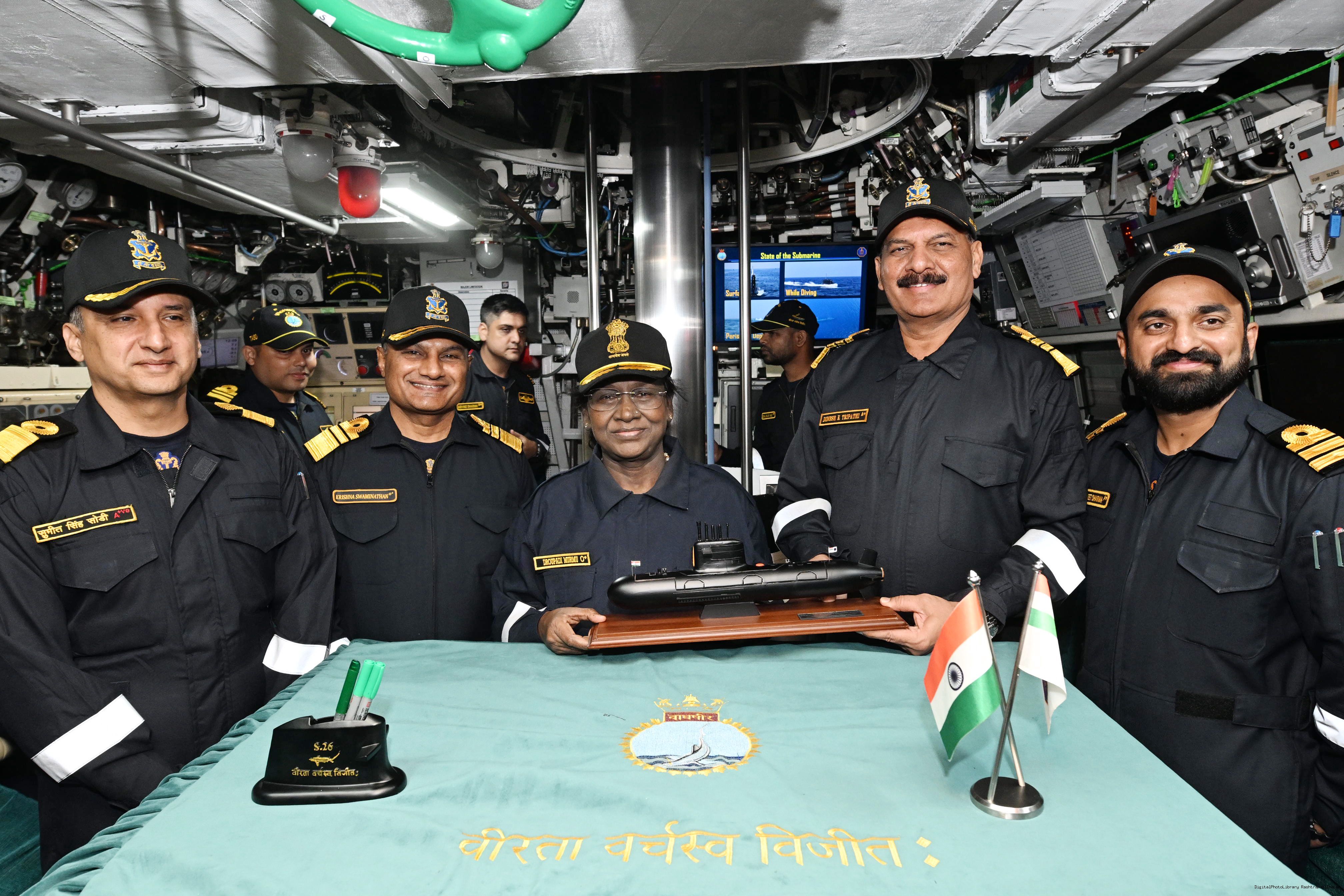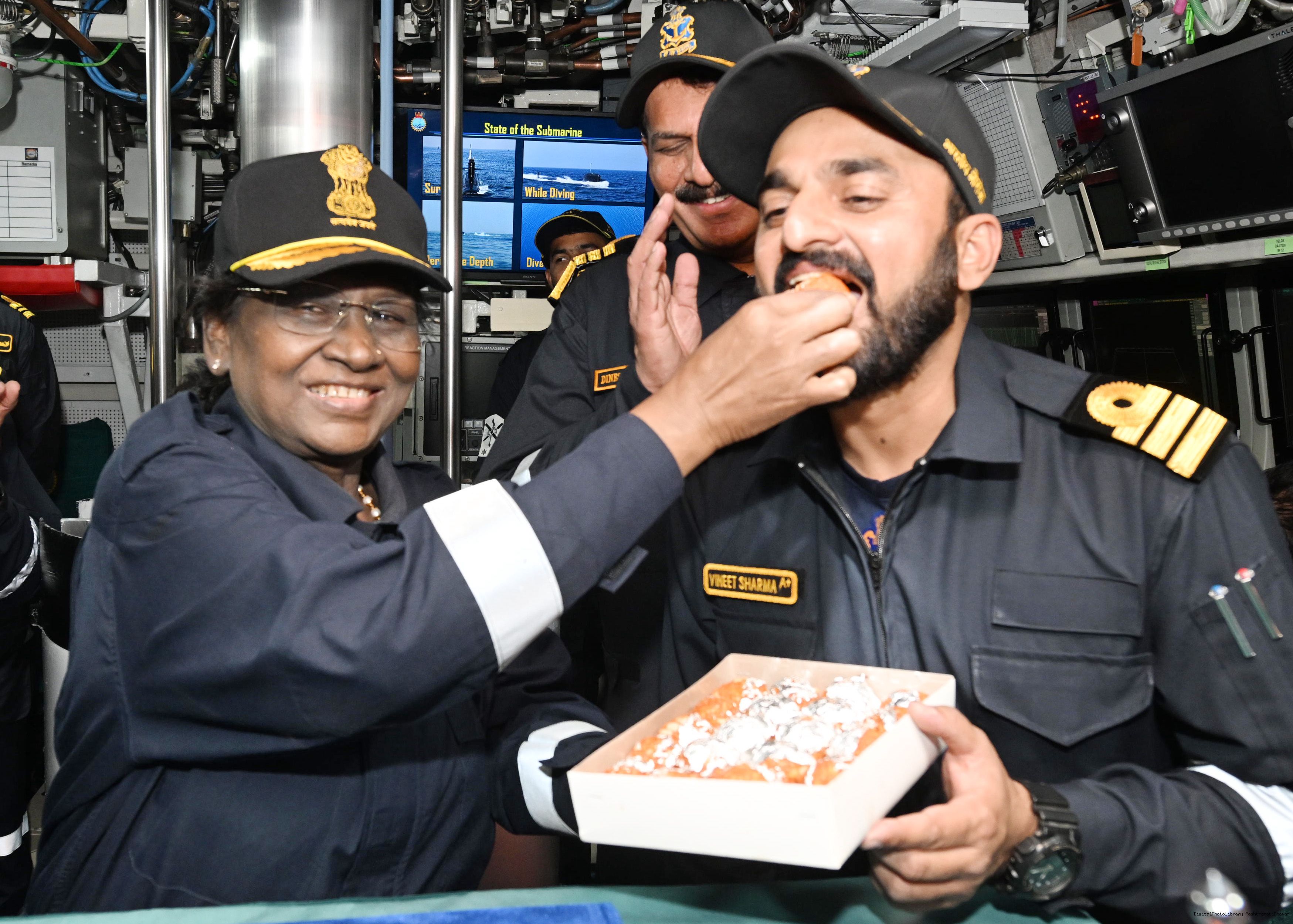 | Caption: | The President of India, Smt Droupadi Murmu undertook a dived sortie onboard Submarine – INS Vaghsheer on Western Seaboard at Karwar Naval Harbour, Karnataka on December 28, 2025. |