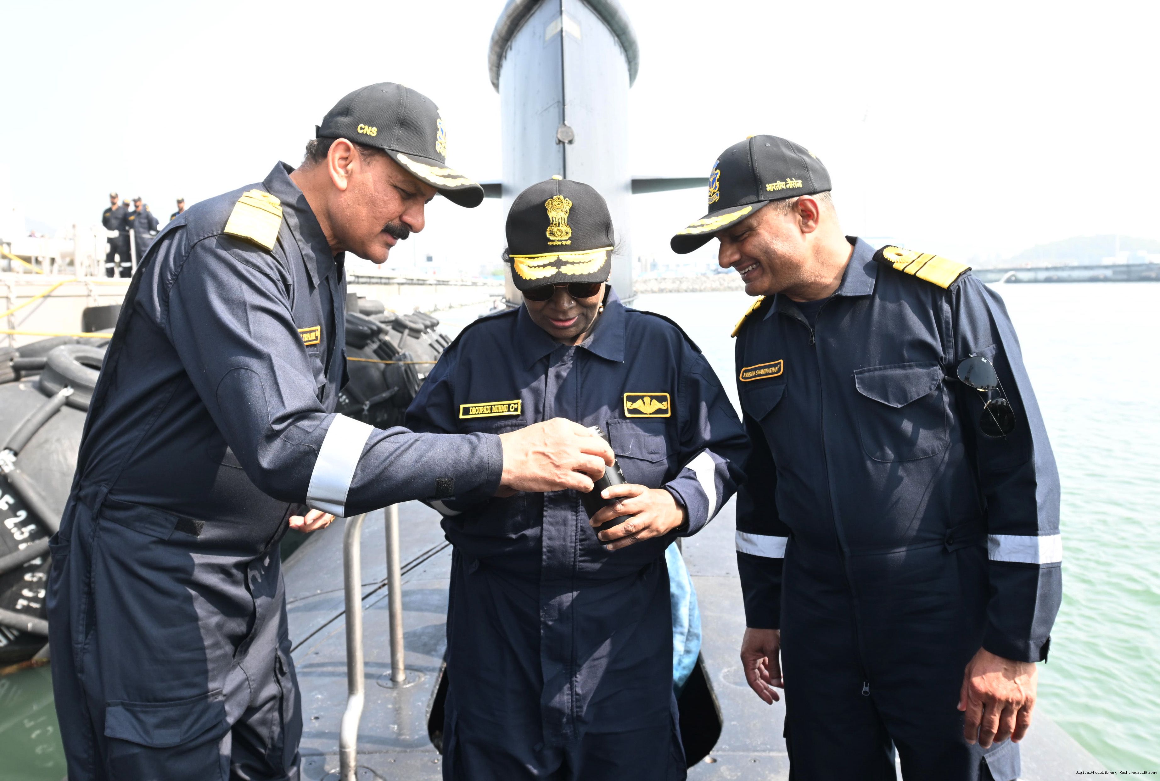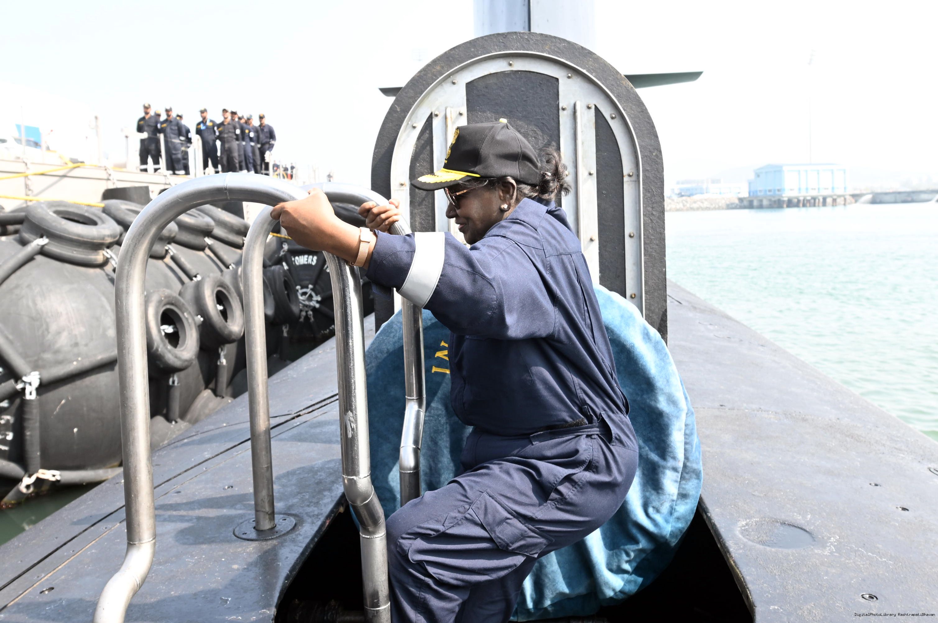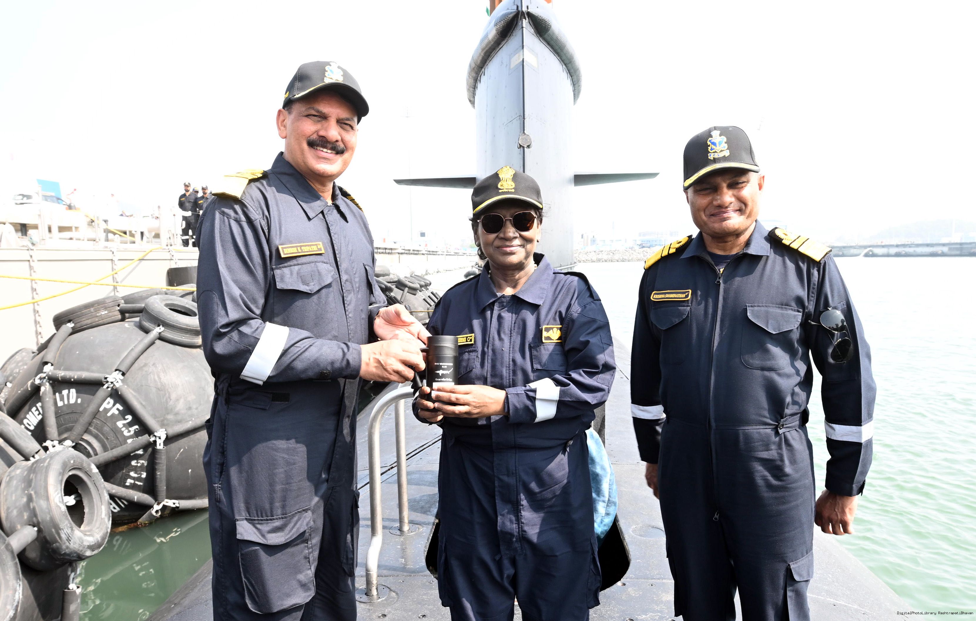 | Caption: | The President of India, Smt Droupadi Murmu undertook a dived sortie onboard Submarine – INS Vaghsheer on Western Seaboard at Karwar Naval Harbour, Karnataka on December 28, 2025. |