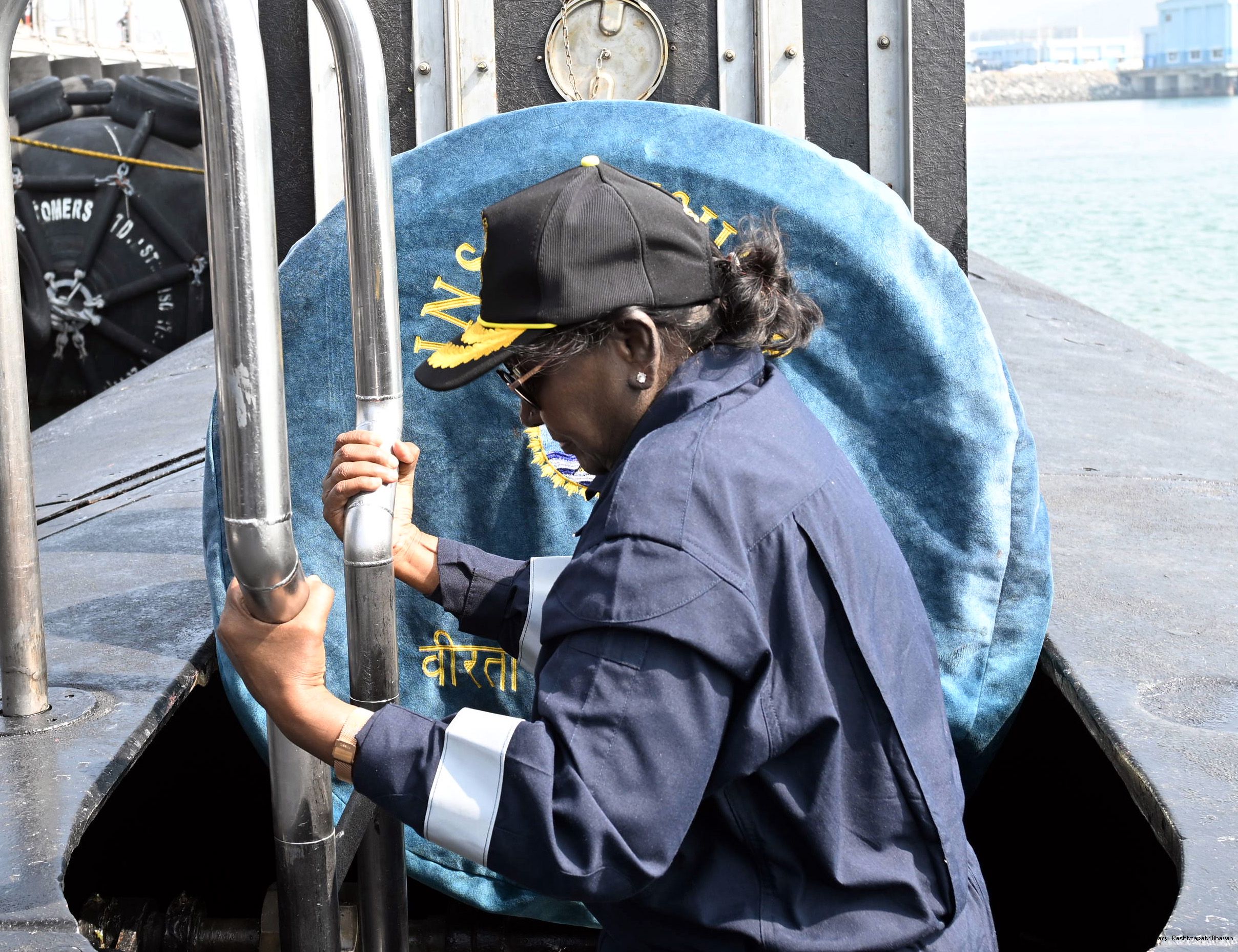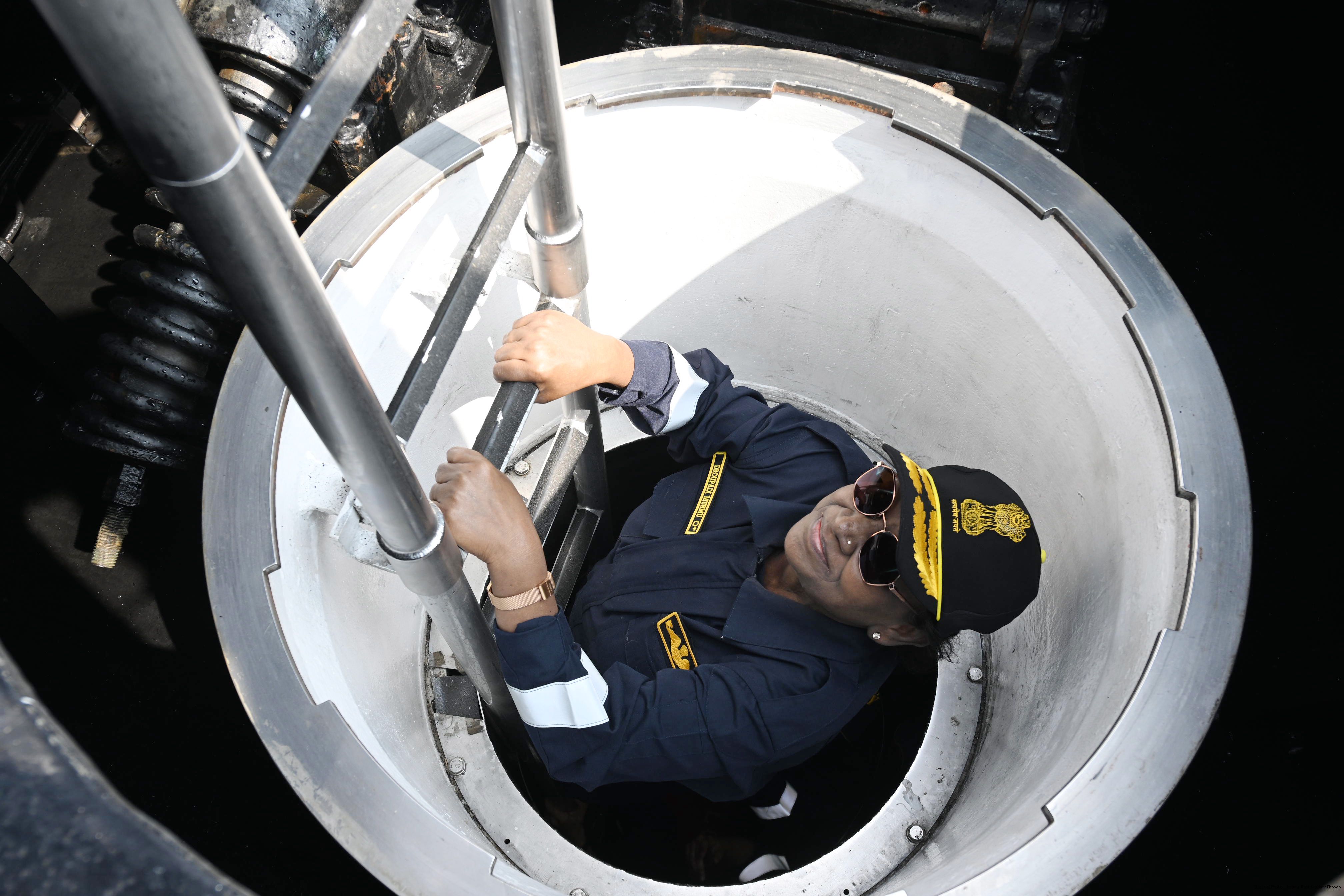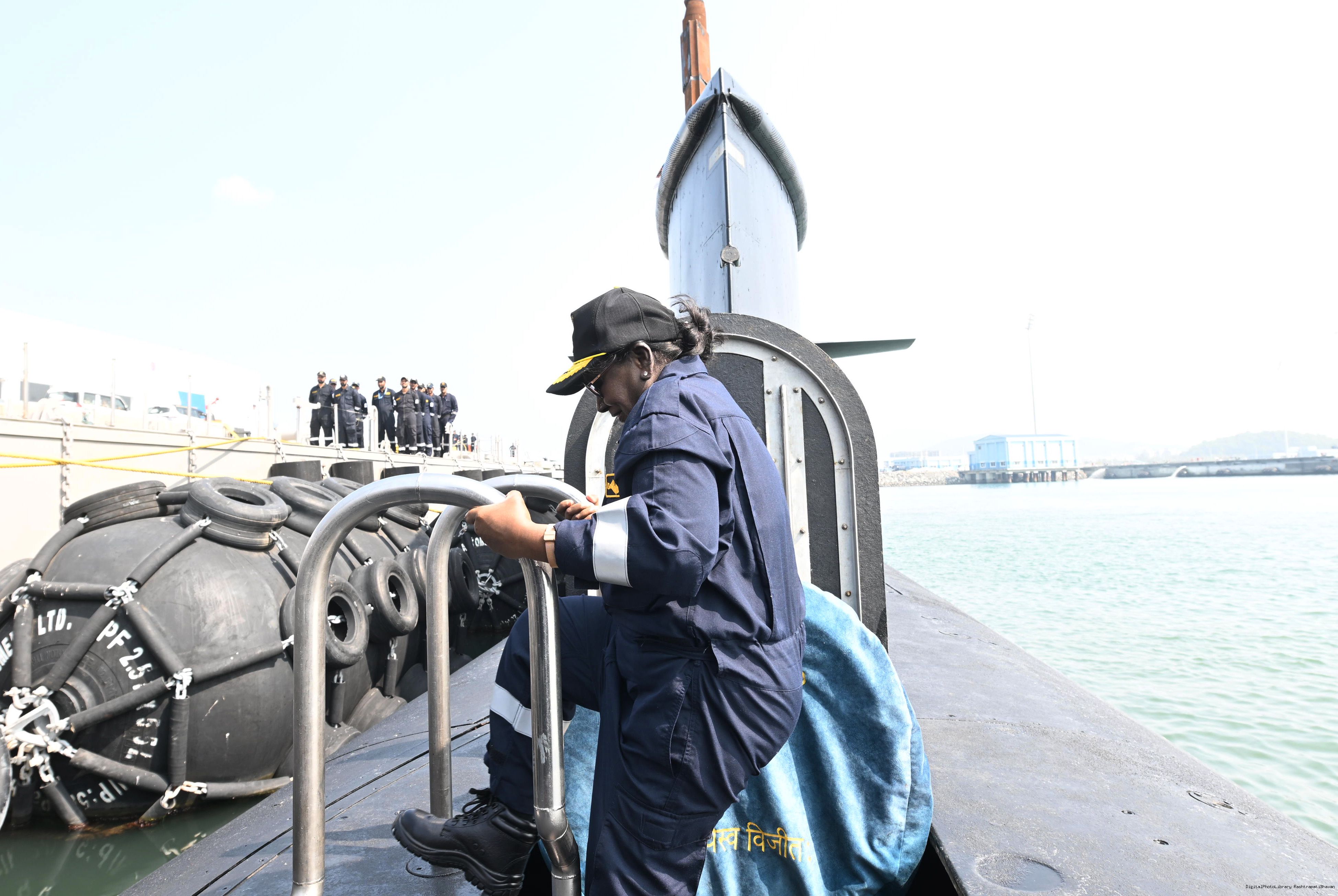 | Caption: | The President of India, Smt Droupadi Murmu undertook a dived sortie onboard Submarine – INS Vaghsheer on Western Seaboard at Karwar Naval Harbour, Karnataka on December 28, 2025. |