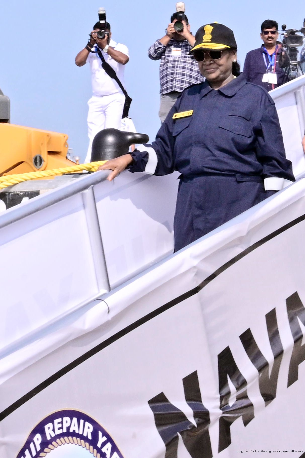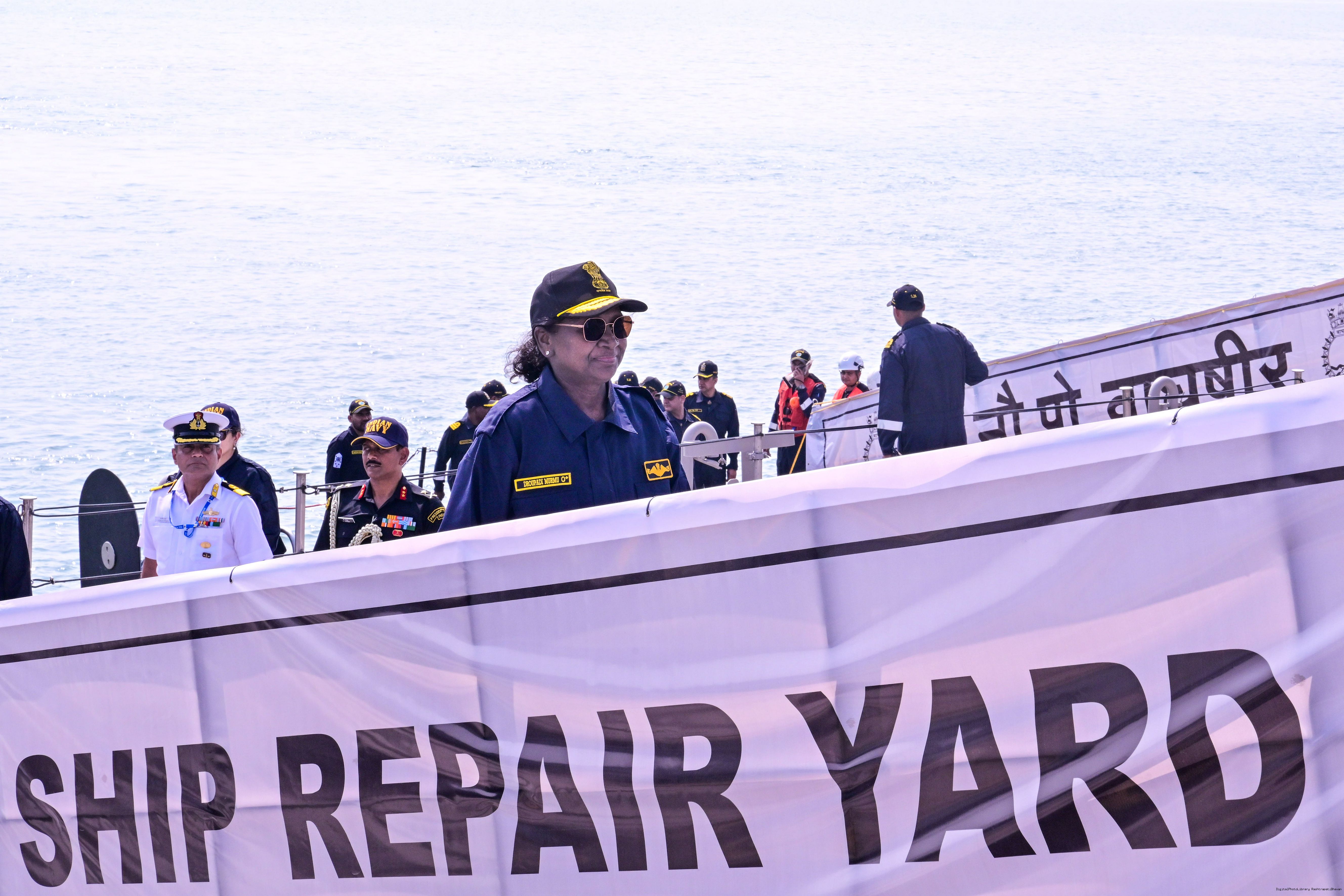 | Caption: | The President of India, Smt Droupadi Murmu undertook a dived sortie onboard Submarine – INS Vaghsheer on Western Seaboard at Karwar Naval Harbour, Karnataka on December 28, 2025. |
