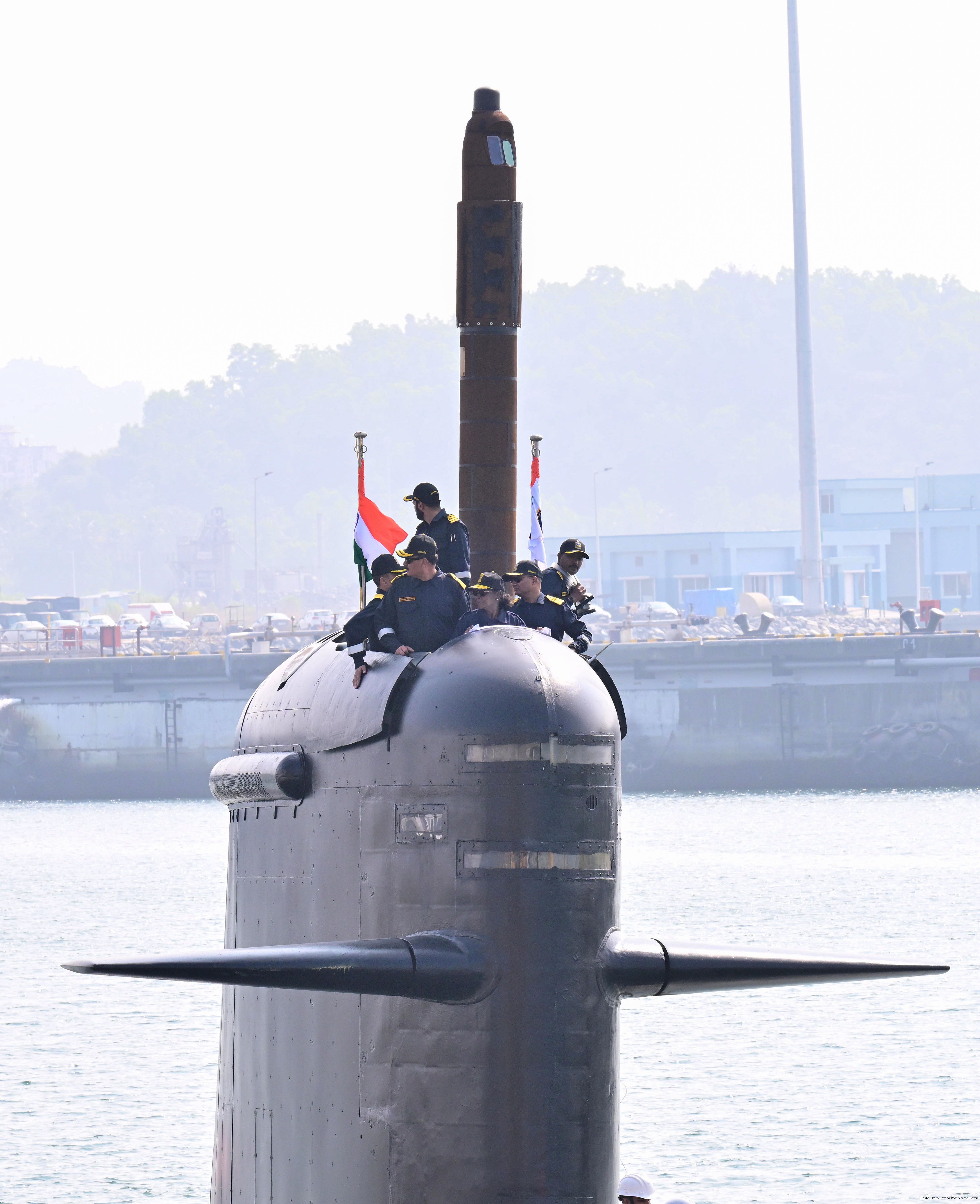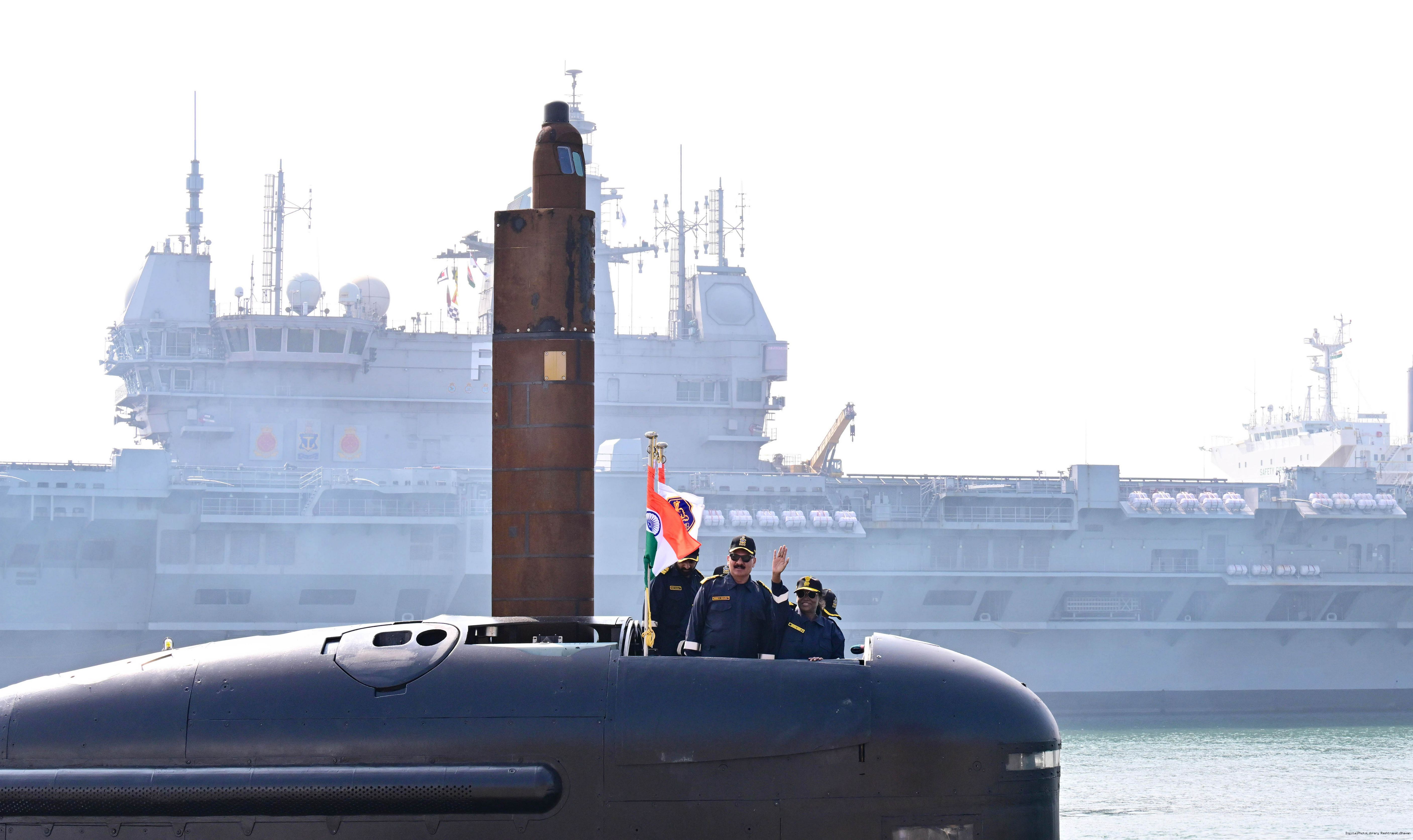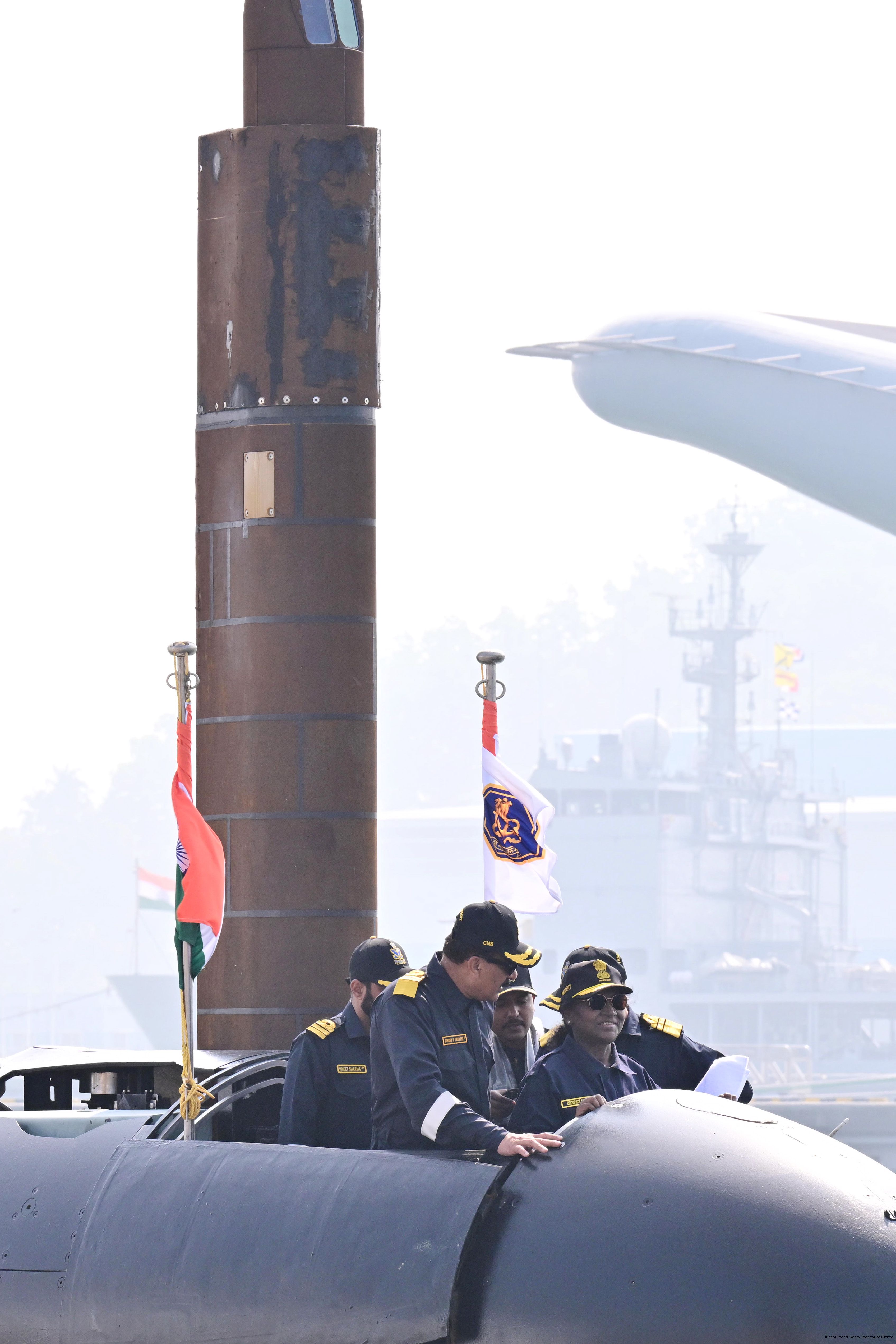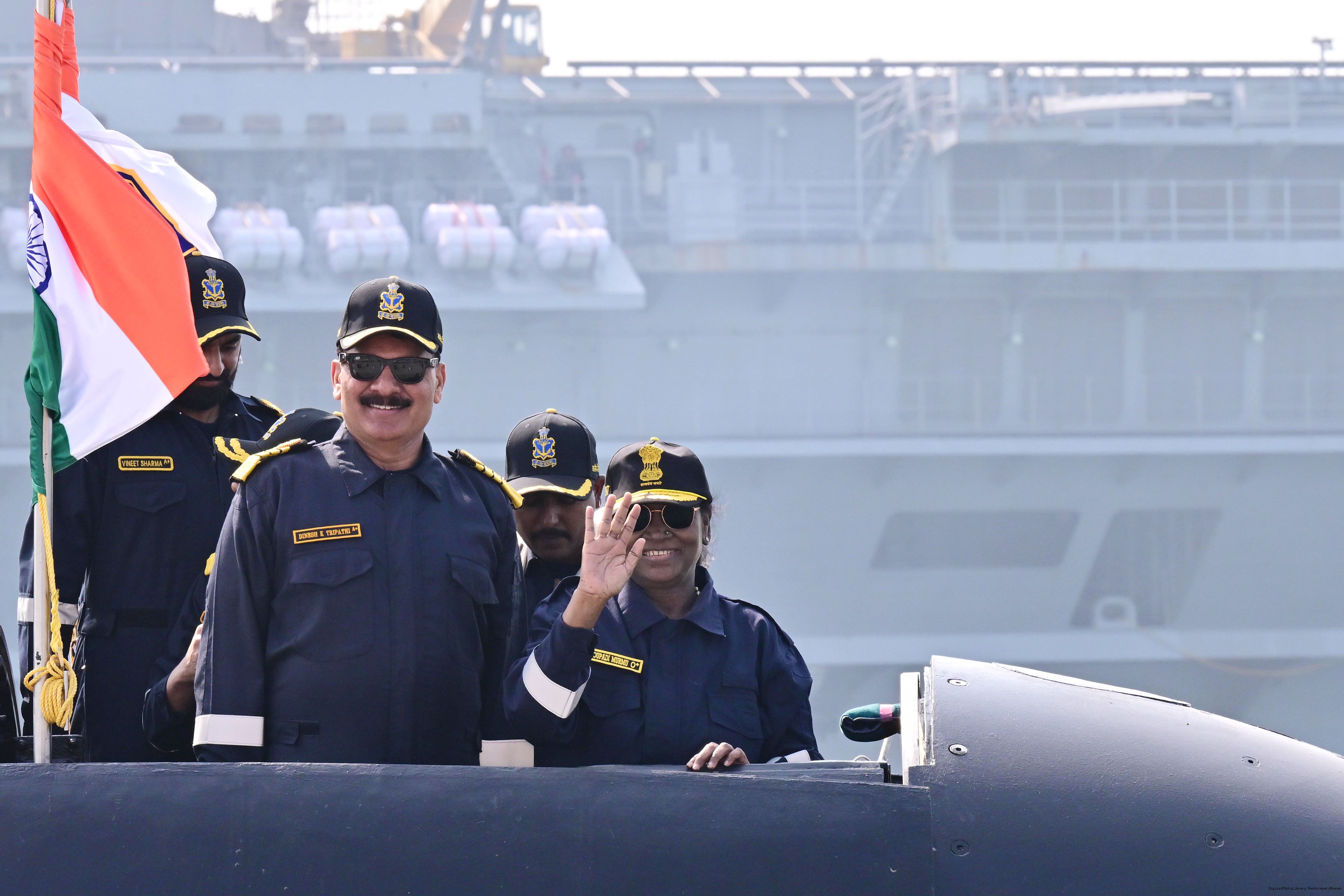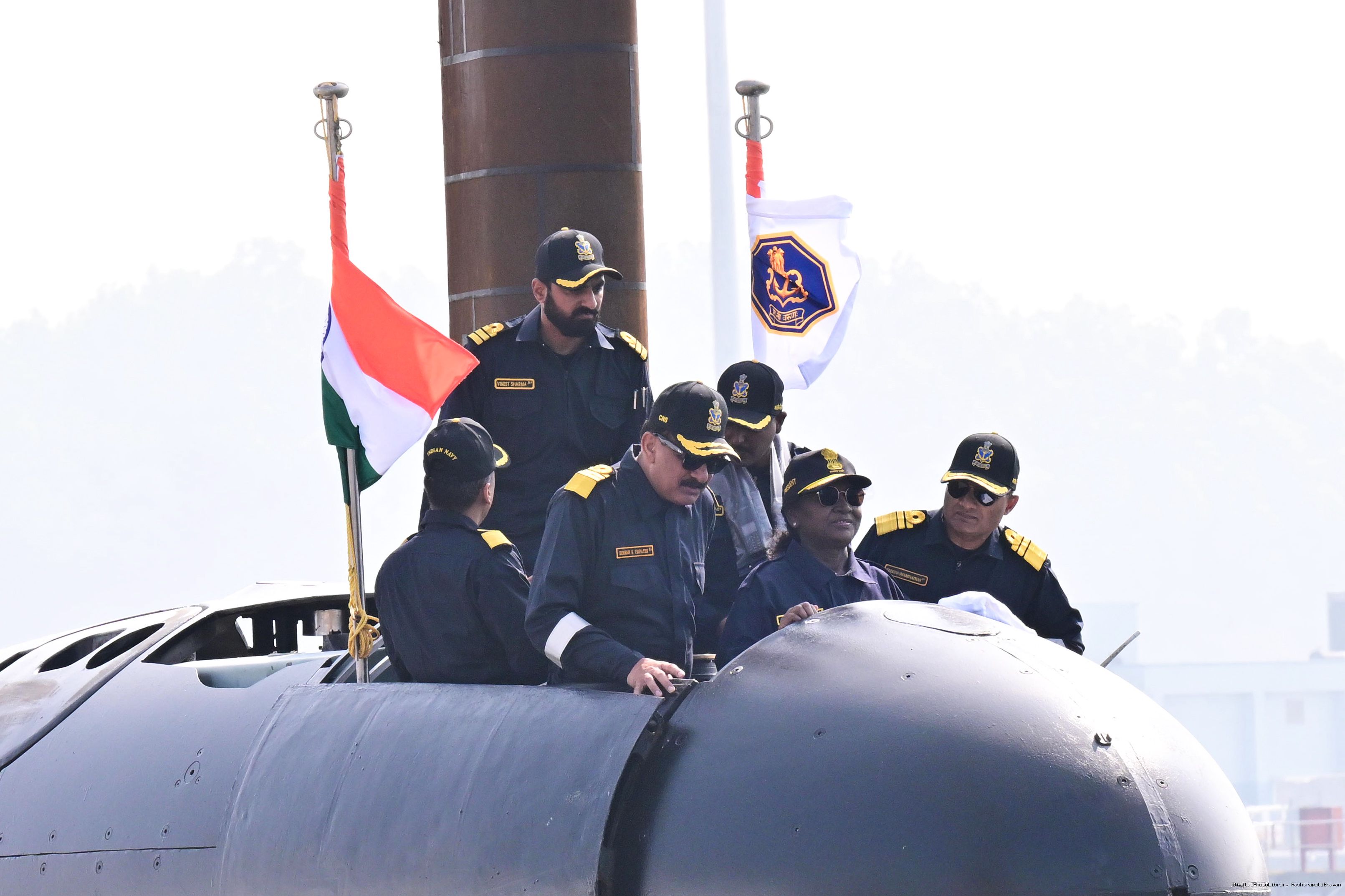 | Caption: | The President of India, Smt Droupadi Murmu undertook a dived sortie onboard Submarine – INS Vaghsheer on Western Seaboard at Karwar Naval Harbour, Karnataka on December 28, 2025. |