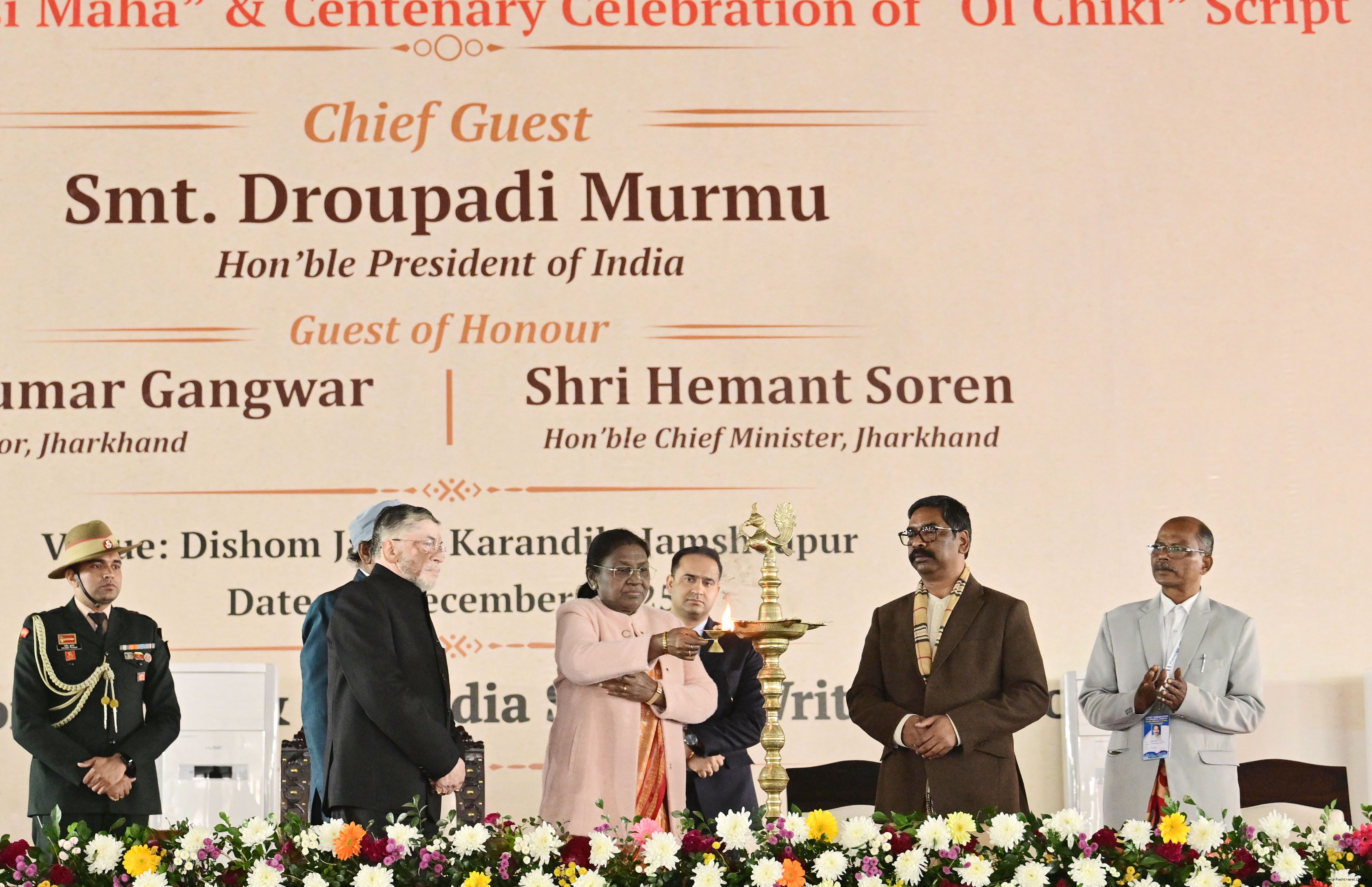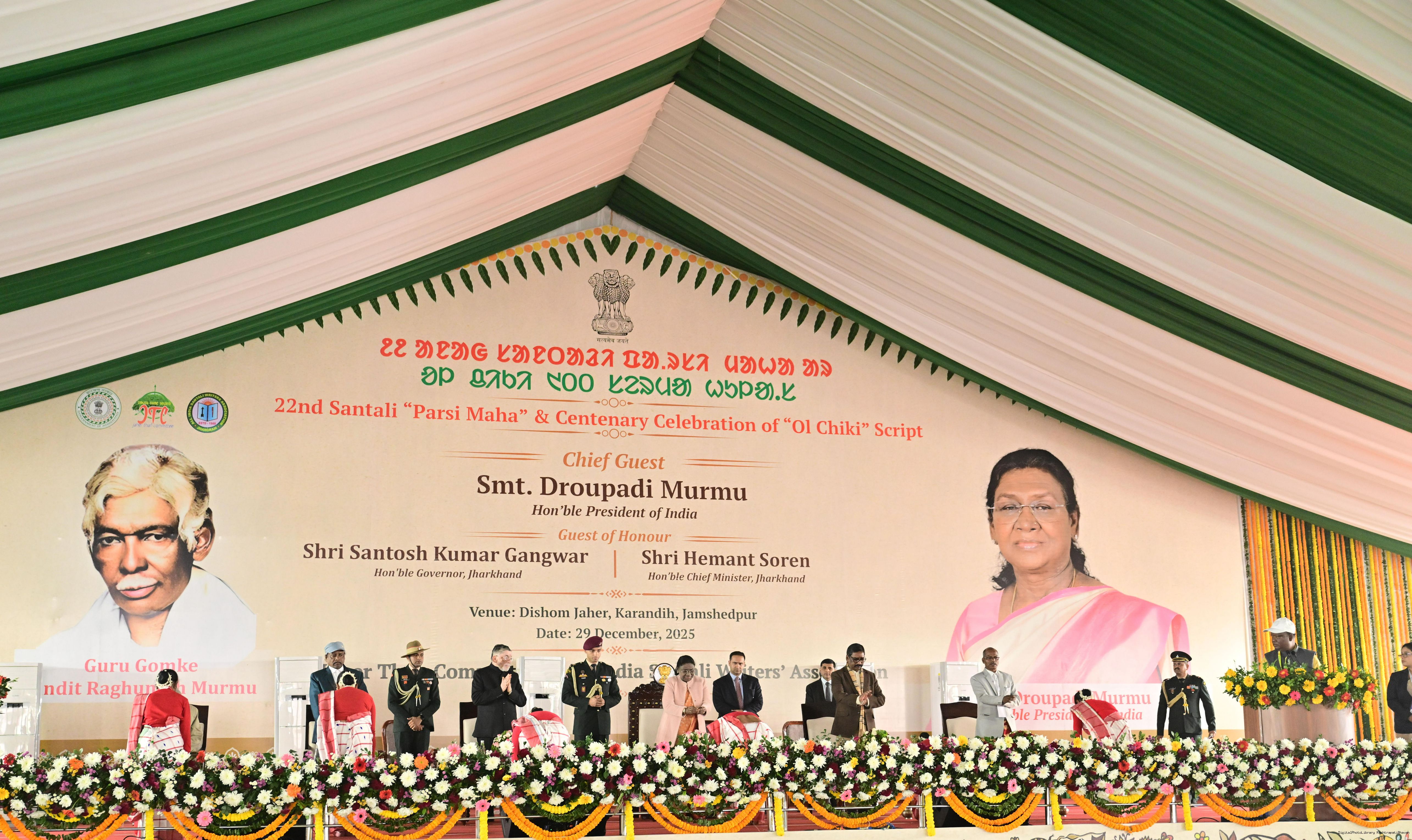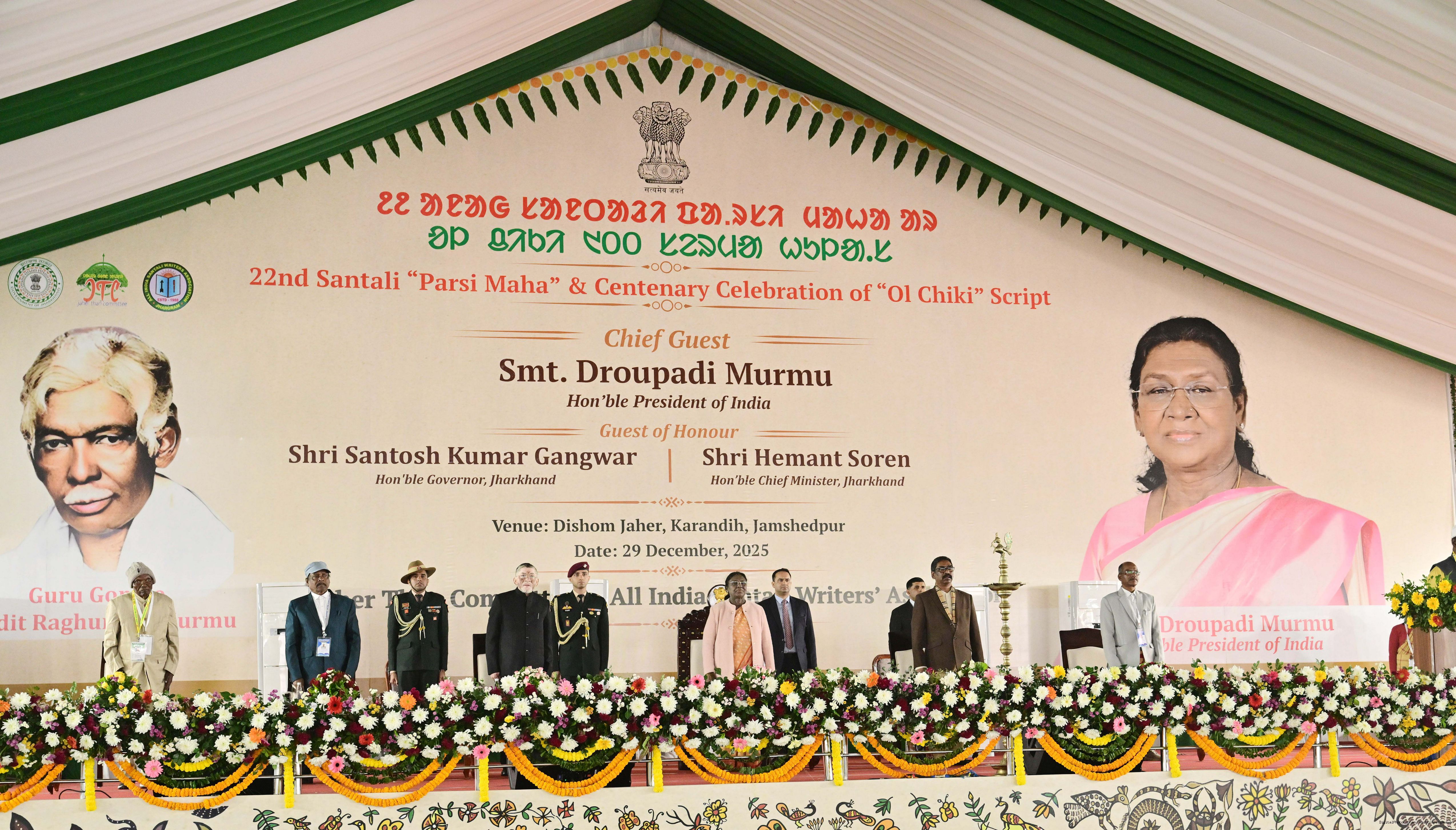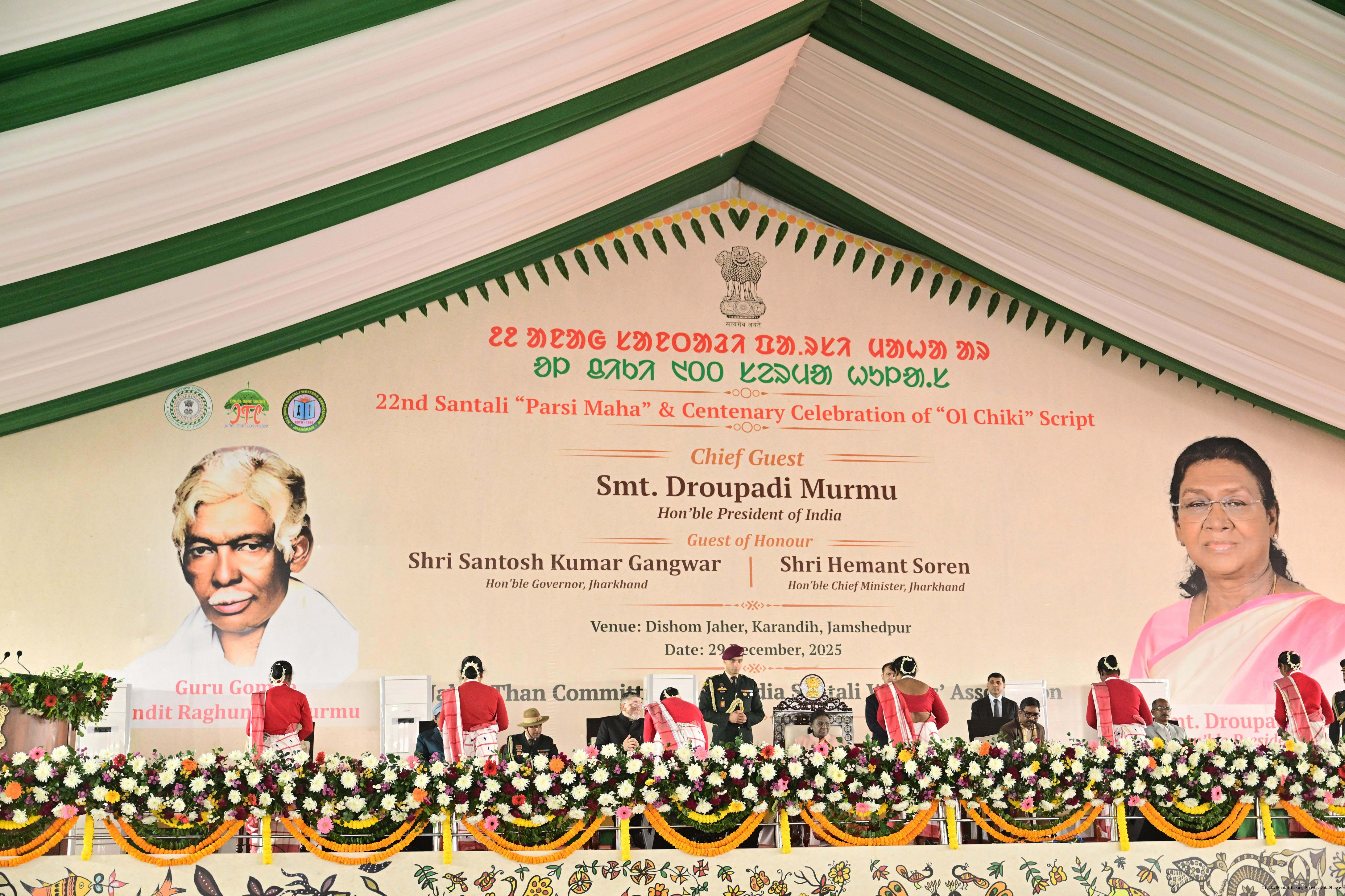 | Caption: | The President of India, Smt Droupadi Murmu addressed the closing ceremony of the 22nd Parsi Maha and the centenary celebrations of Ol Chiki at Jamshedpur, Jharkhand on December 29, 2025. |