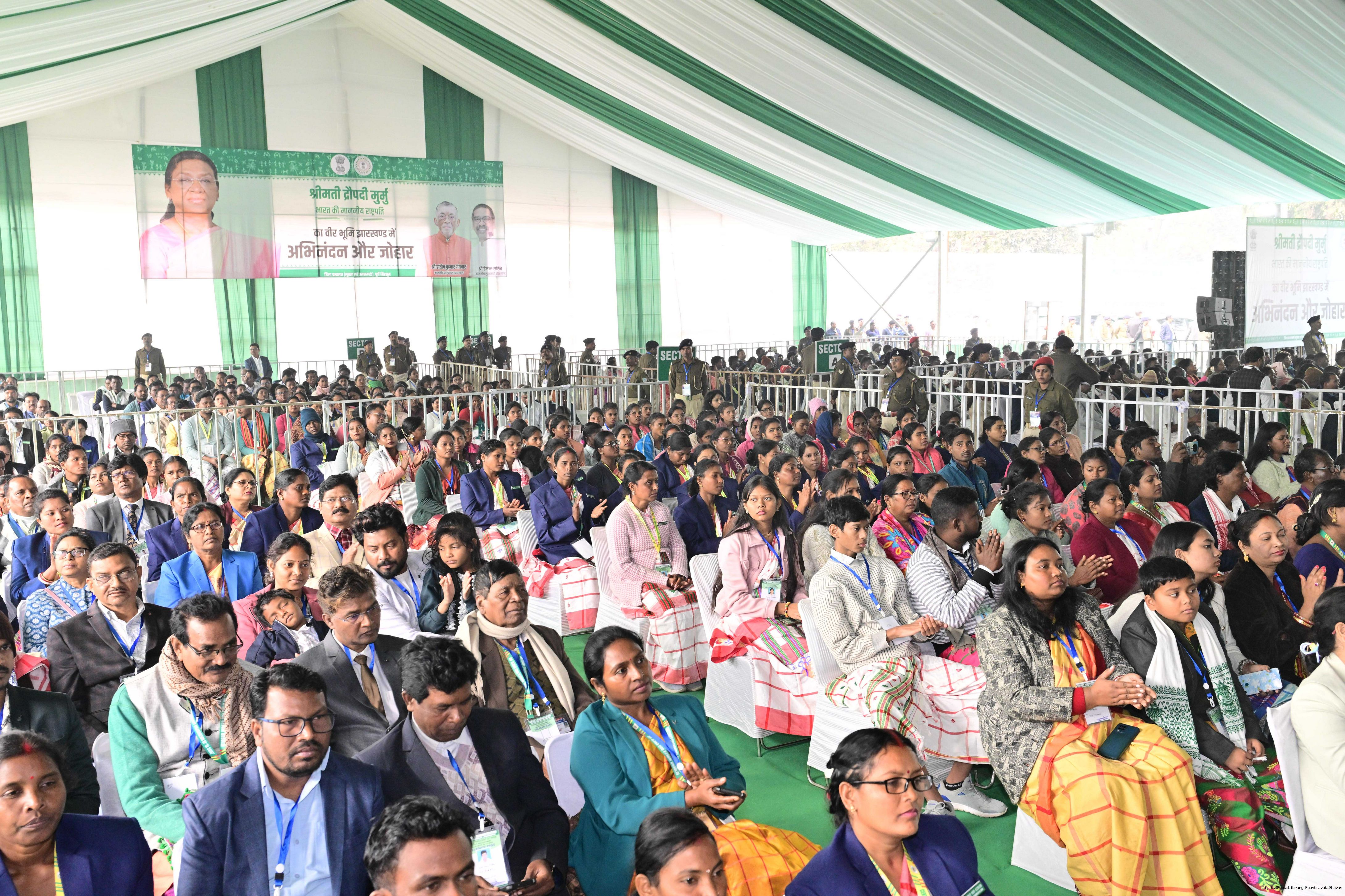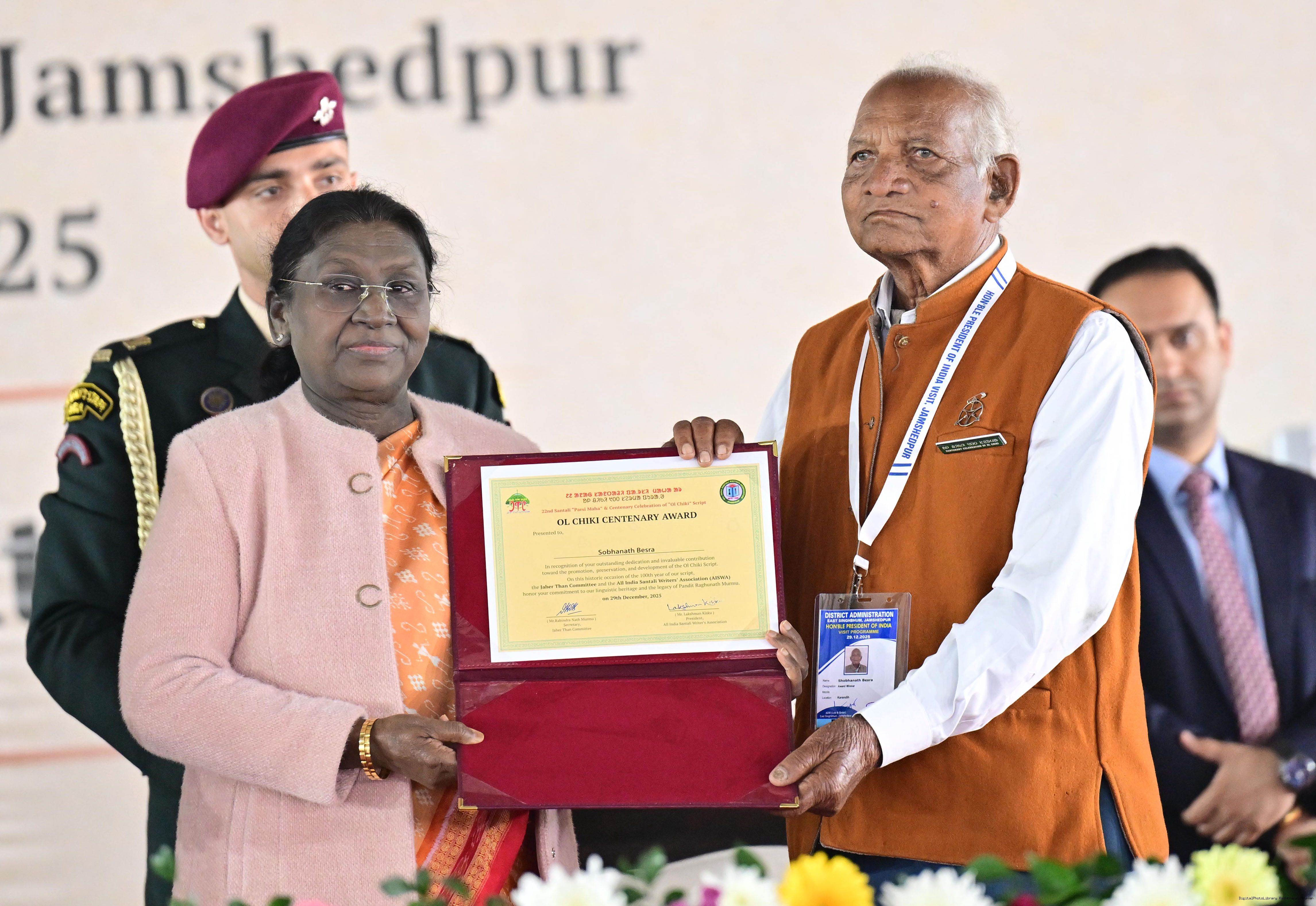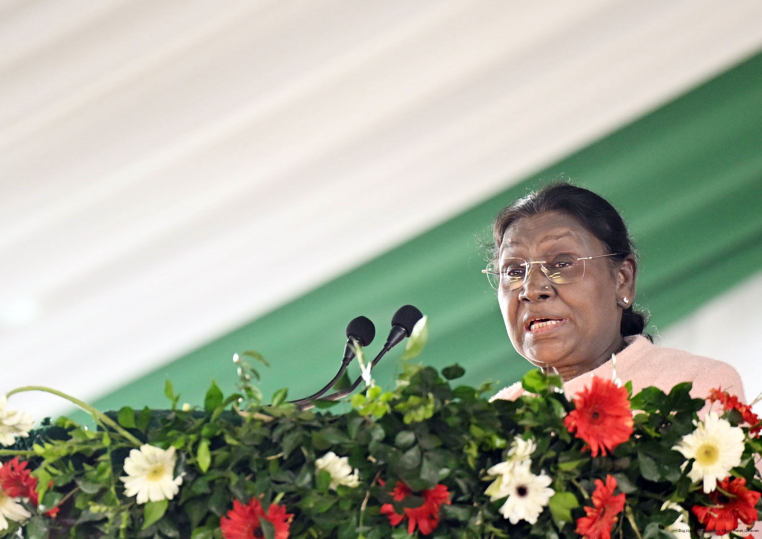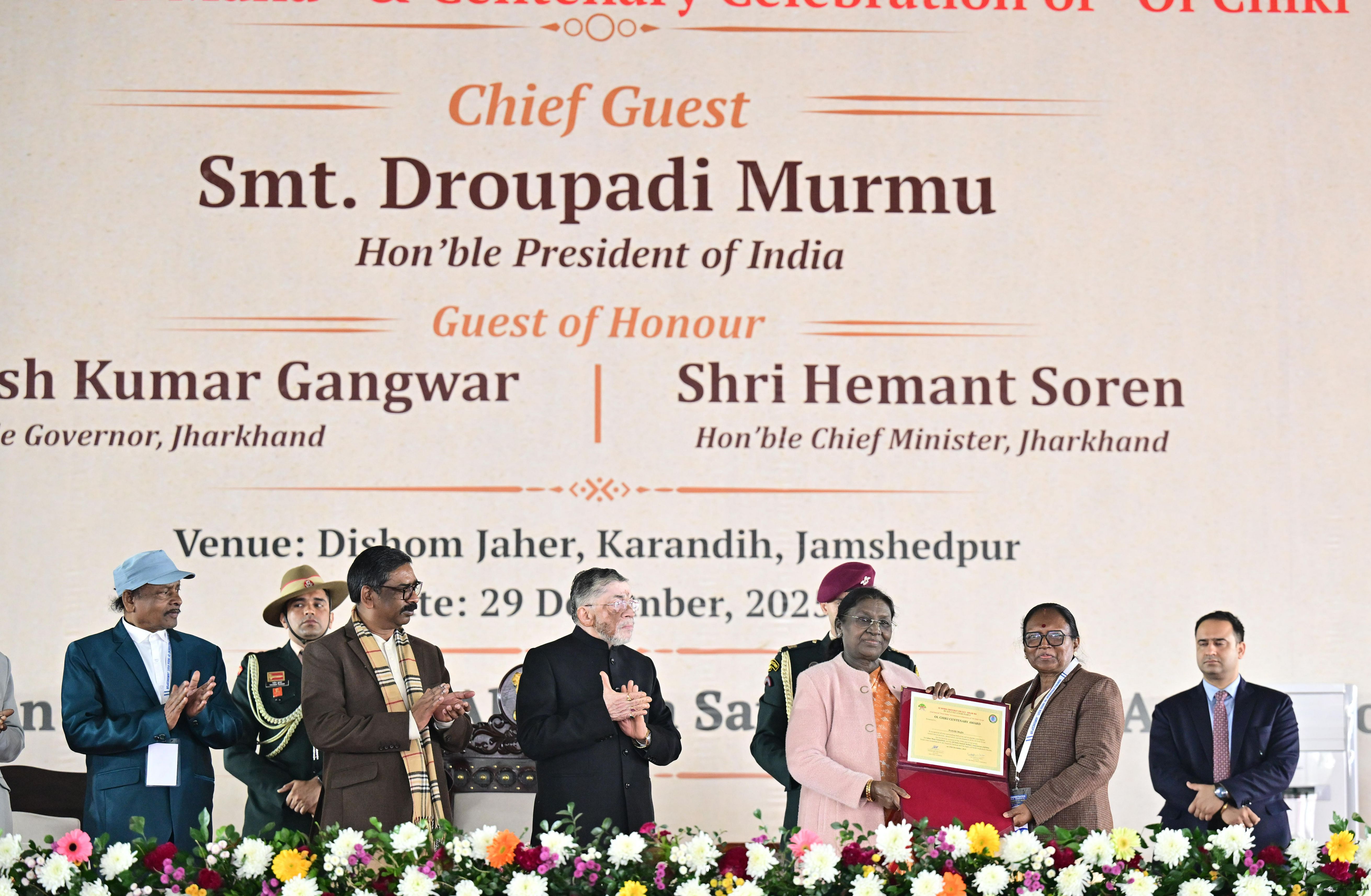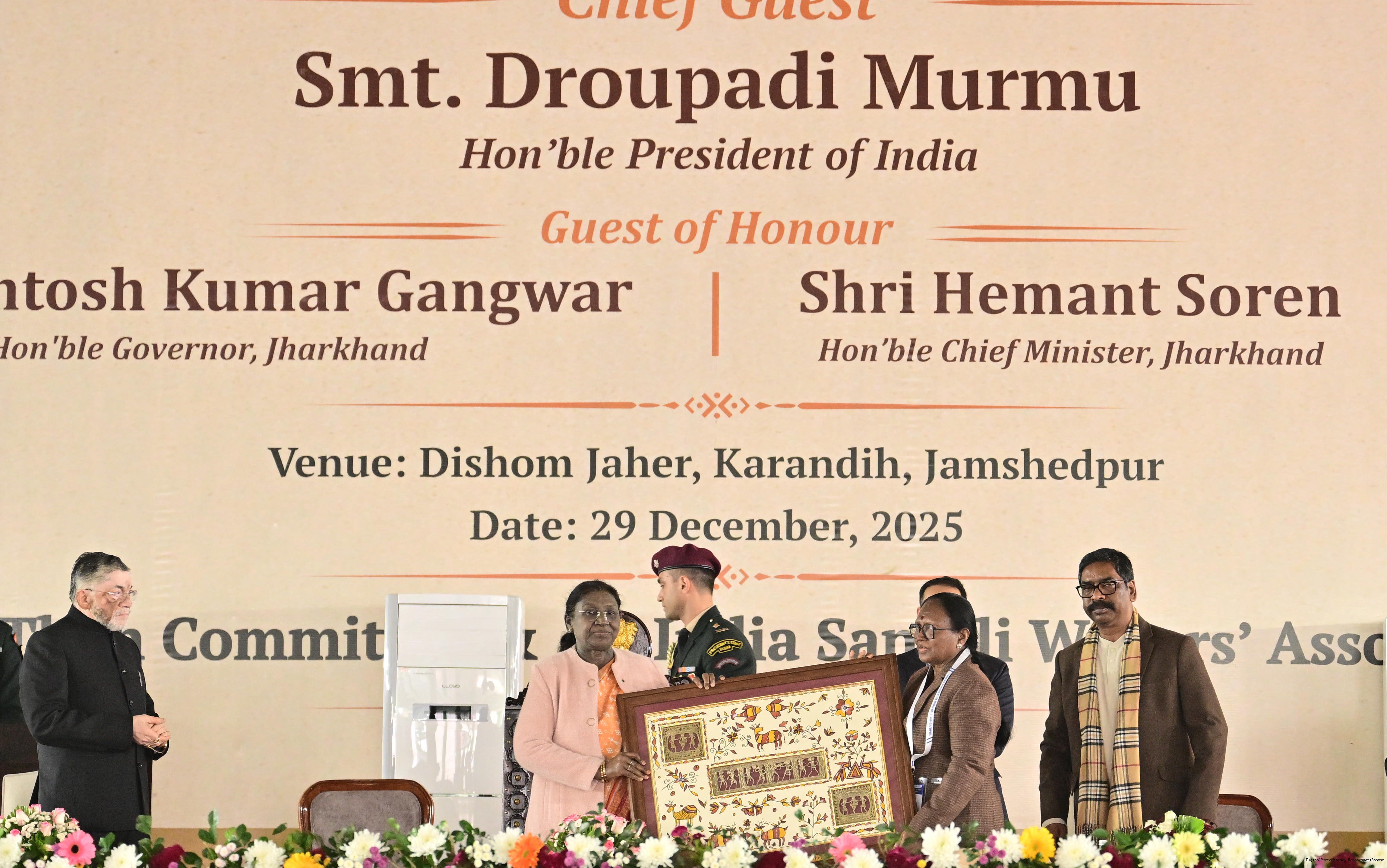 | Caption: | The President of India, Smt Droupadi Murmu addressed the closing ceremony of the 22nd Parsi Maha and the centenary celebrations of Ol Chiki at Jamshedpur, Jharkhand on December 29, 2025. |