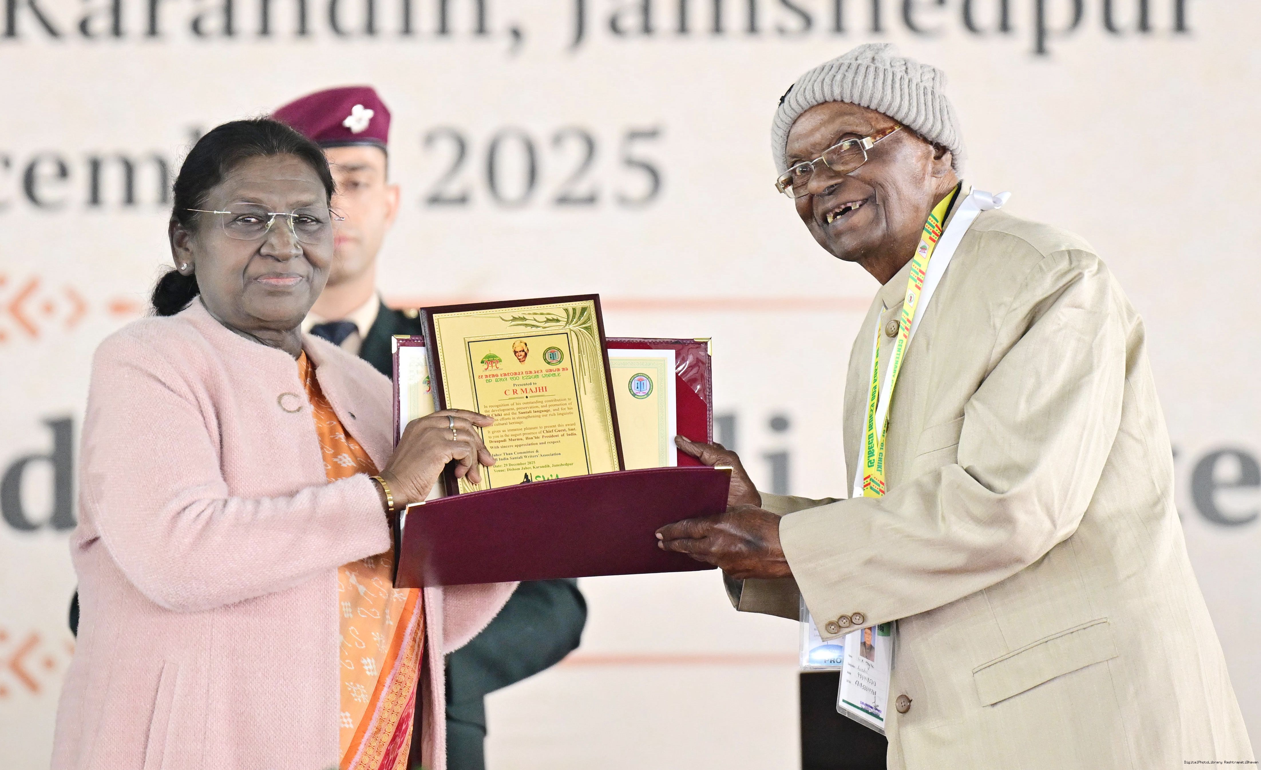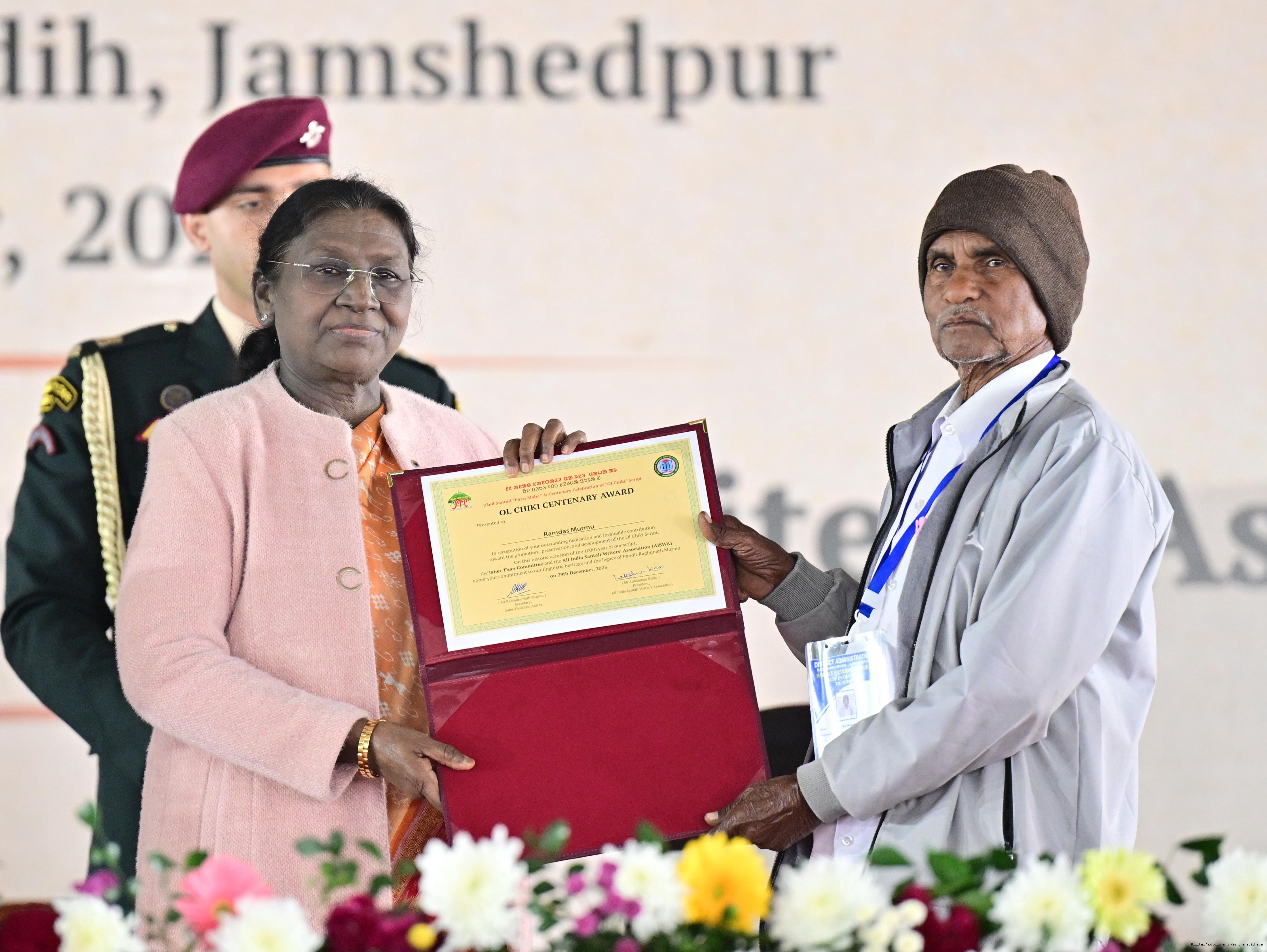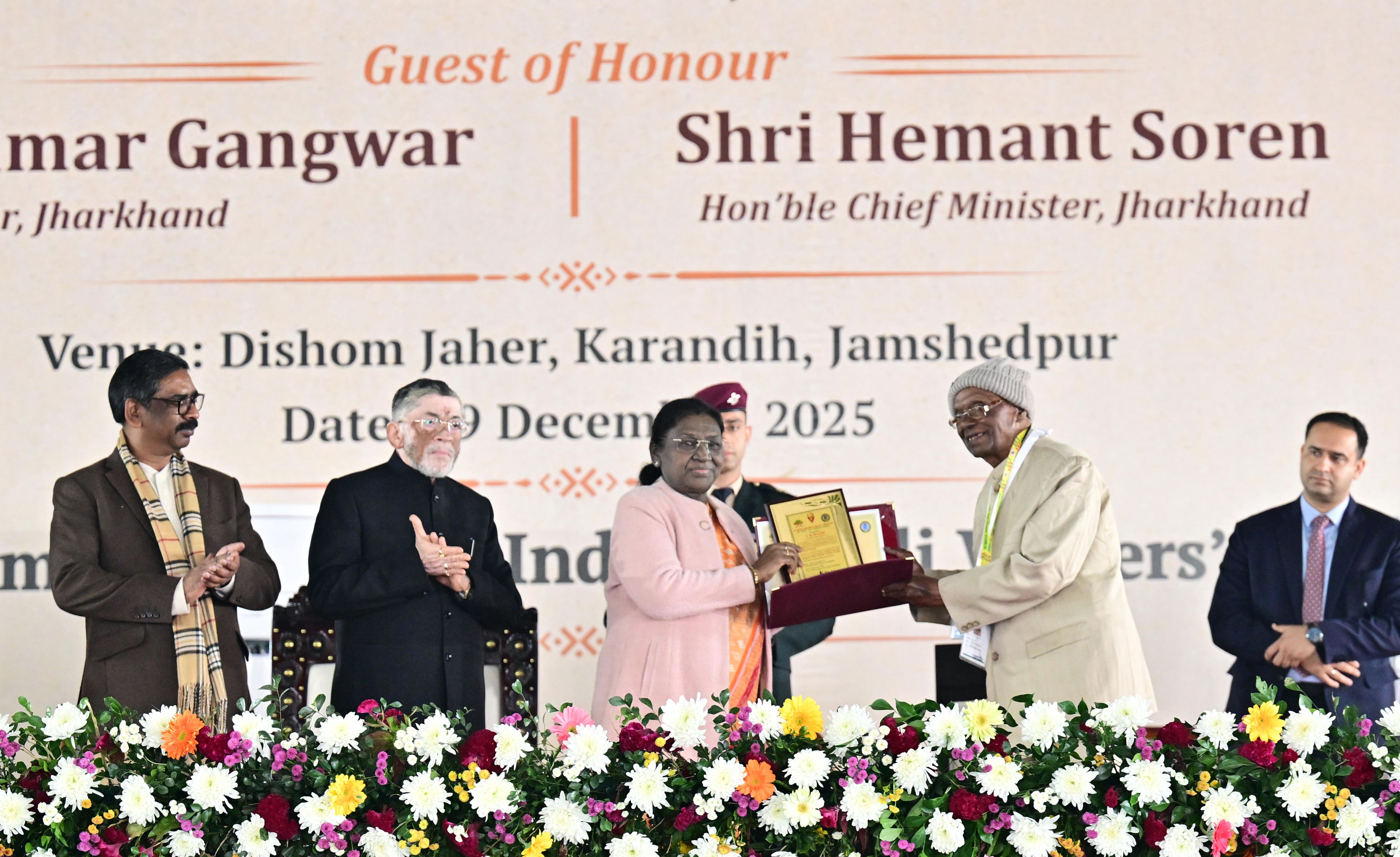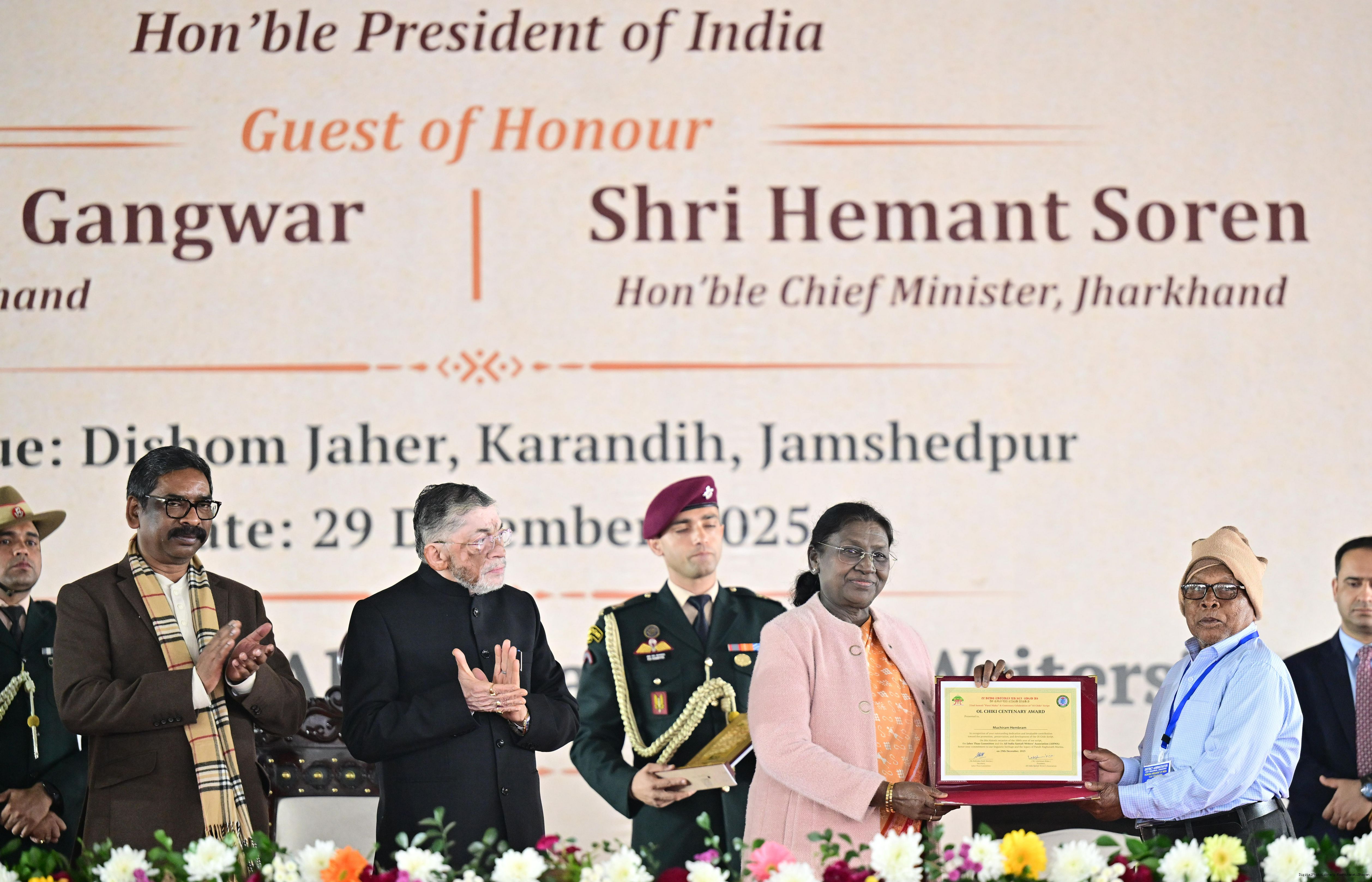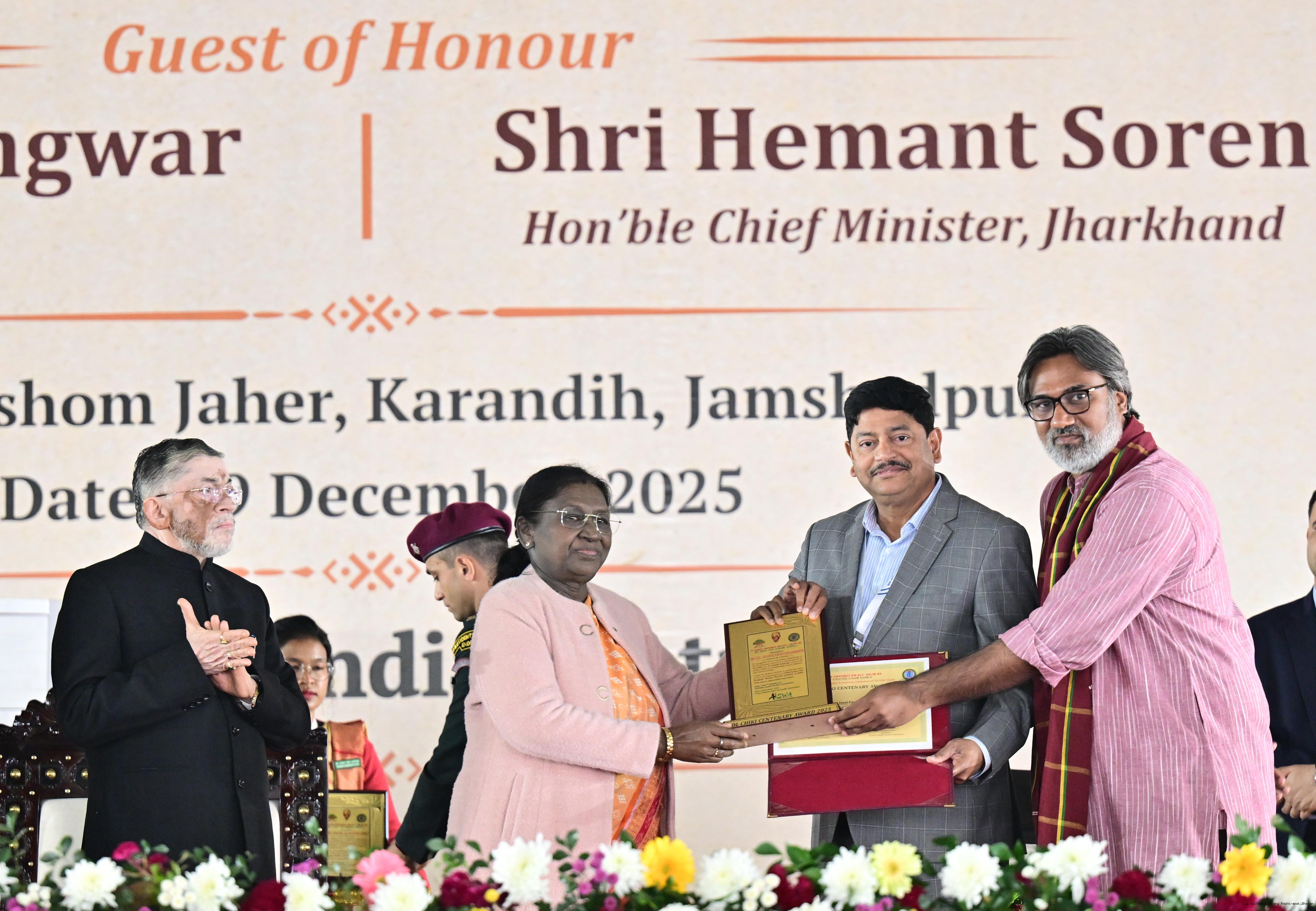 | Caption: | The President of India, Smt Droupadi Murmu addressed the closing ceremony of the 22nd Parsi Maha and the centenary celebrations of Ol Chiki at Jamshedpur, Jharkhand on December 29, 2025. |