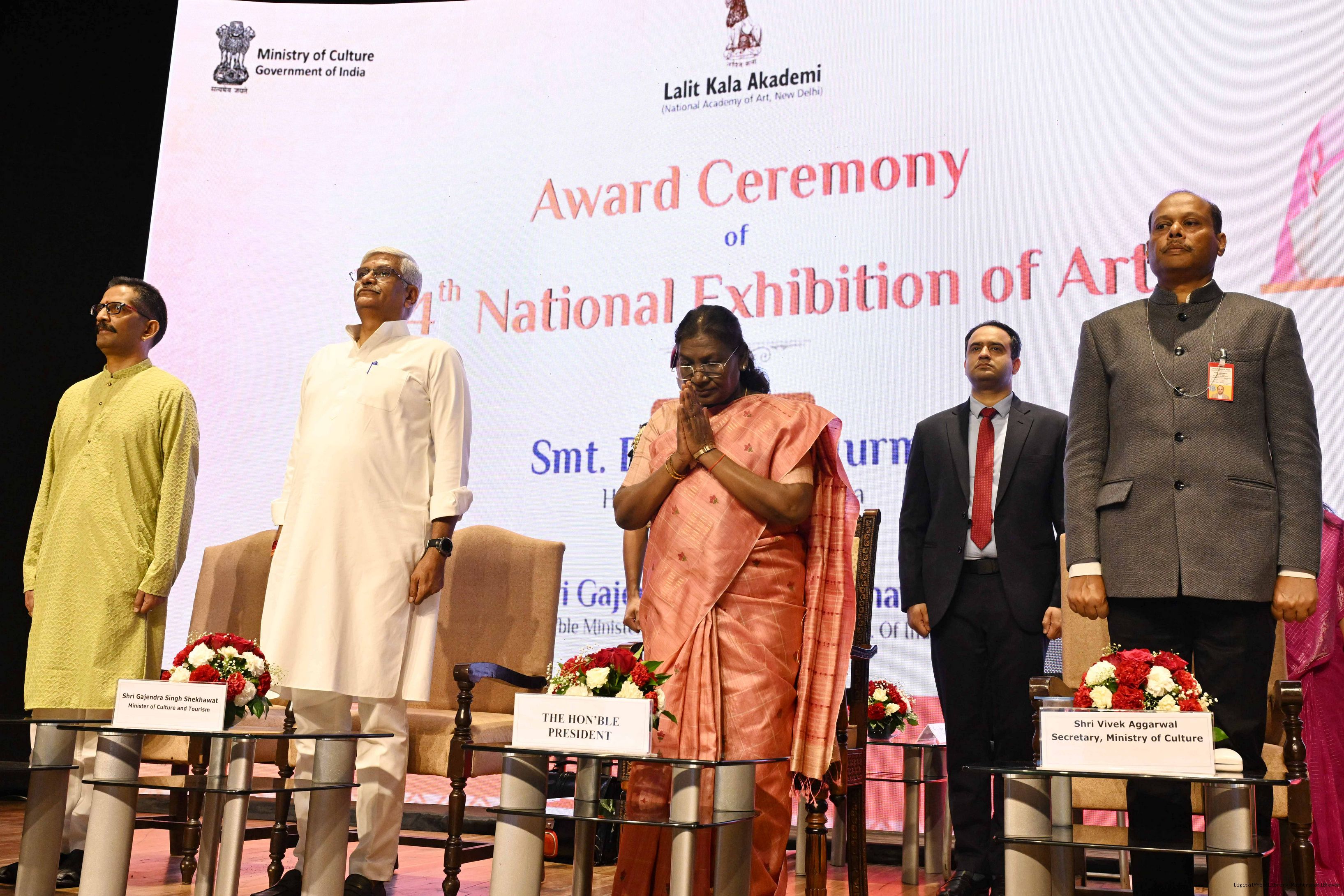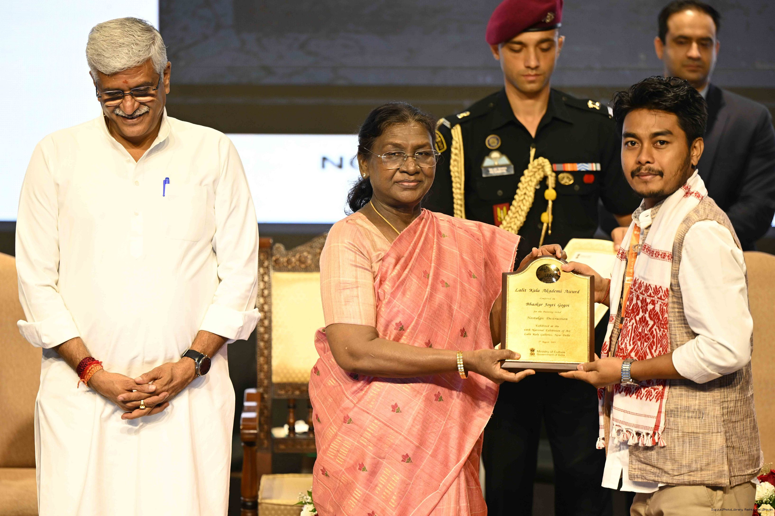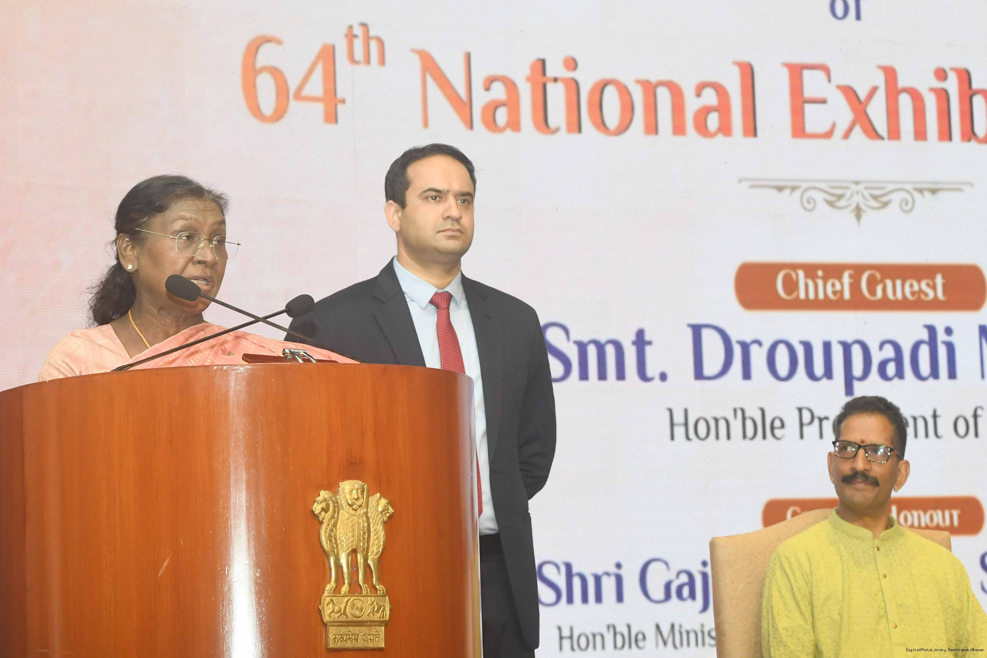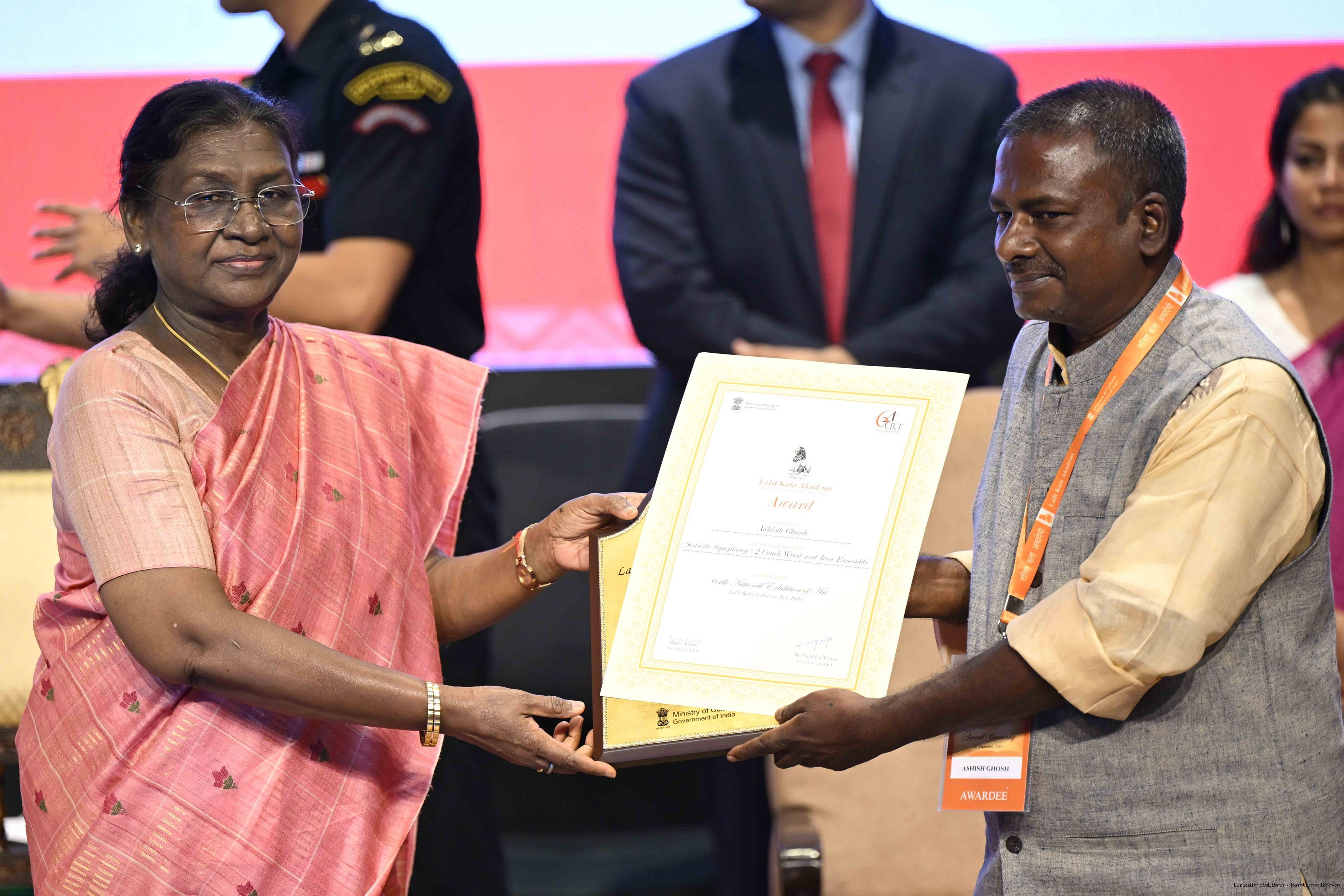 | Caption: | The President of India, Smt Droupadi Murmu, graced the award ceremony of the 64th National Exhibition of Art, organised by the Lalit Kala Akademi, in New Delhi on September 24, 2025. |