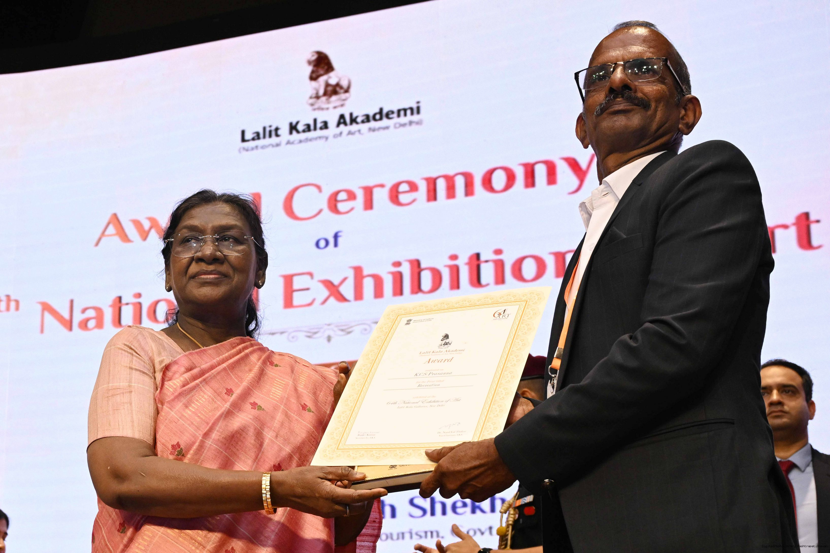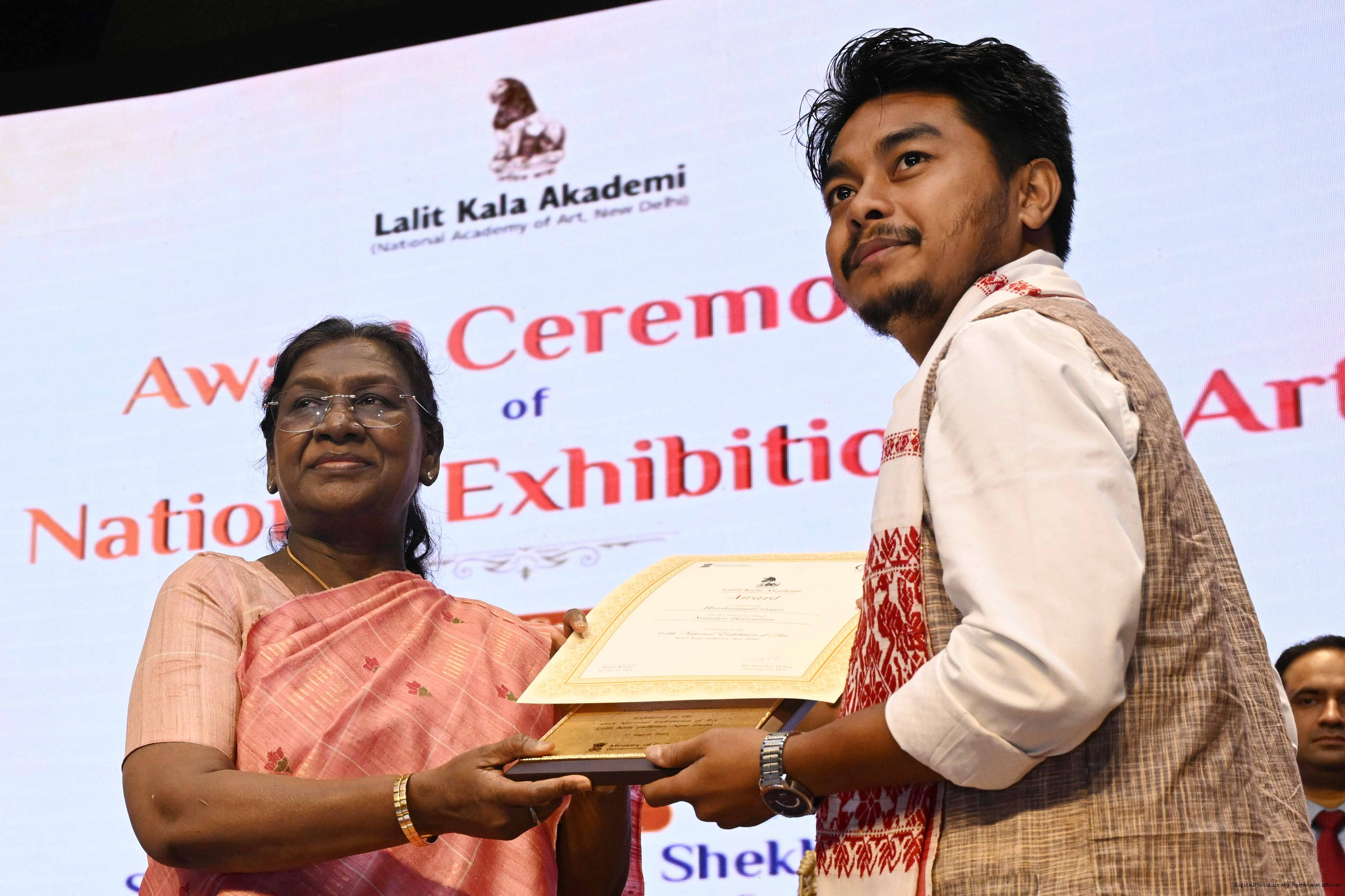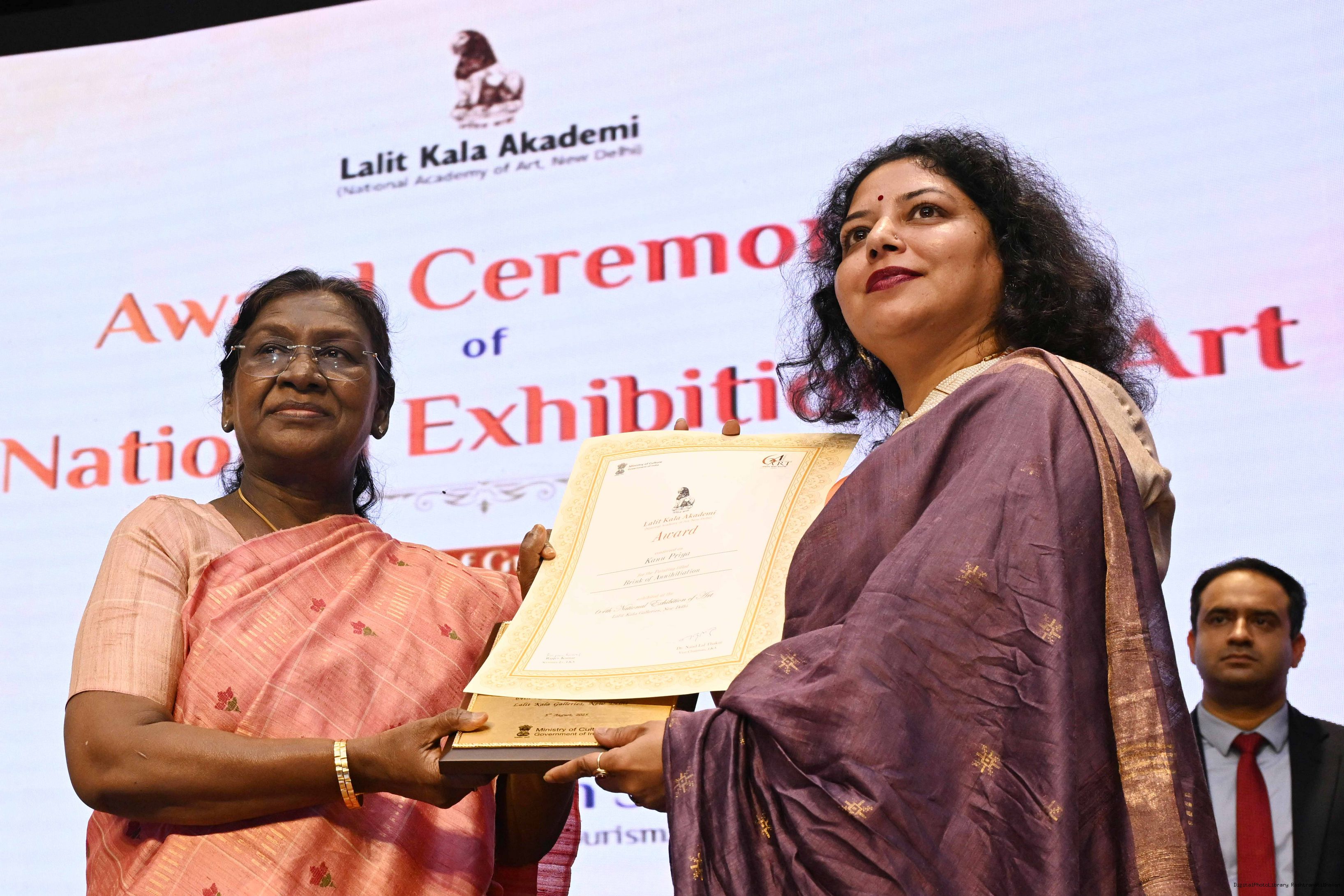 | Caption: | The President of India, Smt Droupadi Murmu, graced the award ceremony of the 64th National Exhibition of Art, organised by the Lalit Kala Akademi, in New Delhi on September 24, 2025. |
