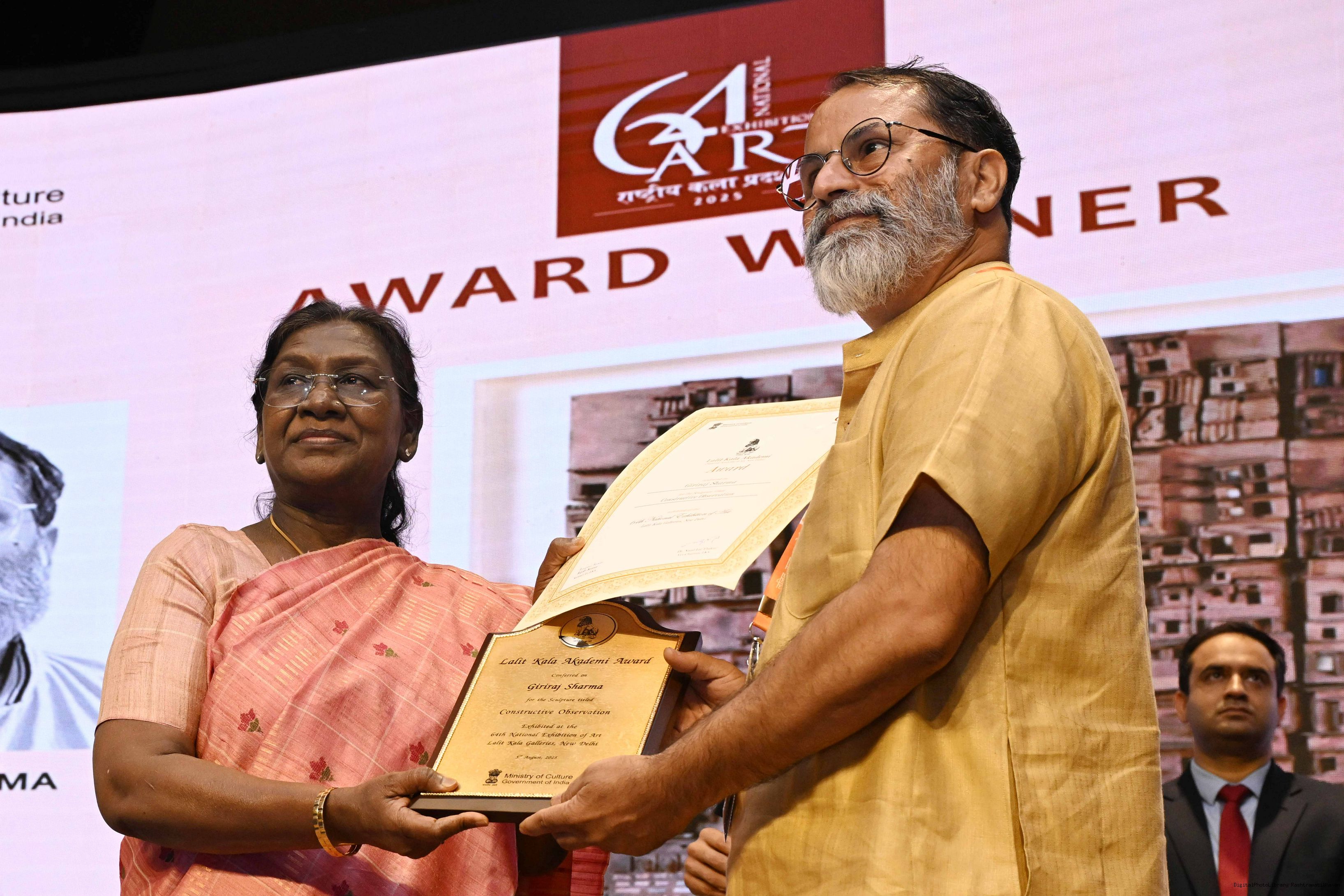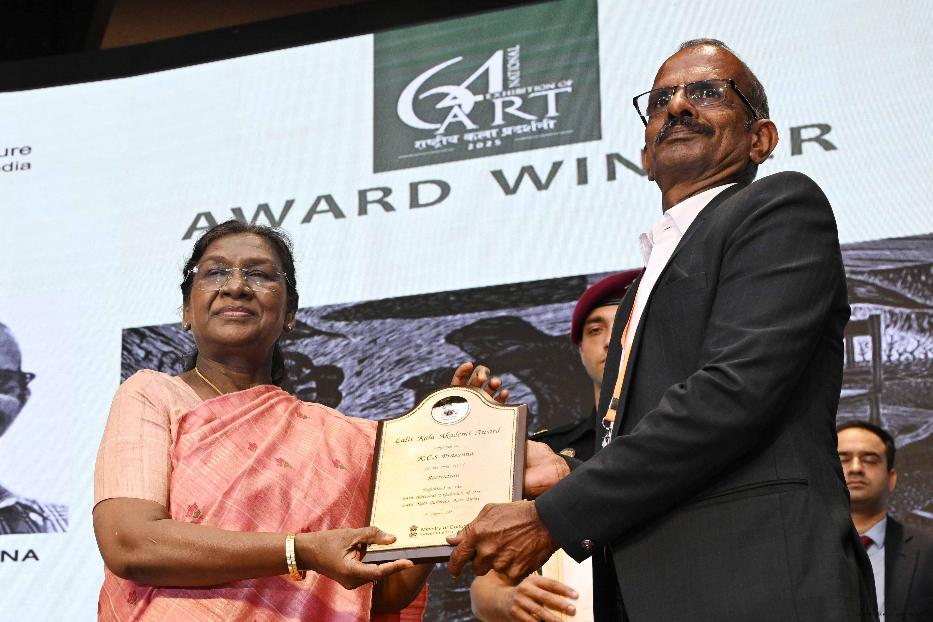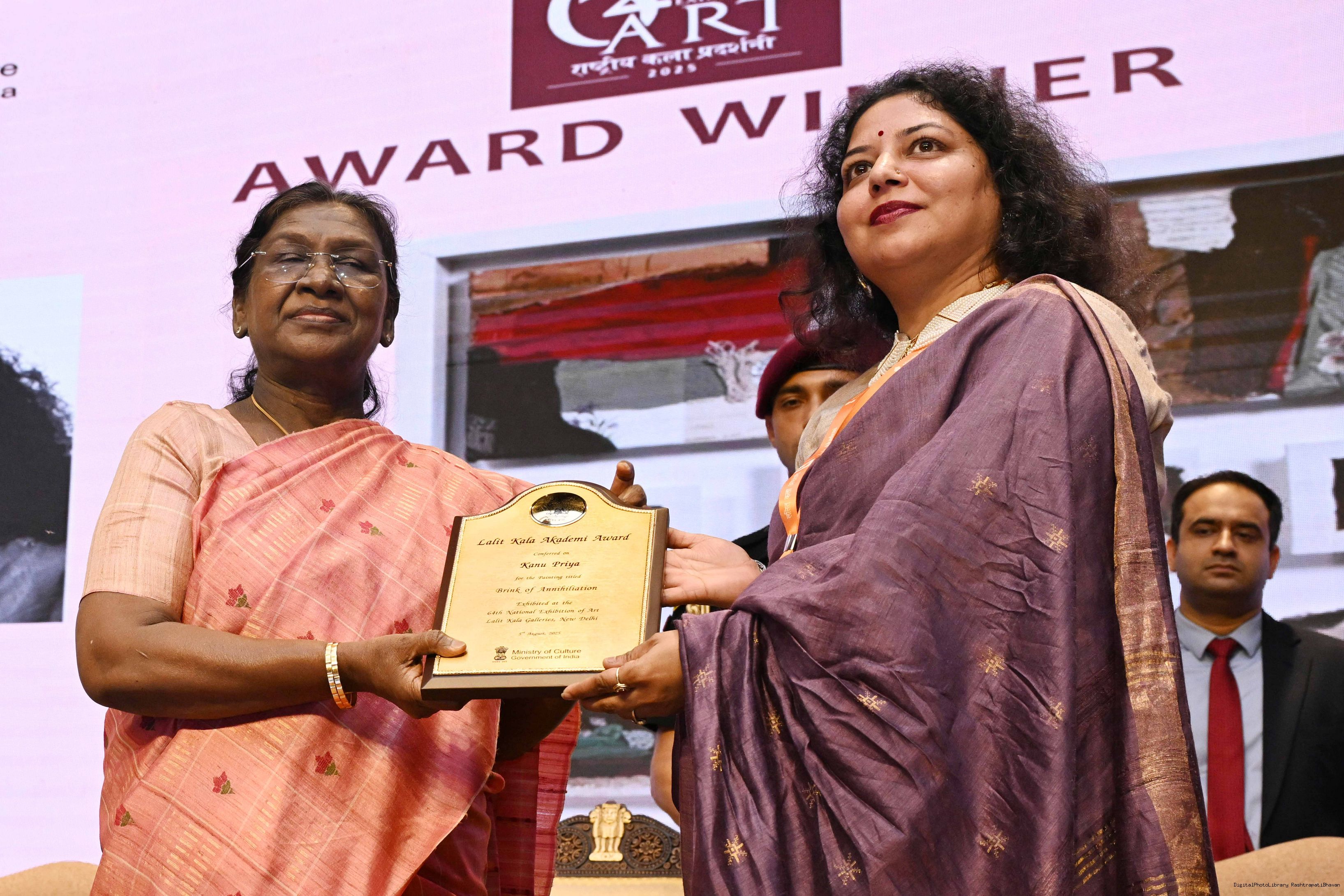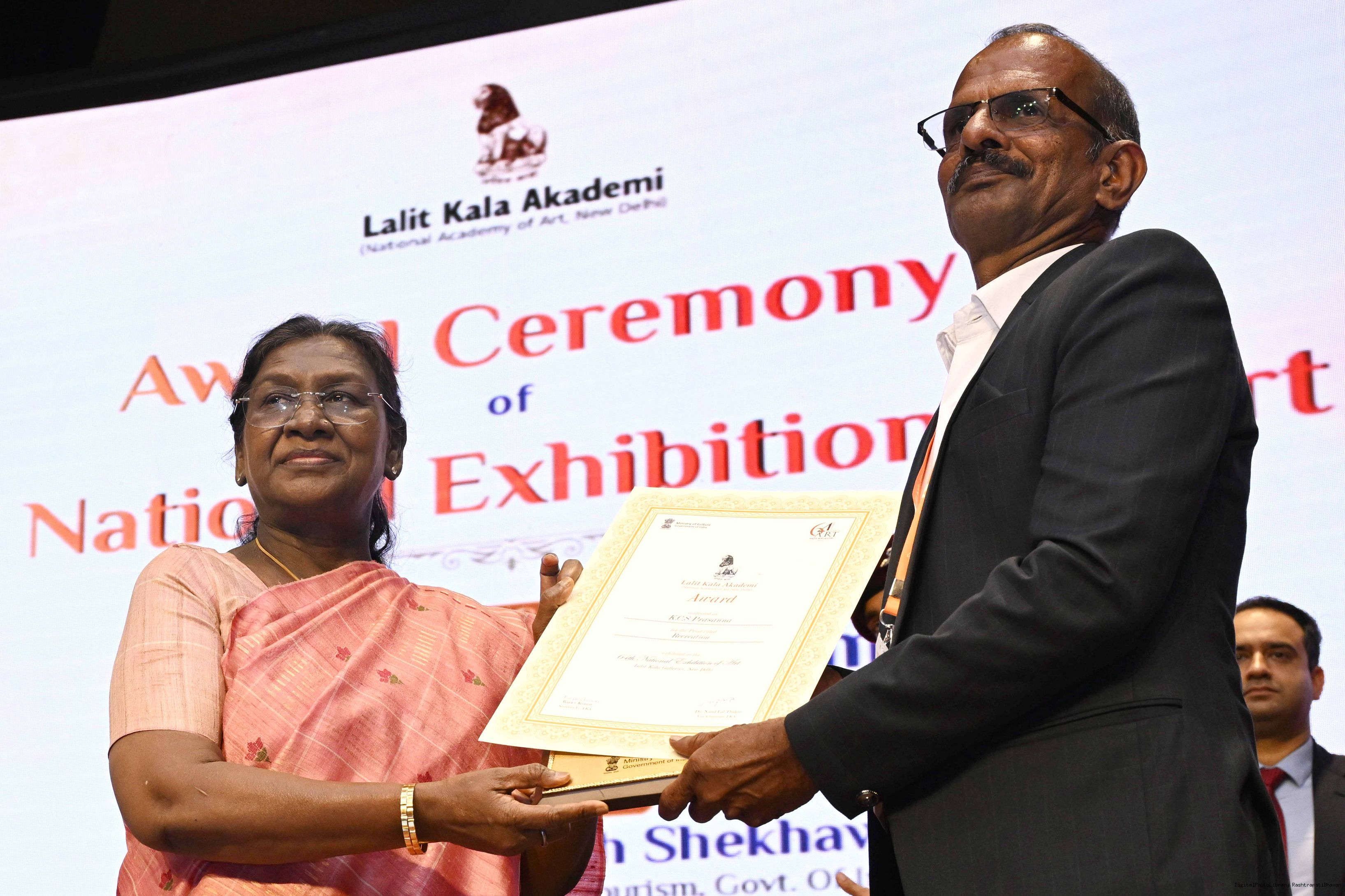 | Caption: | The President of India, Smt Droupadi Murmu, graced the award ceremony of the 64th National Exhibition of Art, organised by the Lalit Kala Akademi, in New Delhi on September 24, 2025. |