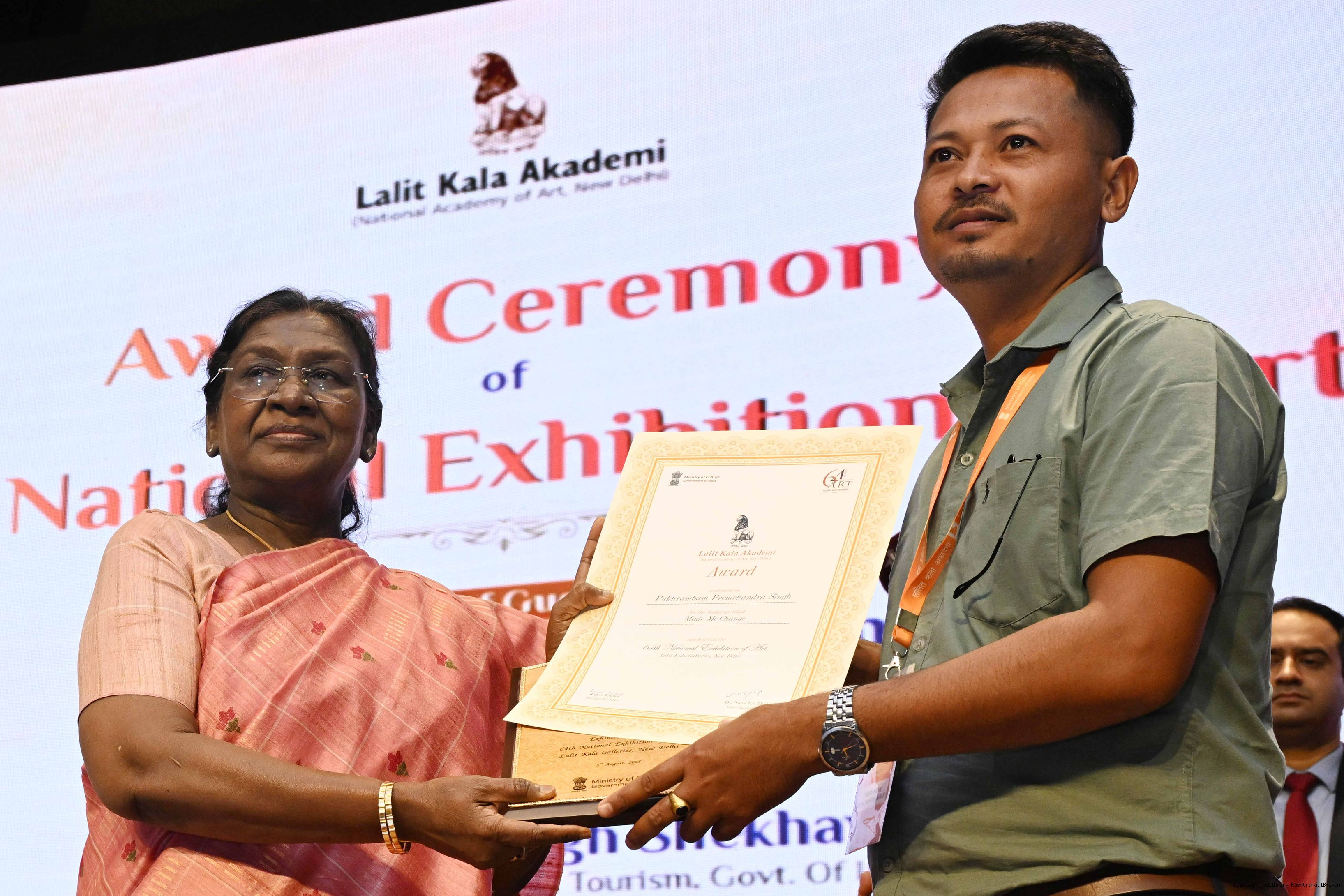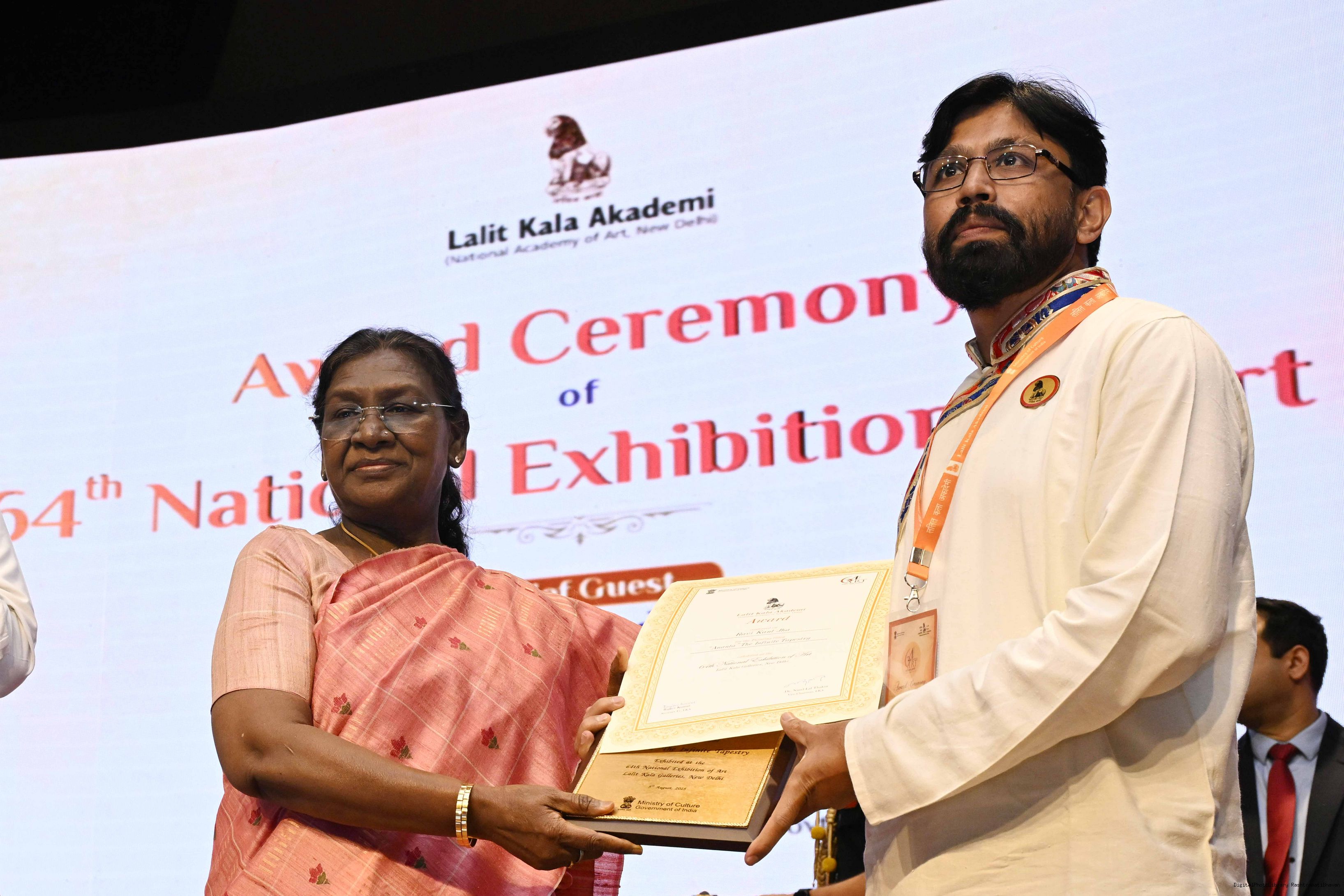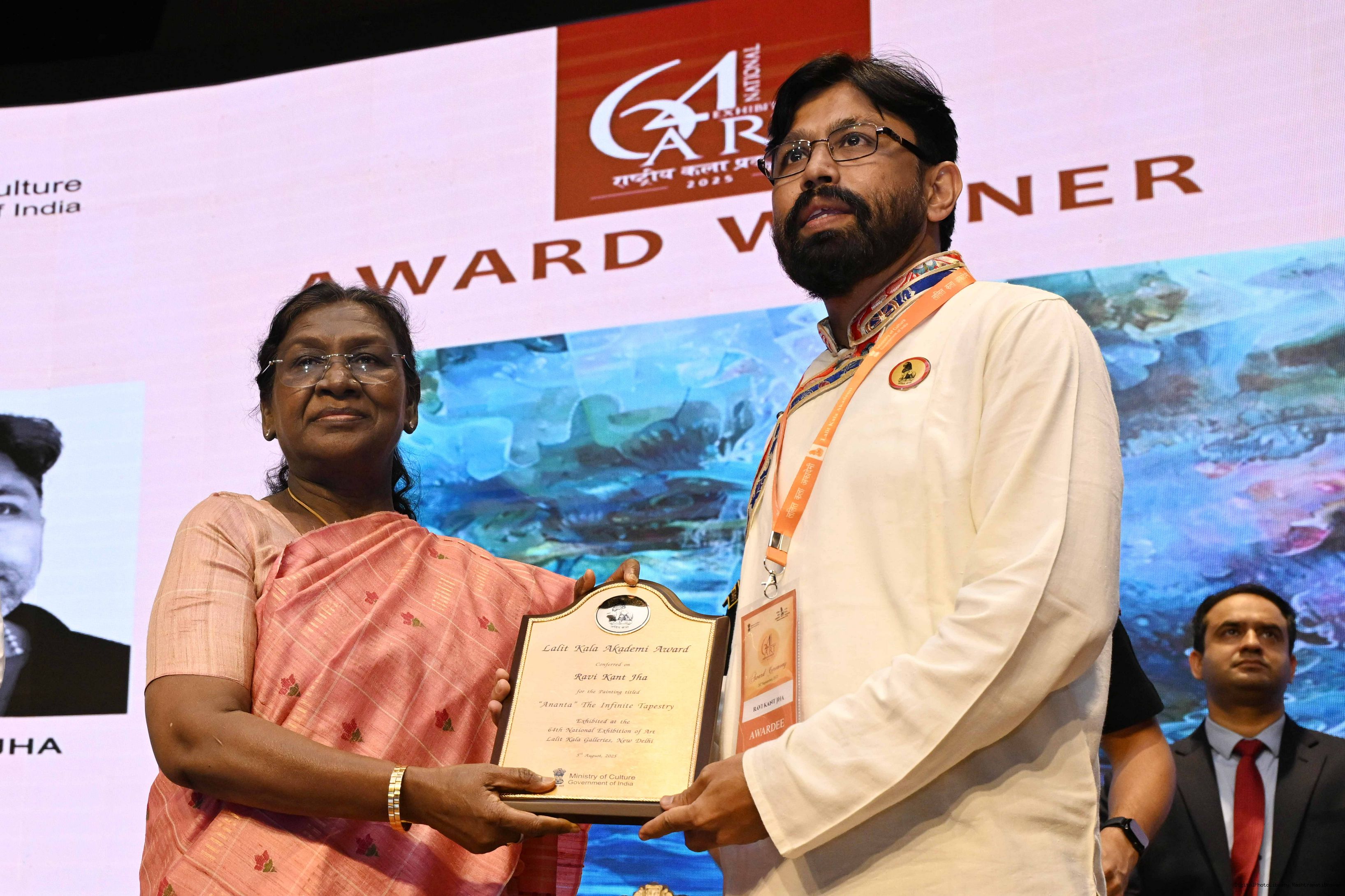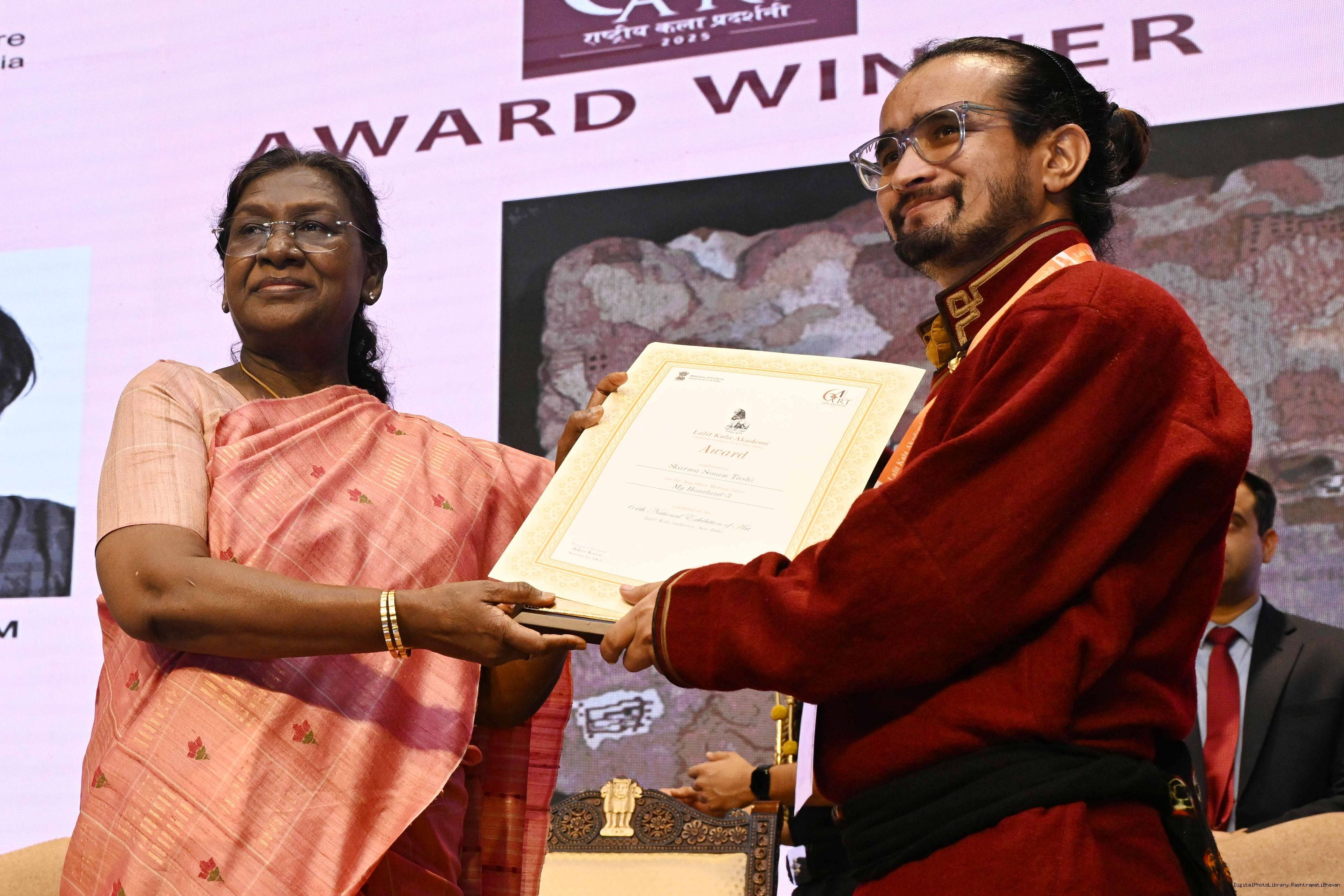 | Caption: | The President of India, Smt Droupadi Murmu, graced the award ceremony of the 64th National Exhibition of Art, organised by the Lalit Kala Akademi, in New Delhi on September 24, 2025. |