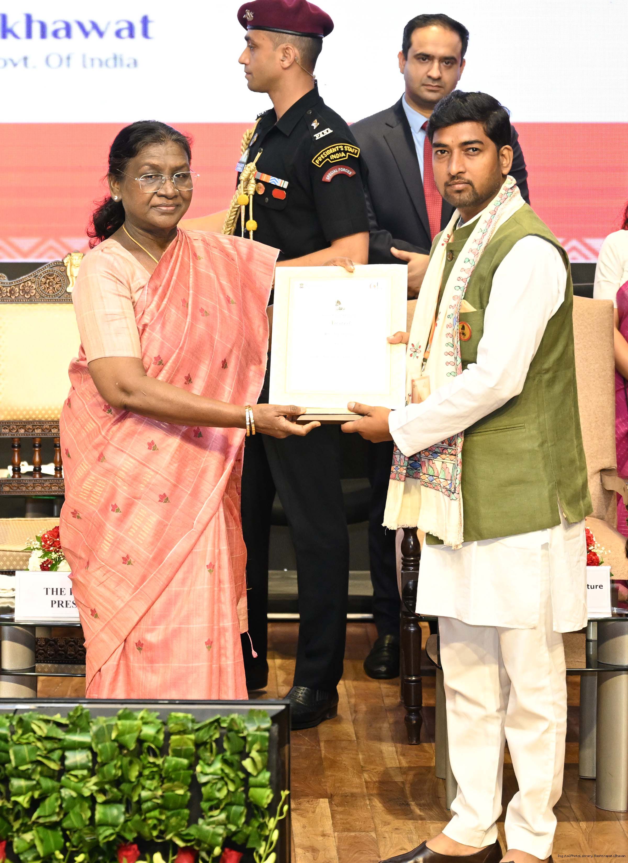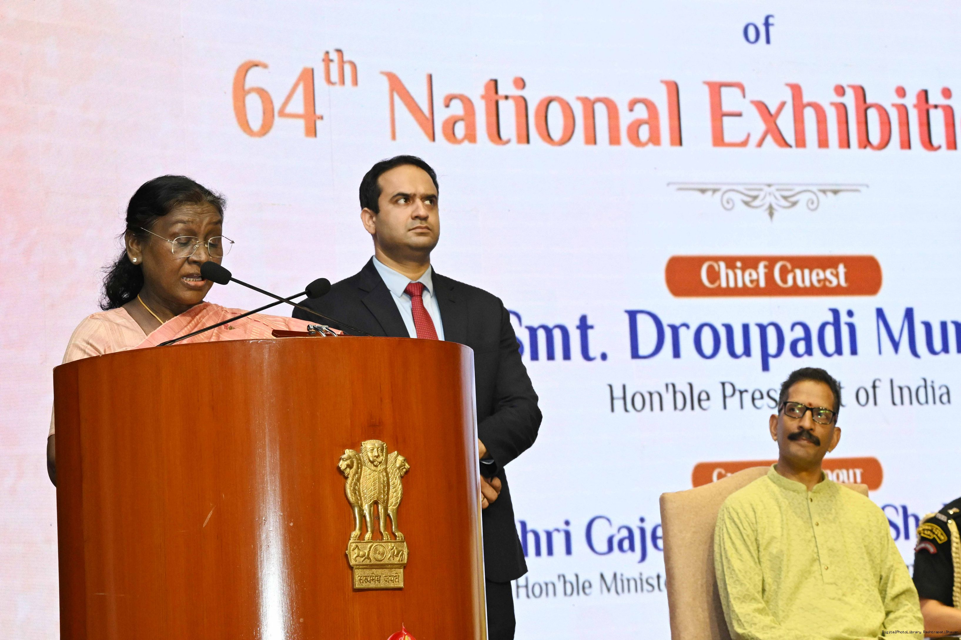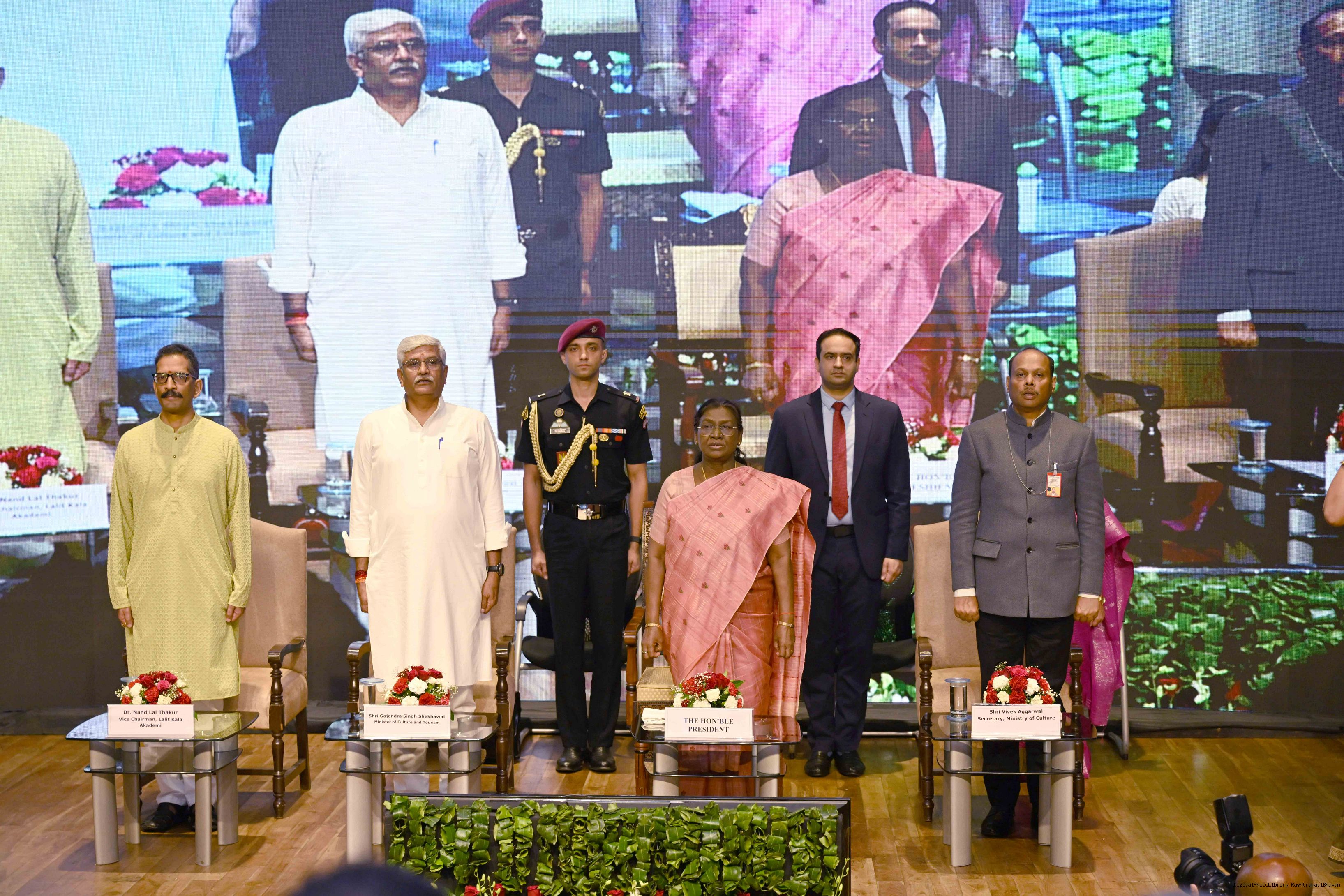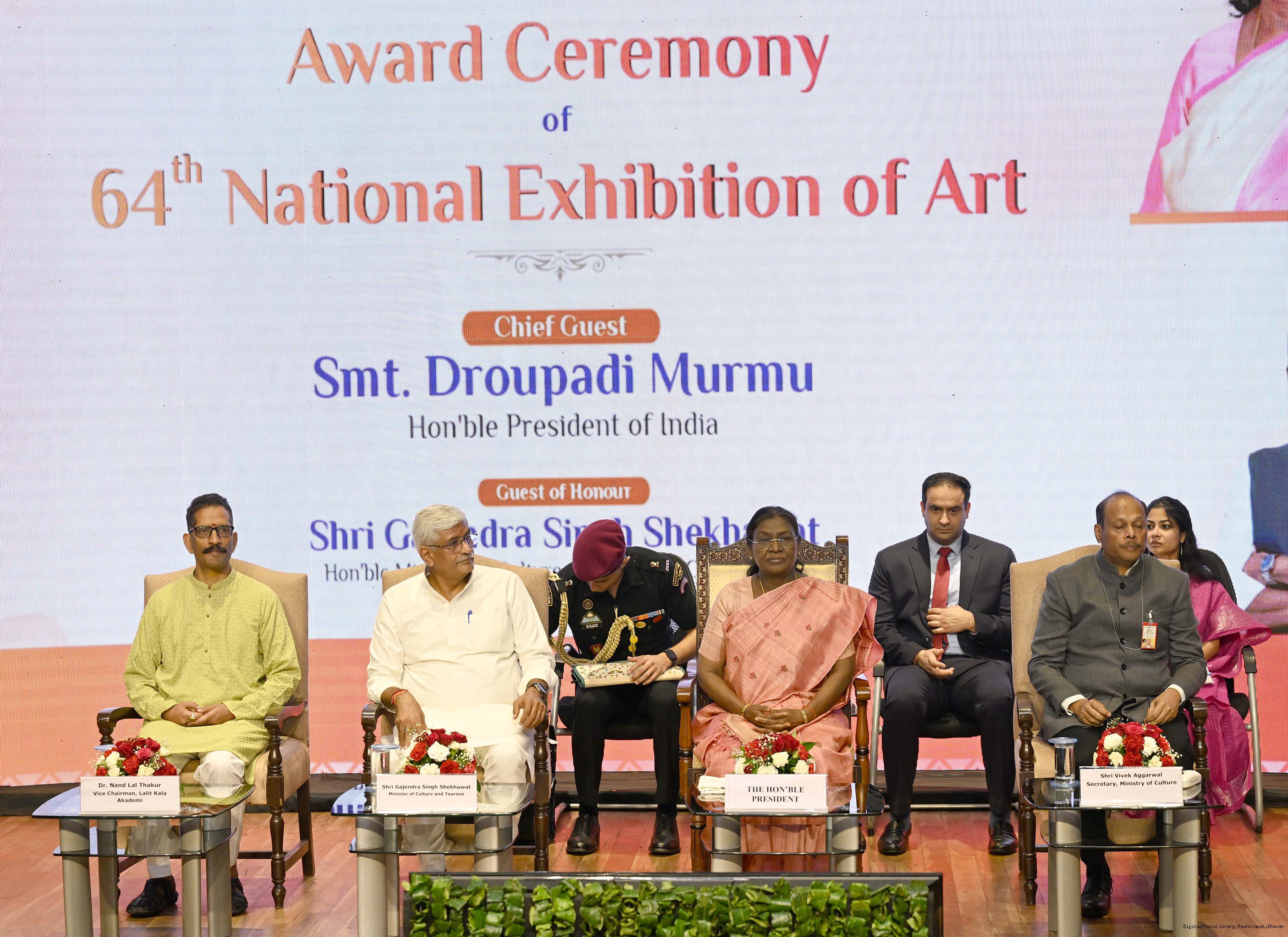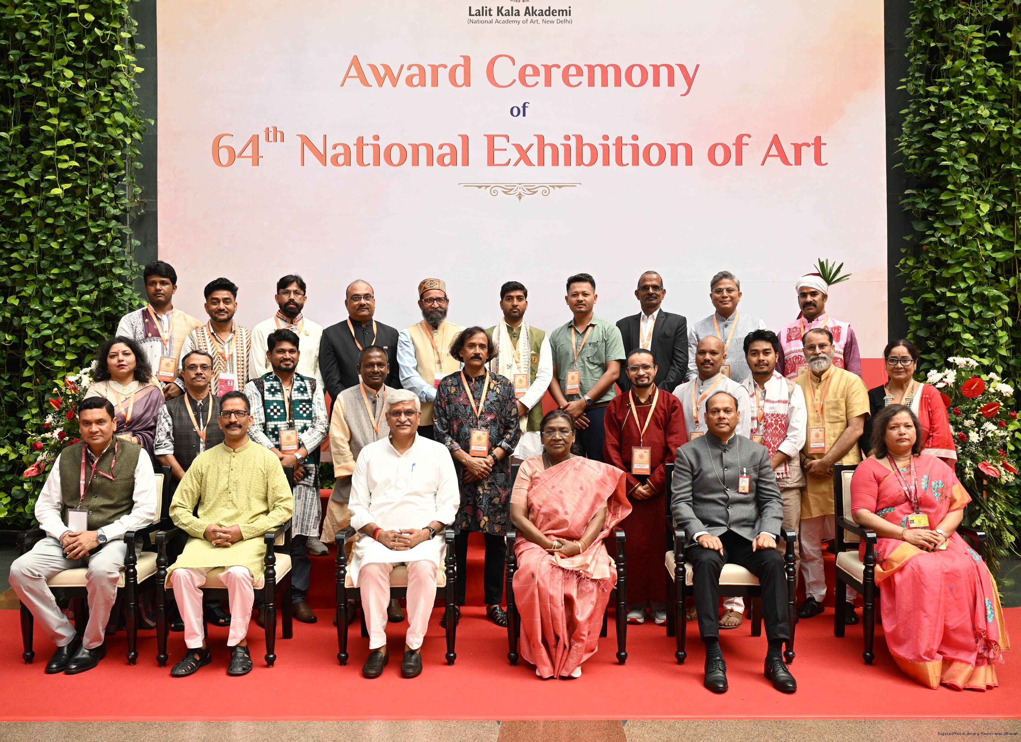 | Caption: | The President of India, Smt Droupadi Murmu, graced the award ceremony of the 64th National Exhibition of Art, organised by the Lalit Kala Akademi, in New Delhi on September 24, 2025. |