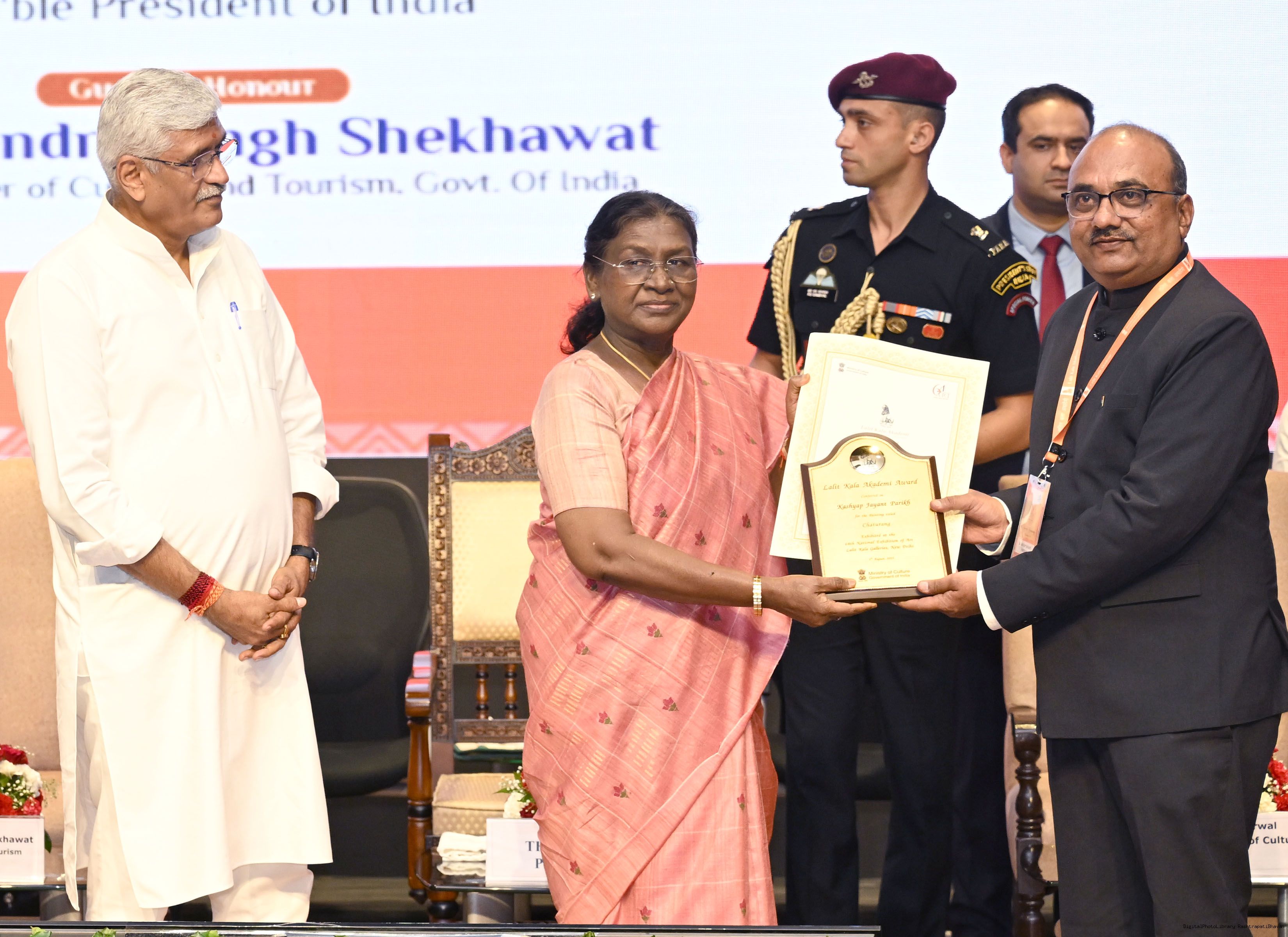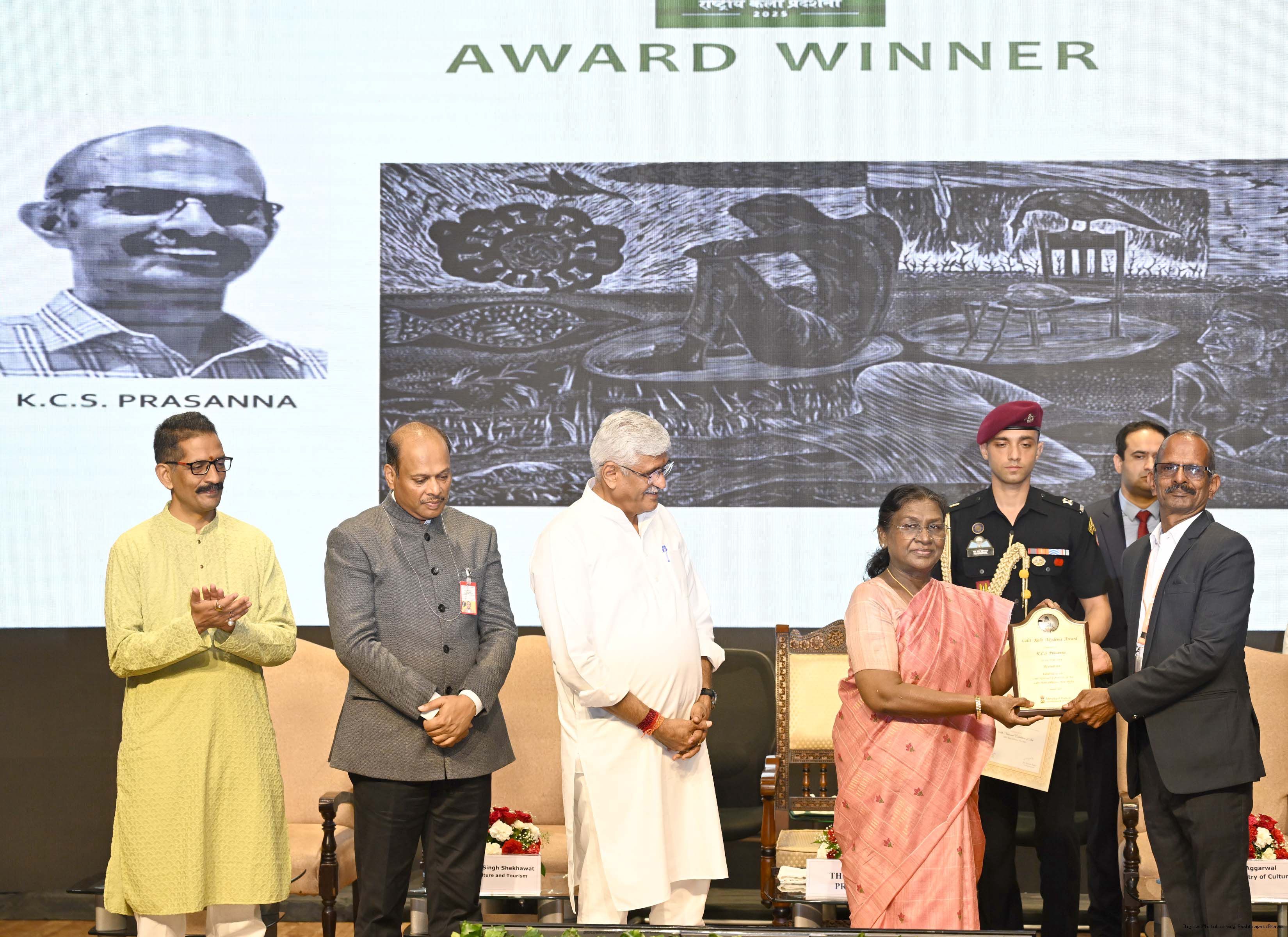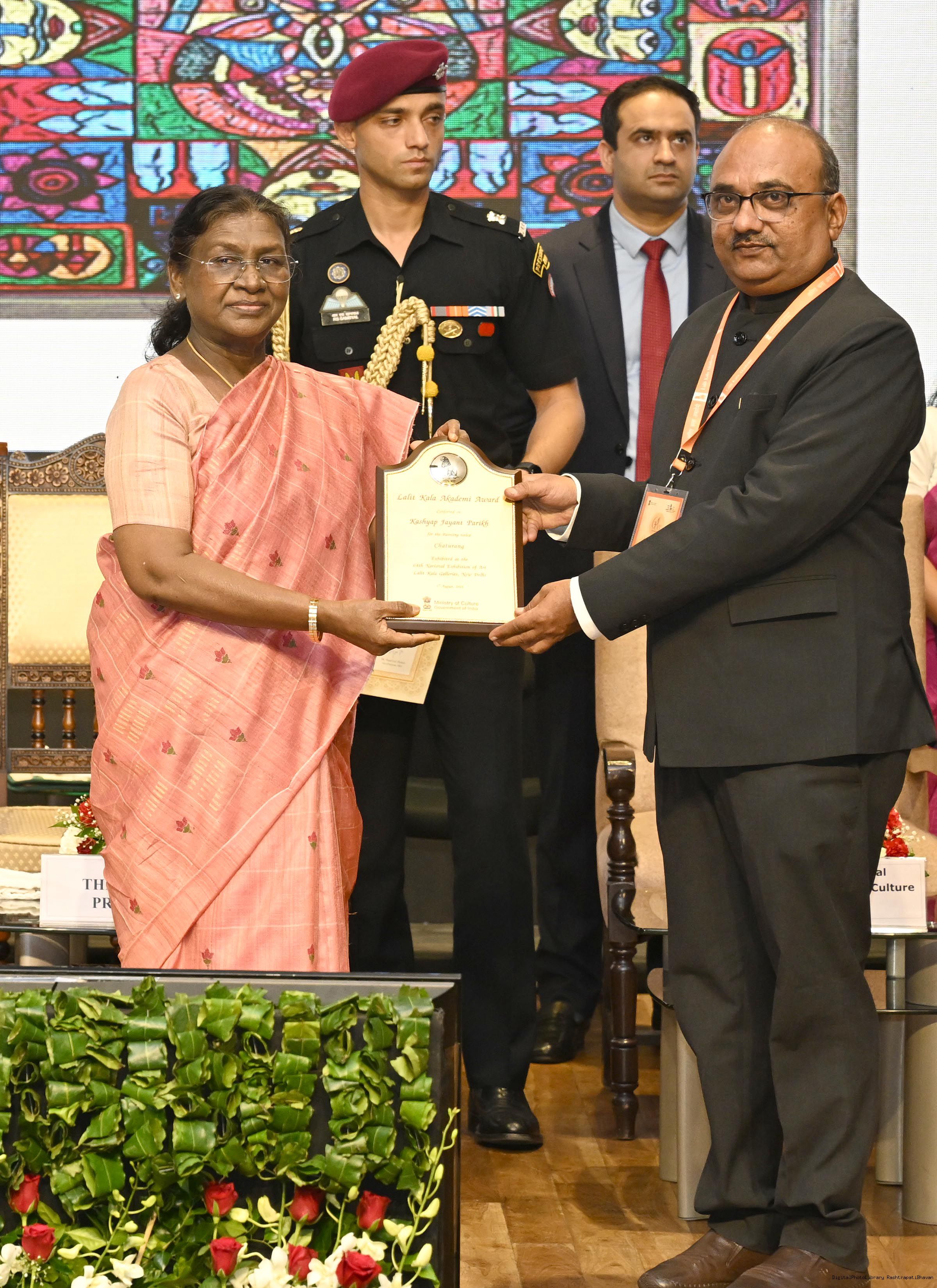 | Caption: | The President of India, Smt Droupadi Murmu, graced the award ceremony of the 64th National Exhibition of Art, organised by the Lalit Kala Akademi, in New Delhi on September 24, 2025. |