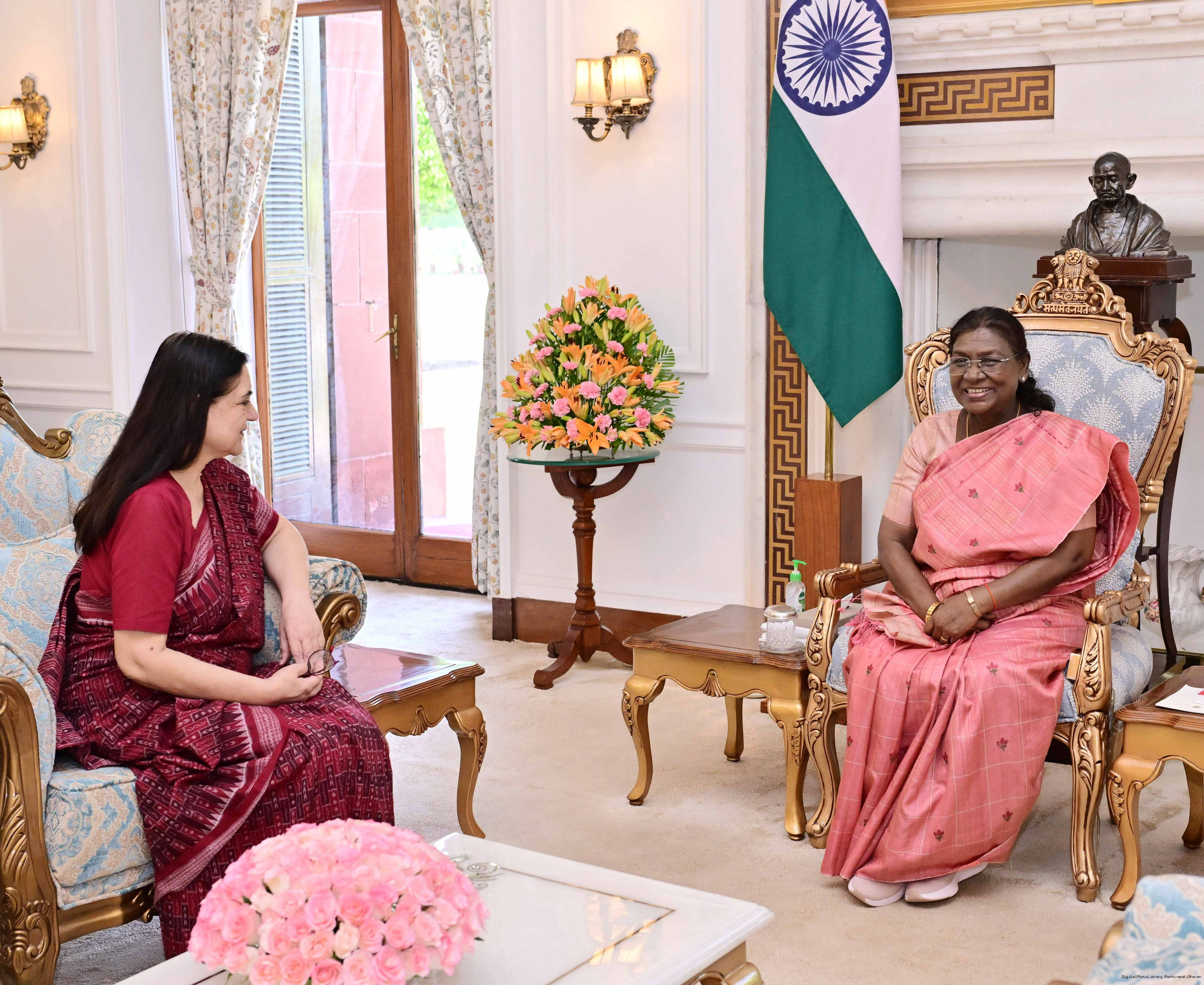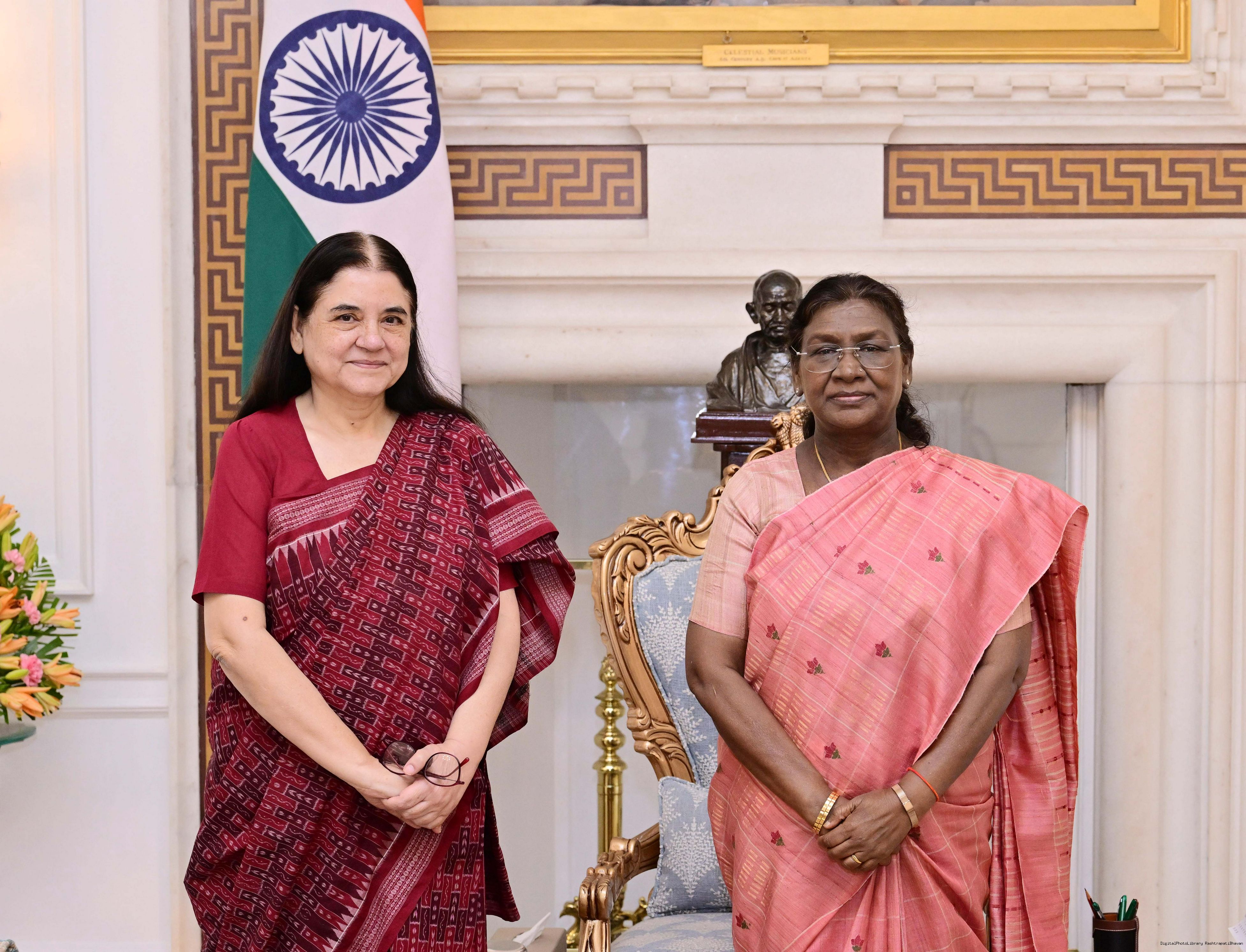 | Caption: | Smt. Maneka Sanjay Gandhi, former Union Minister meeting with the President of India, Smt Droupadi Murmu at Rashtrapati Bhavan on September 24, 2025. |